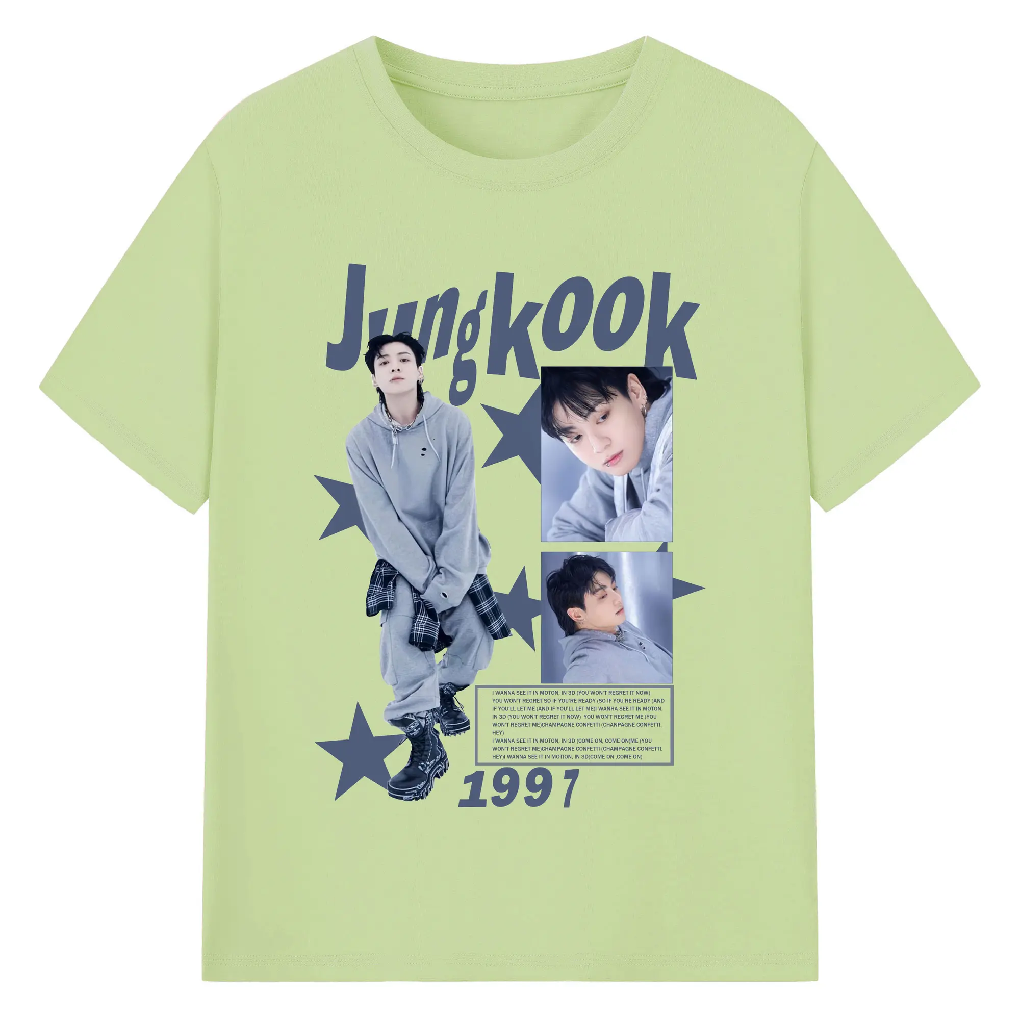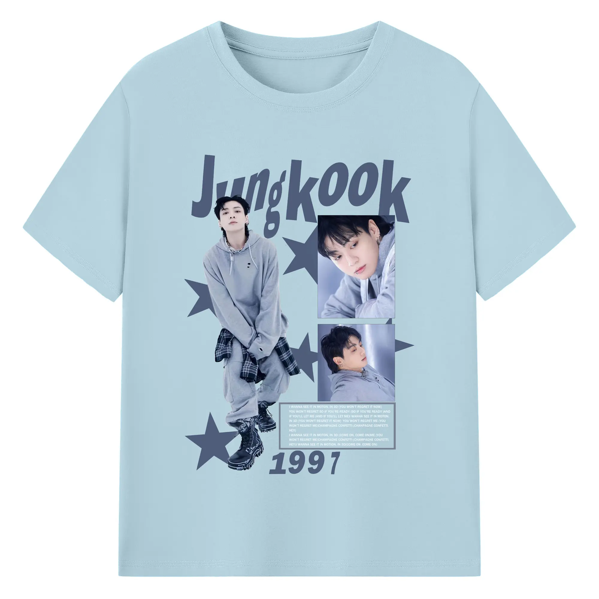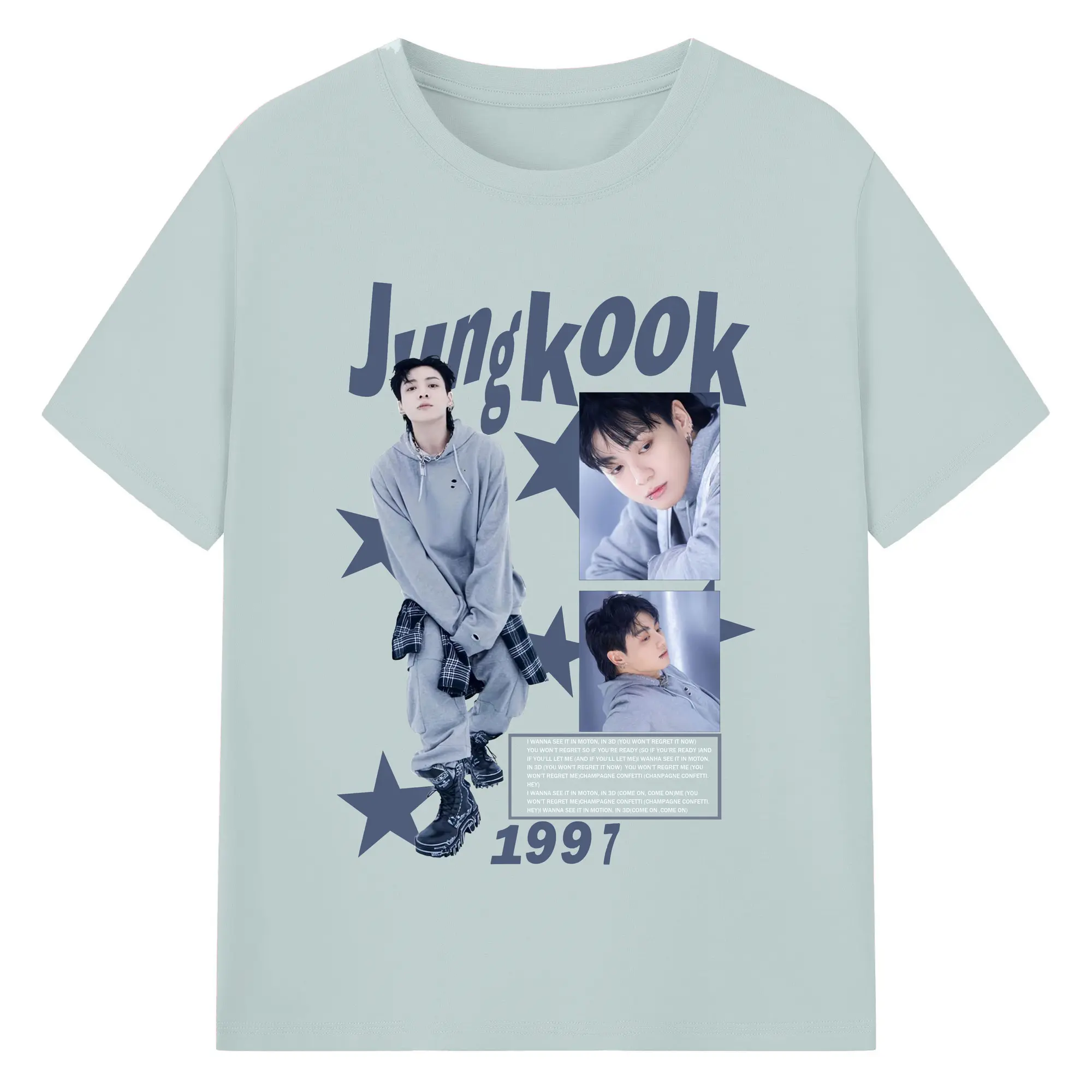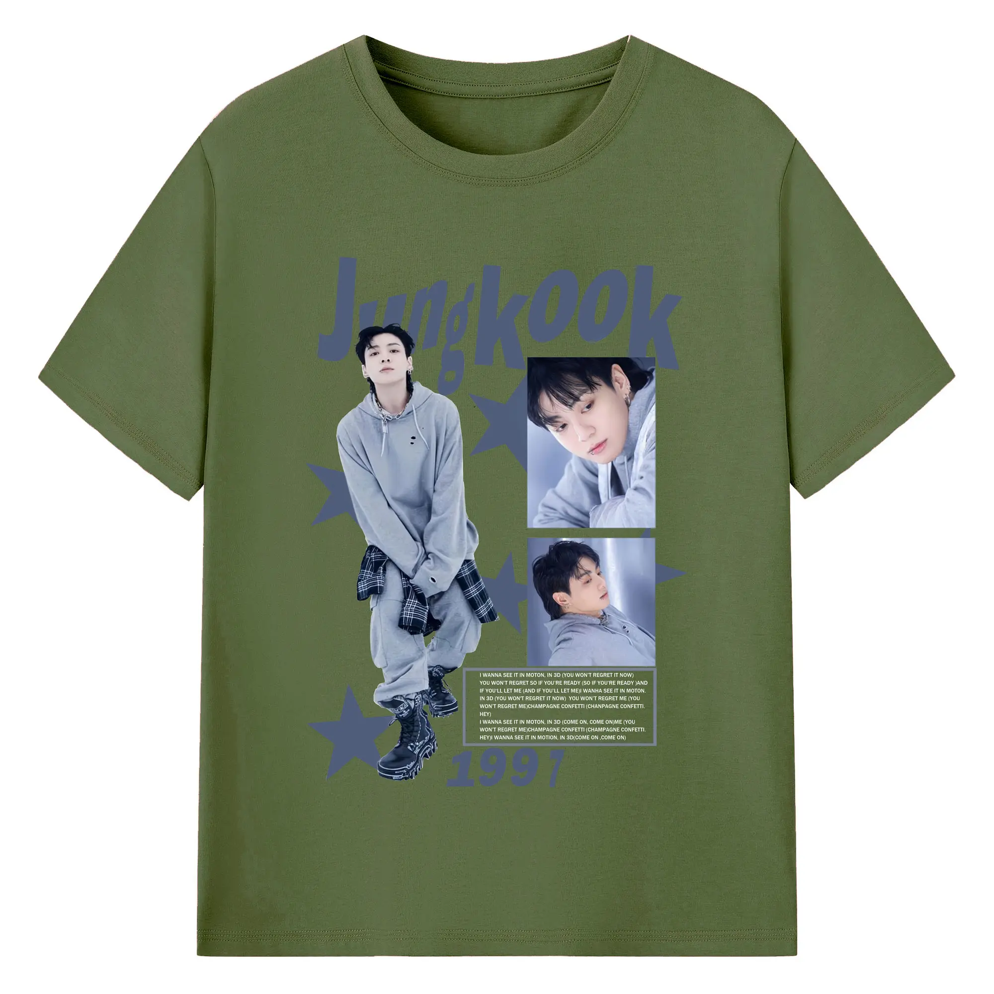 ジョングク “3D” モチーフTシャツ 韓流ファン注目トレンド - 綿100% ヴィンテージ風 半袖Tシャツ ・ フロントプリント ・ 柔らか肌触り ・ 通気性 快適 ・ スポーツ カジュアル 外出用