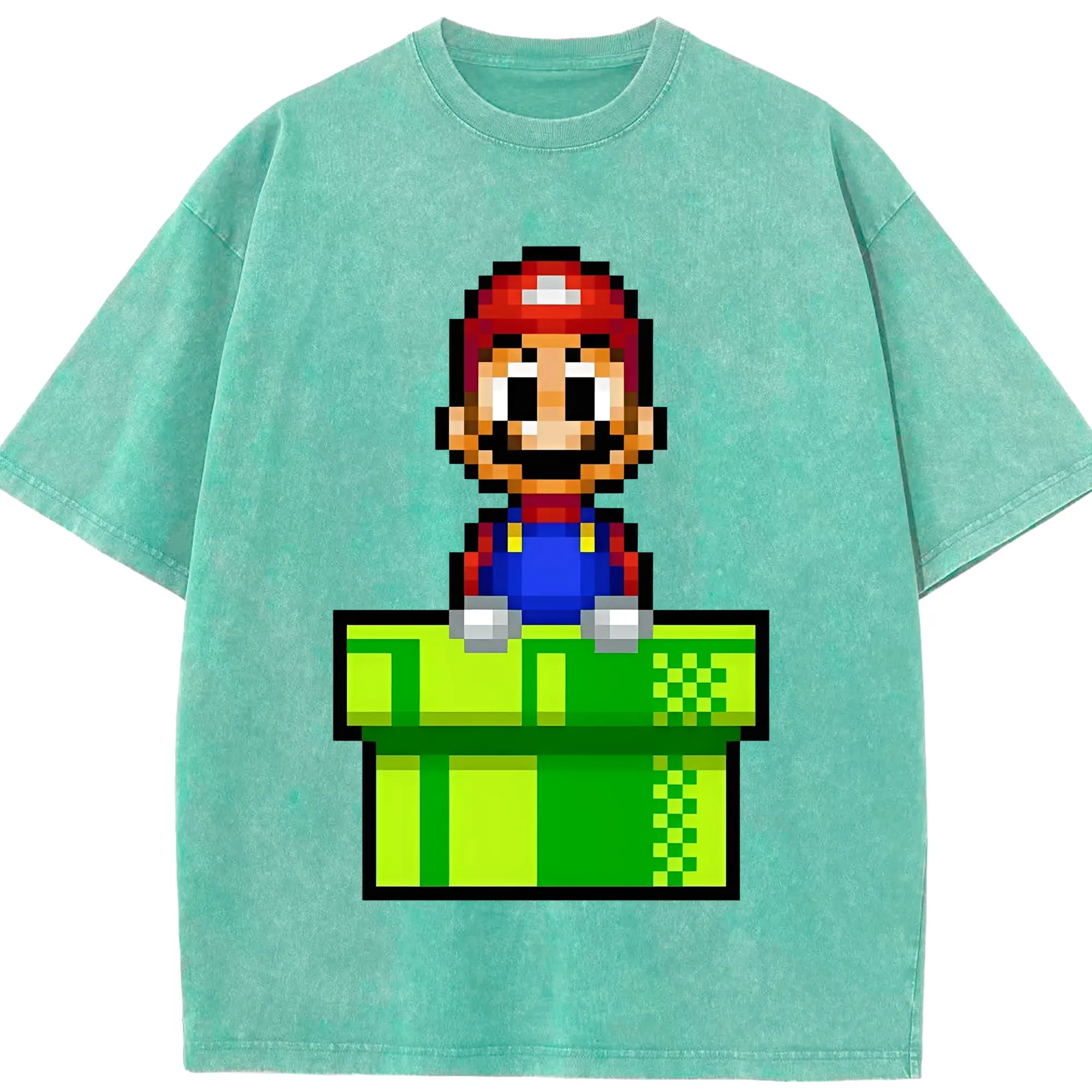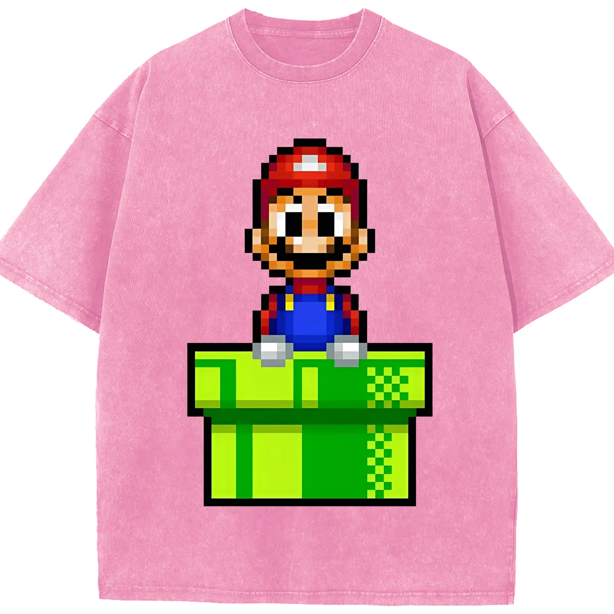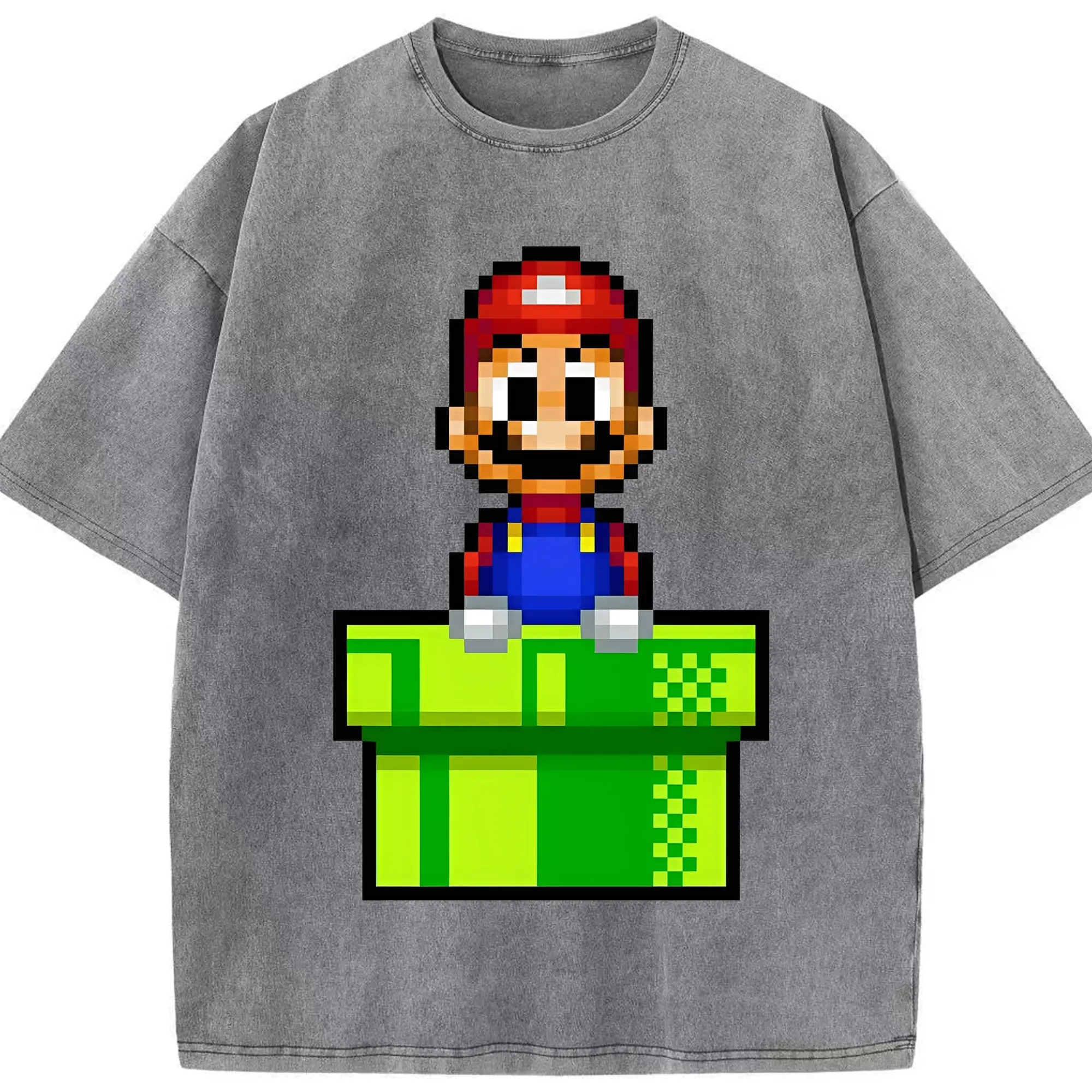 ストリートスタイル スーパーマリオ8bit - 綿100% 半袖Tシャツ ・ フロントプリント ・ 快適 通気性 ・ 日常使い 散歩 スポーツ用