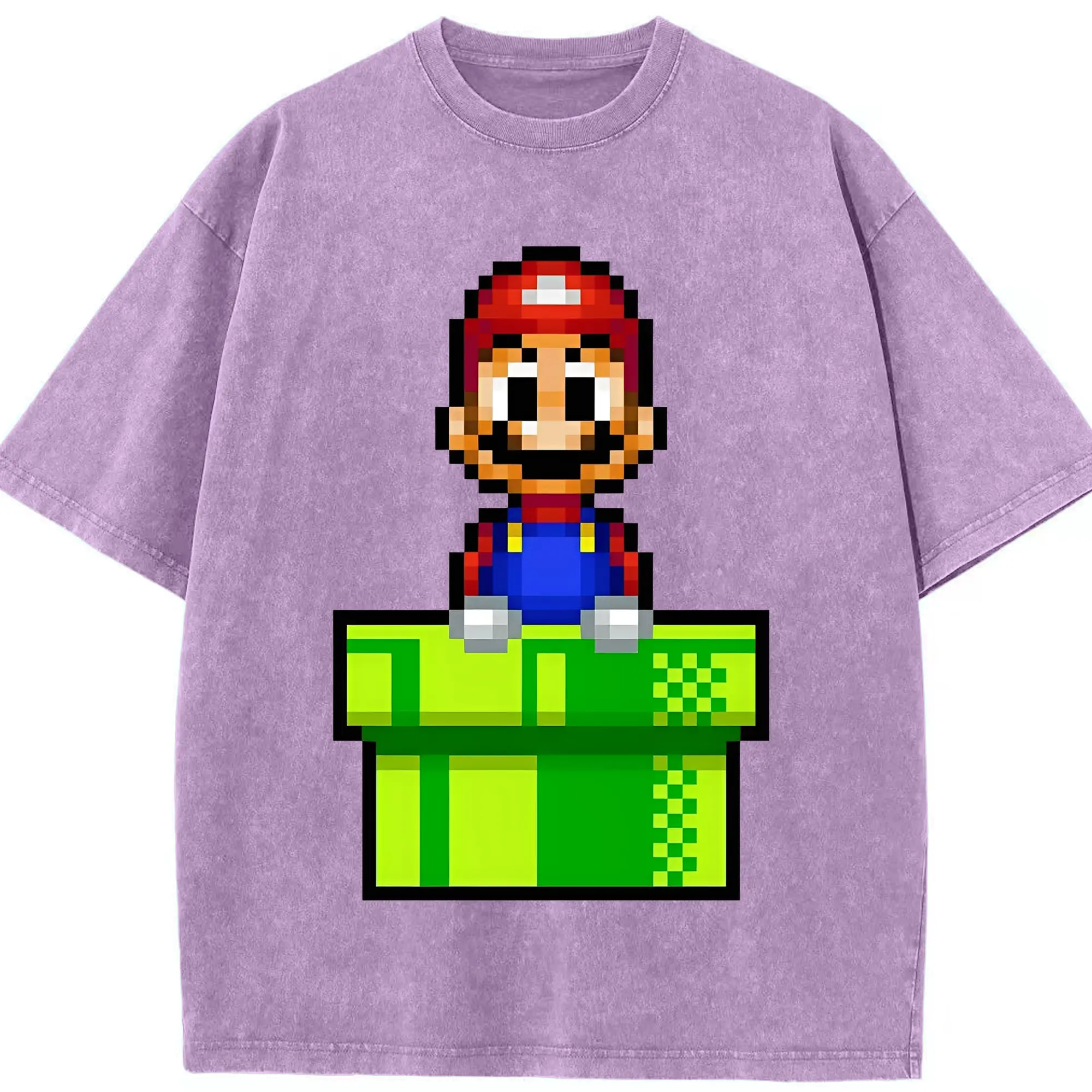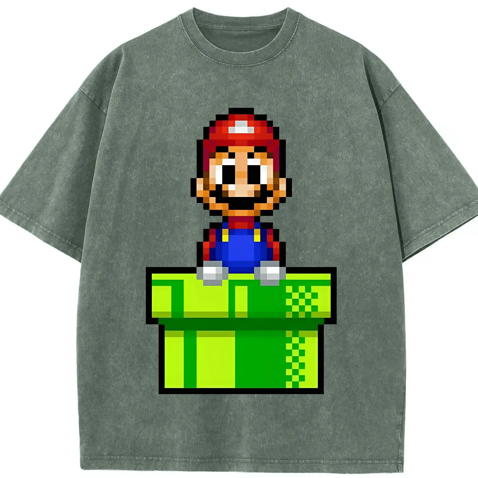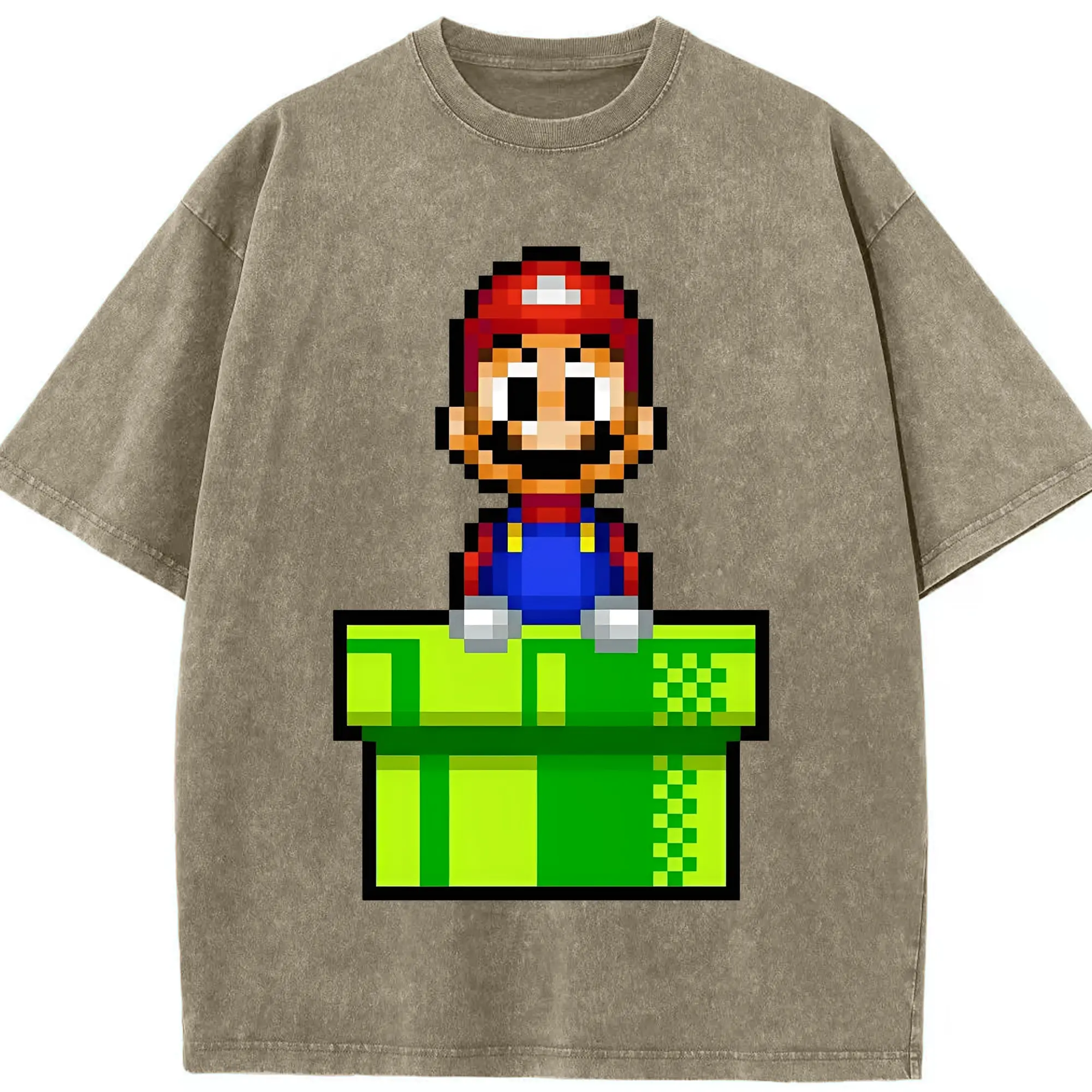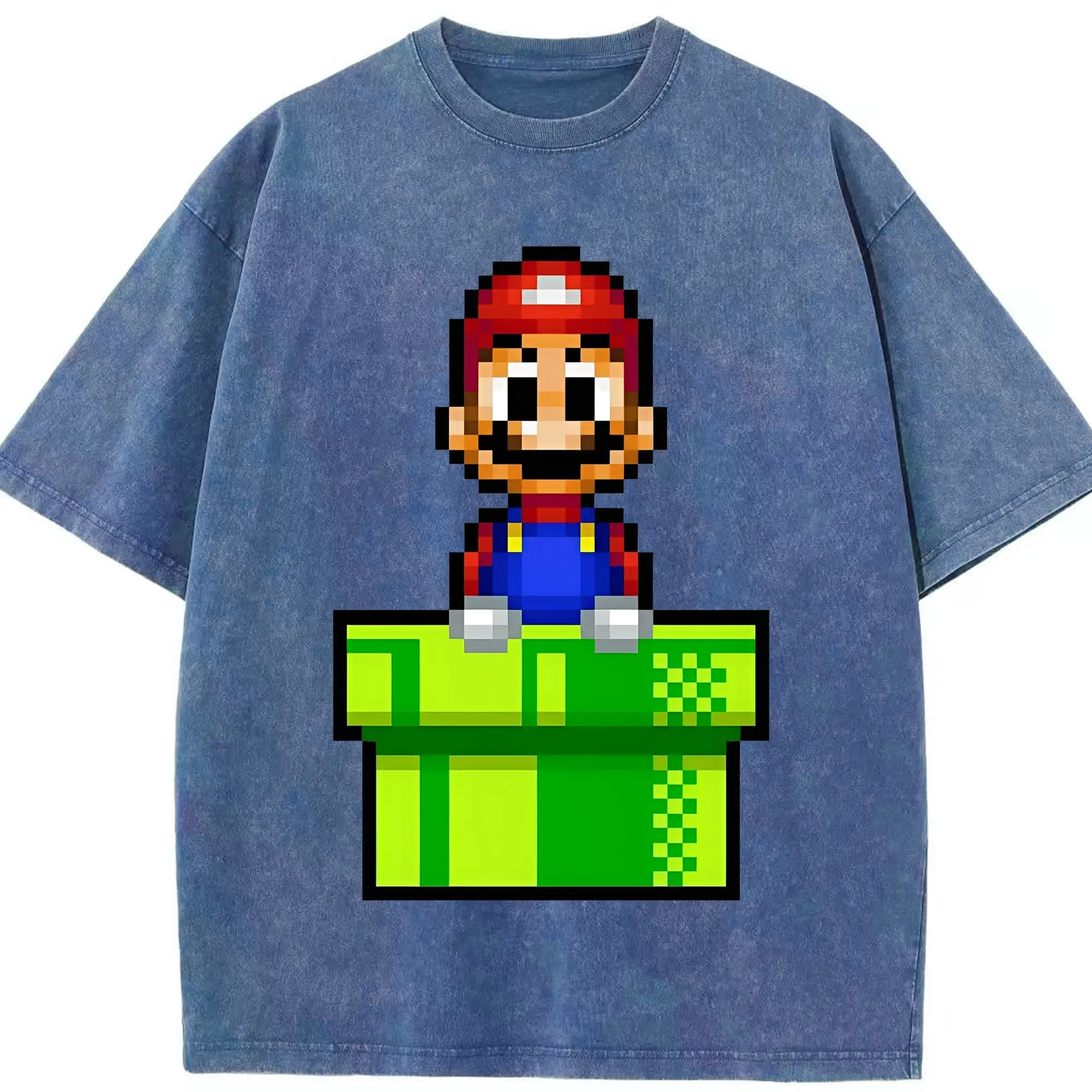 ストリートスタイル スーパーマリオ8bit - 綿100% 半袖Tシャツ ・ フロントプリント ・ 快適 通気性 ・ 日常使い 散歩 スポーツ用