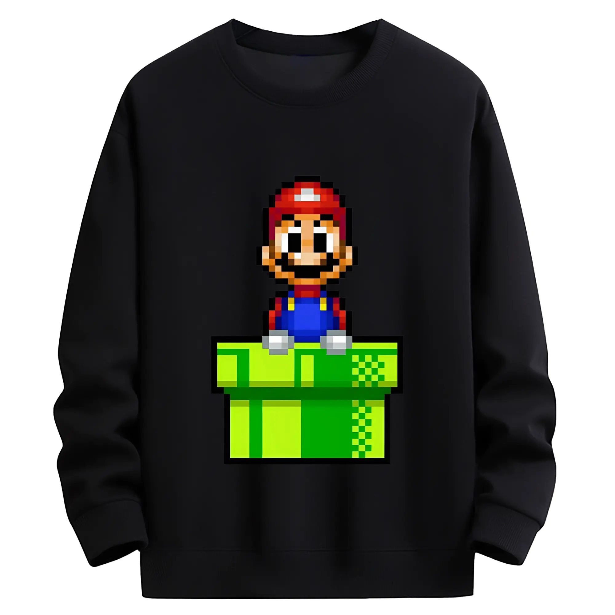 ストリートスタイル スーパーマリオ8bit - 綿100% 半袖Tシャツ ・ フロントプリント ・ 快適 通気性 ・ 日常使い 散歩 スポーツ用
