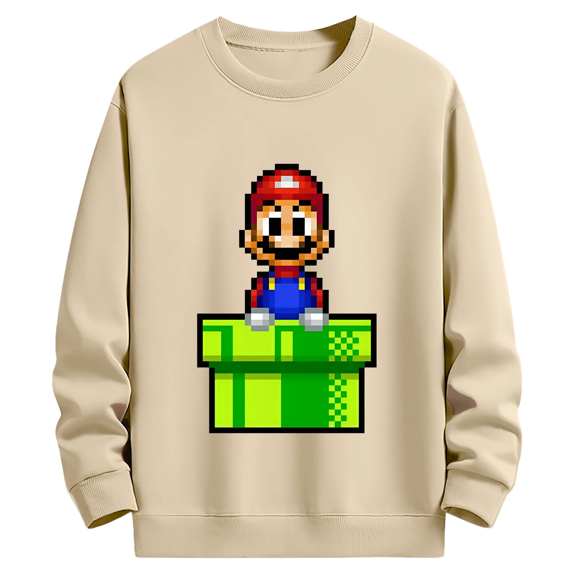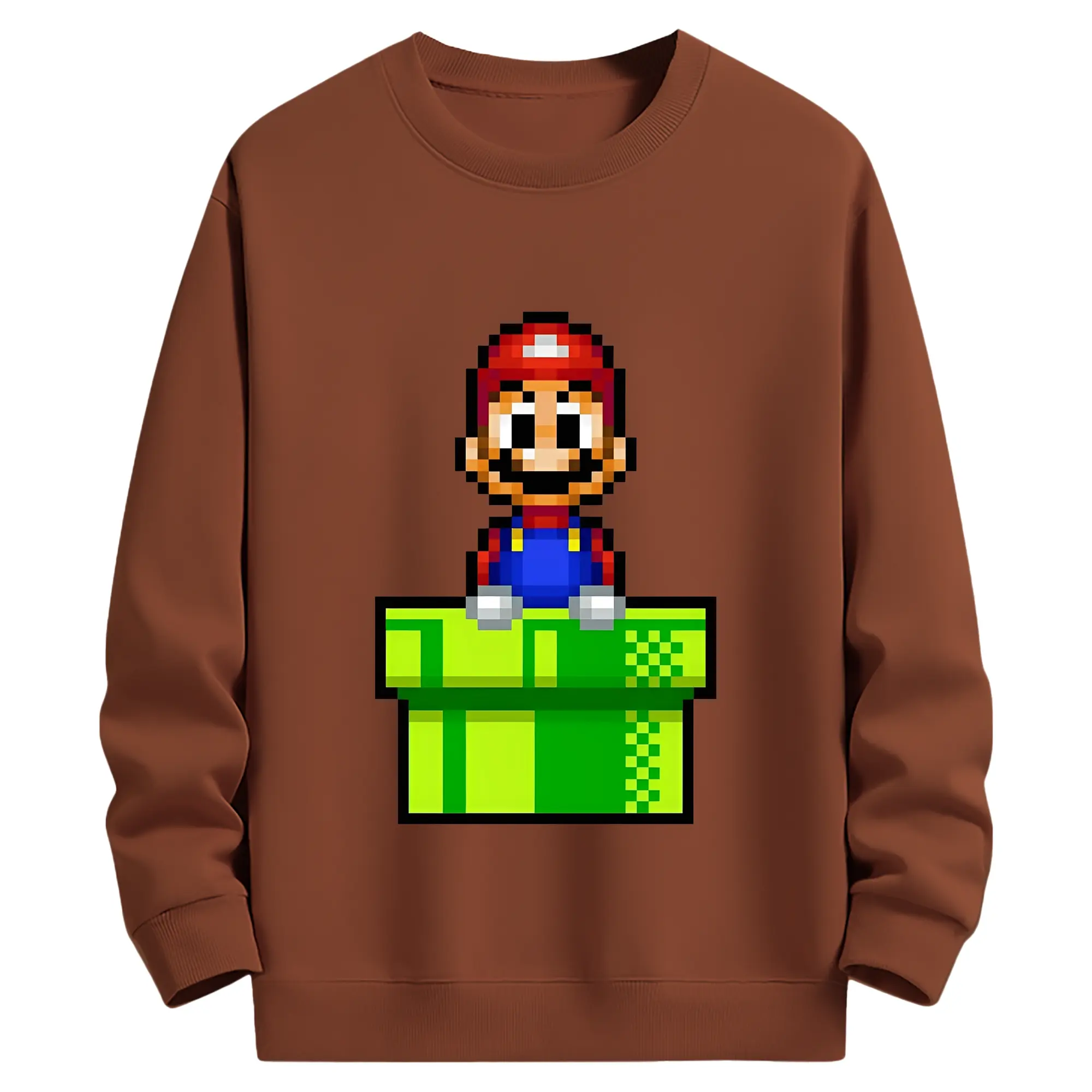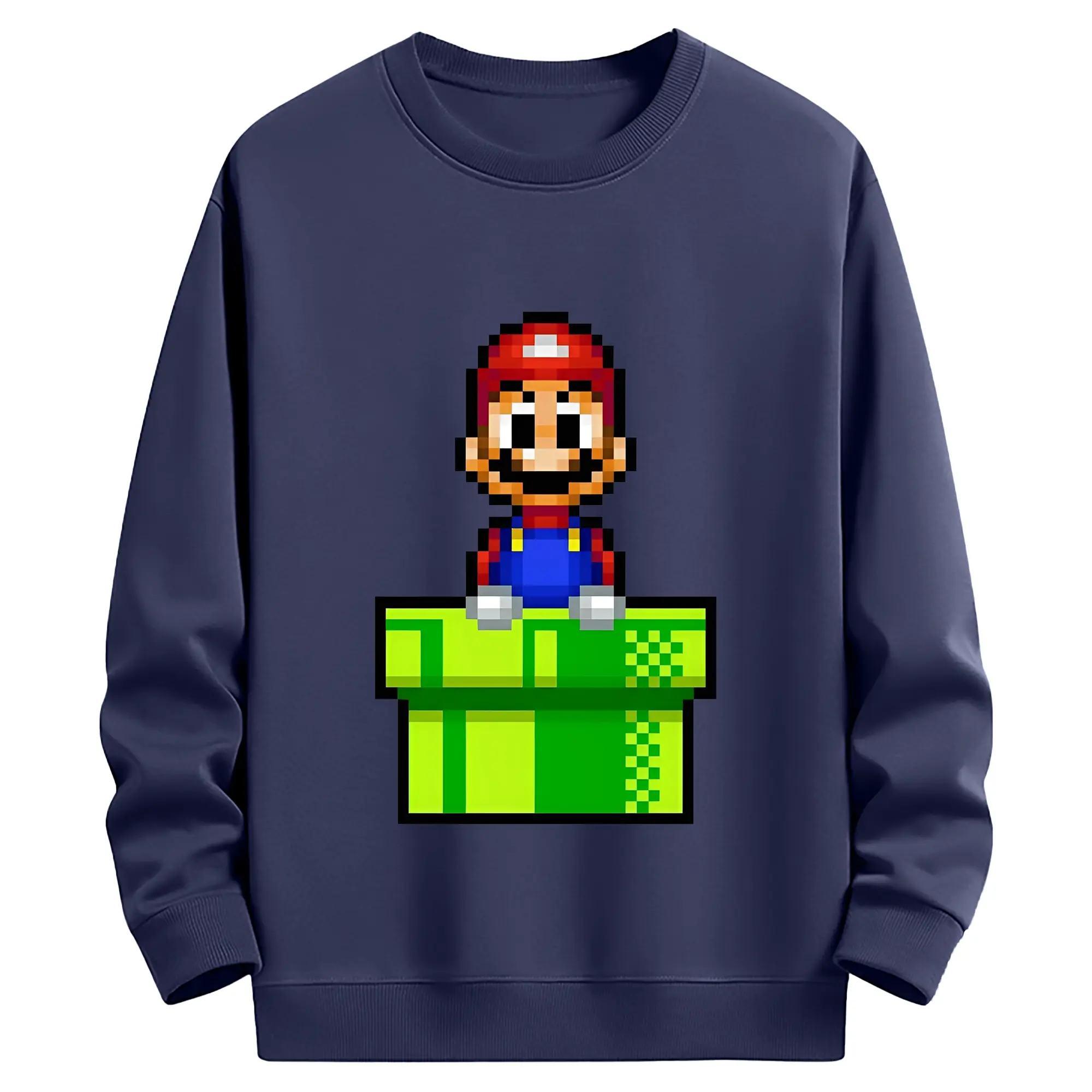 ストリートスタイル スーパーマリオ8bit - 綿100% ヴィンテージ風 半袖Tシャツ ・ フロントプリント ・ 柔らか肌触り ・ 通気性 快適 ・ スポーツ カジュアル 外出用