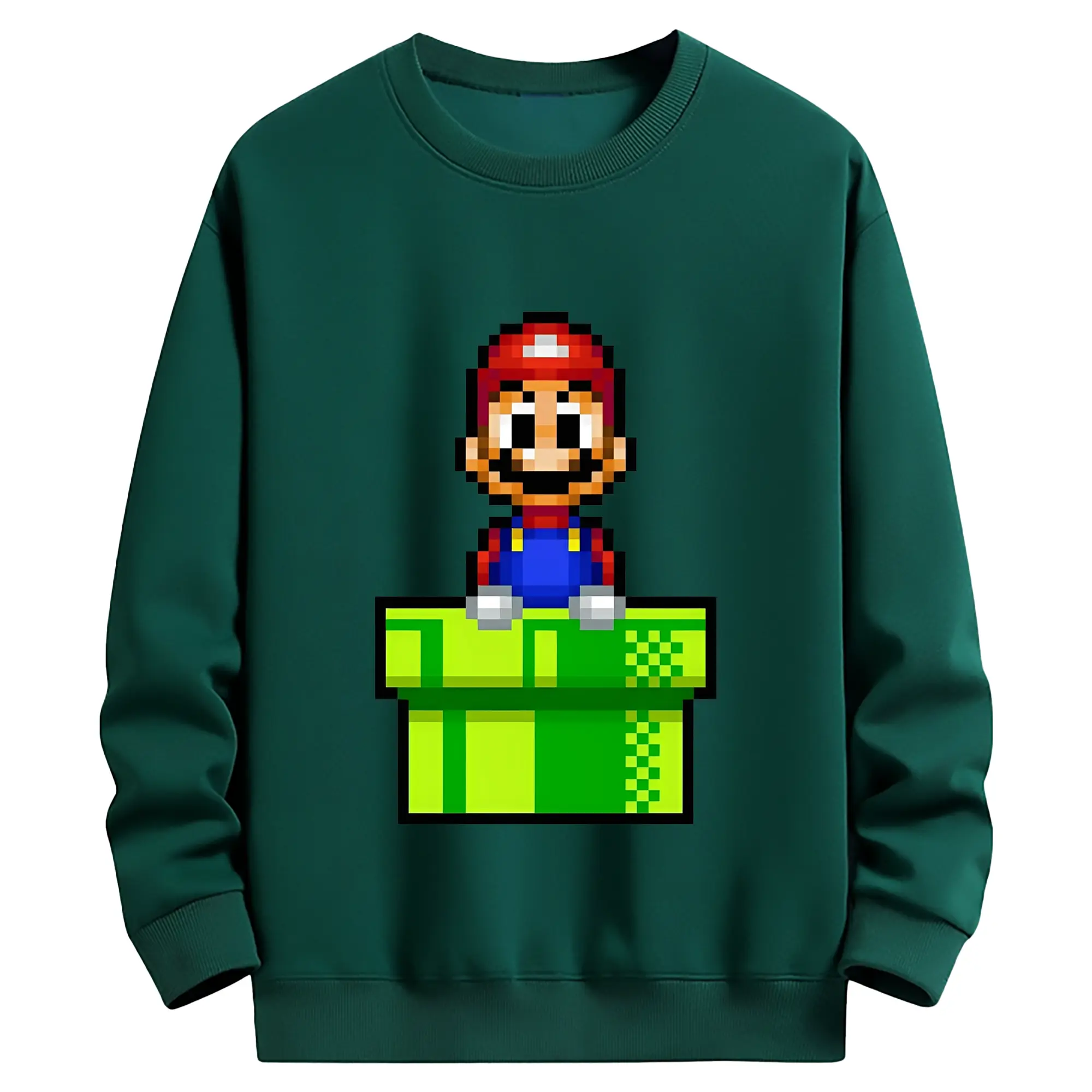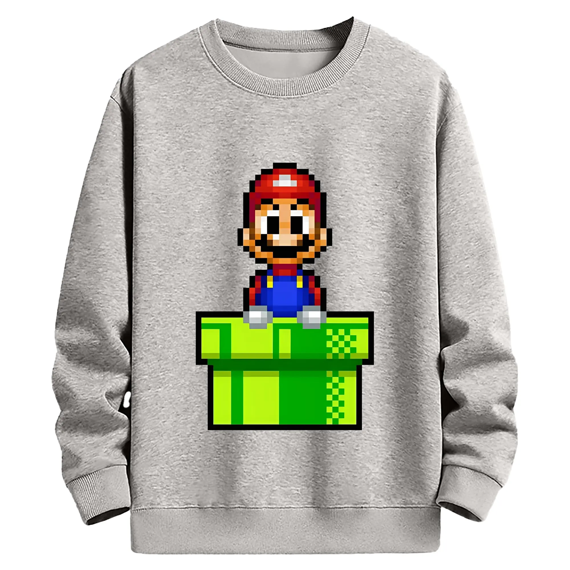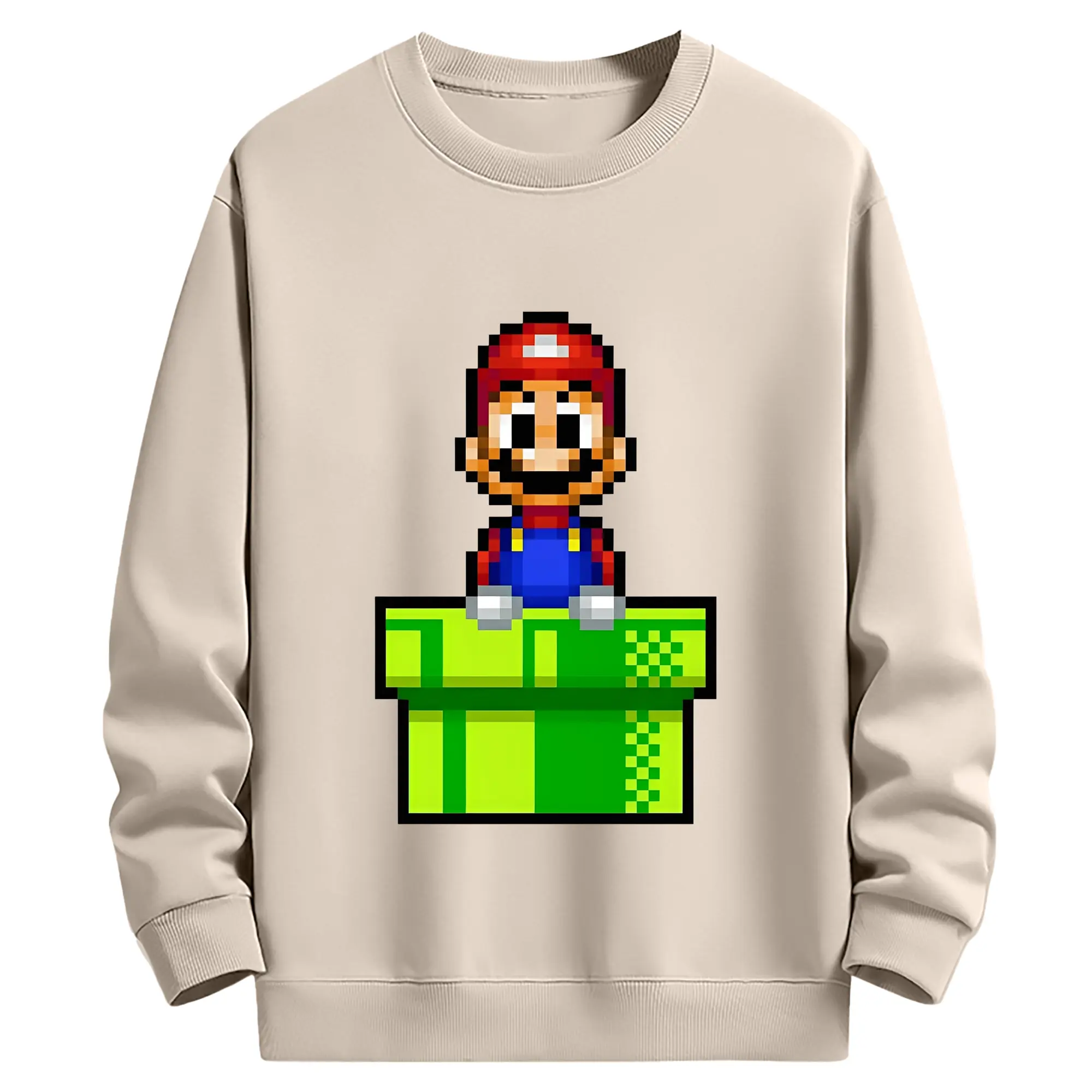 ストリートスタイル スーパーマリオ8bit - 綿100% ヴィンテージ風 半袖Tシャツ ・ フロントプリント ・ 柔らか肌触り ・ 通気性 快適 ・ スポーツ カジュアル 外出用