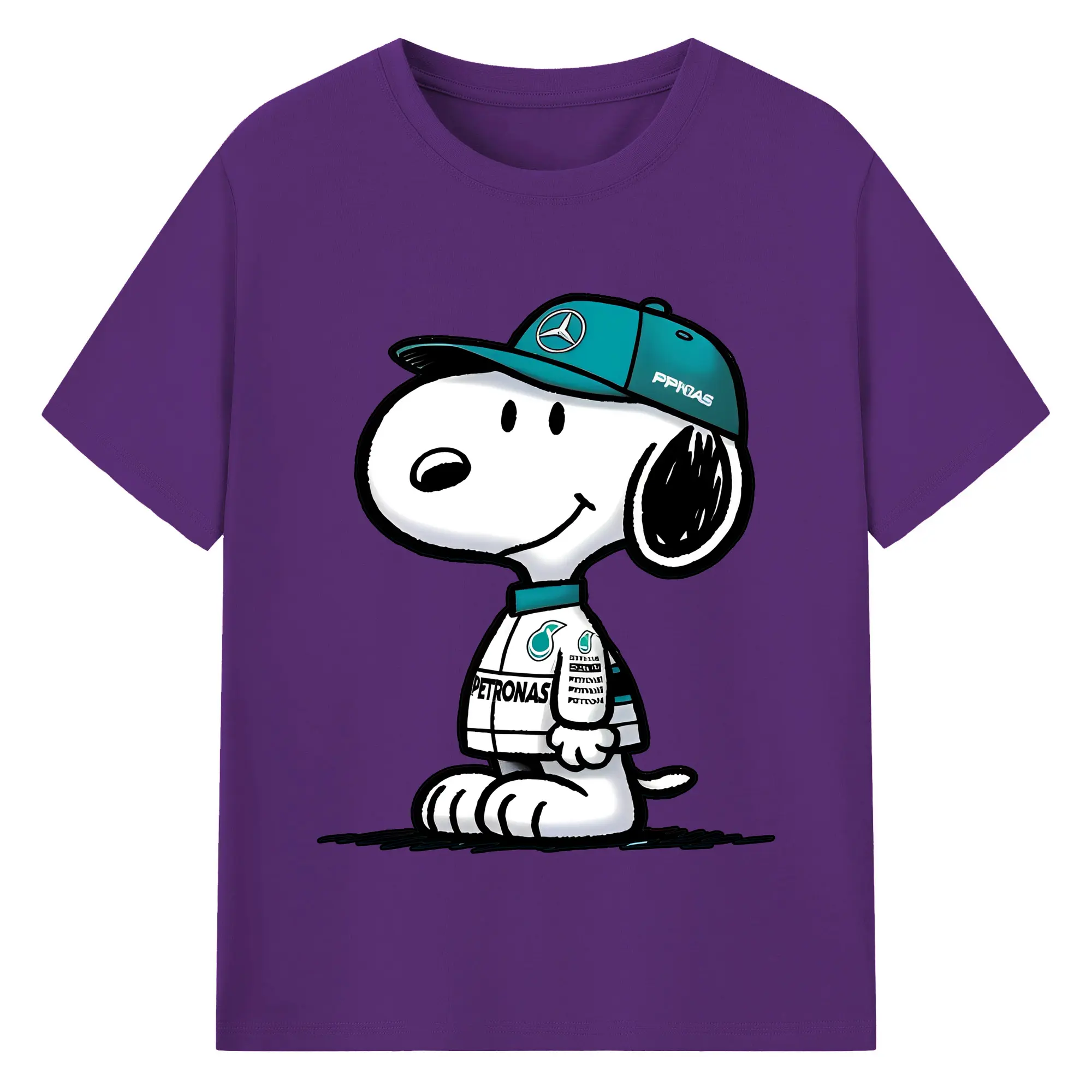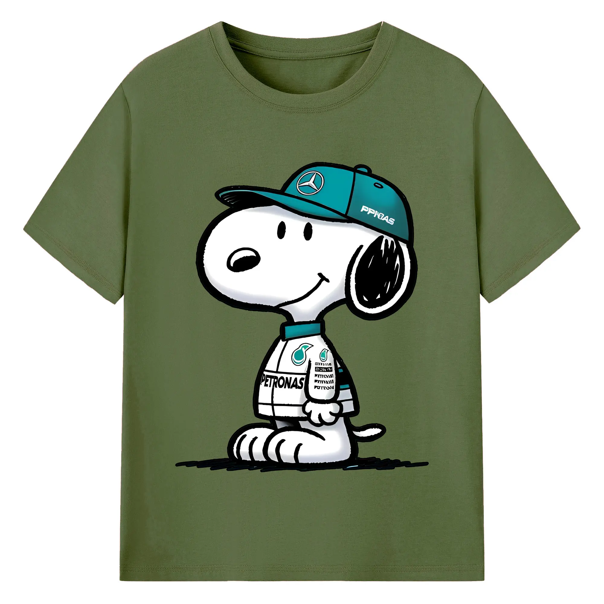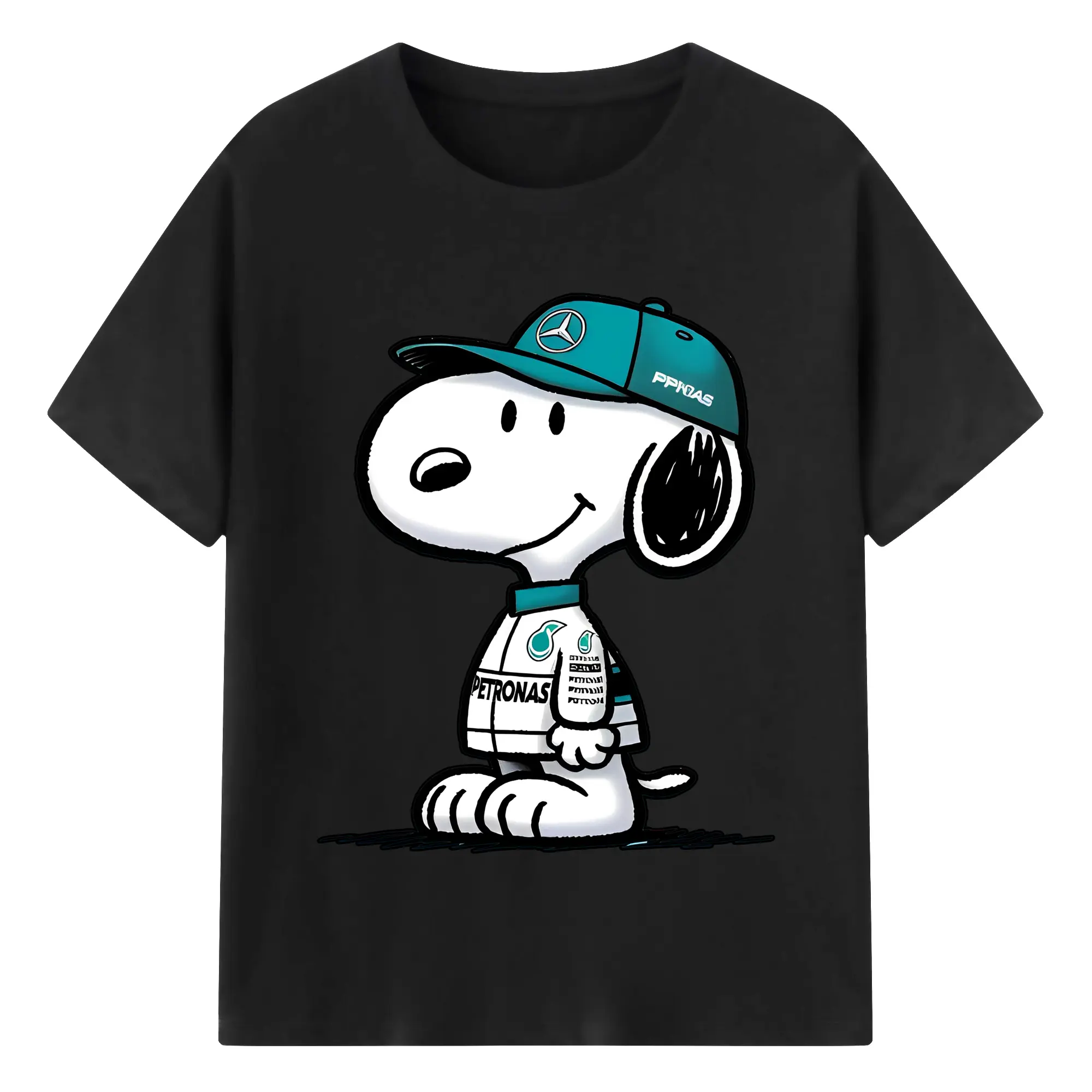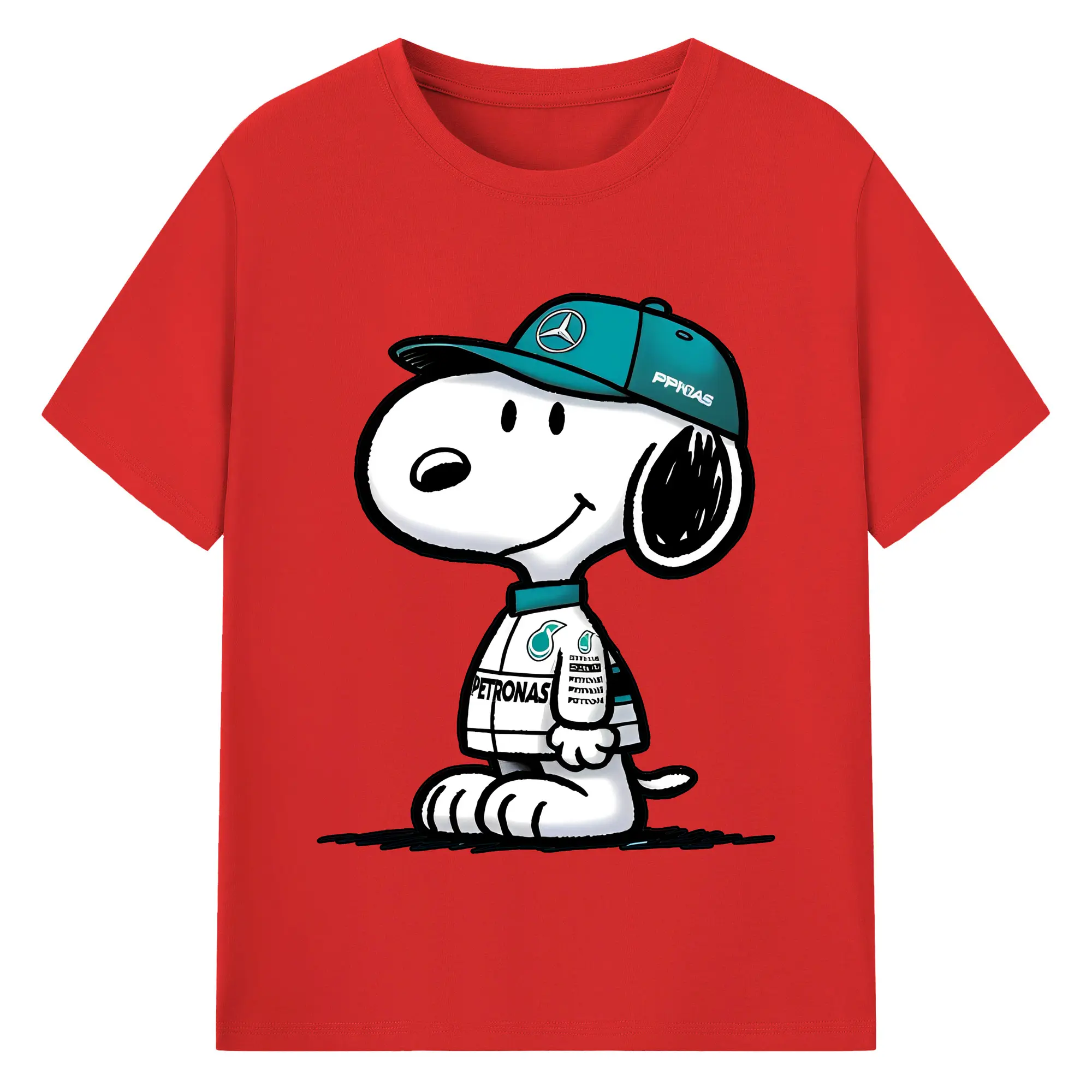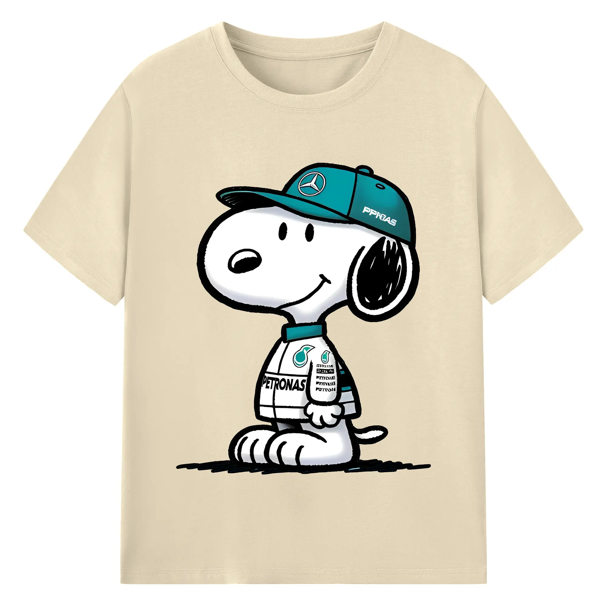 スヌーピー限定 2025メルセデスレーシング 新作 - 綿100% ヴィンテージ風 半袖Tシャツ ・ フロントプリント ・ 柔らか肌触り ・ 通気性 快適 ・ スポーツ カジュアル 外出用
