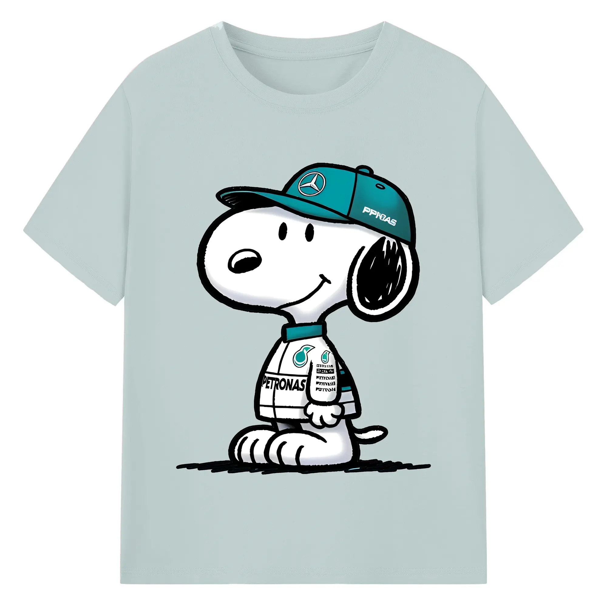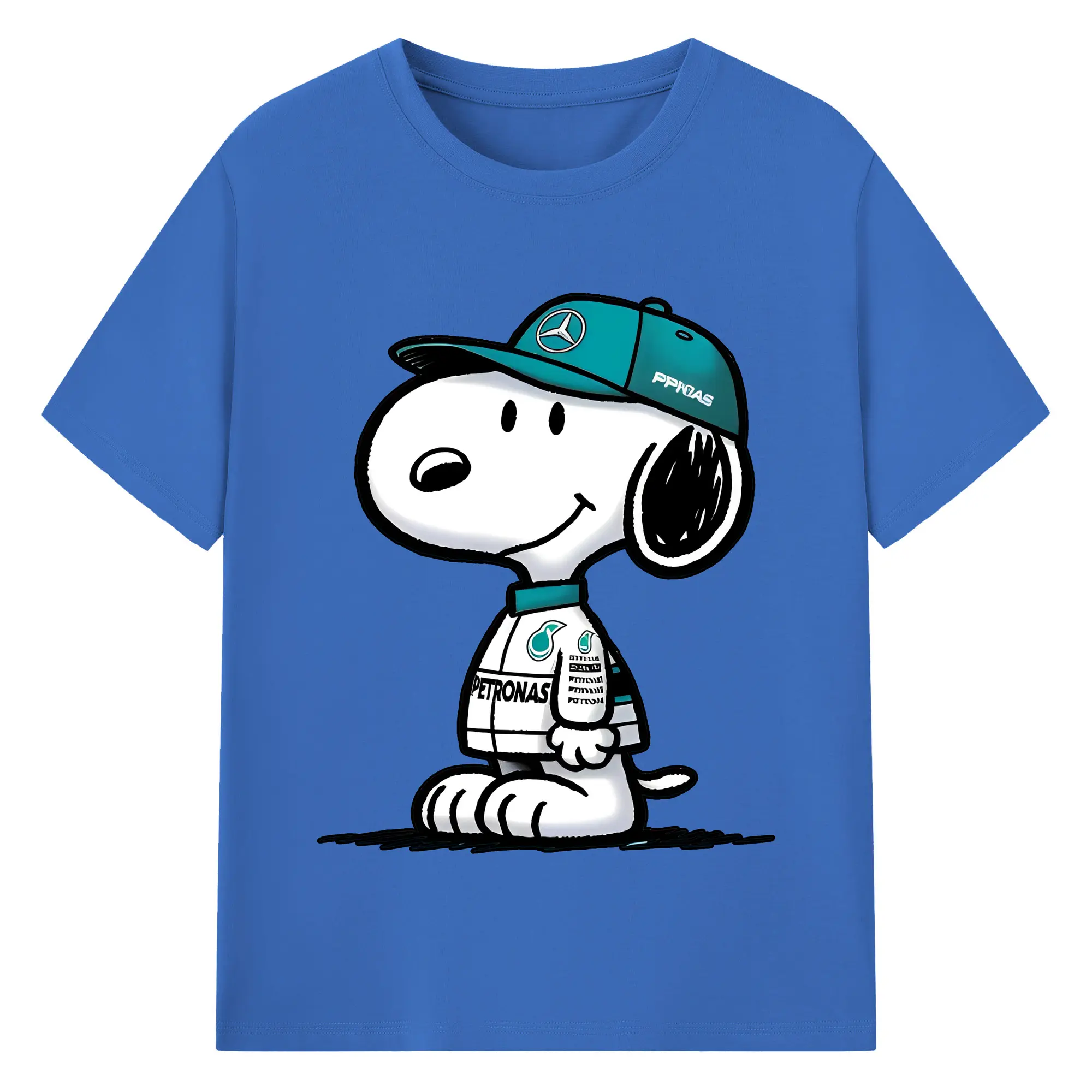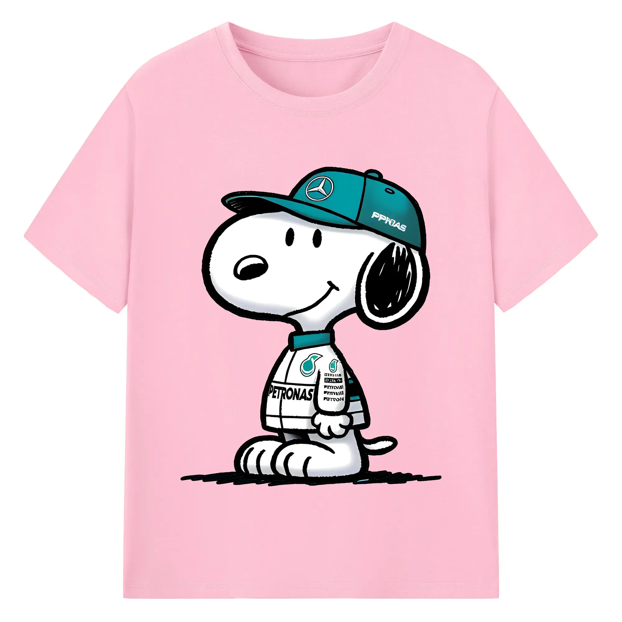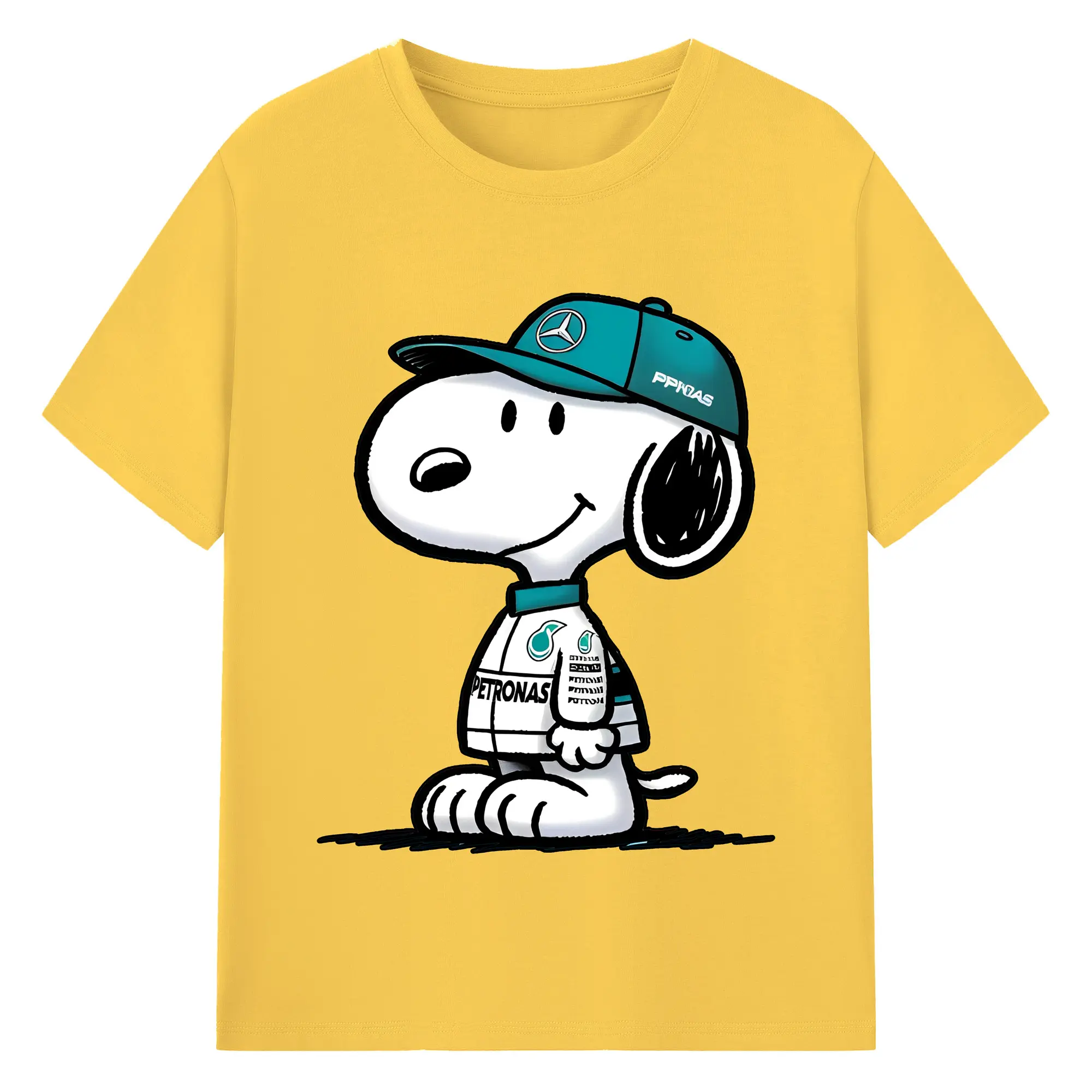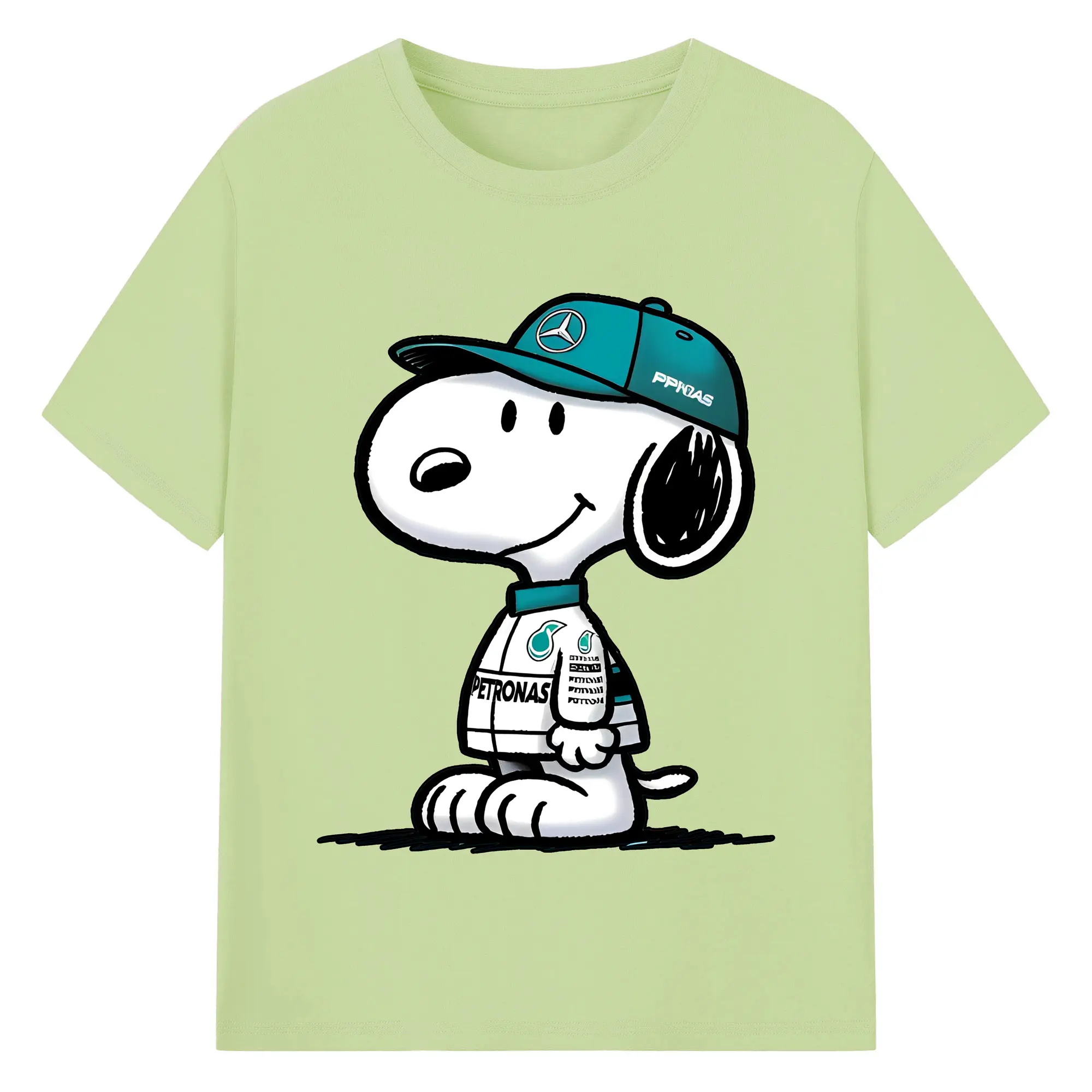 スヌーピー限定 2025メルセデスレーシング 新作 - 綿100% ヴィンテージ風 半袖Tシャツ ・ フロントプリント ・ 柔らか肌触り ・ 通気性 快適 ・ スポーツ カジュアル 外出用