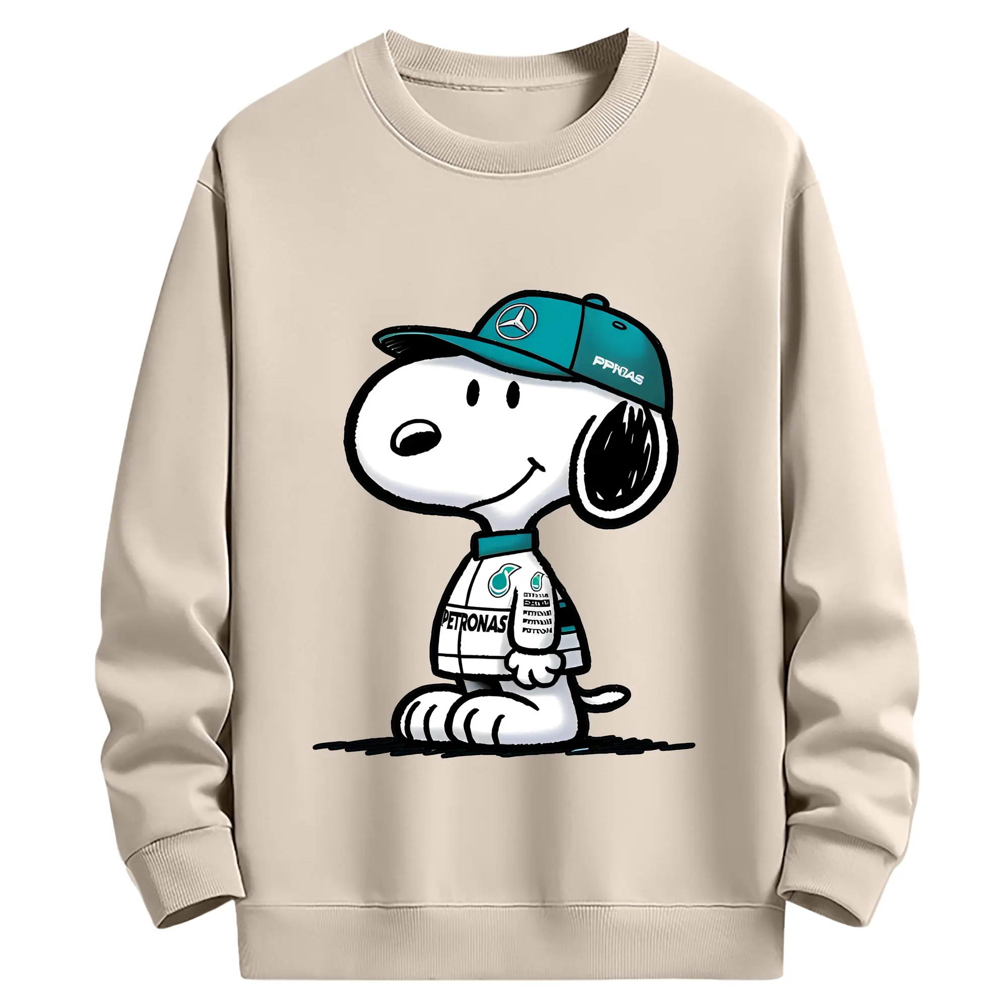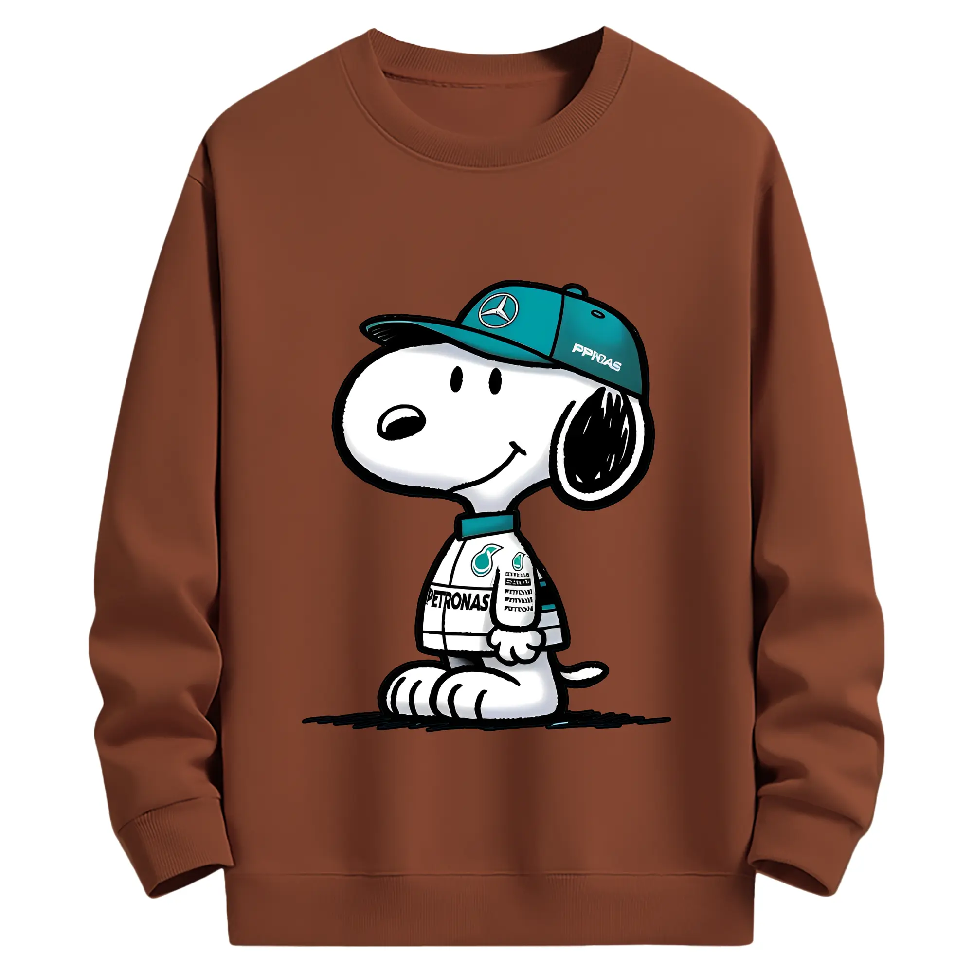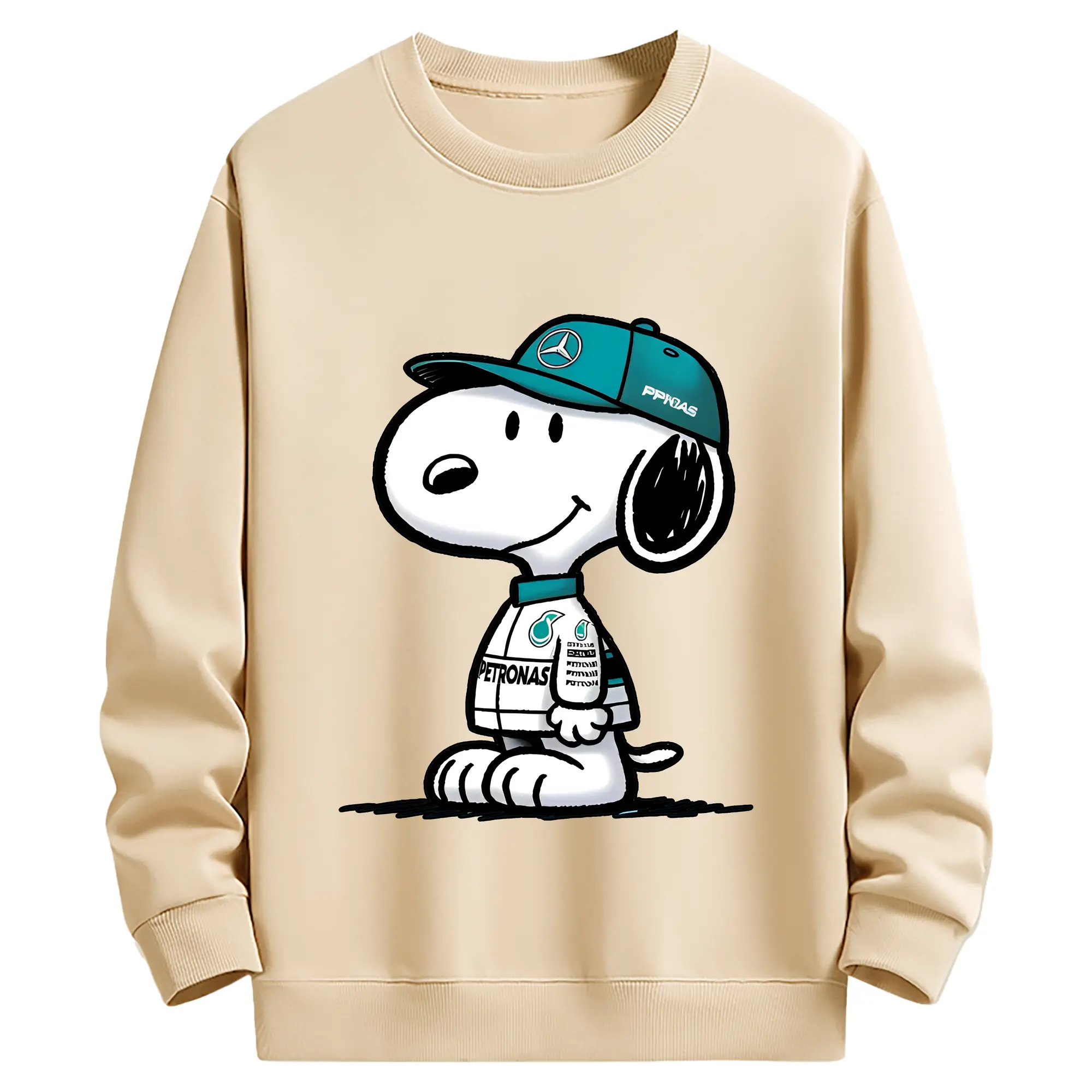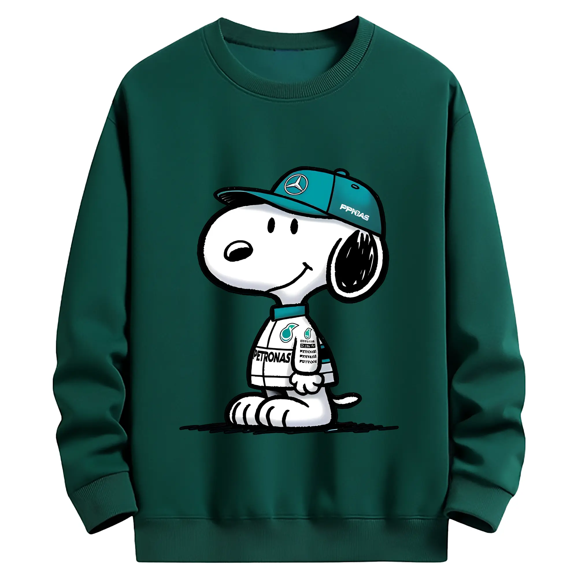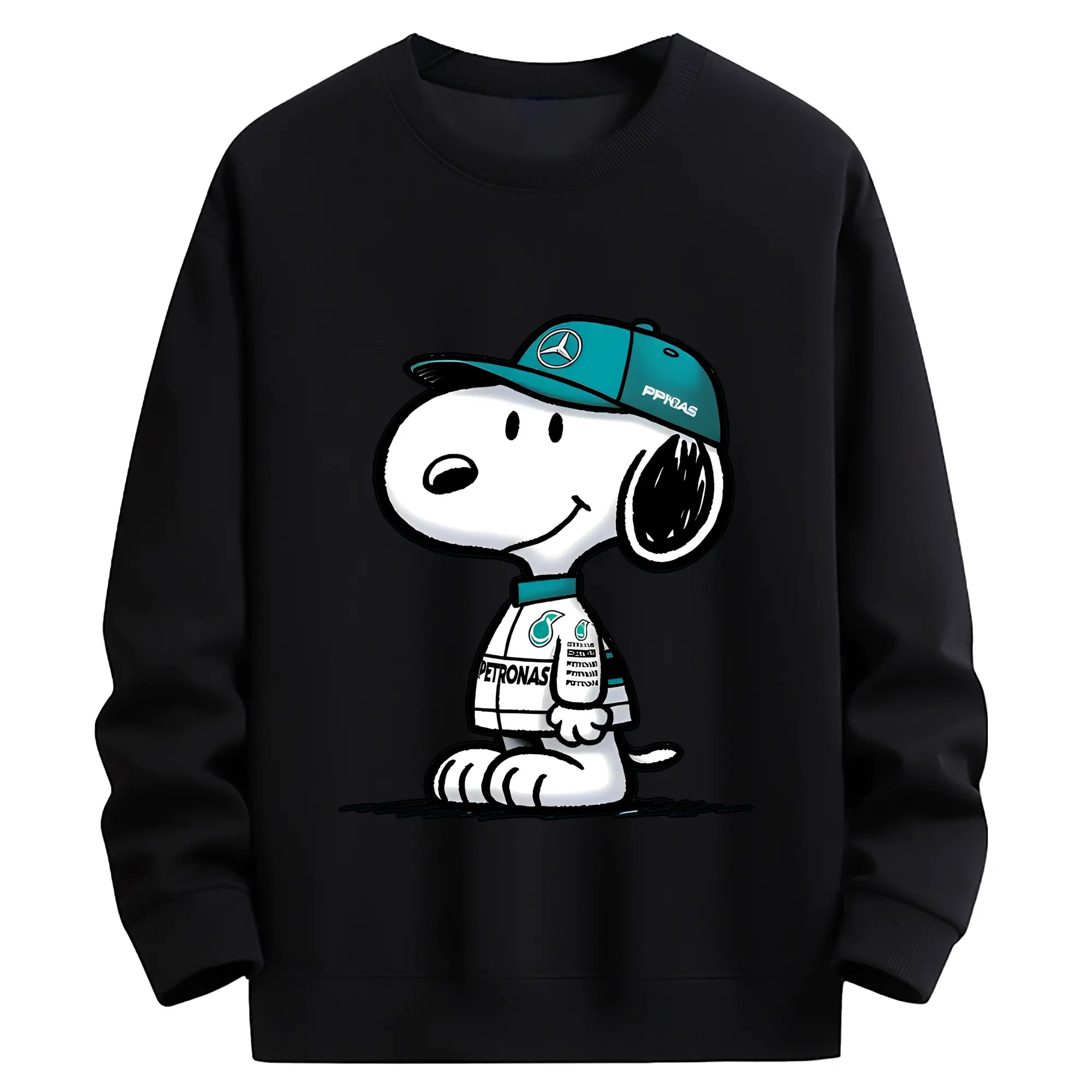 スヌーピー限定 2025メルセデスレーシング 新作 - 綿100% 半袖Tシャツ ・ フロントプリント ・ 快適 通気性 ・ 日常使い 散歩 スポーツ用