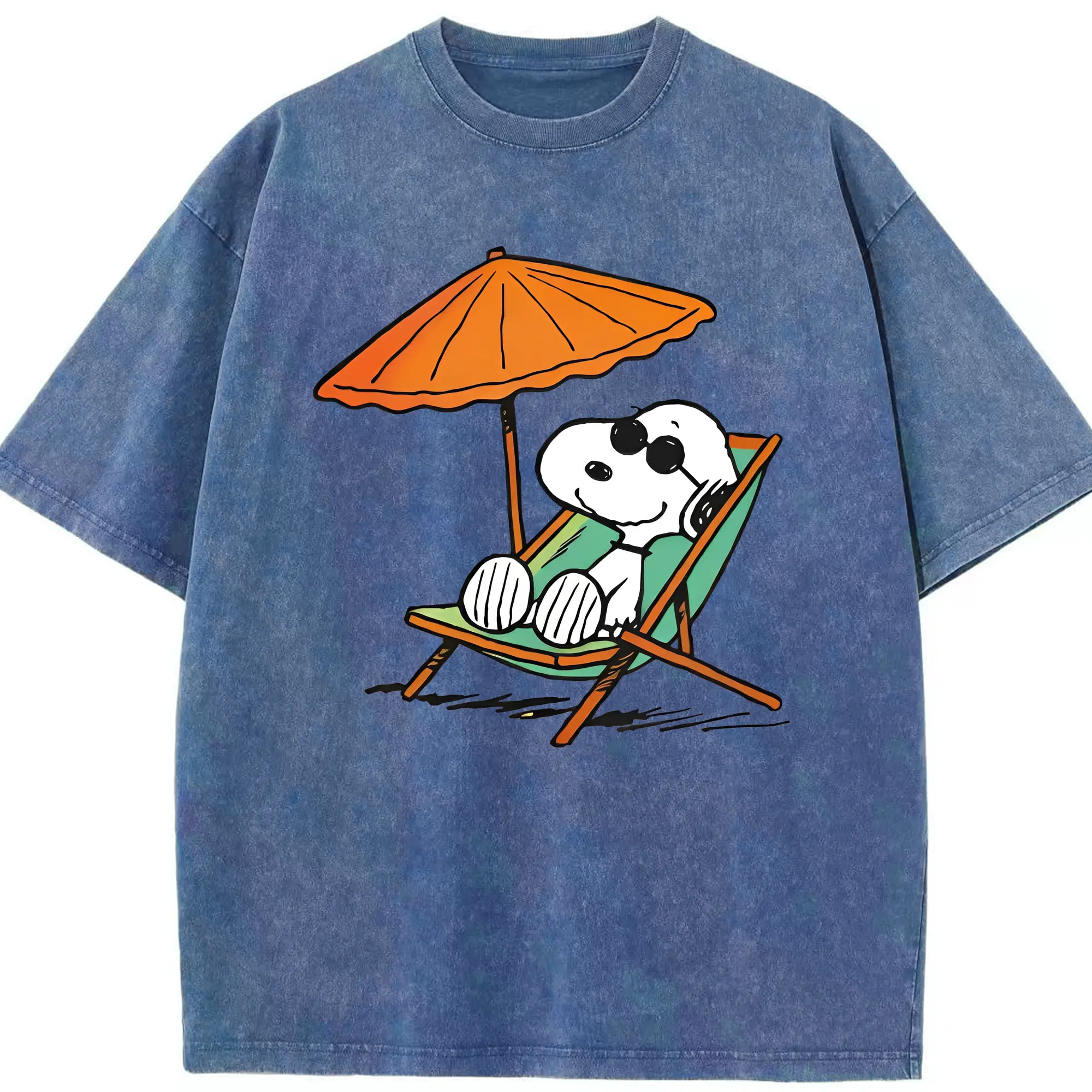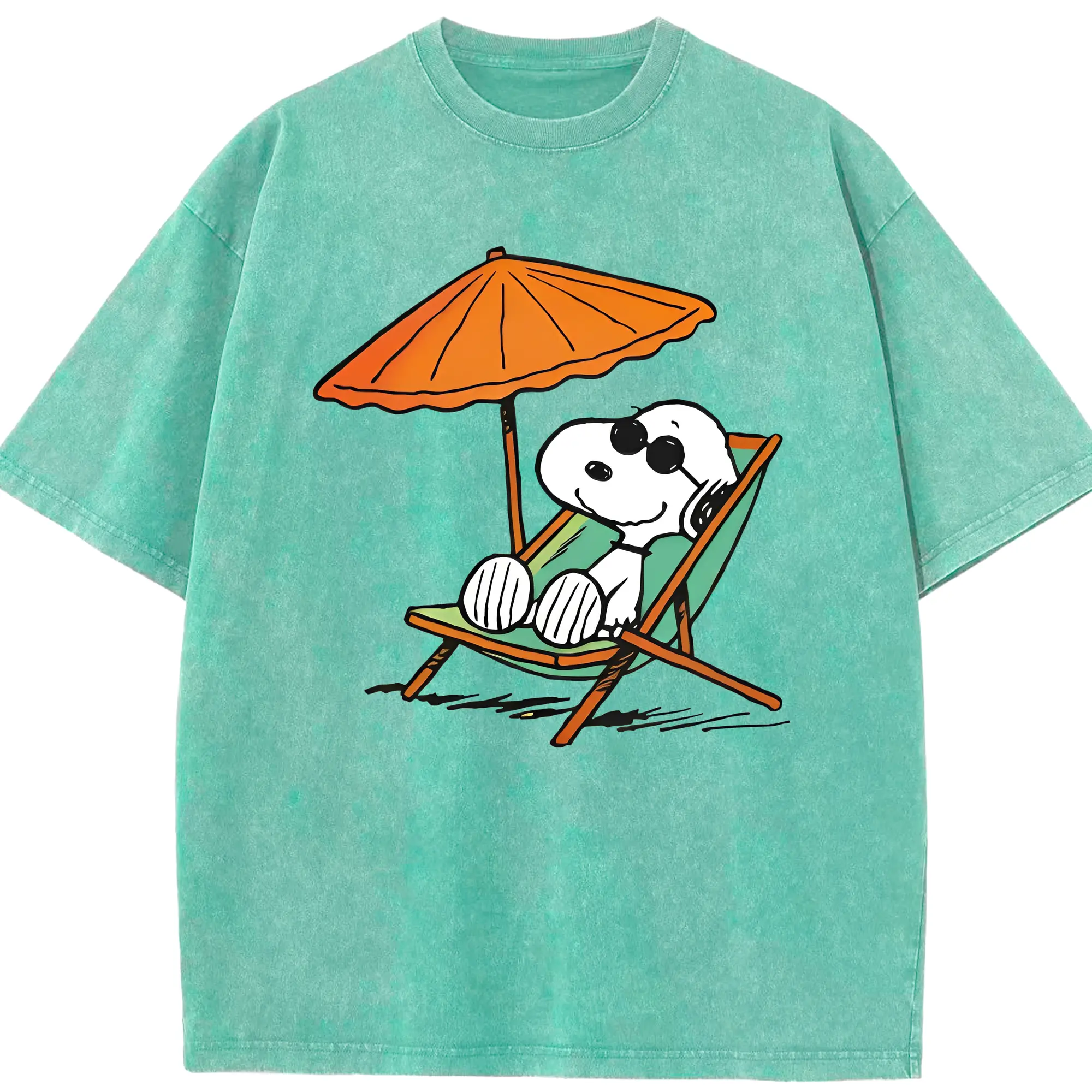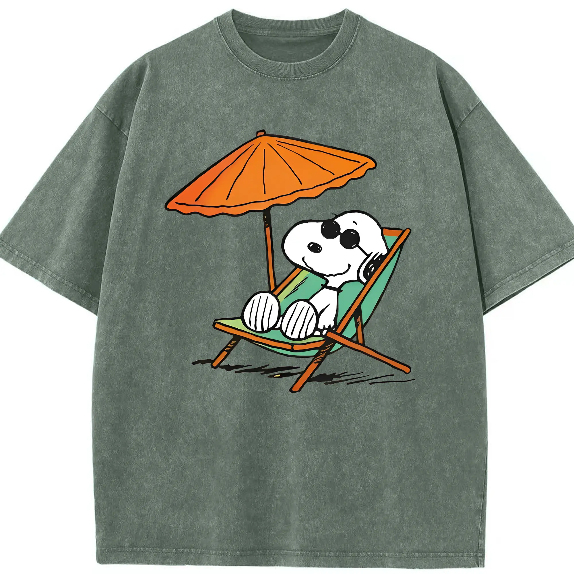スヌーピー サマースローライフ - 綿100% 半袖Tシャツ ・ フロントプリント ・ 快適 通気性 ・ 日常使い 散歩 スポーツ用
