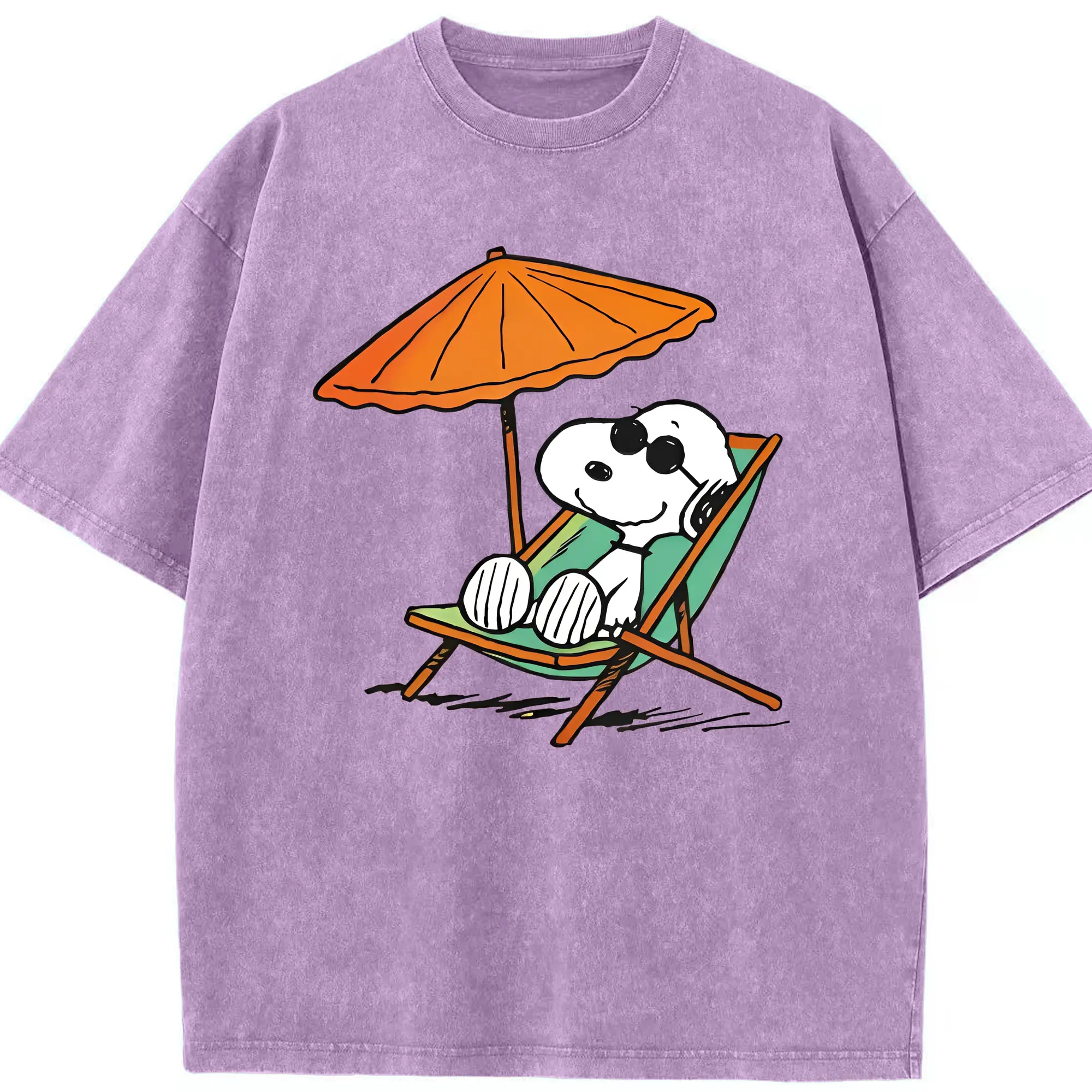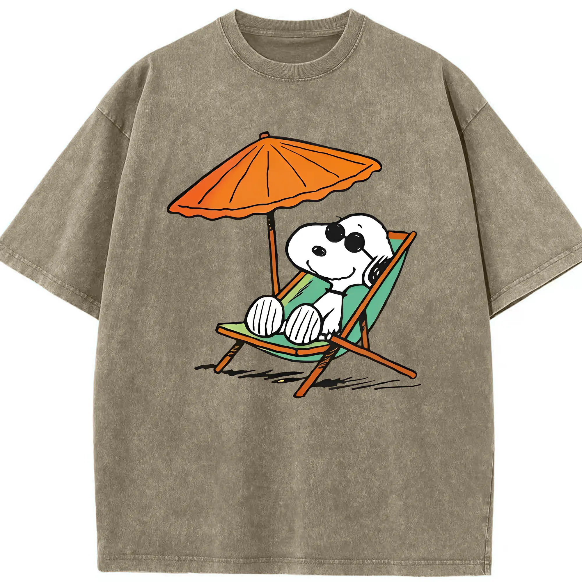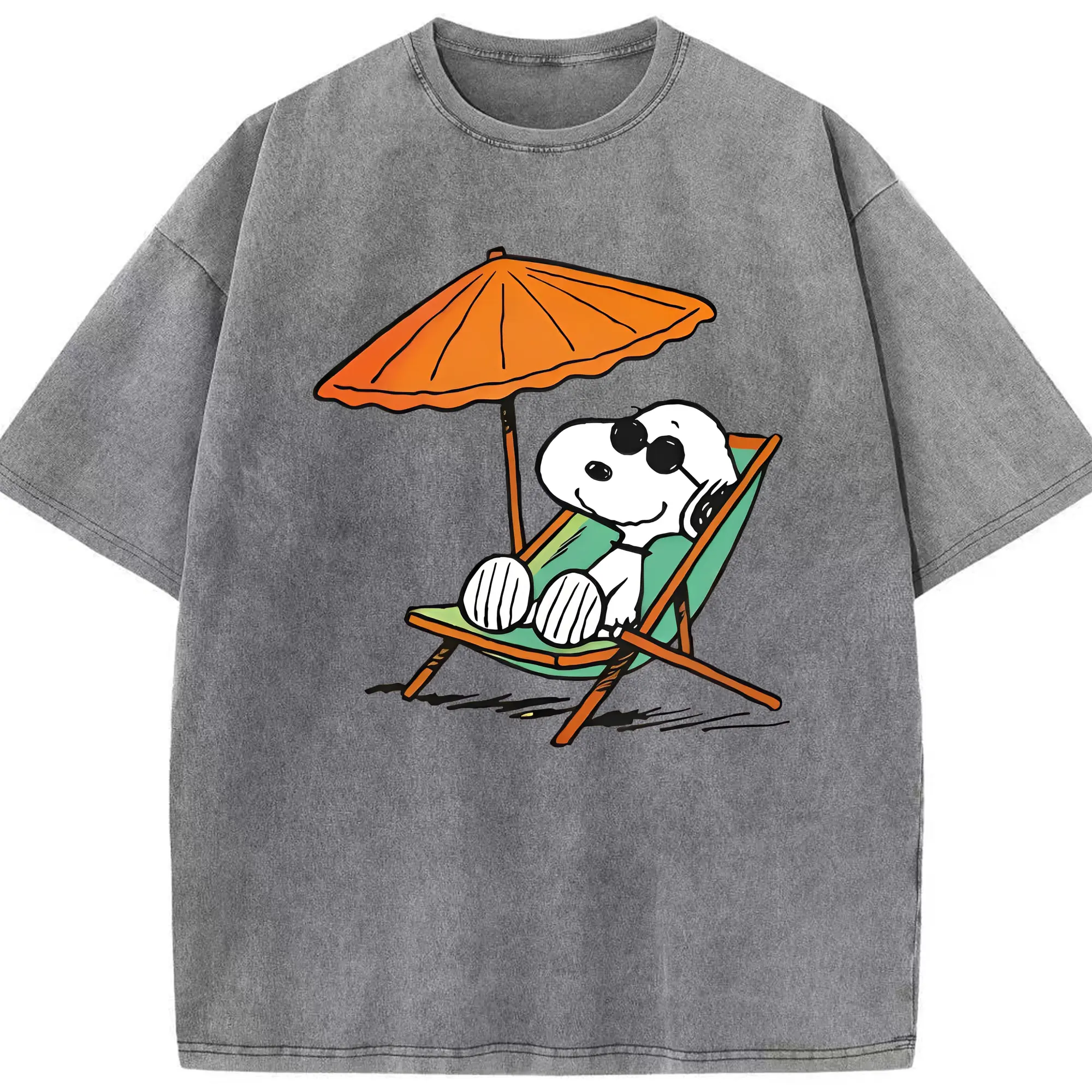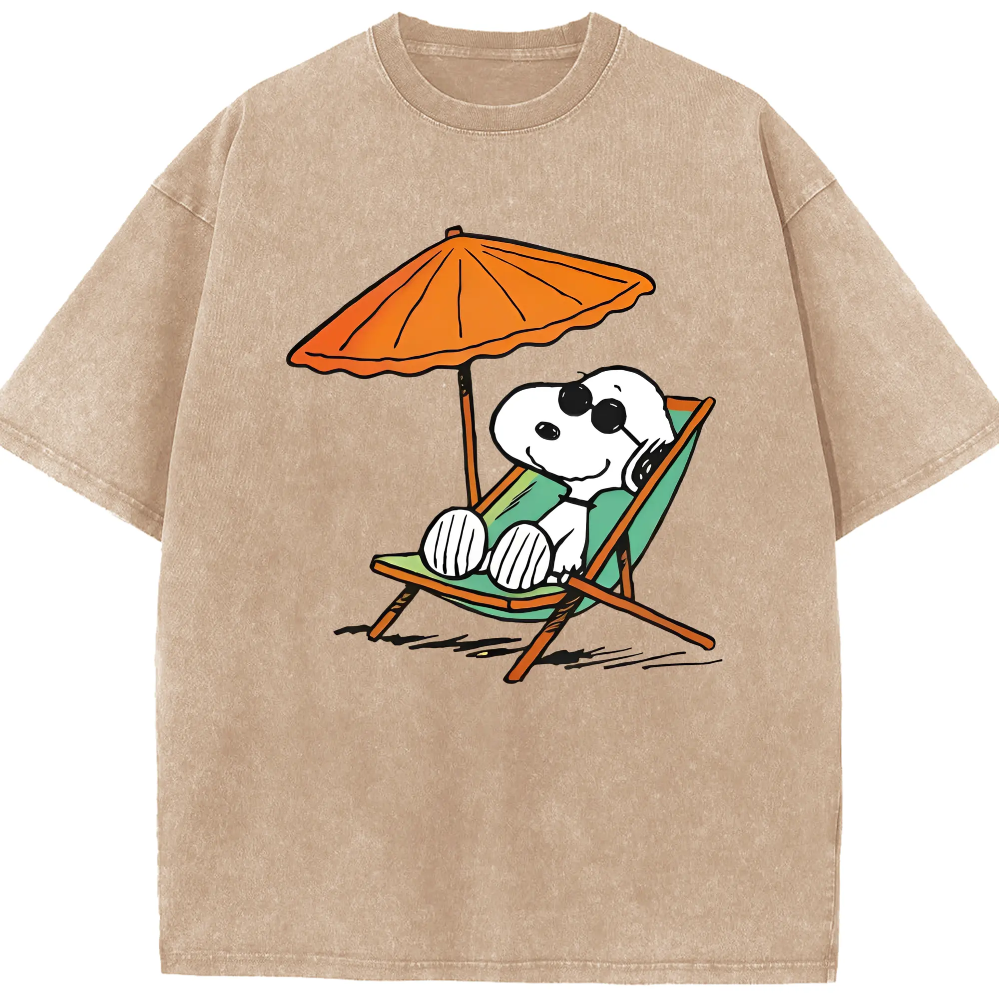 スヌーピー サマースローライフ - 綿100% 半袖Tシャツ ・ フロントプリント ・ 快適 通気性 ・ 日常使い 散歩 スポーツ用