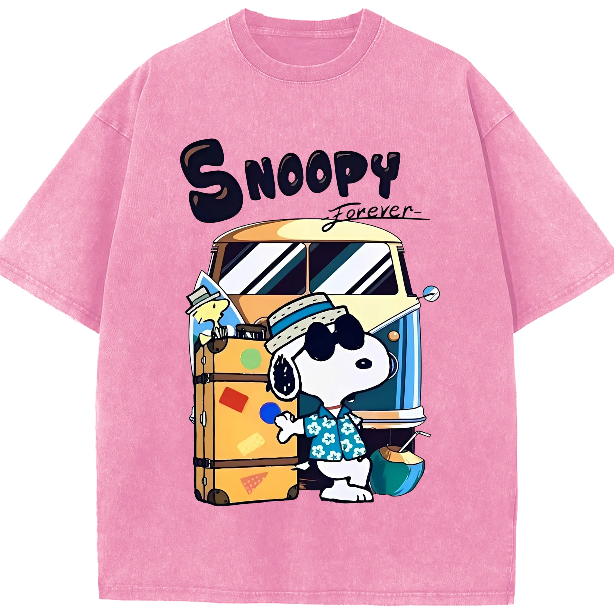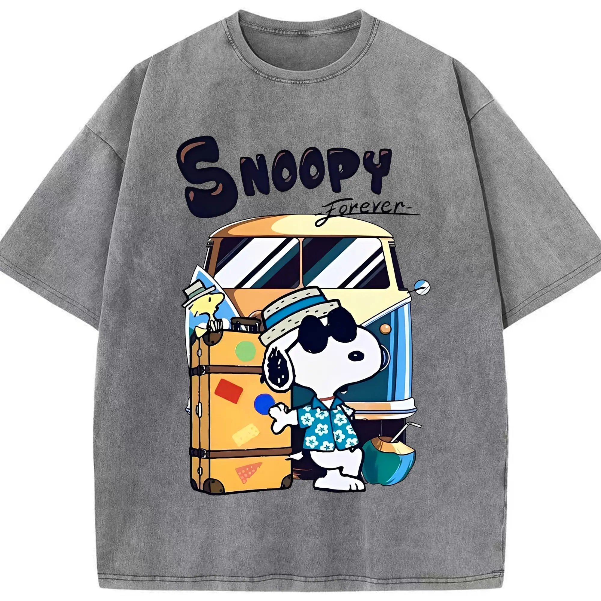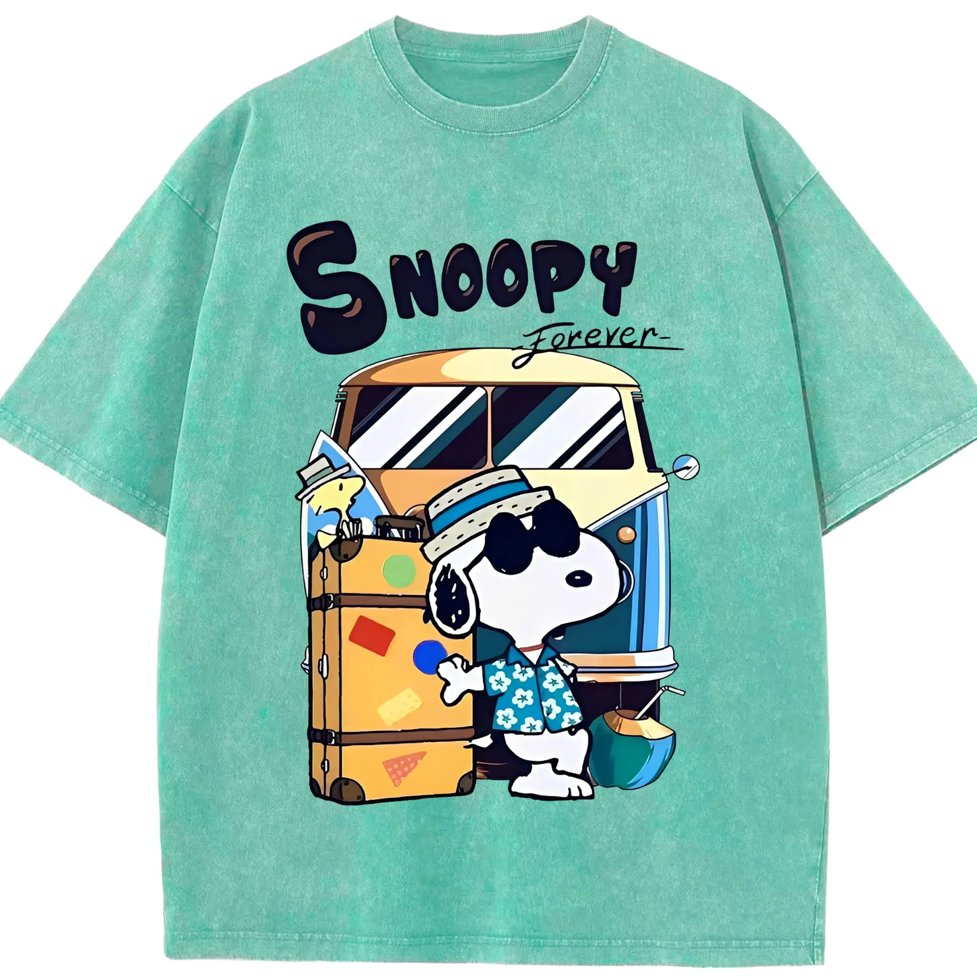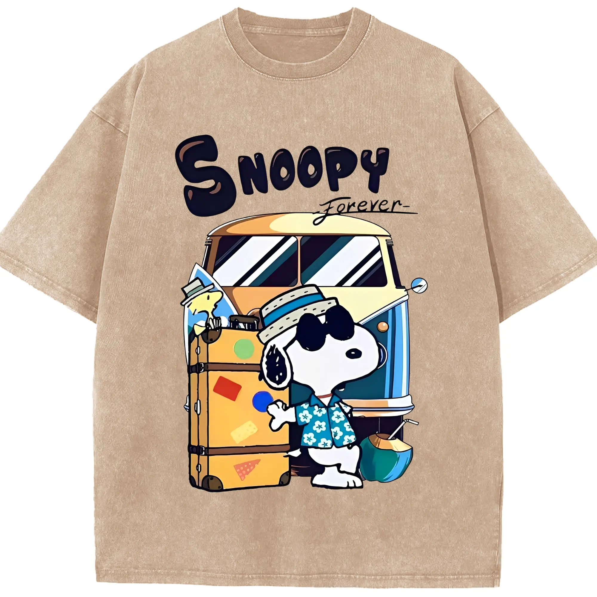 スヌーピー 夏の旅行のんびり - 綿100% 半袖Tシャツ ・ フロントプリント ・ 快適 通気性 ・ 日常使い 散歩 スポーツ用