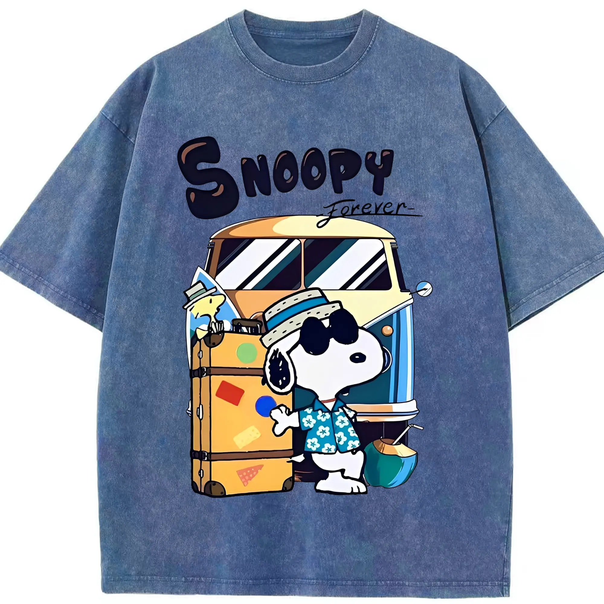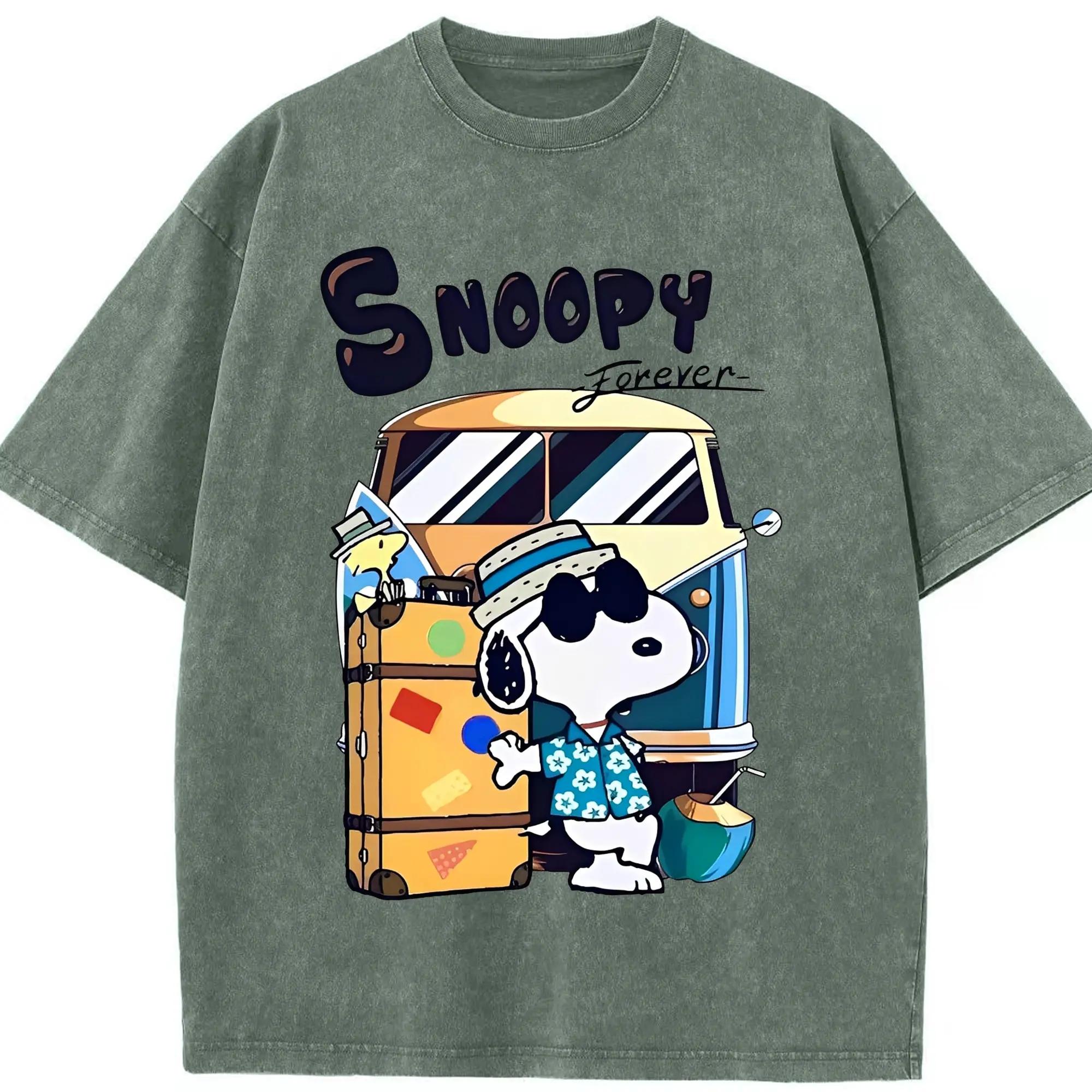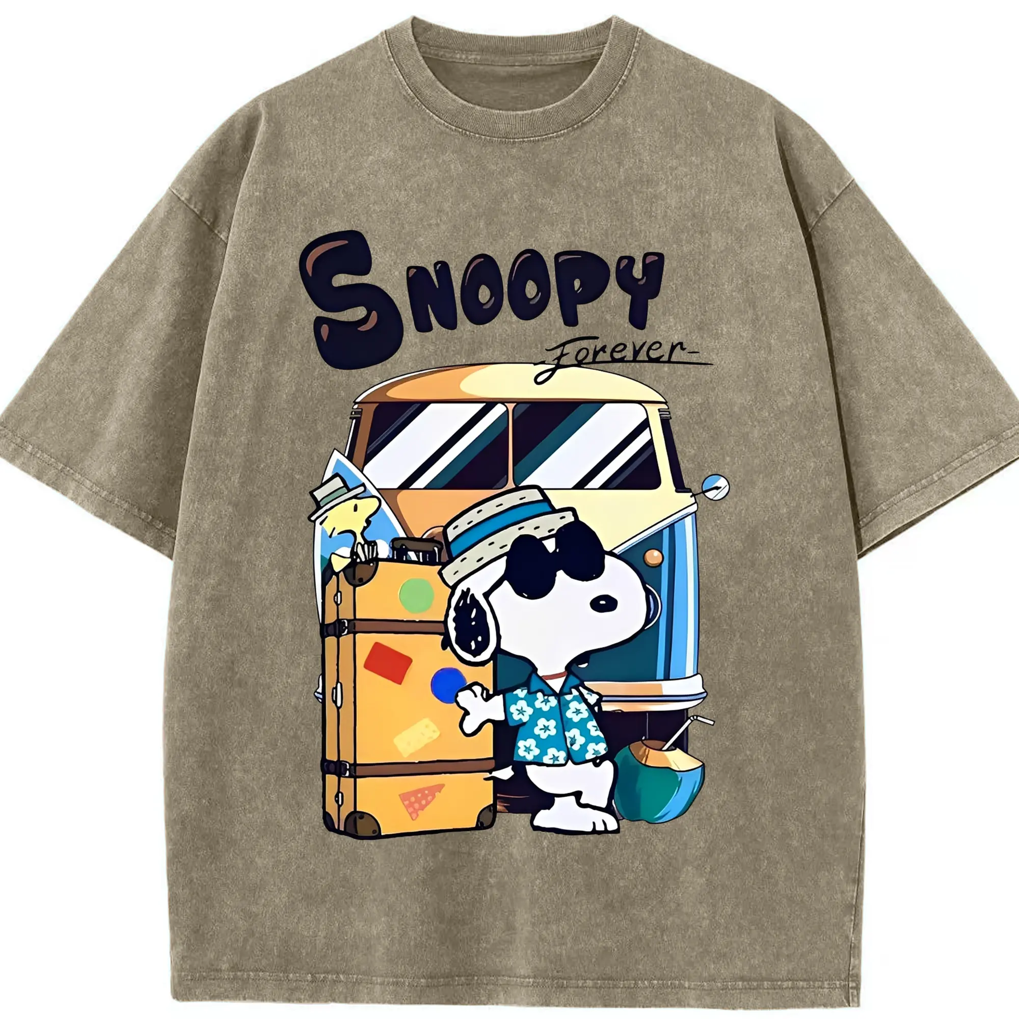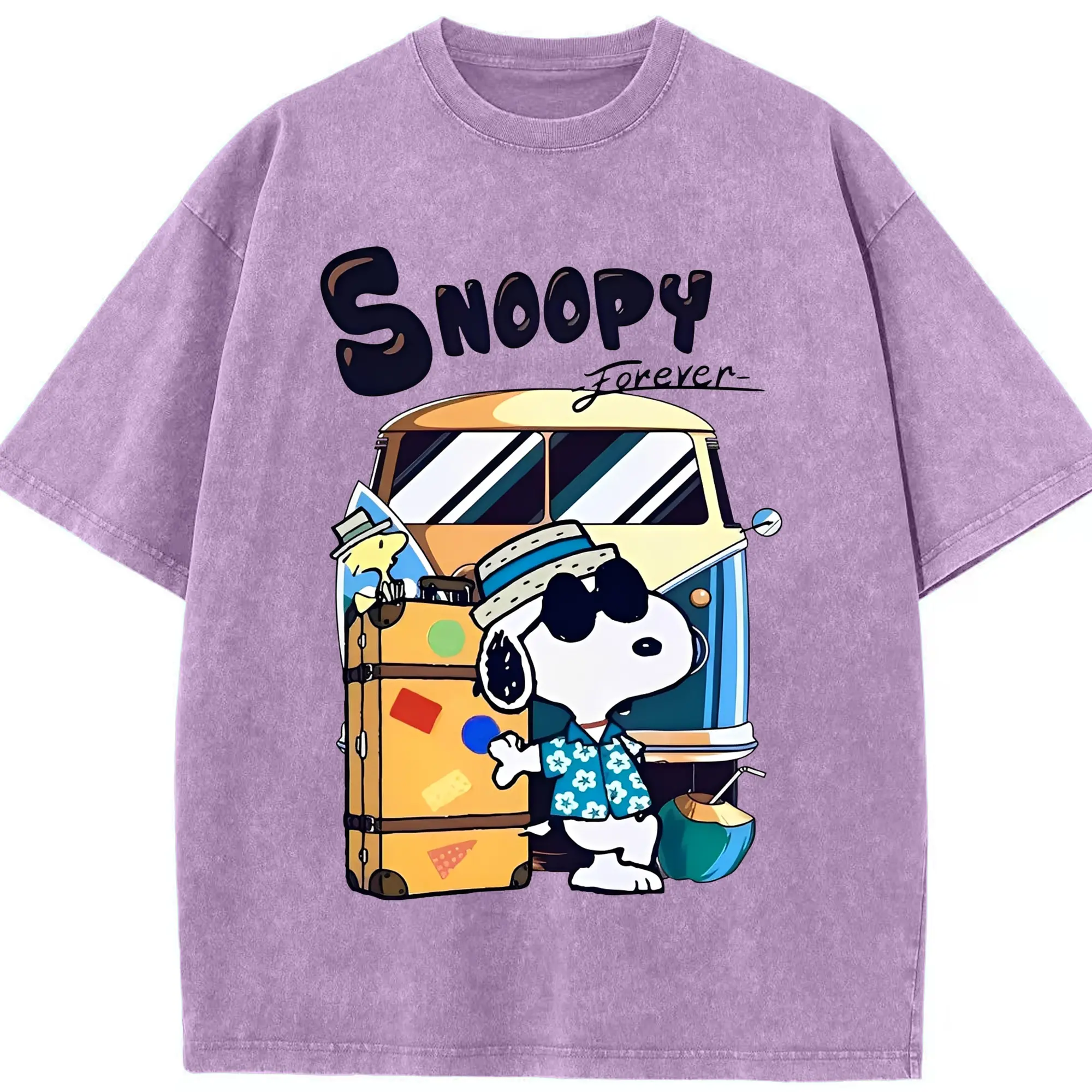 スヌーピー 夏の旅行のんびり - 綿100% 半袖Tシャツ ・ フロントプリント ・ 快適 通気性 ・ 日常使い 散歩 スポーツ用