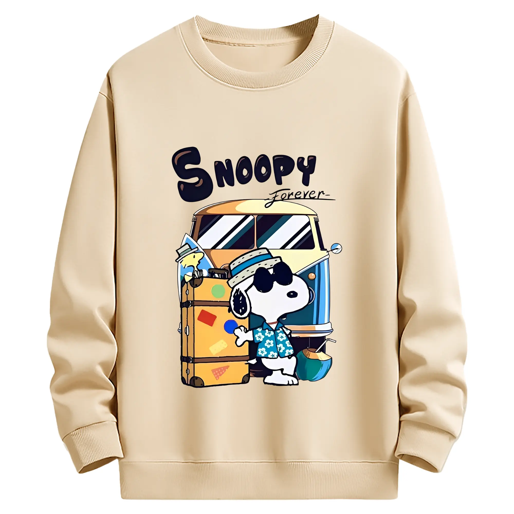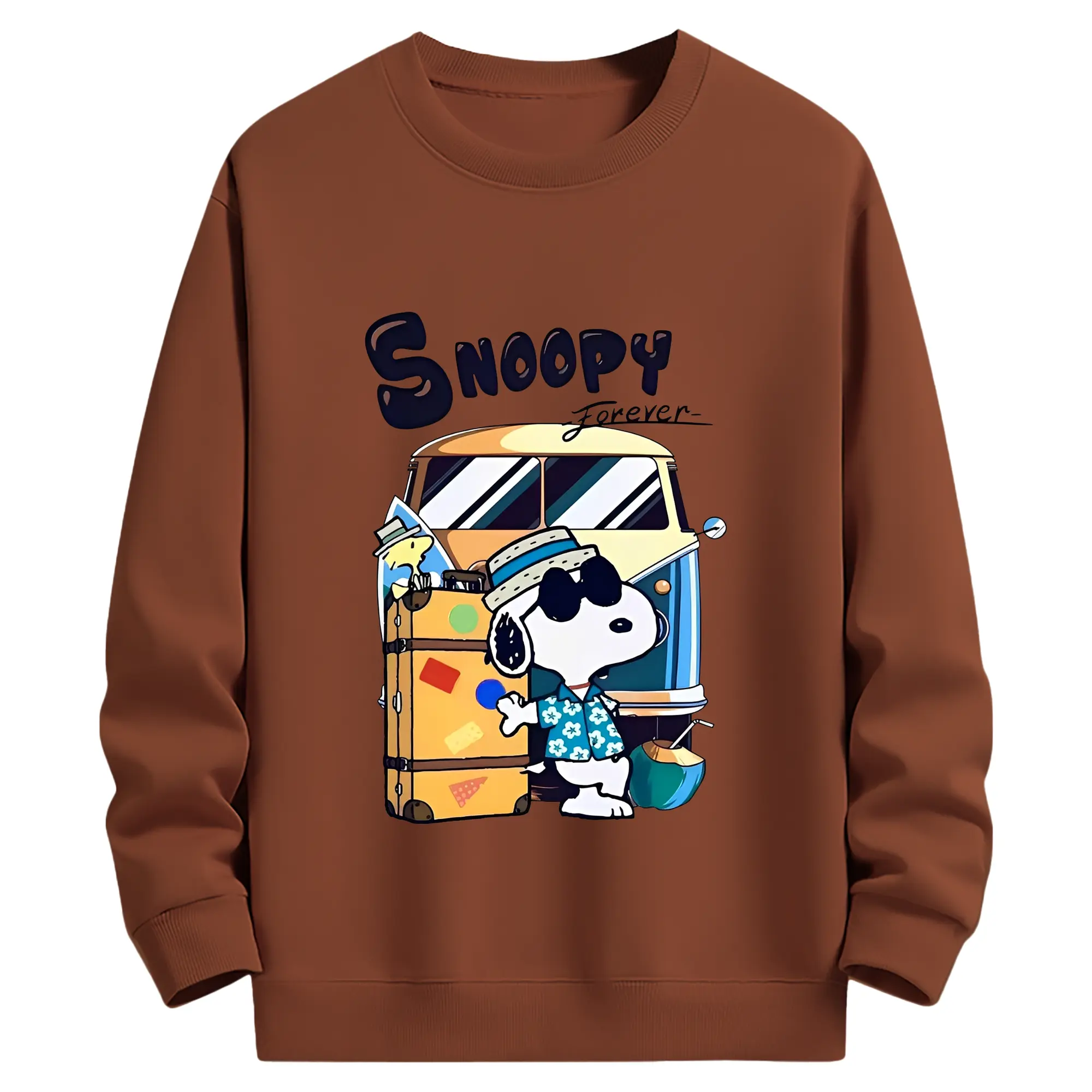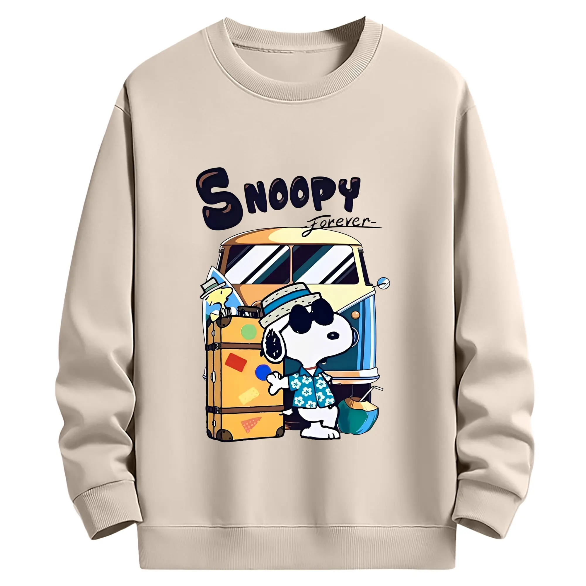 スヌーピー 夏の旅行のんびり - 綿100% ヴィンテージ風 半袖Tシャツ ・ フロントプリント ・ 柔らか肌触り ・ 通気性 快適 ・ スポーツ カジュアル 外出用