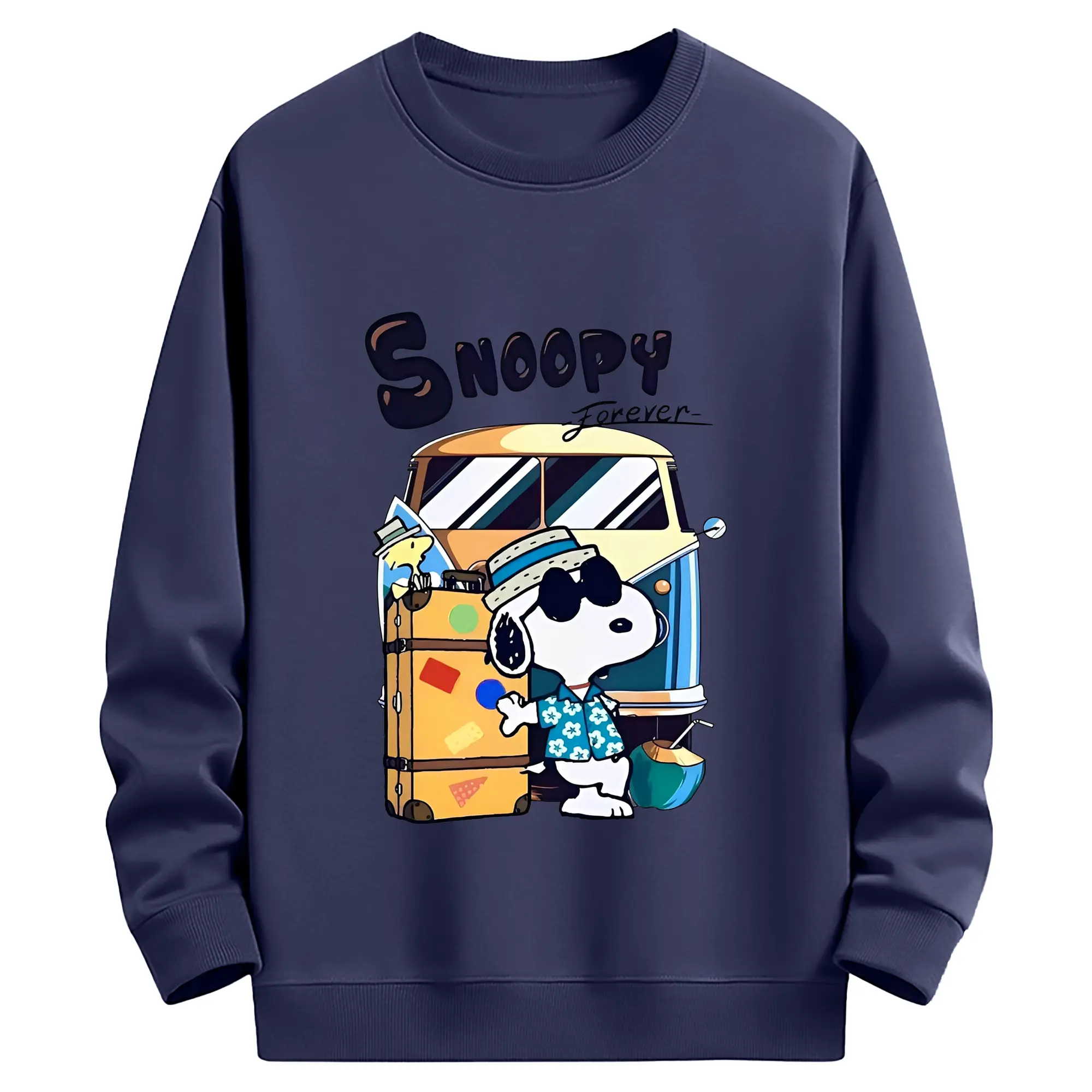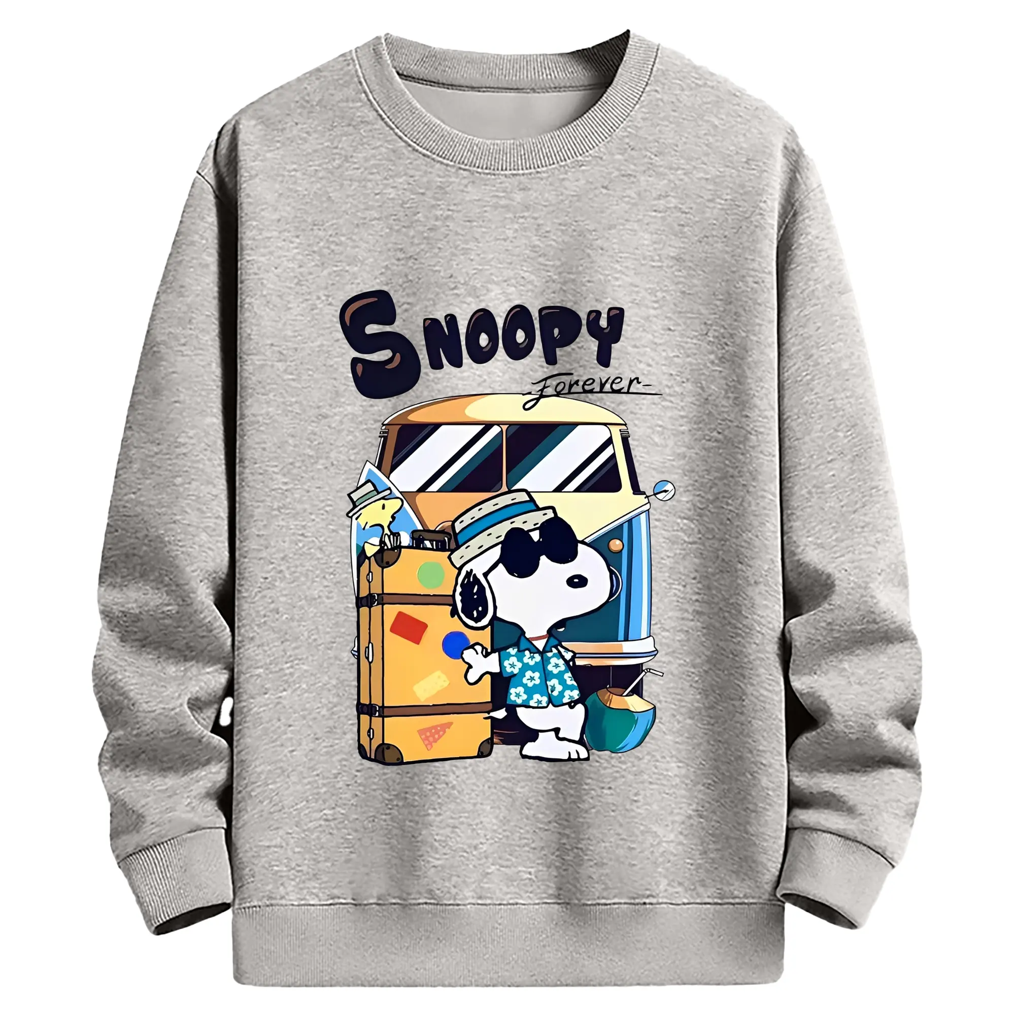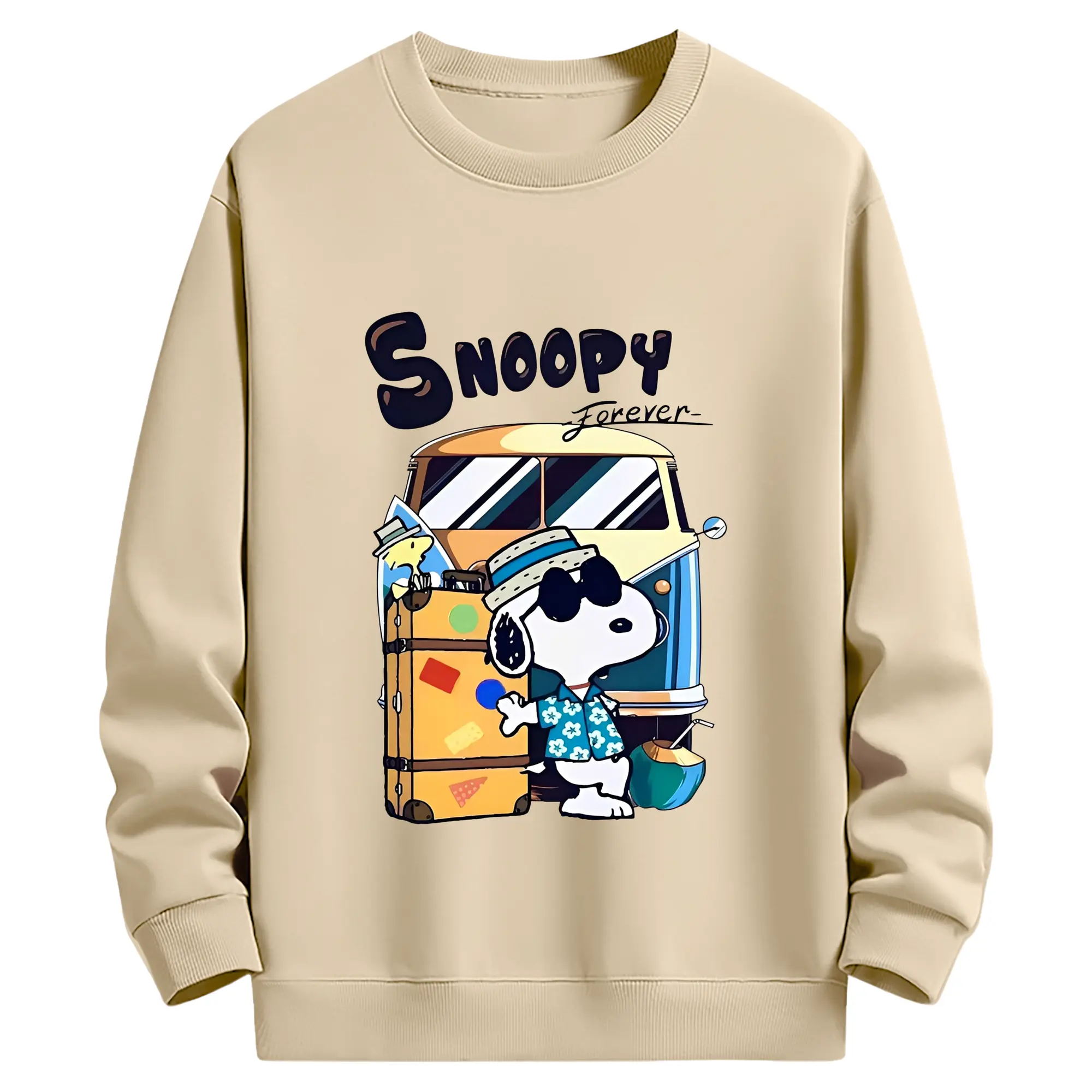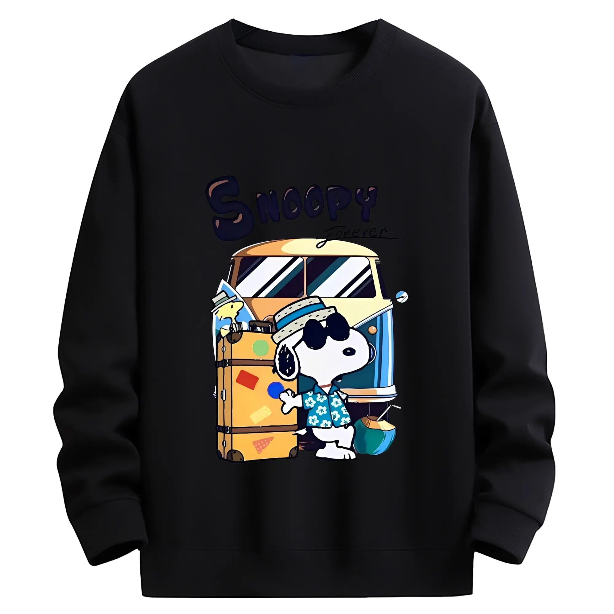 スヌーピー 夏の旅行のんびり - 綿100% ヴィンテージ風 半袖Tシャツ ・ フロントプリント ・ 柔らか肌触り ・ 通気性 快適 ・ スポーツ カジュアル 外出用