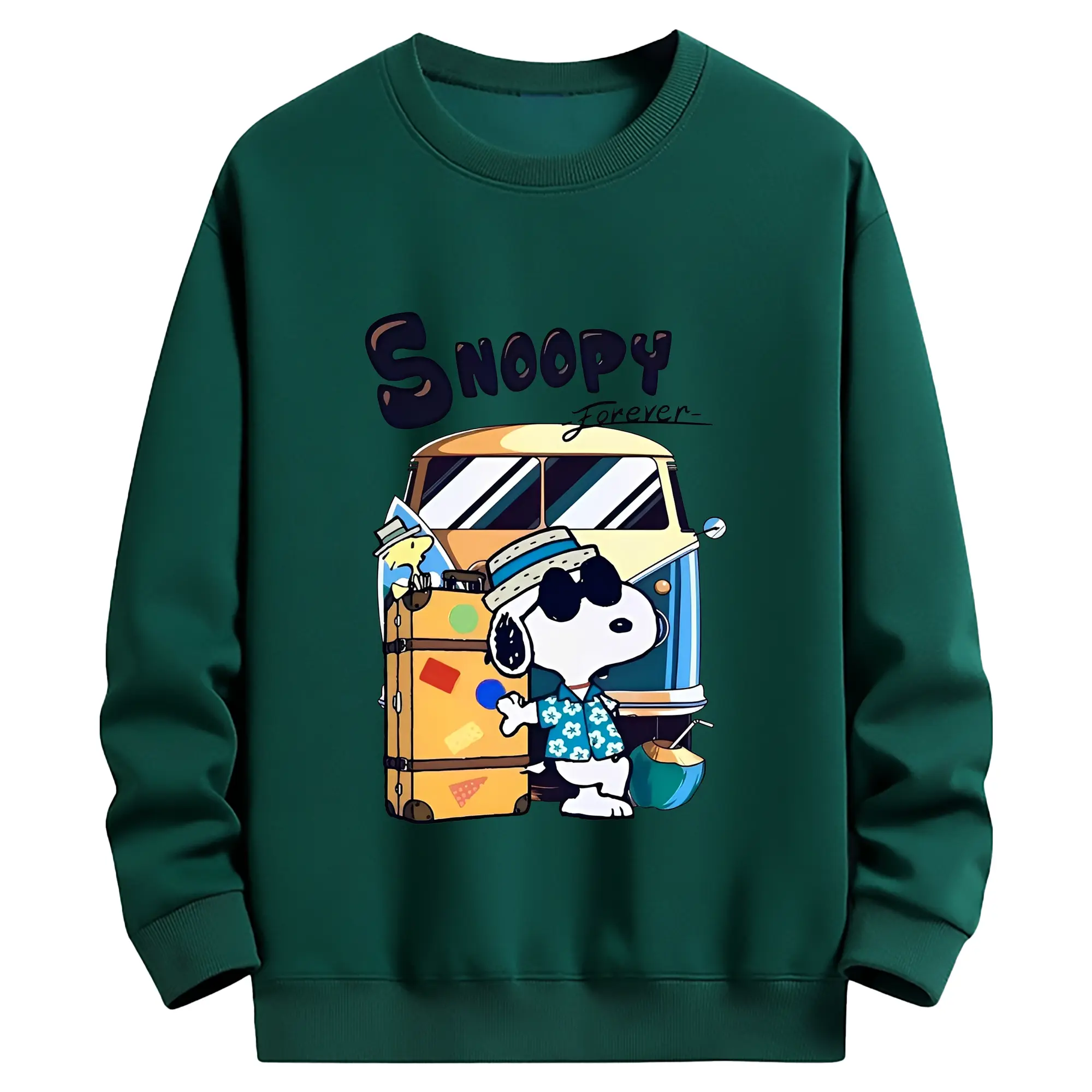 スヌーピー 夏の旅行のんびり - 綿100% 半袖Tシャツ ・ フロントプリント ・ 快適 通気性 ・ 日常使い 散歩 スポーツ用