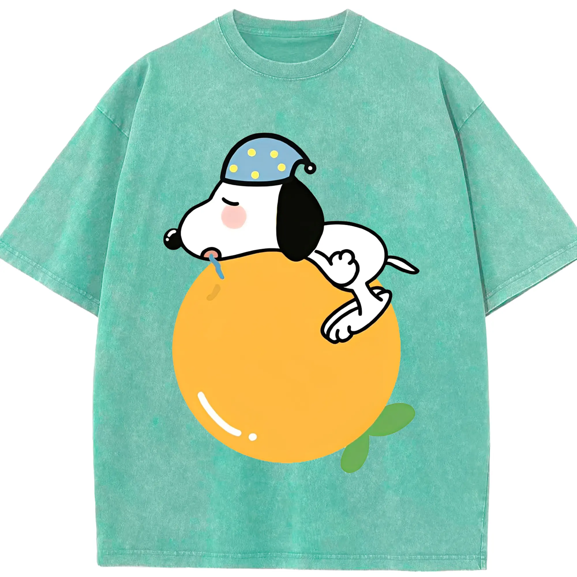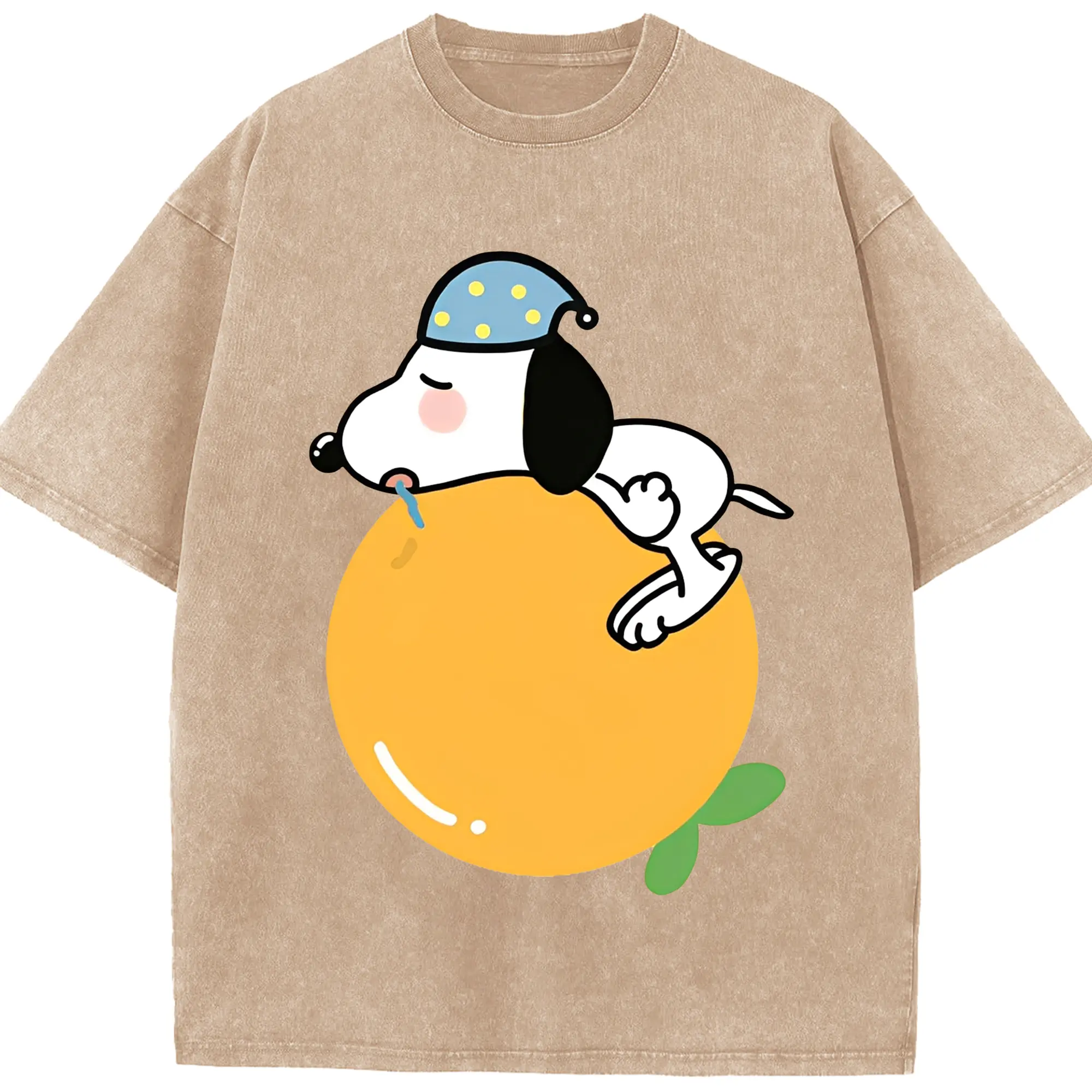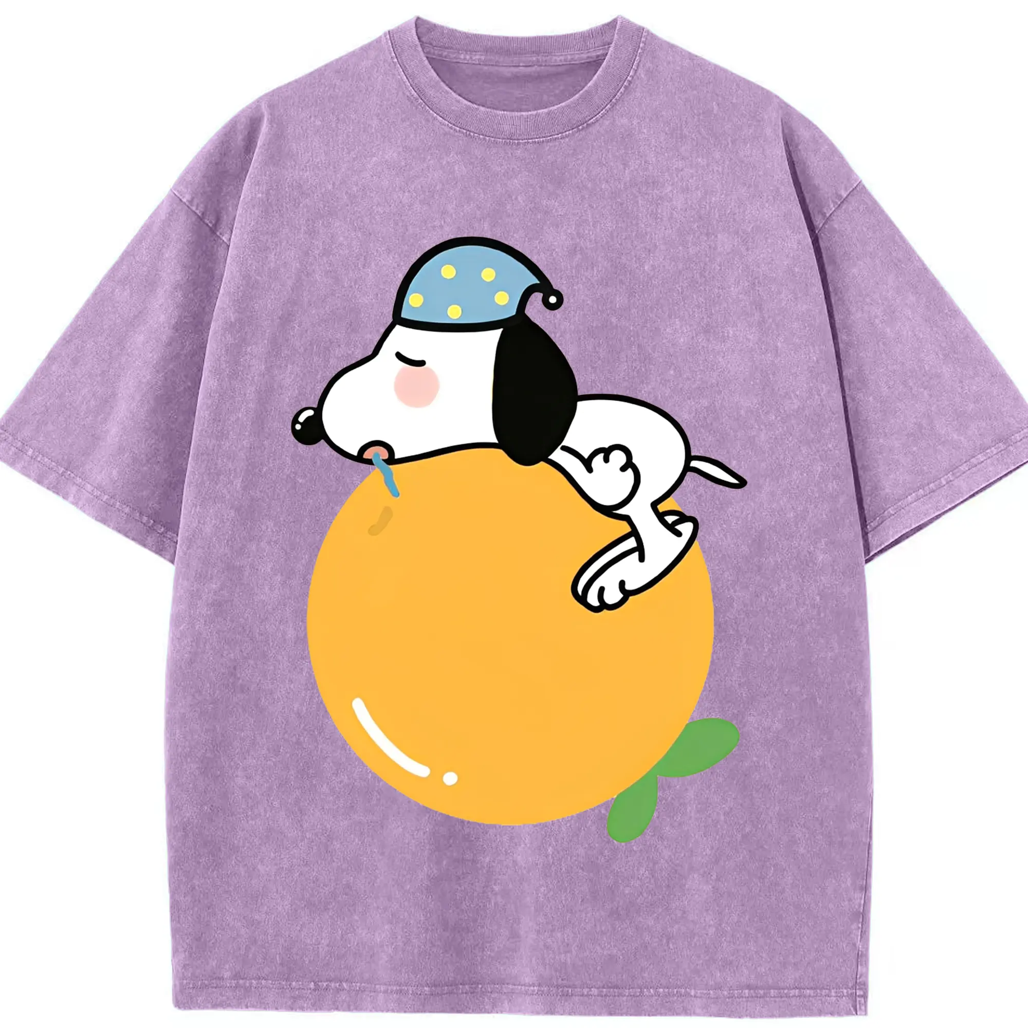 スヌーピー 癒しの みかんおやすみ - 綿100% 半袖Tシャツ ・ フロントプリント ・ 快適 通気性 ・ 日常使い 散歩 スポーツ用