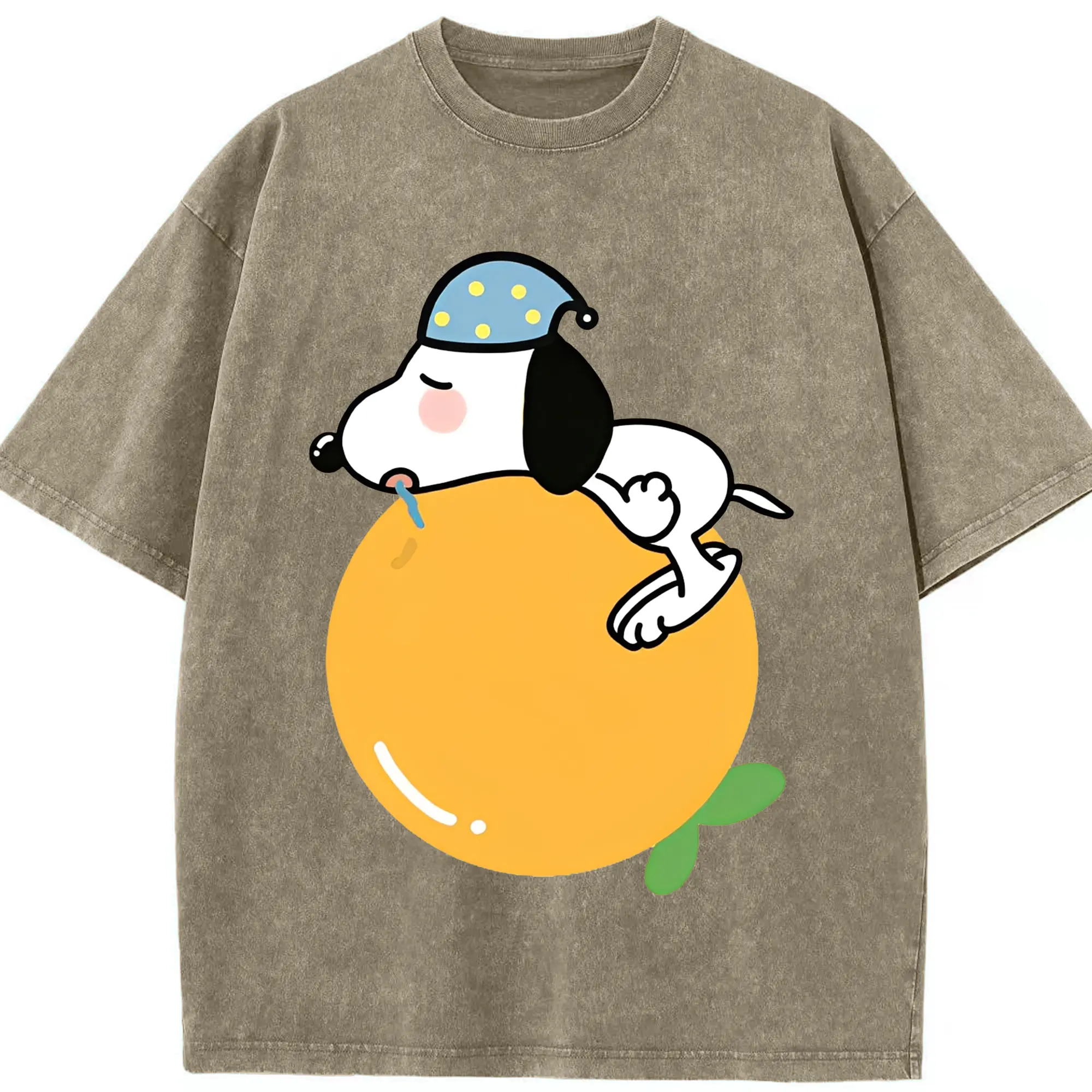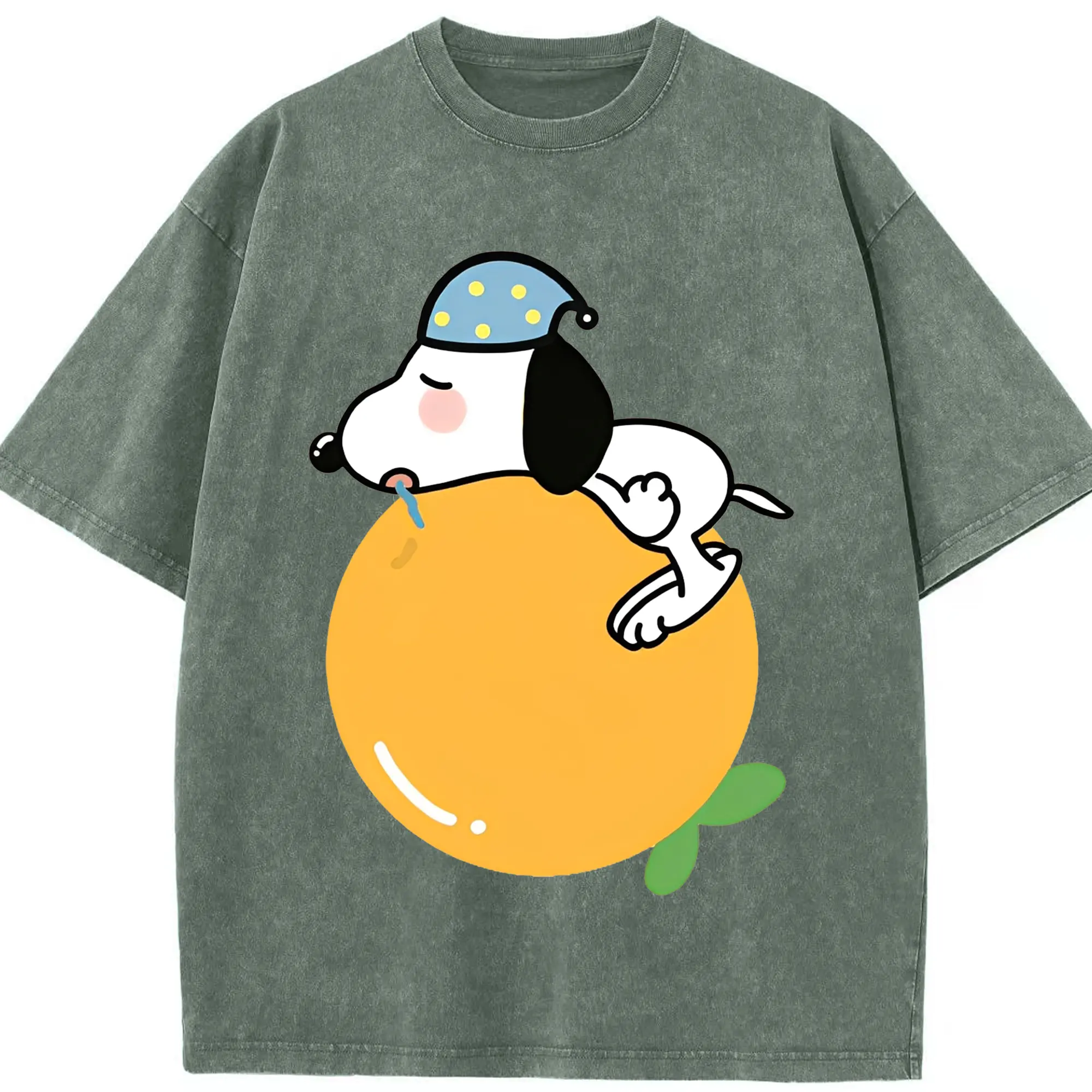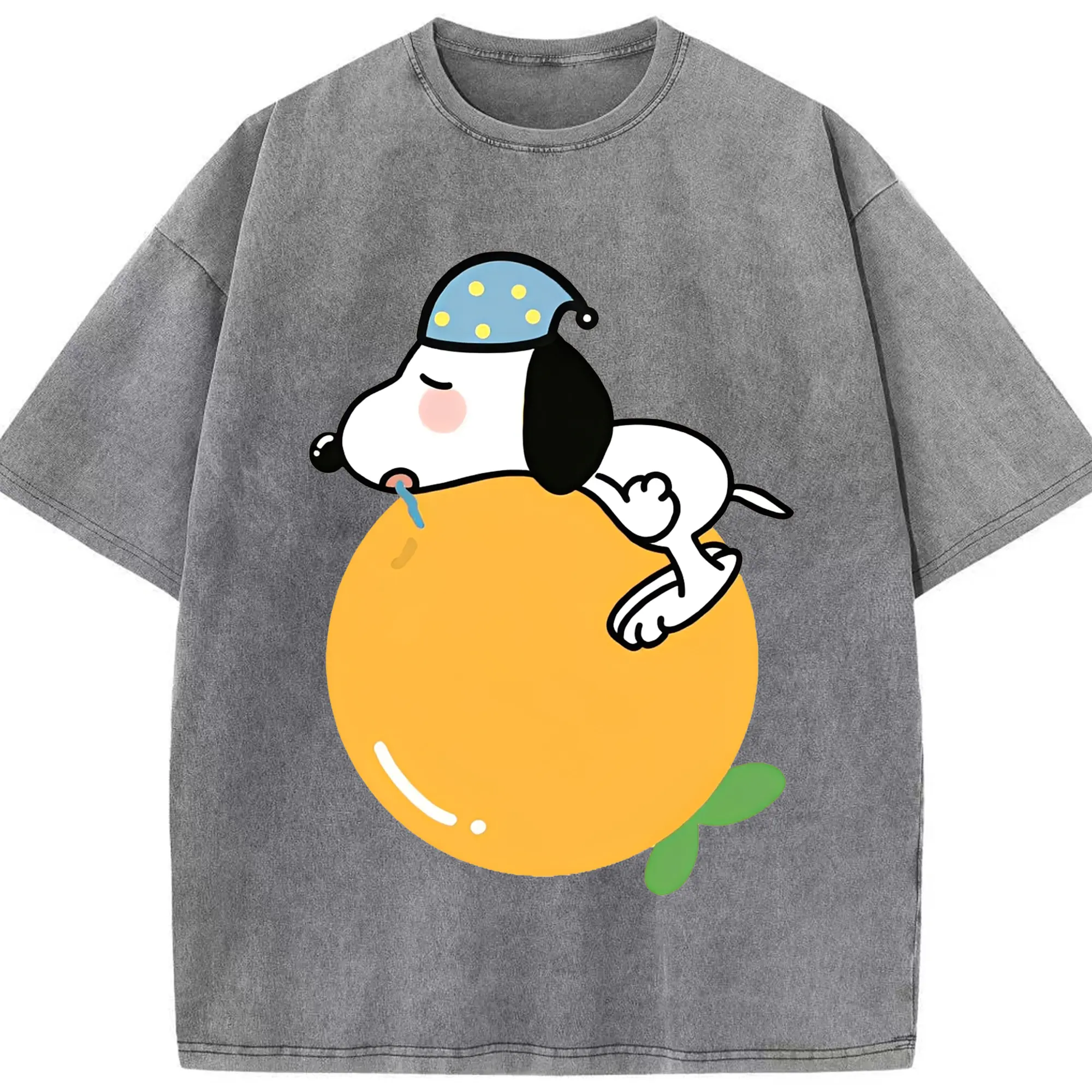スヌーピー 癒しの みかんおやすみ - 綿100% 半袖Tシャツ ・ フロントプリント ・ 快適 通気性 ・ 日常使い 散歩 スポーツ用