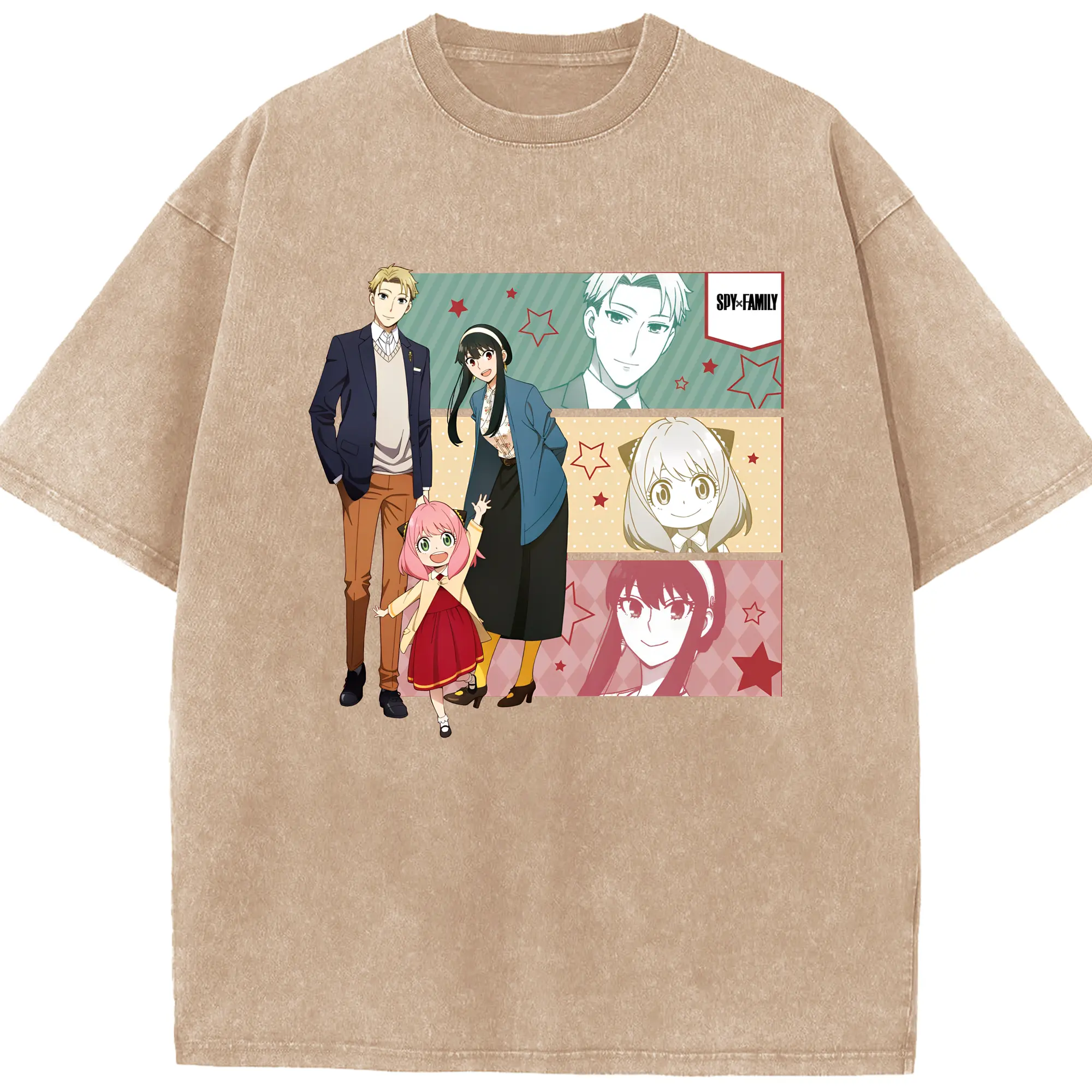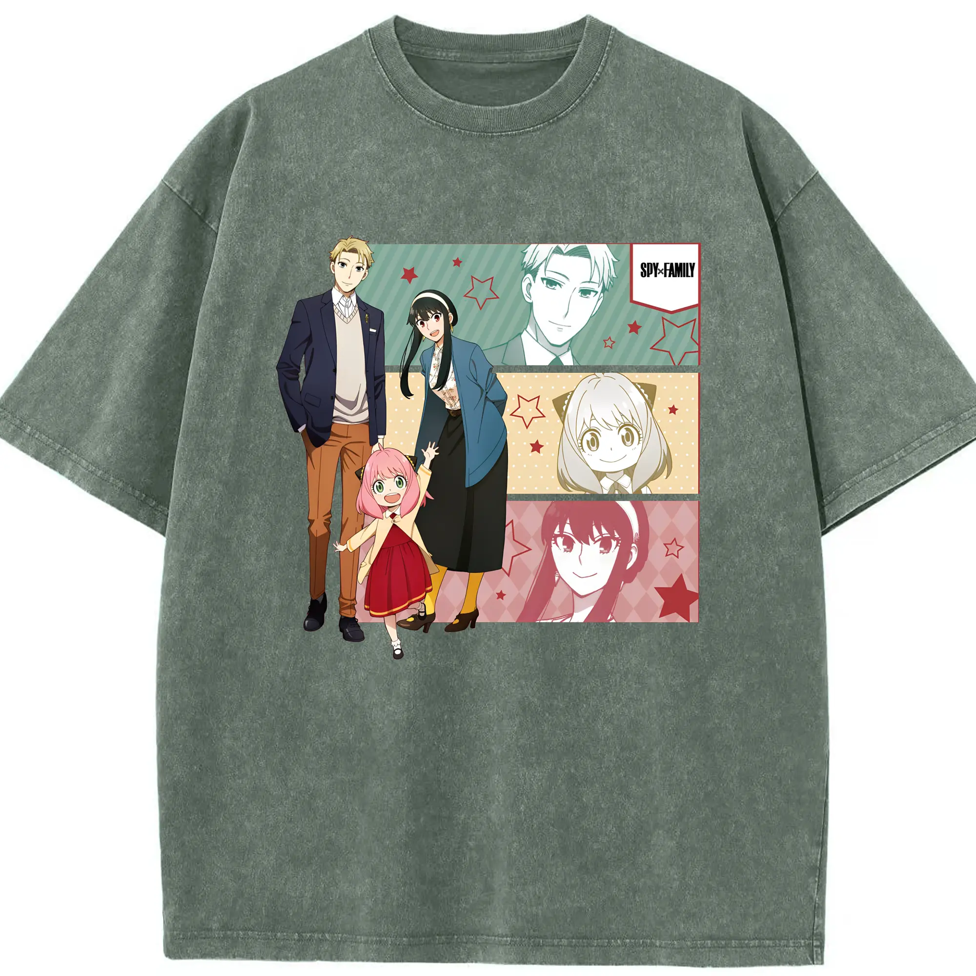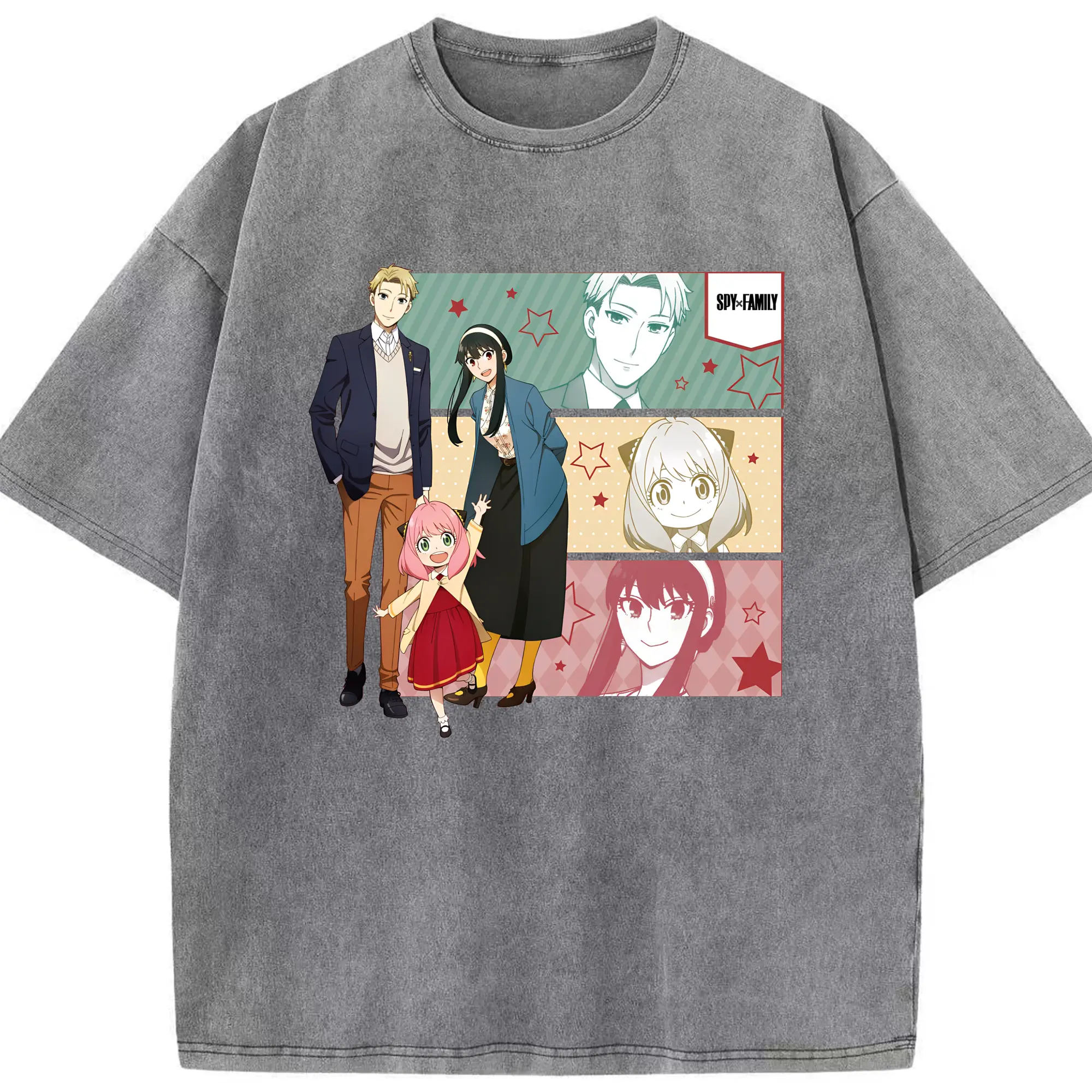 スパイファミリー 家族3人セット - 綿100% ヴィンテージ風 半袖Tシャツ ・ フロントプリント ・ 柔らか肌触り ・ 通気性 快適 ・ スポーツ カジュアル 外出用