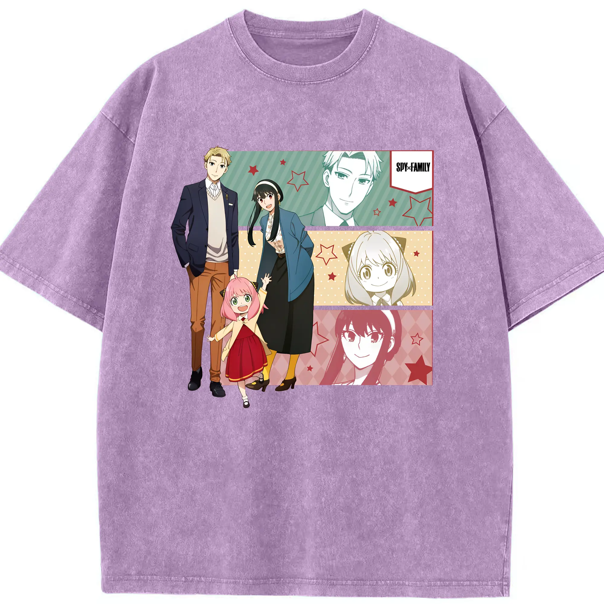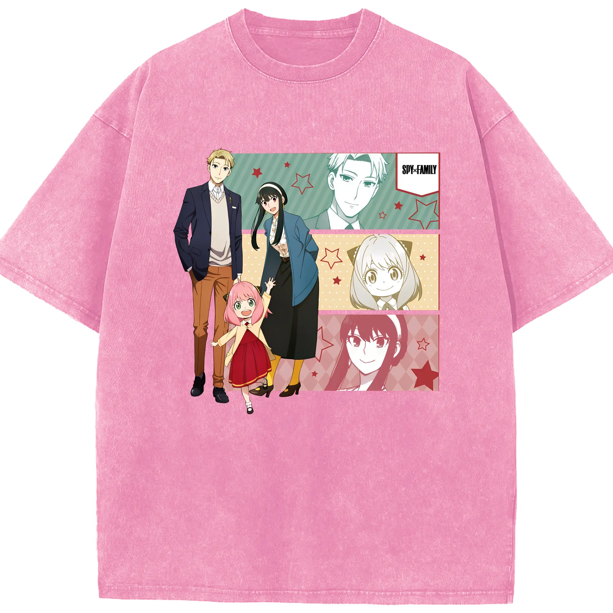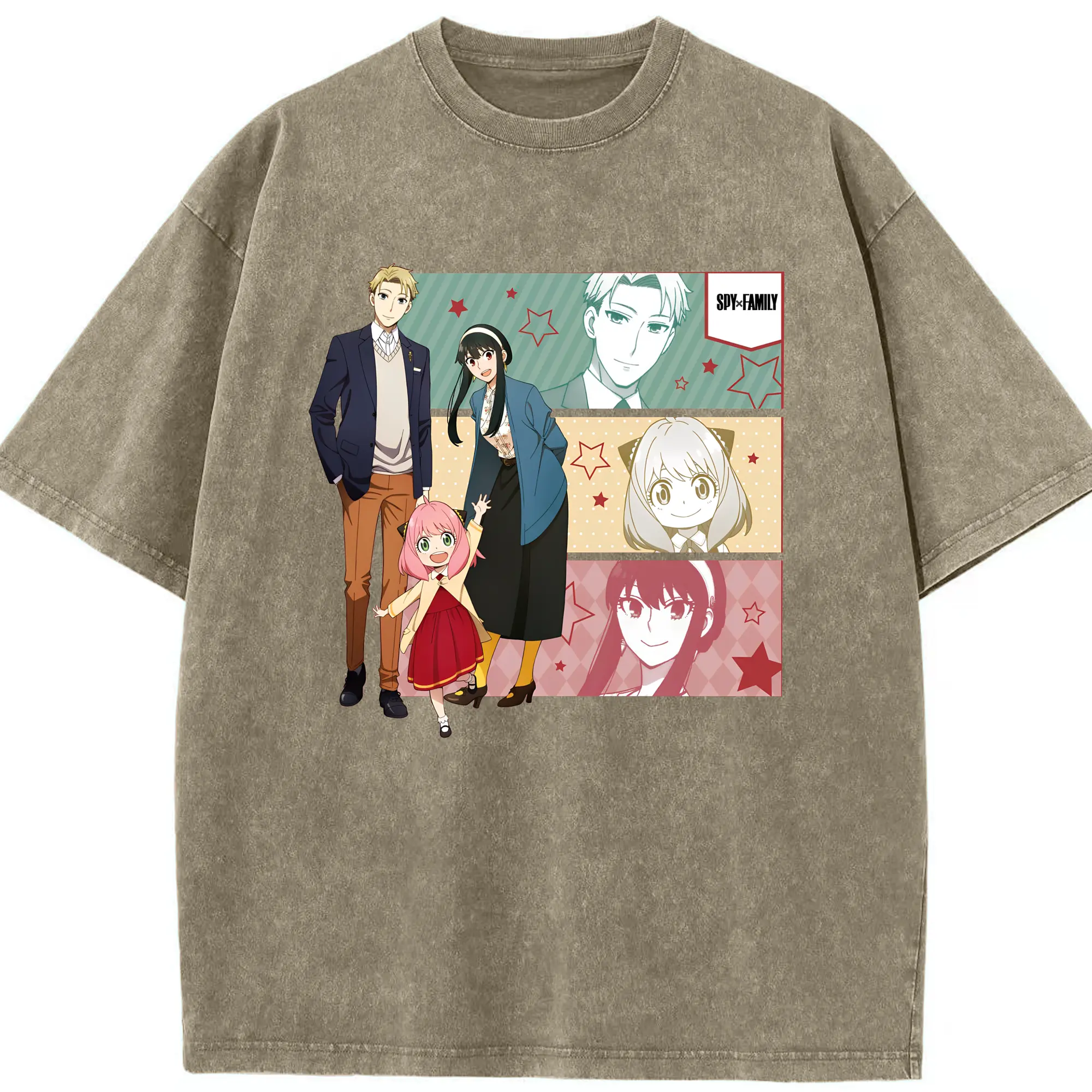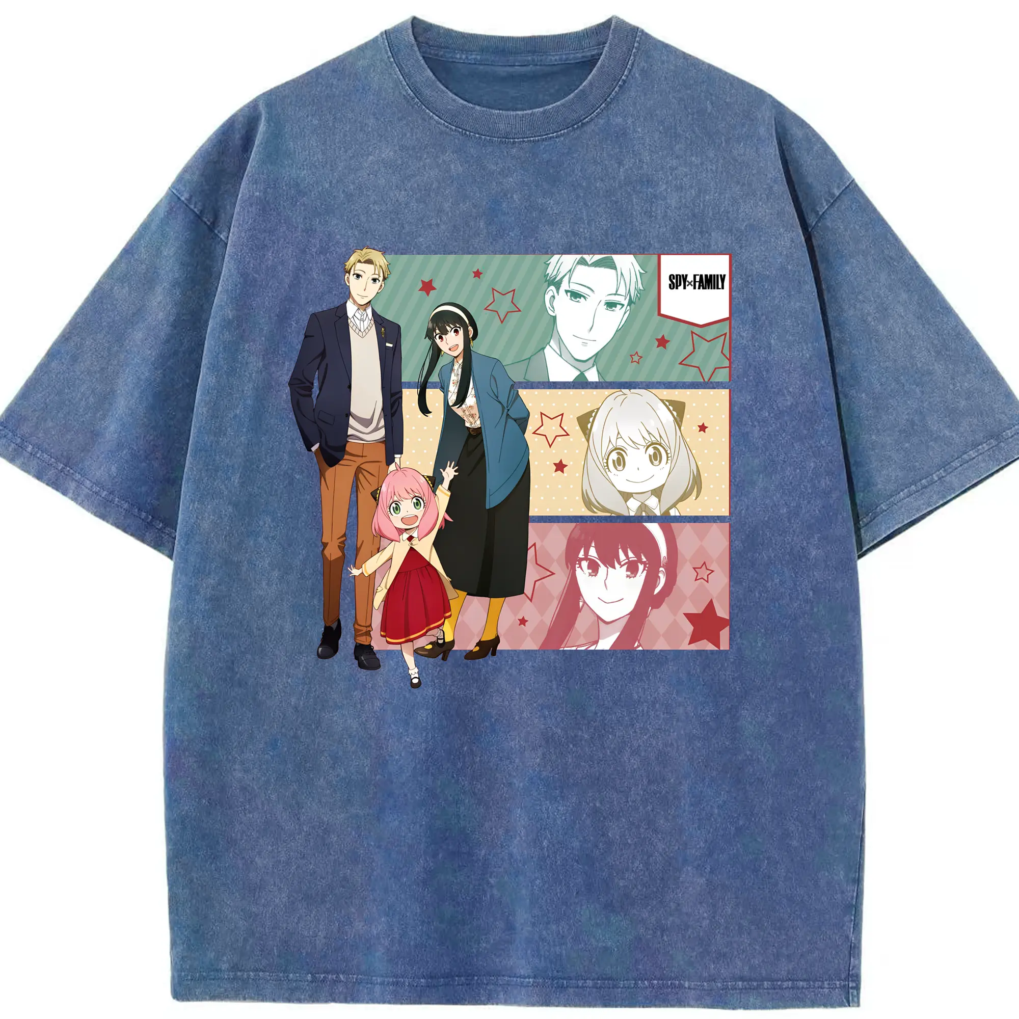 スパイファミリー 家族3人セット - 綿100% ヴィンテージ風 半袖Tシャツ ・ フロントプリント ・ 柔らか肌触り ・ 通気性 快適 ・ スポーツ カジュアル 外出用