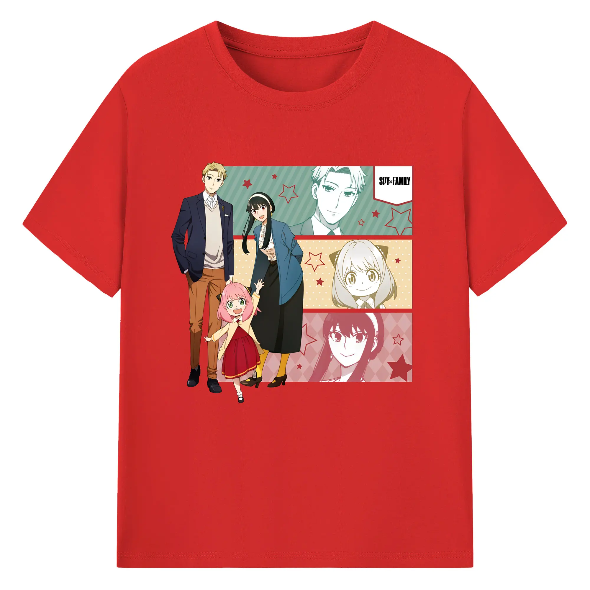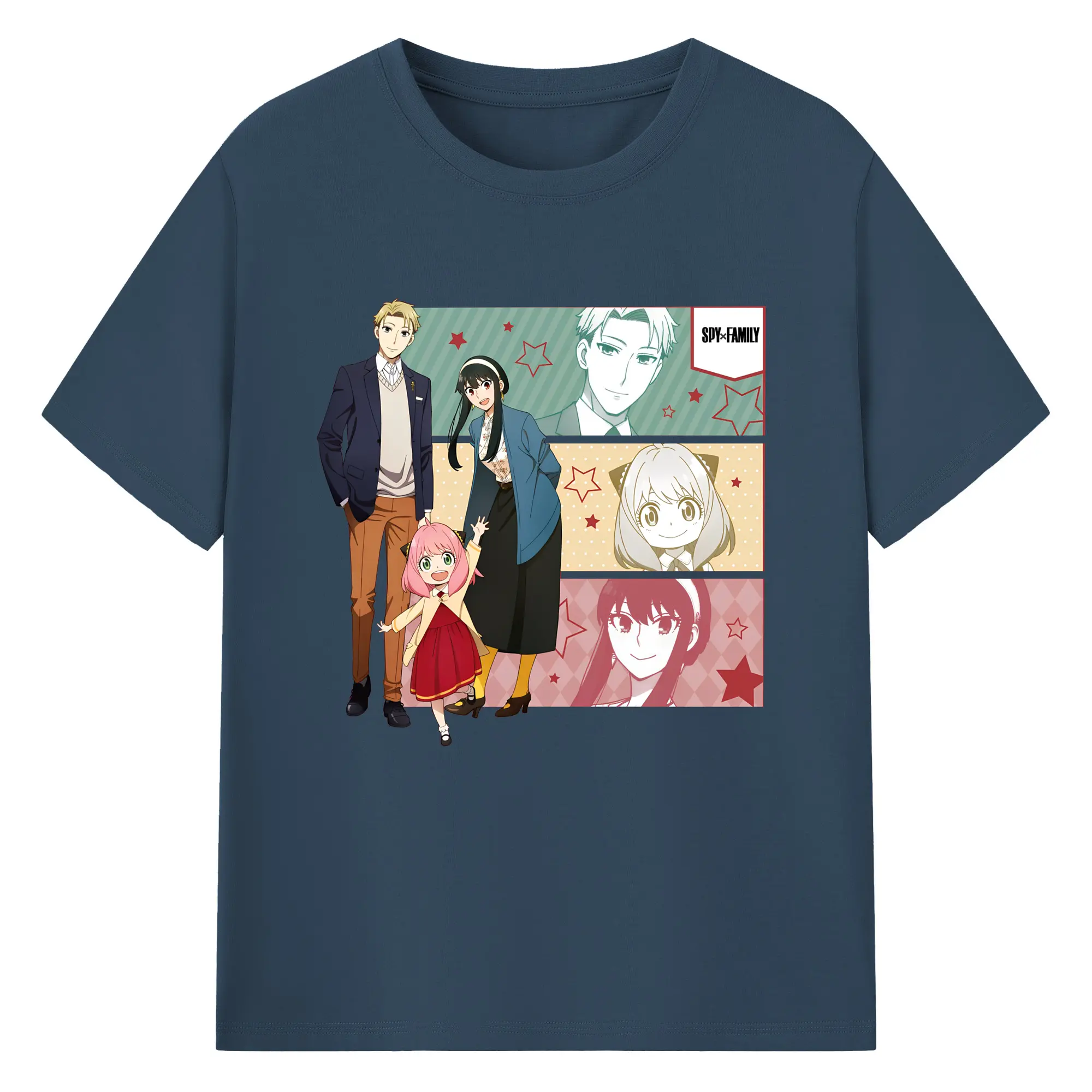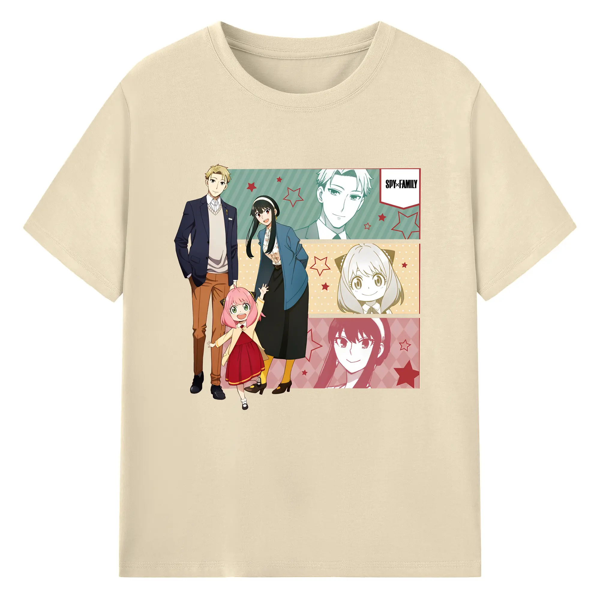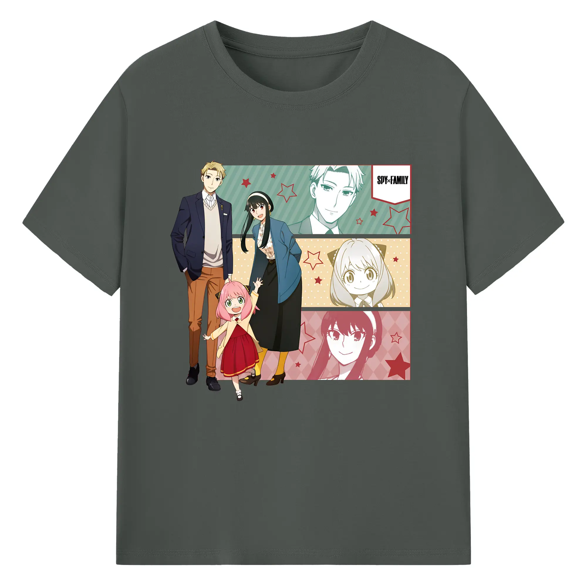 スパイファミリー 家族3人セット - 綿100% ヴィンテージ風 半袖Tシャツ ・ フロントプリント ・ 柔らか肌触り ・ 通気性 快適 ・ スポーツ カジュアル 外出用