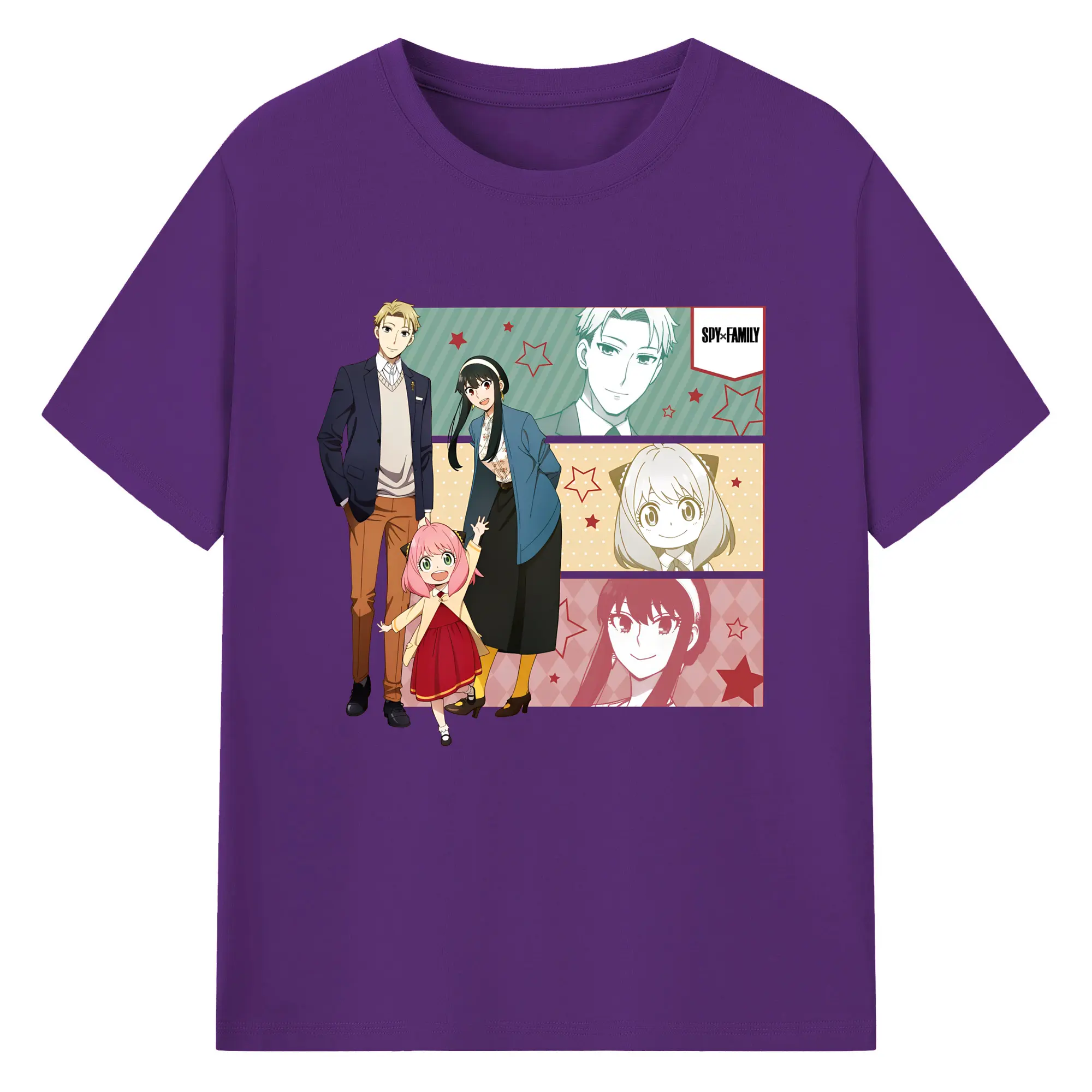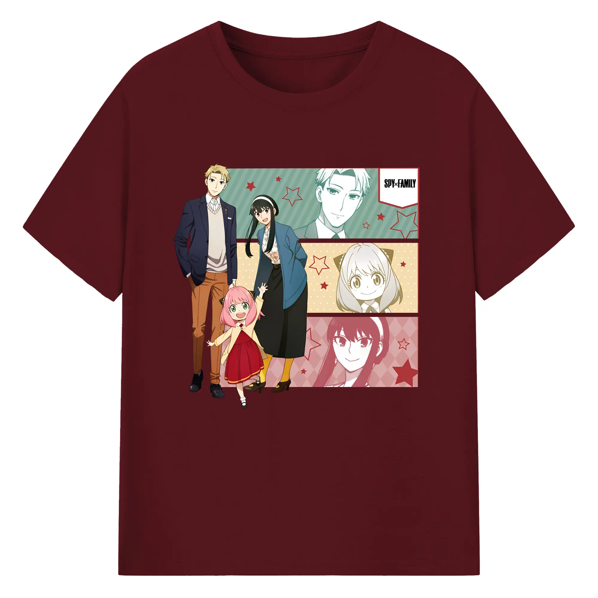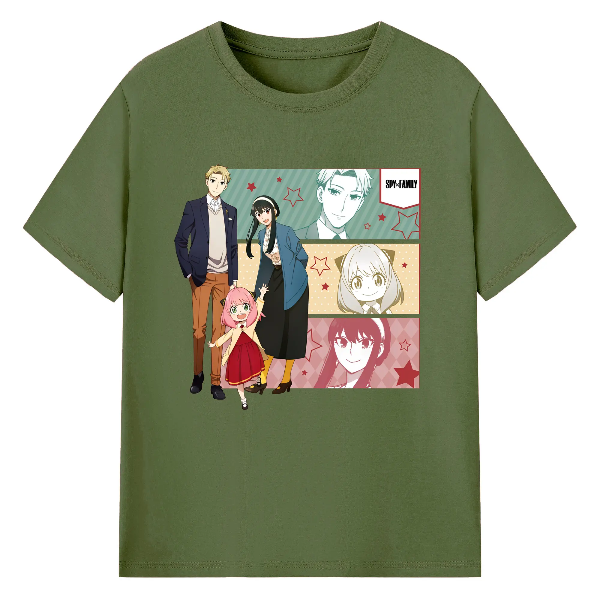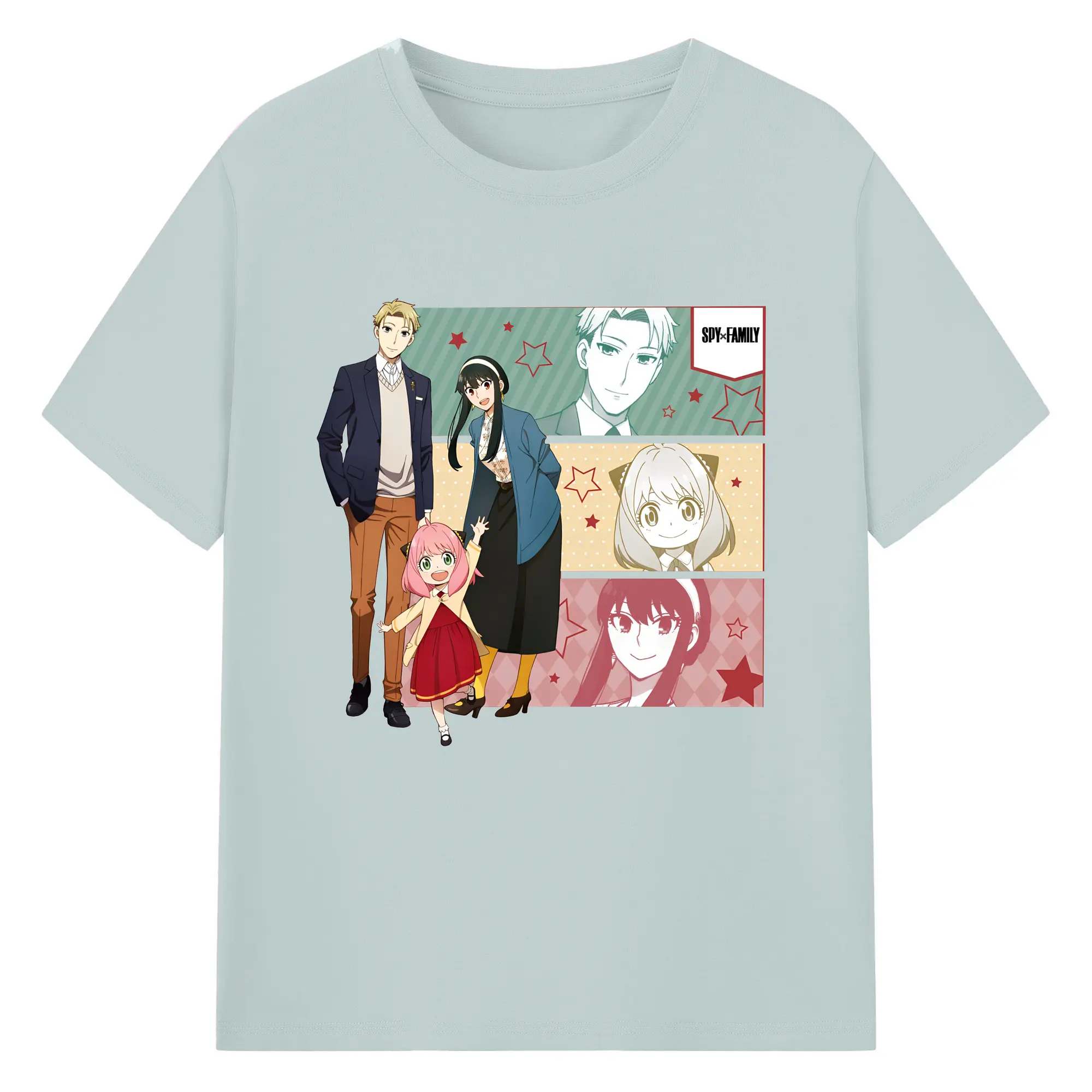 スパイファミリー 家族3人セット - 綿100% ヴィンテージ風 半袖Tシャツ ・ フロントプリント ・ 柔らか肌触り ・ 通気性 快適 ・ スポーツ カジュアル 外出用