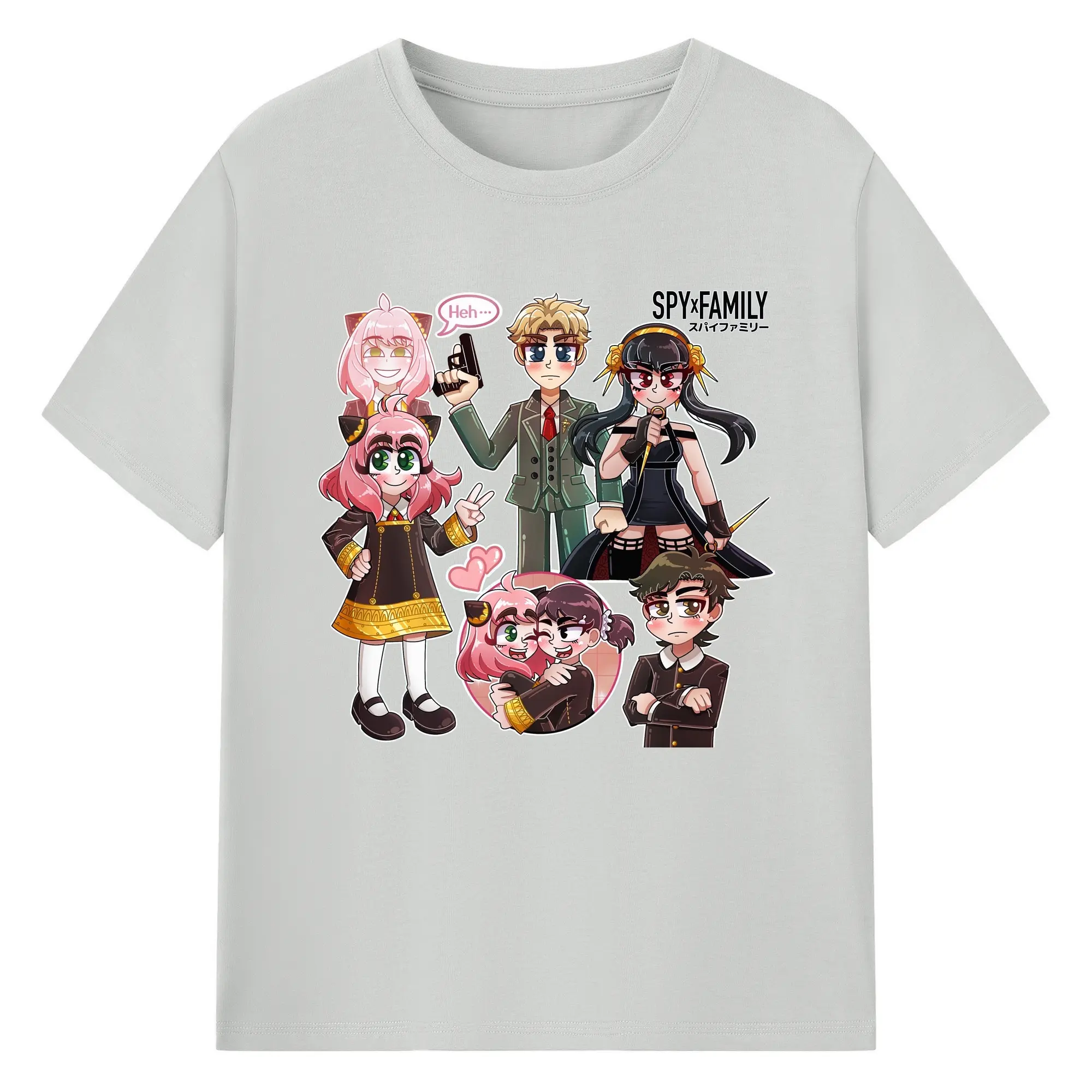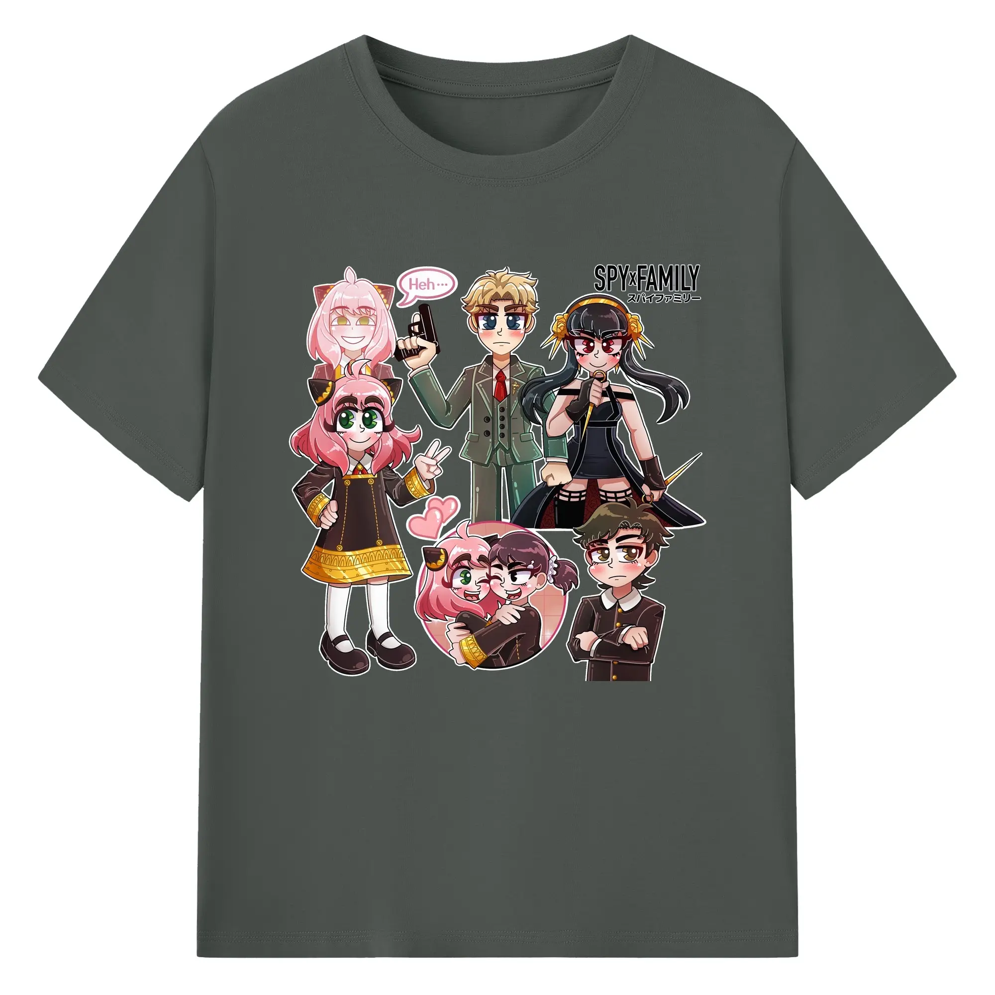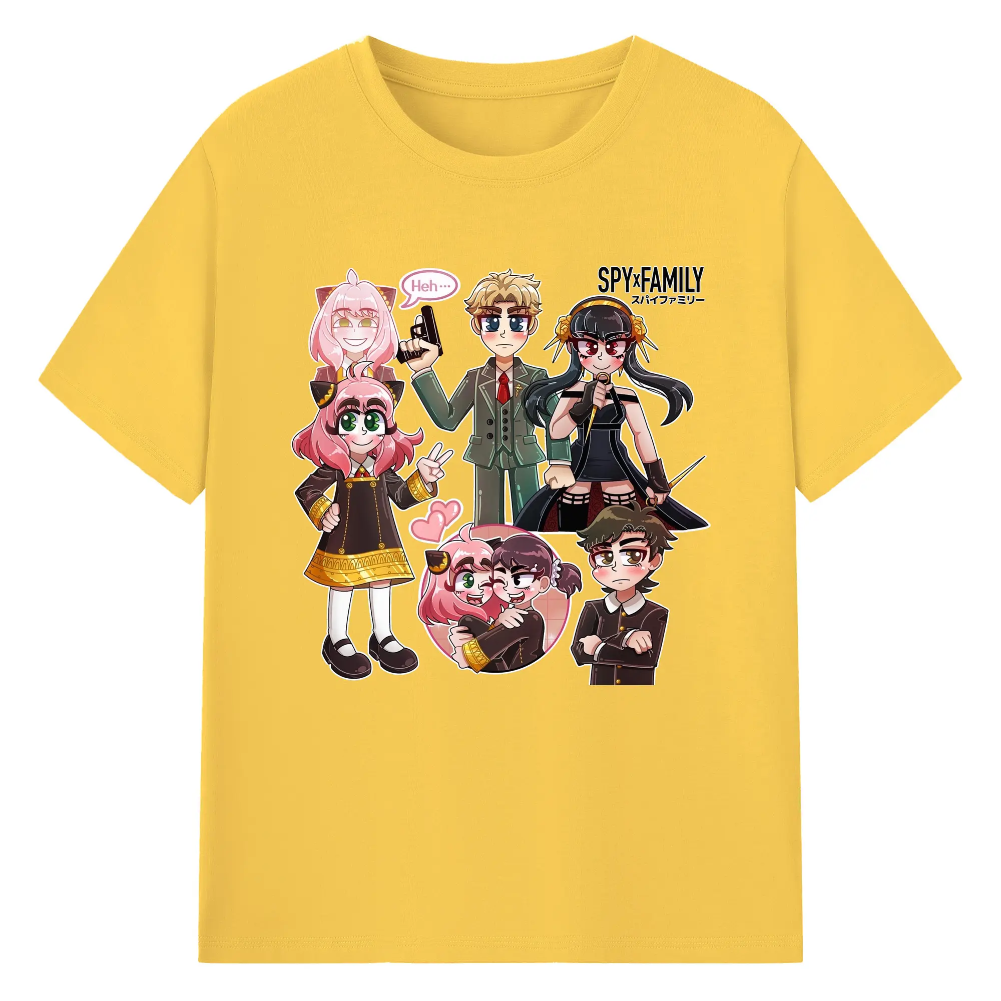 スパイファミリー ハイライトシーン - 綿100% ヴィンテージ風 半袖Tシャツ ・ フロントプリント ・ 柔らか肌触り ・ 通気性 快適 ・ スポーツ カジュアル 外出用