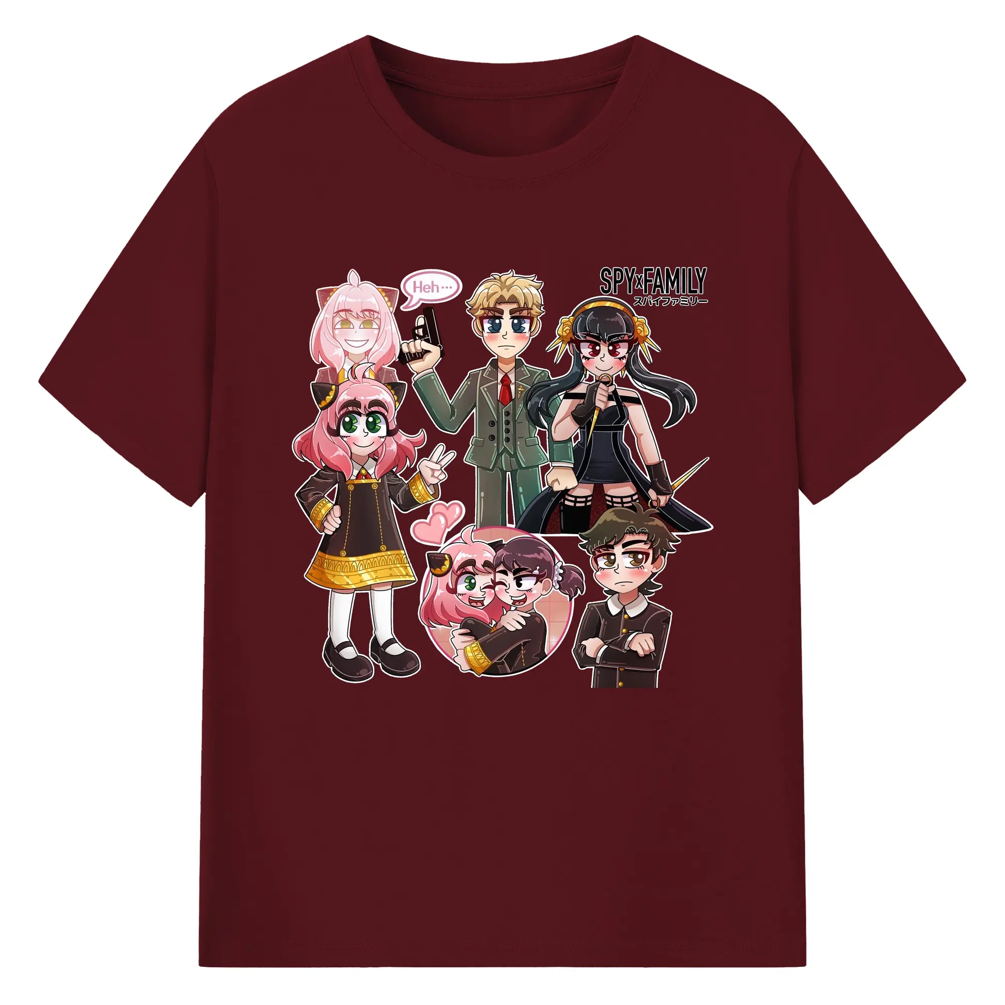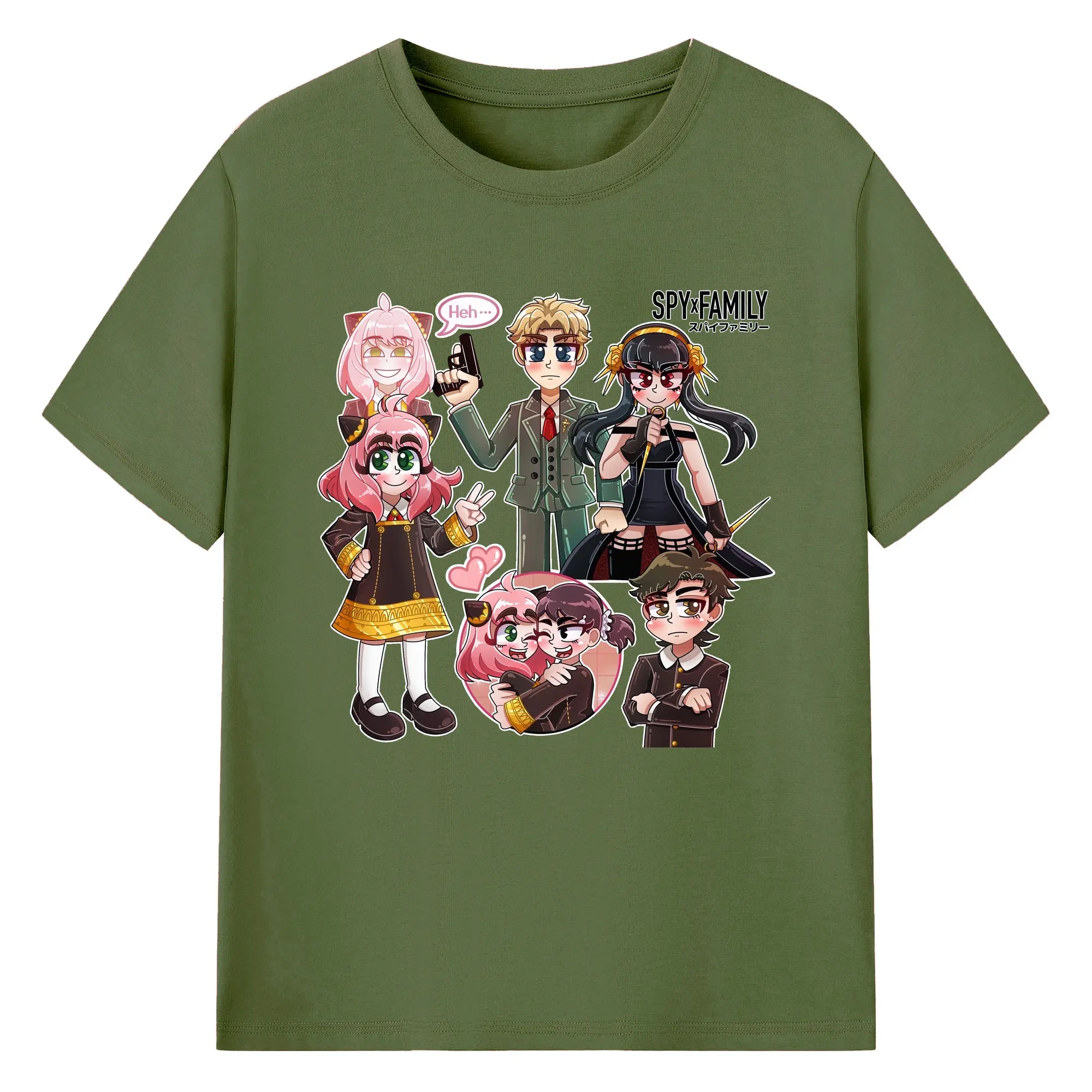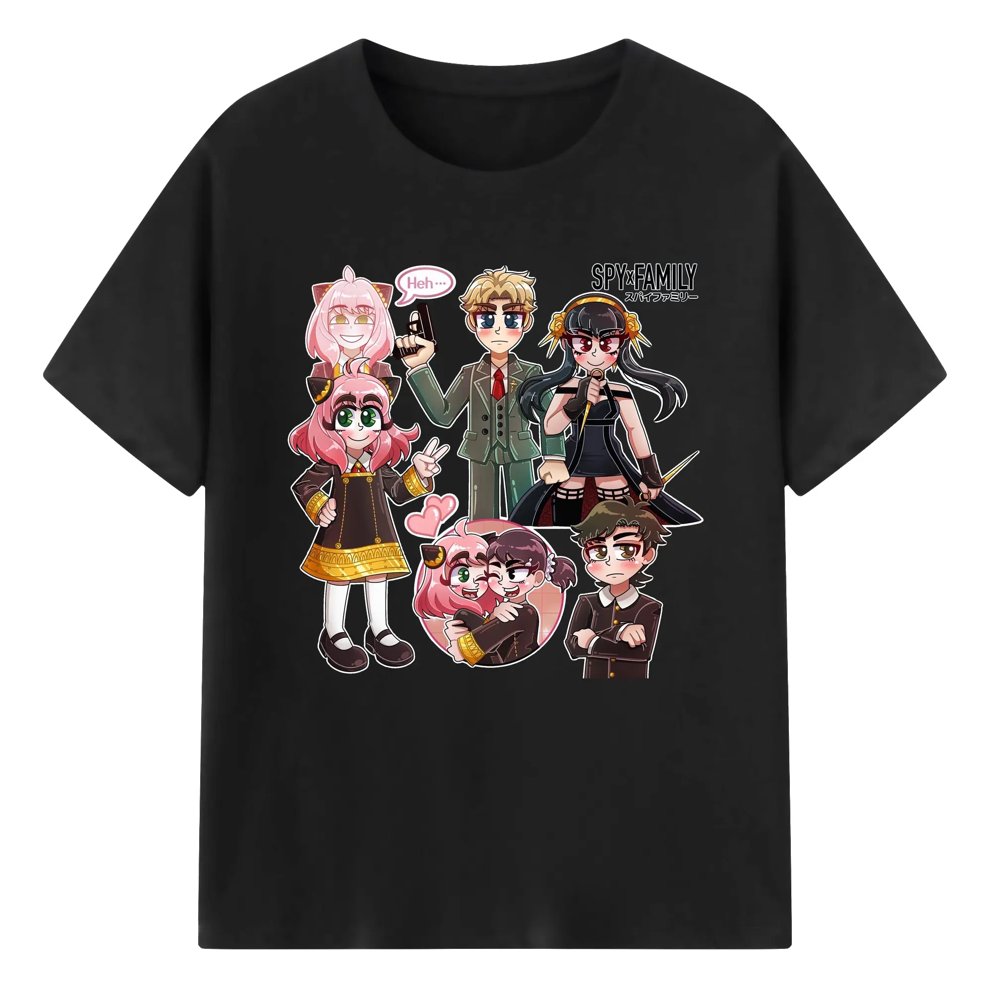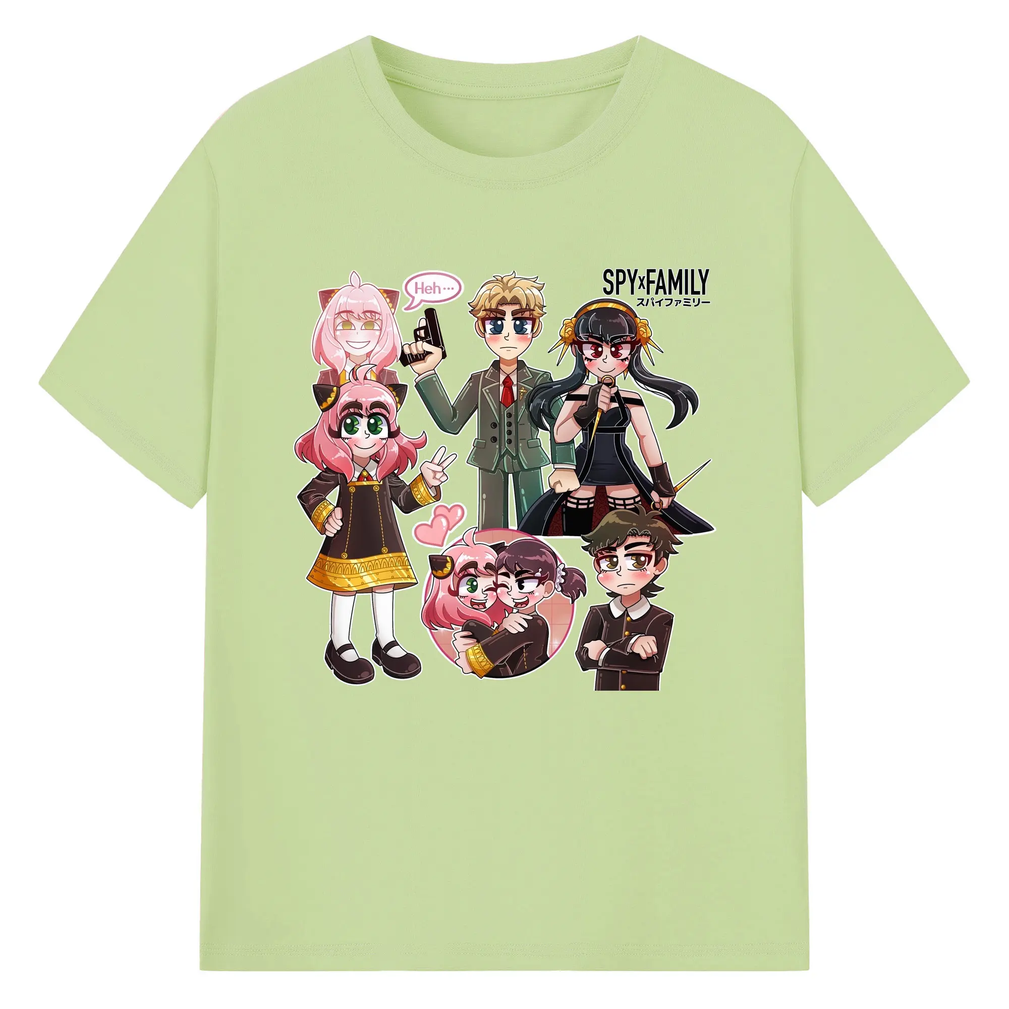 スパイファミリー ハイライトシーン - 綿100% ヴィンテージ風 半袖Tシャツ ・ フロントプリント ・ 柔らか肌触り ・ 通気性 快適 ・ スポーツ カジュアル 外出用