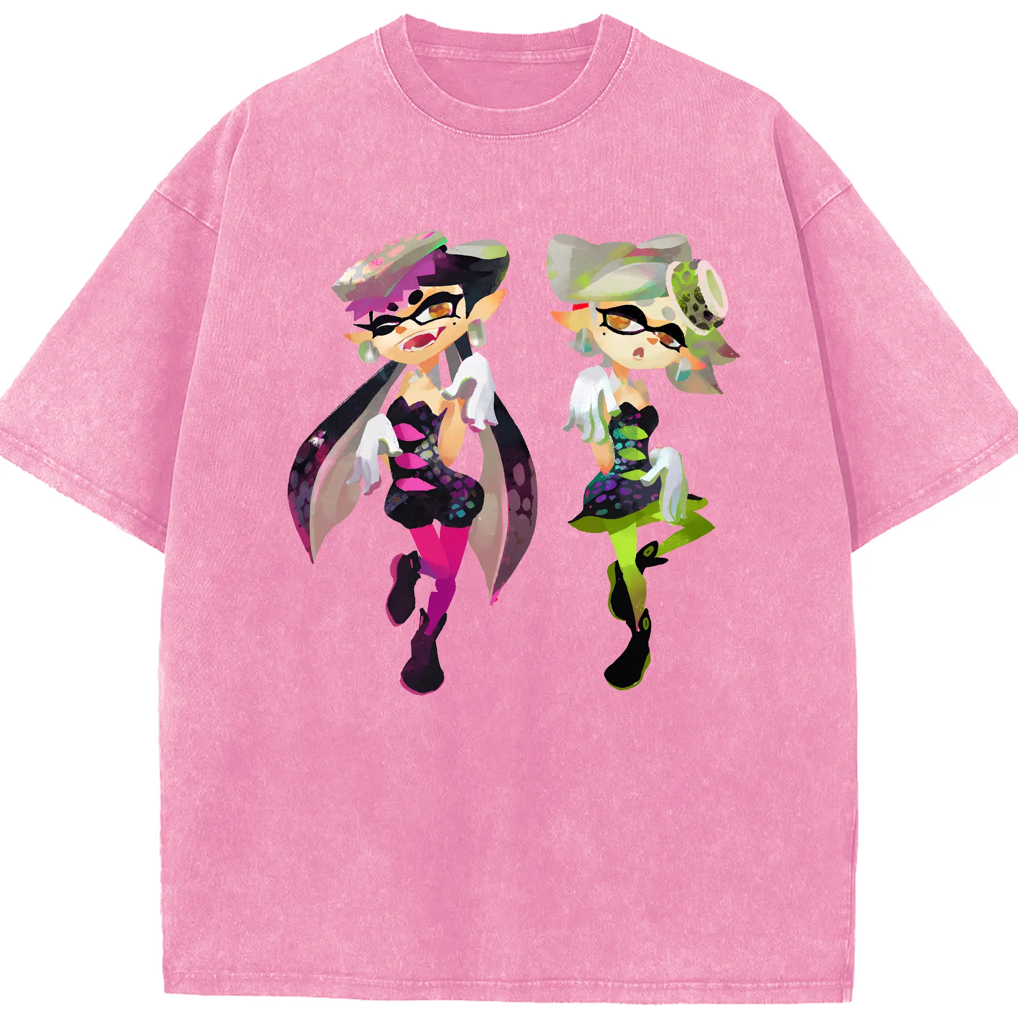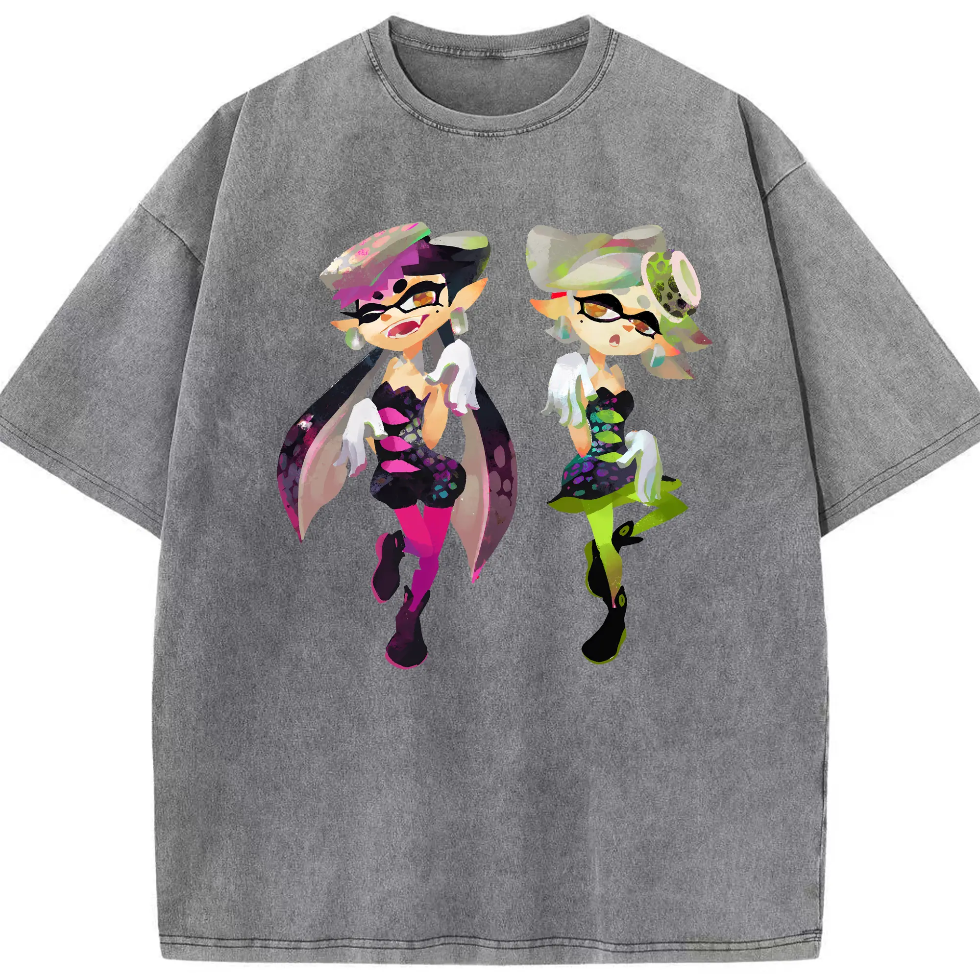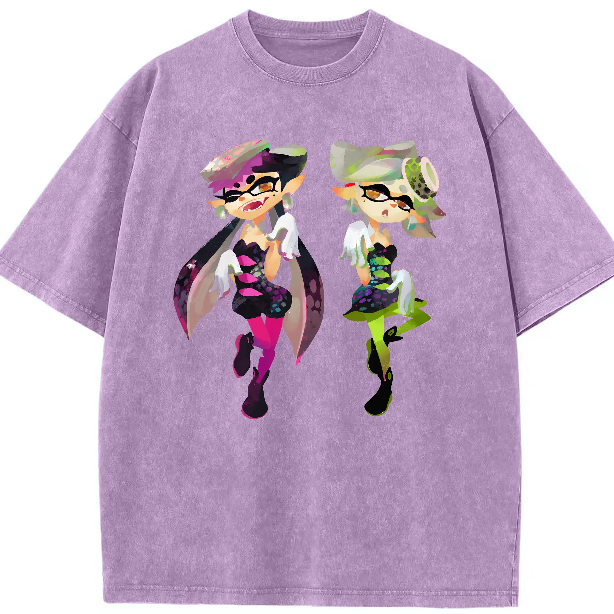 スプラトゥーン スクイドシスターズ 限定 - 綿100% 半袖Tシャツ ・ フロントプリント ・ 快適 通気性 ・ 日常使い 散歩 スポーツ用