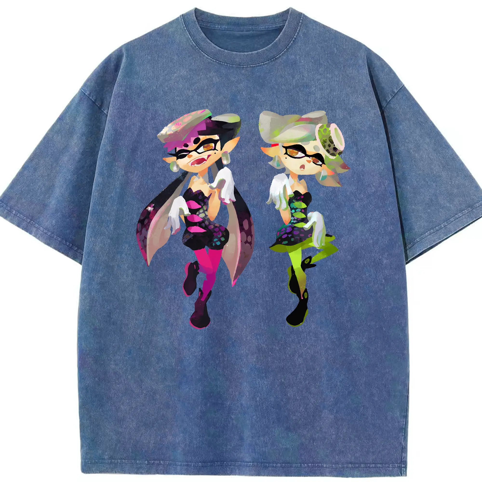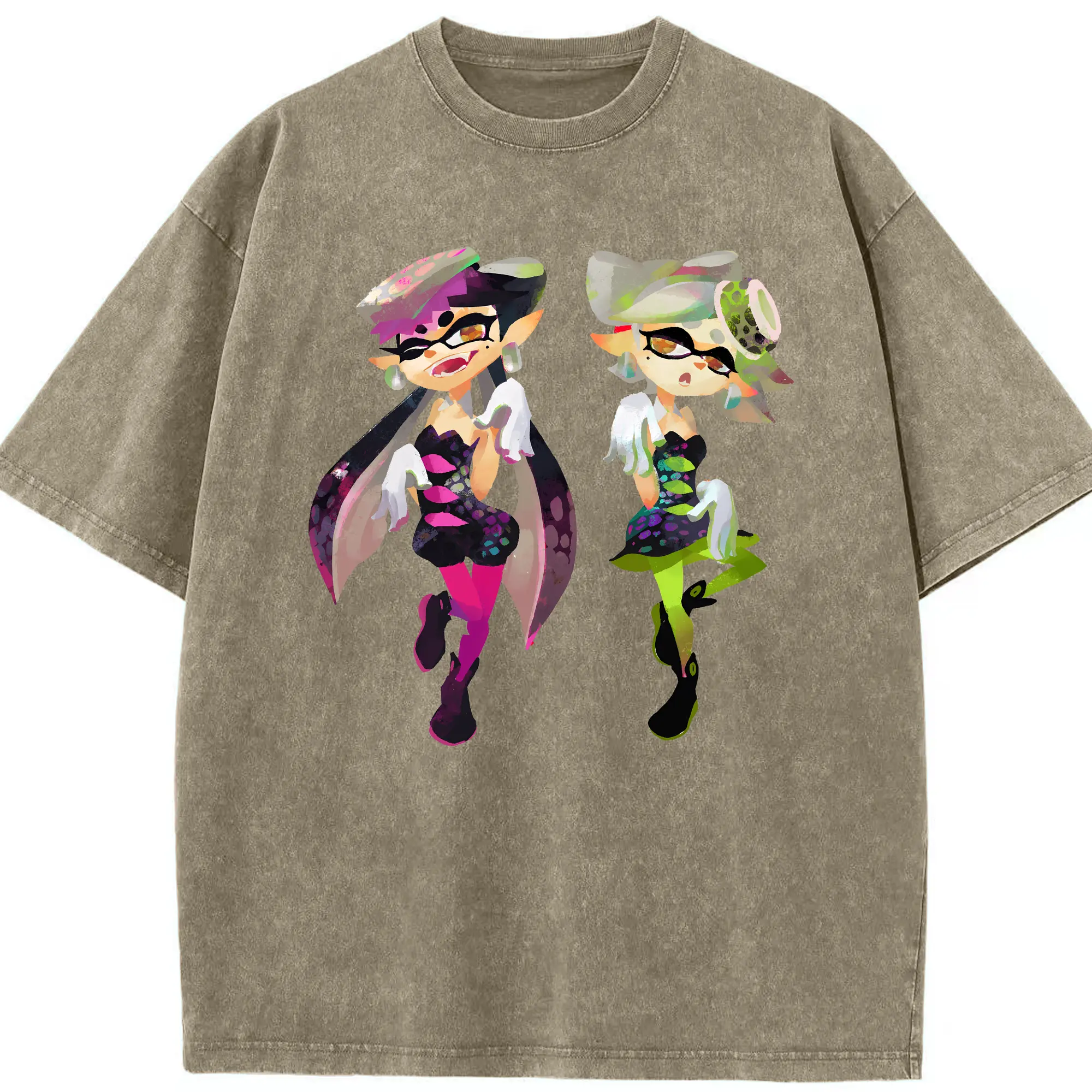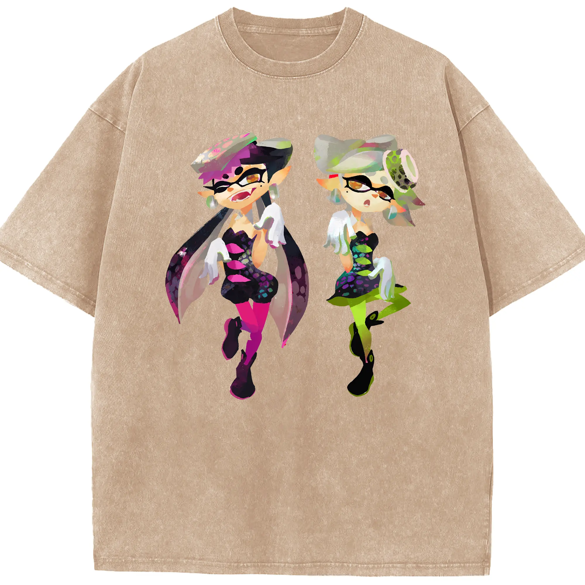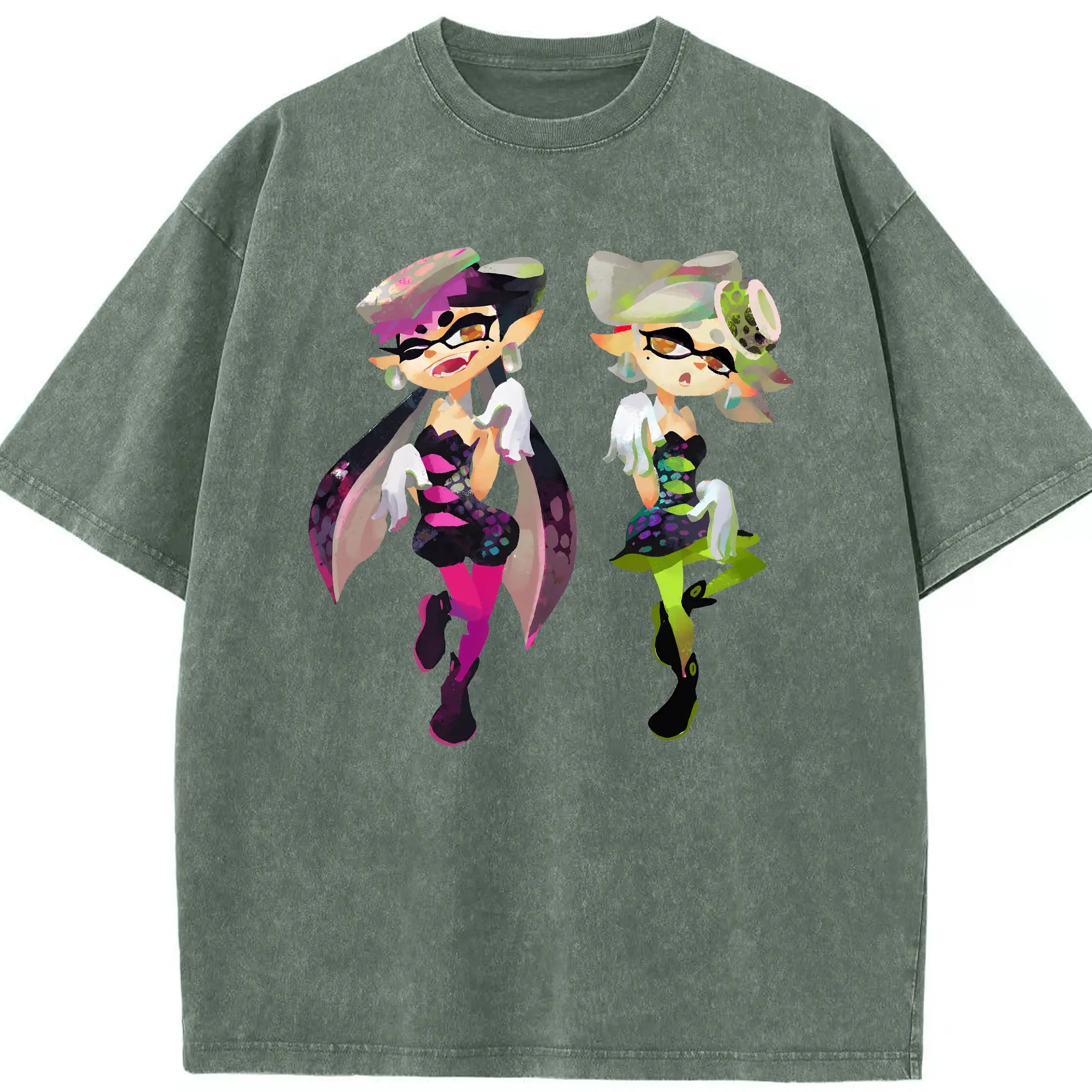 スプラトゥーン スクイドシスターズ 限定 - 綿100% 半袖Tシャツ ・ フロントプリント ・ 快適 通気性 ・ 日常使い 散歩 スポーツ用