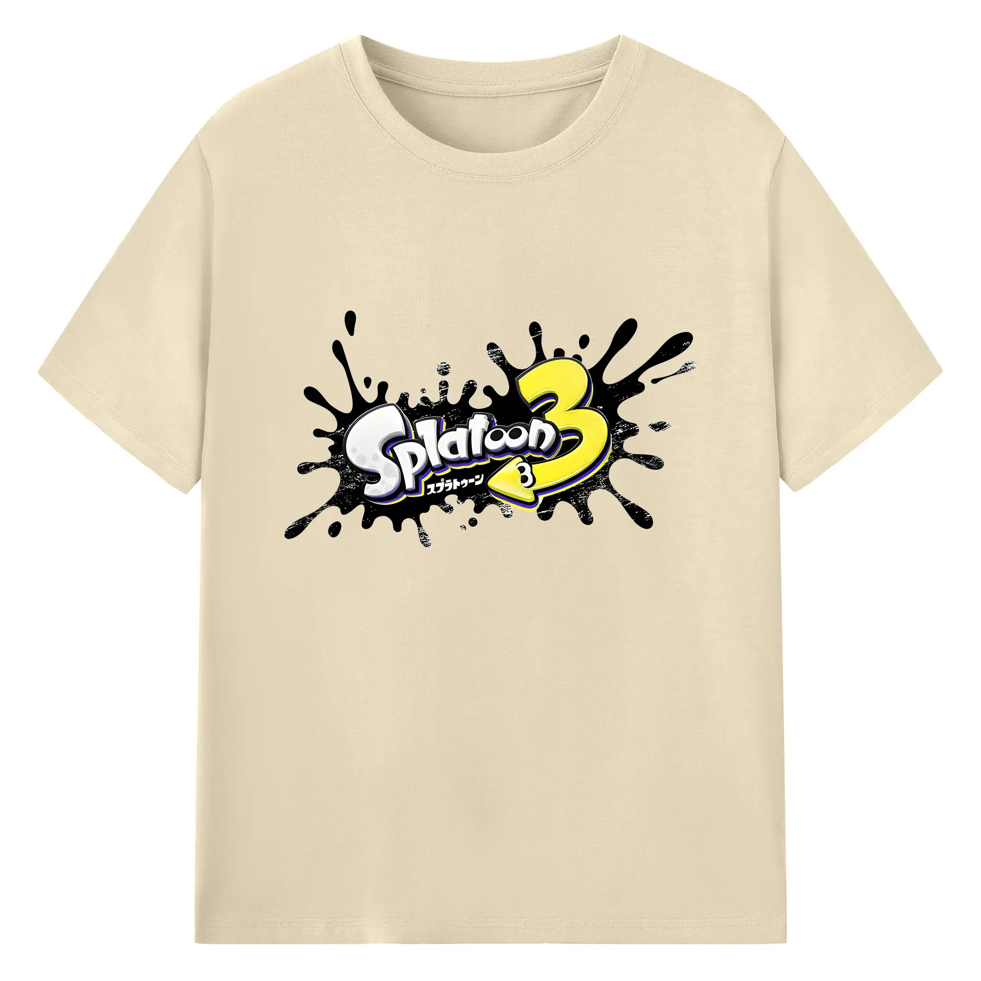 スプラトゥーン3 ロゴプリント 限定版 - 綿100% ヴィンテージ風 半袖Tシャツ ・ フロントプリント ・ 柔らか肌触り ・ 通気性 快適 ・ スポーツ カジュアル 外出用