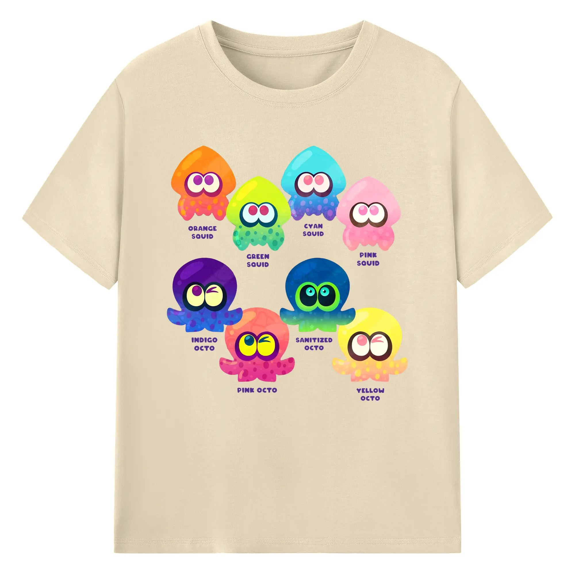 スプラトゥーン3 ミニイカ アイコン 限定版 - 綿100% ヴィンテージ風 半袖Tシャツ ・ フロントプリント ・ 柔らか肌触り ・ 通気性 快適 ・ スポーツ カジュアル 外出用