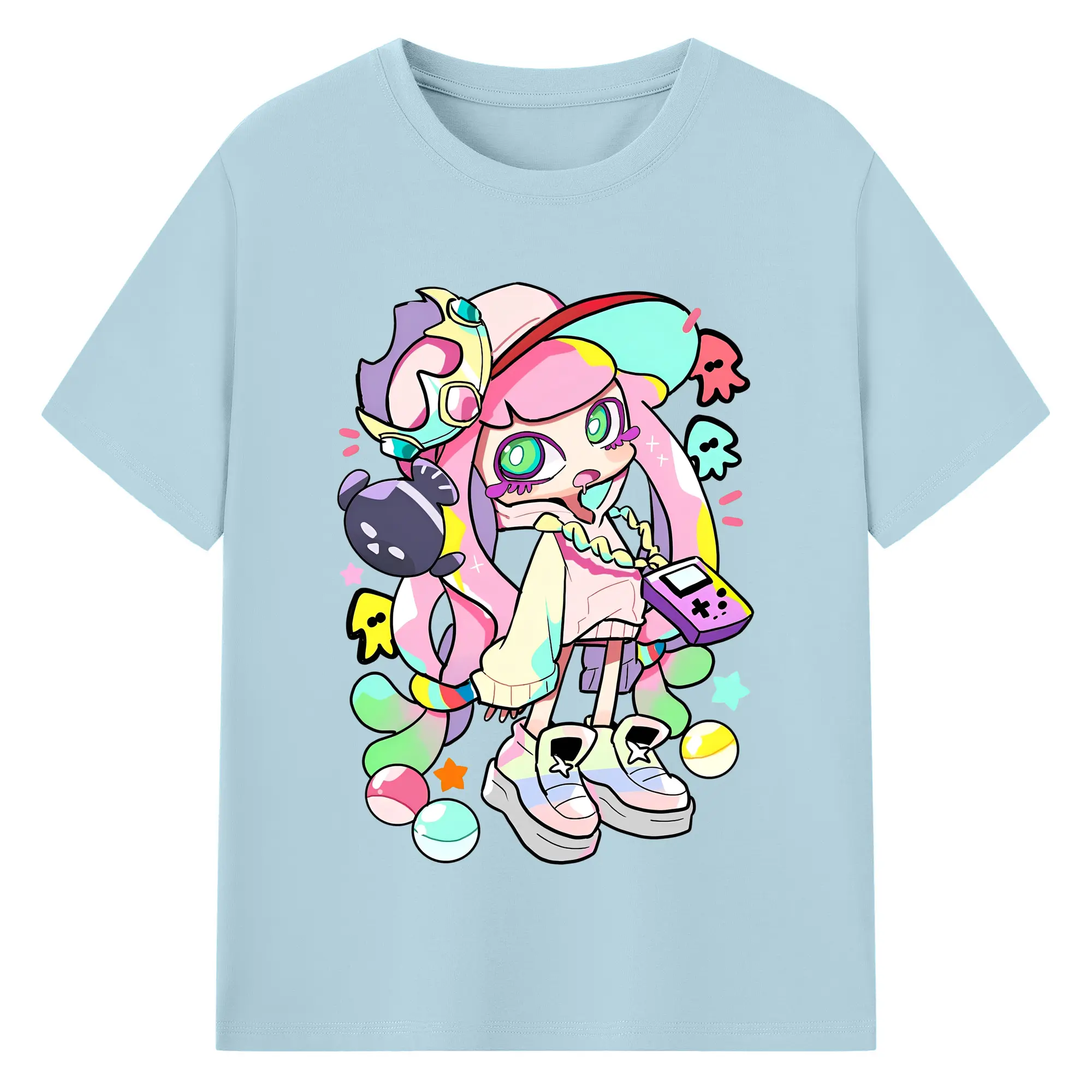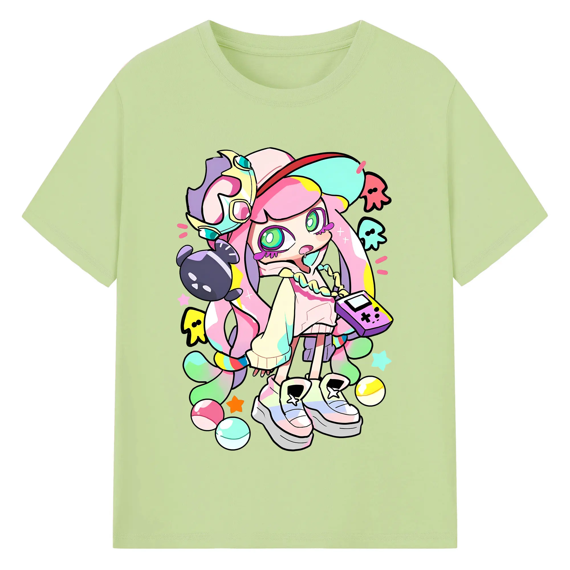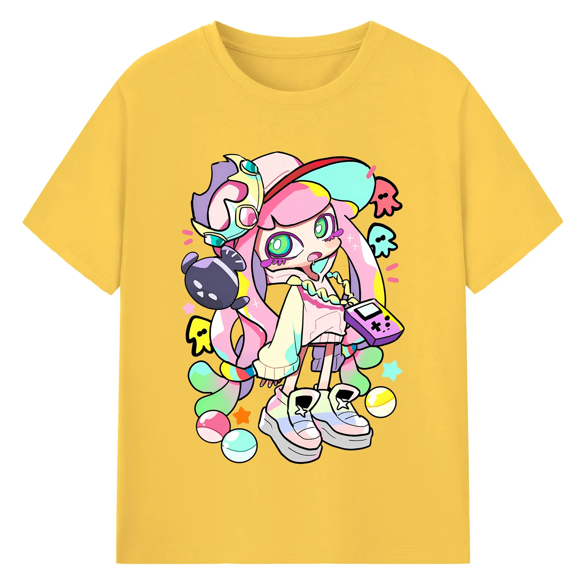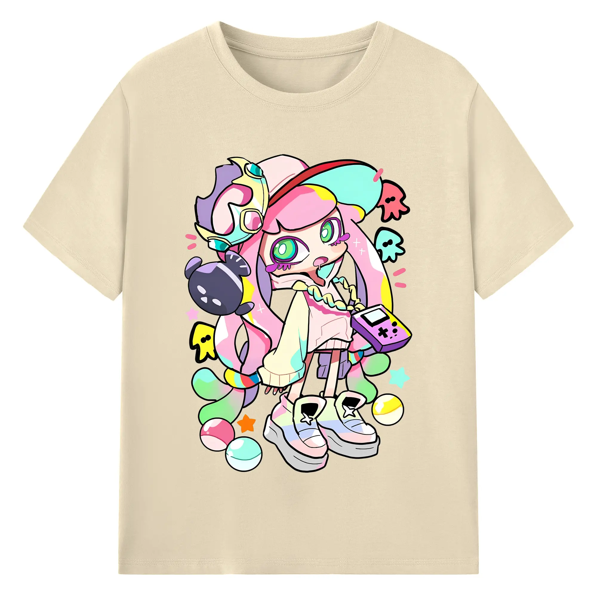スプラトゥーン3 パル子ちゃん かわいいキャラクターグッズ - 綿100% ヴィンテージ風 半袖Tシャツ ・ フロントプリント ・ 柔らか肌触り ・ 通気性 快適 ・ スポーツ カジュアル 外出用