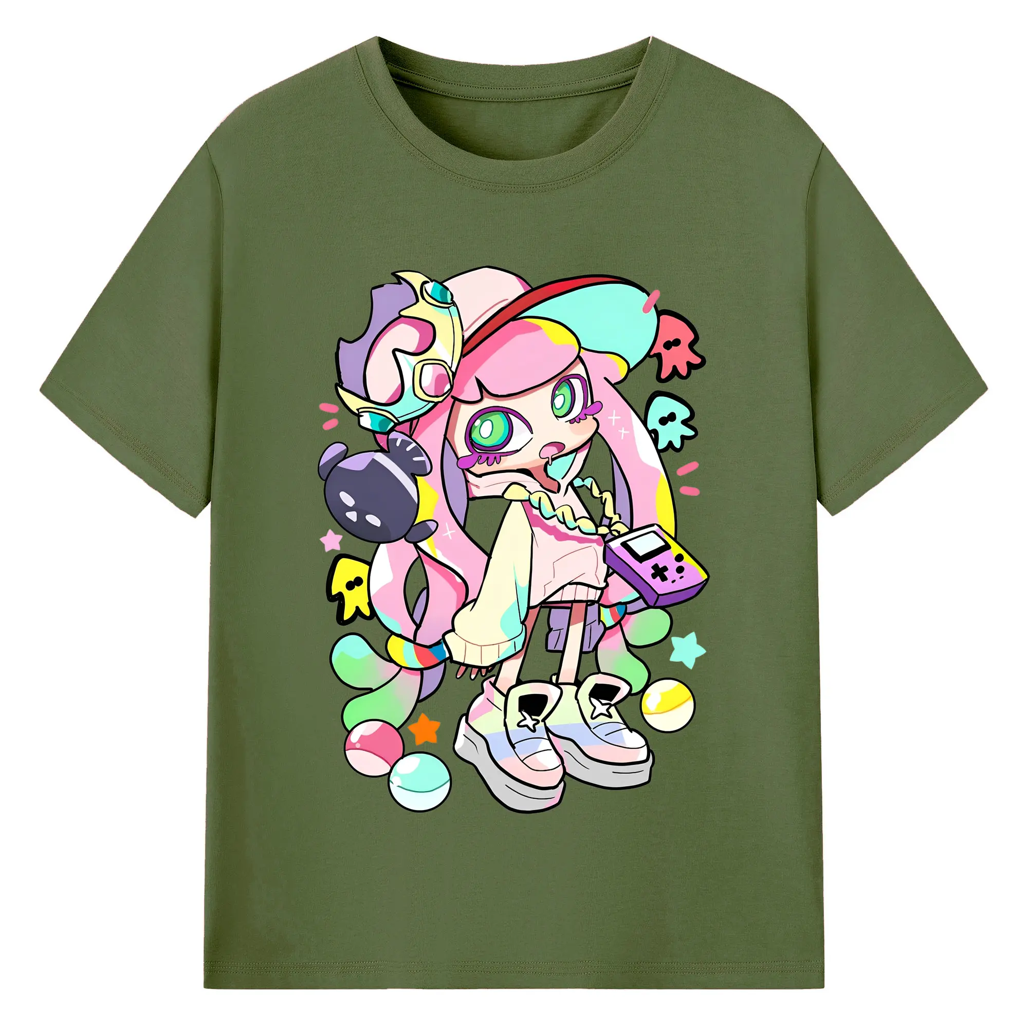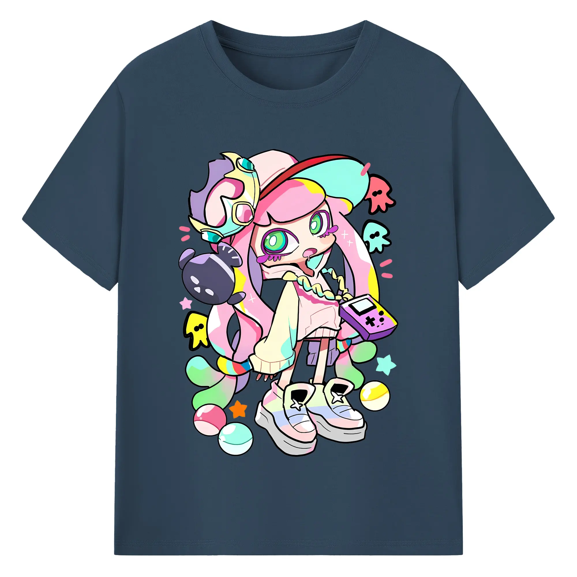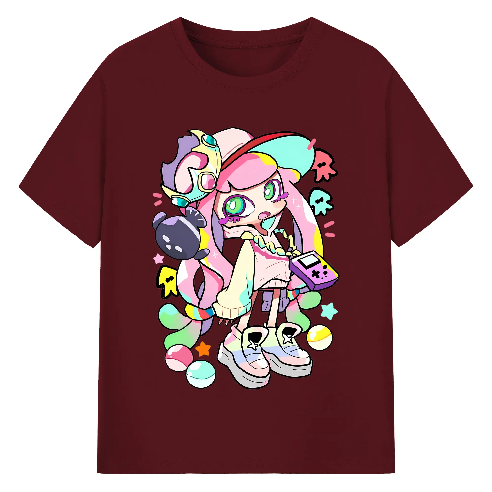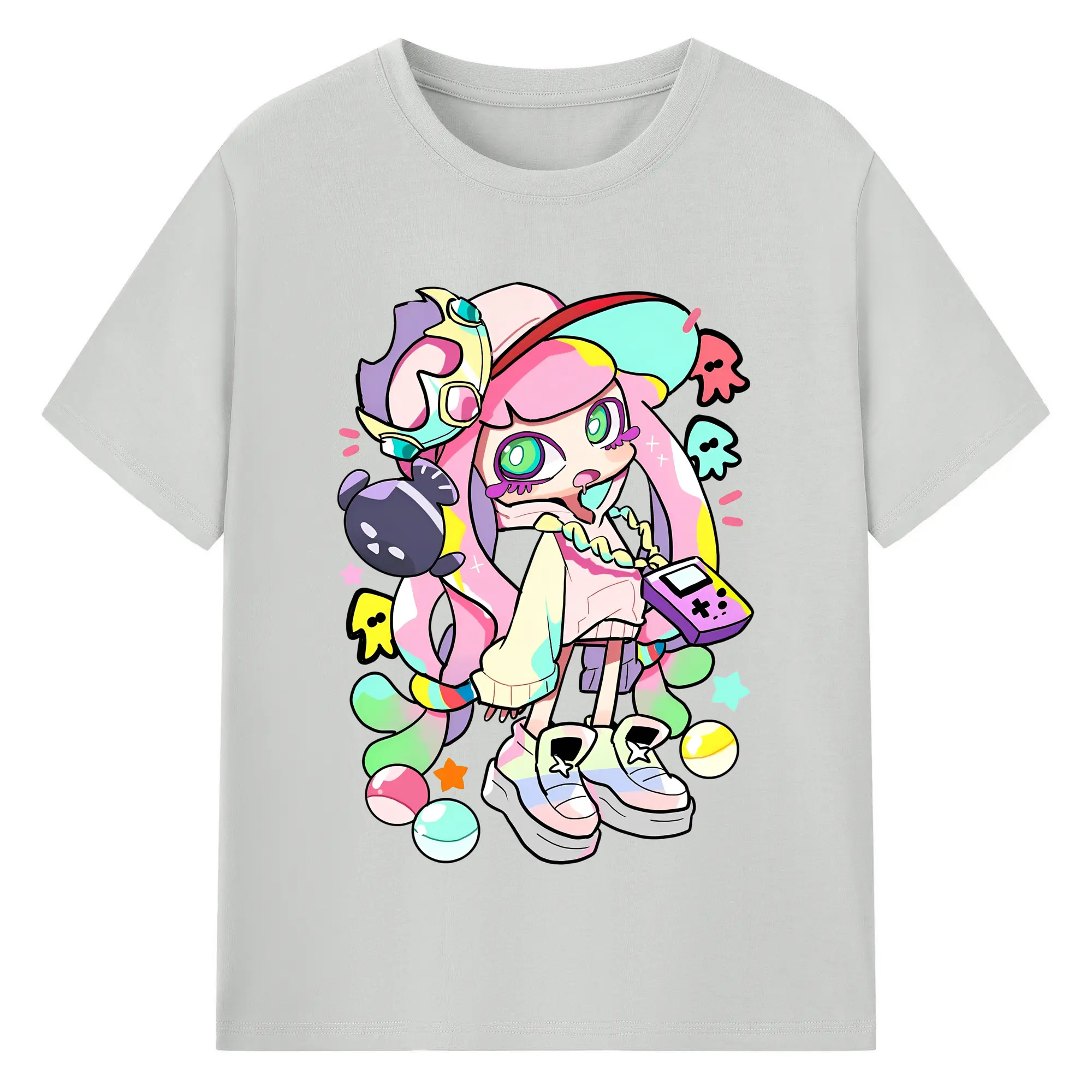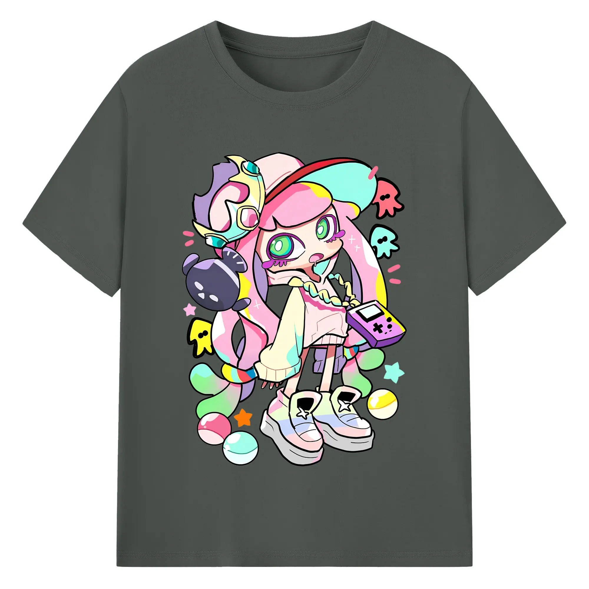 スプラトゥーン3 パル子ちゃん かわいいキャラクターグッズ - 綿100% ヴィンテージ風 半袖Tシャツ ・ フロントプリント ・ 柔らか肌触り ・ 通気性 快適 ・ スポーツ カジュアル 外出用