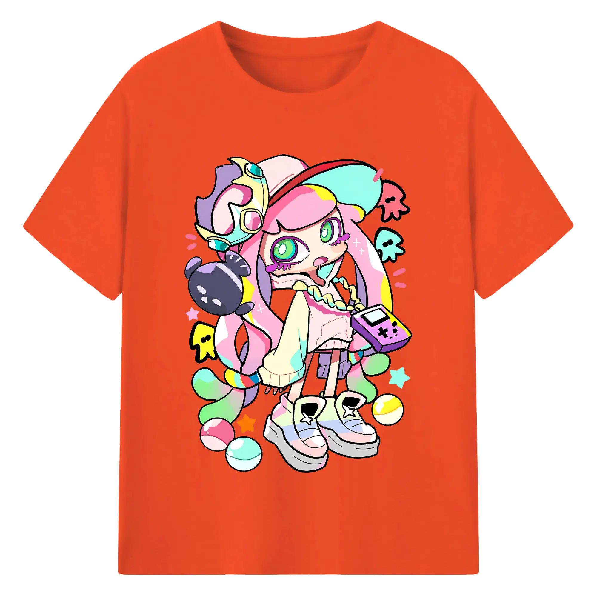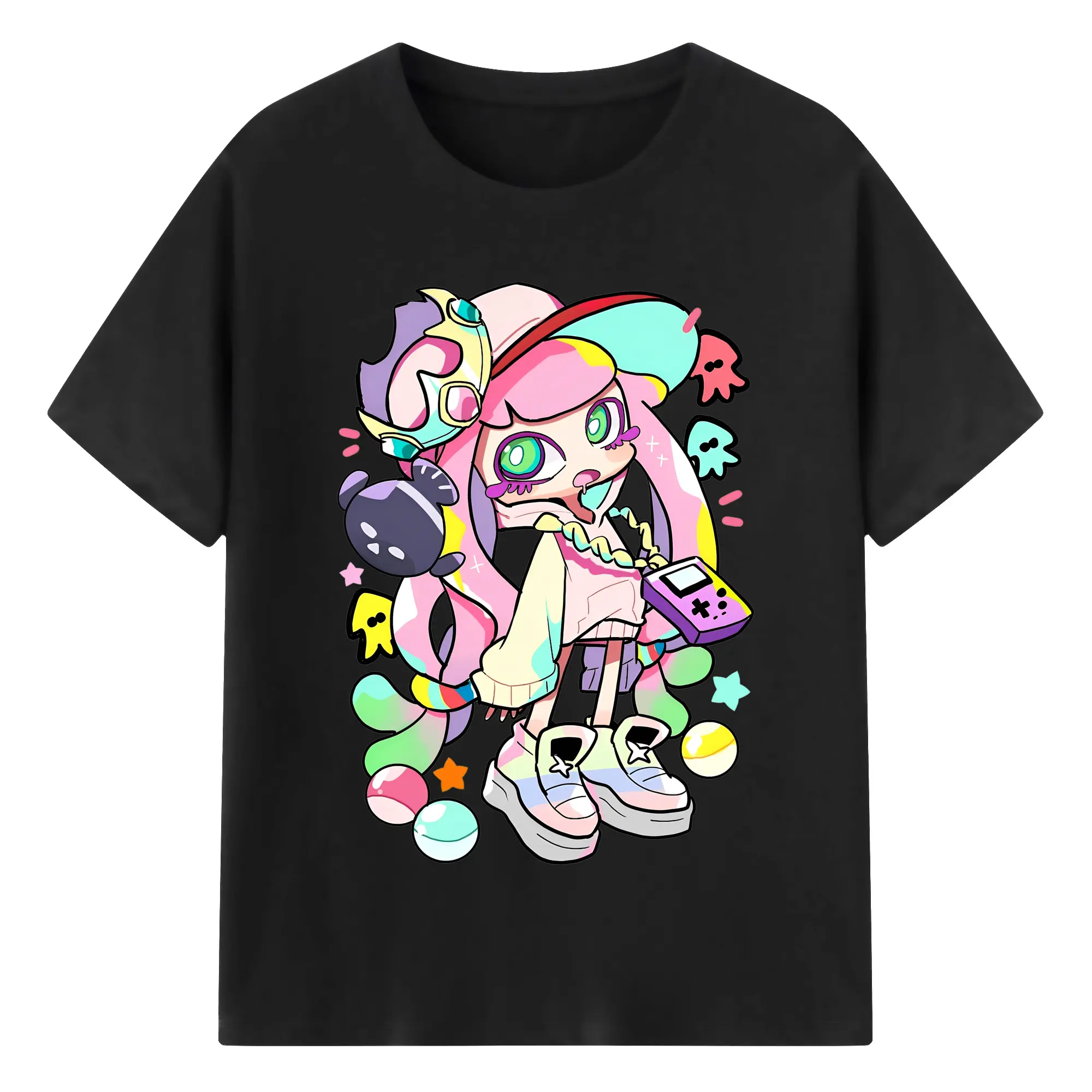 スプラトゥーン3 ミニイカ アイコン 限定版 - 綿100% 半袖Tシャツ ・ フロントプリント ・ 快適 通気性 ・ 日常使い 散歩 スポーツ用