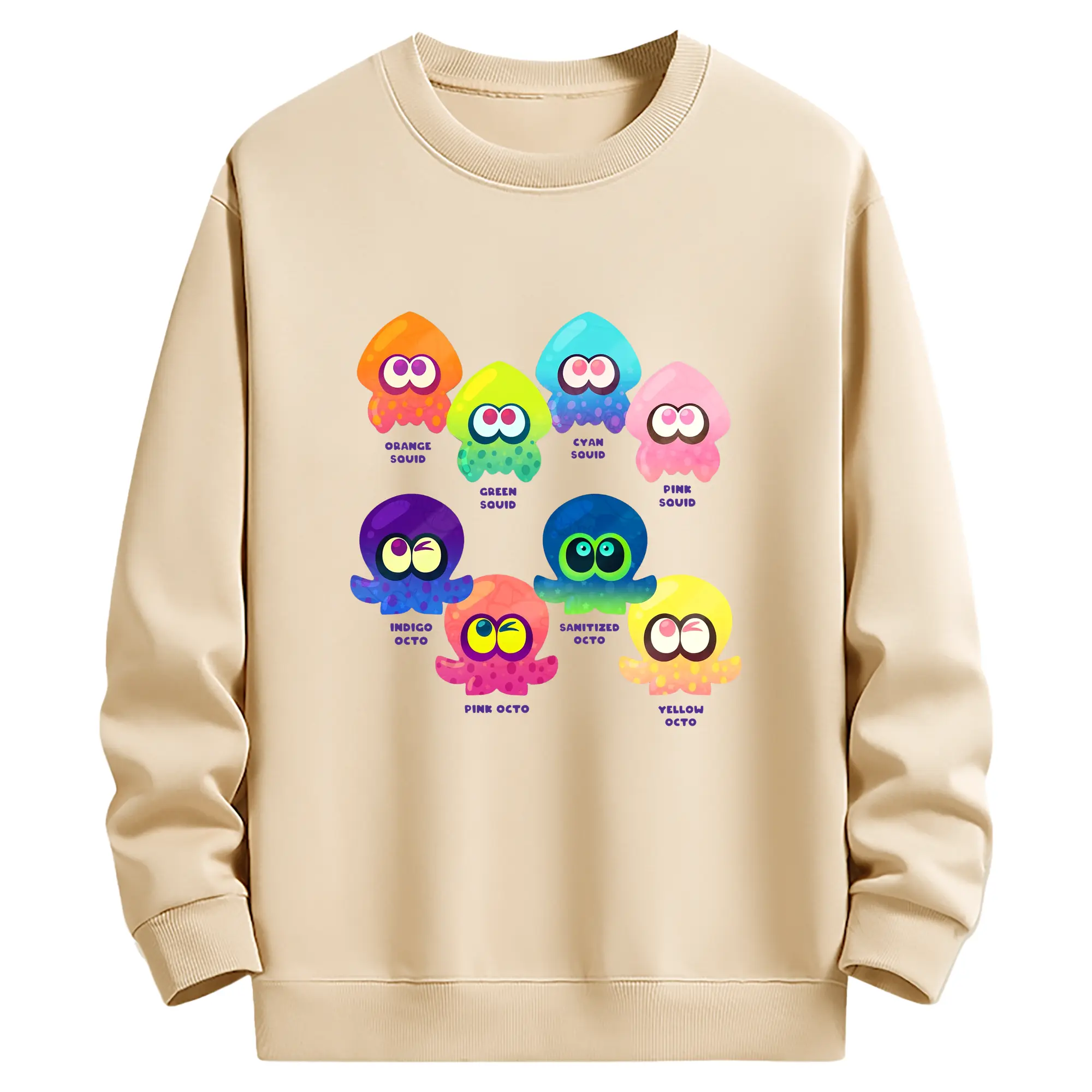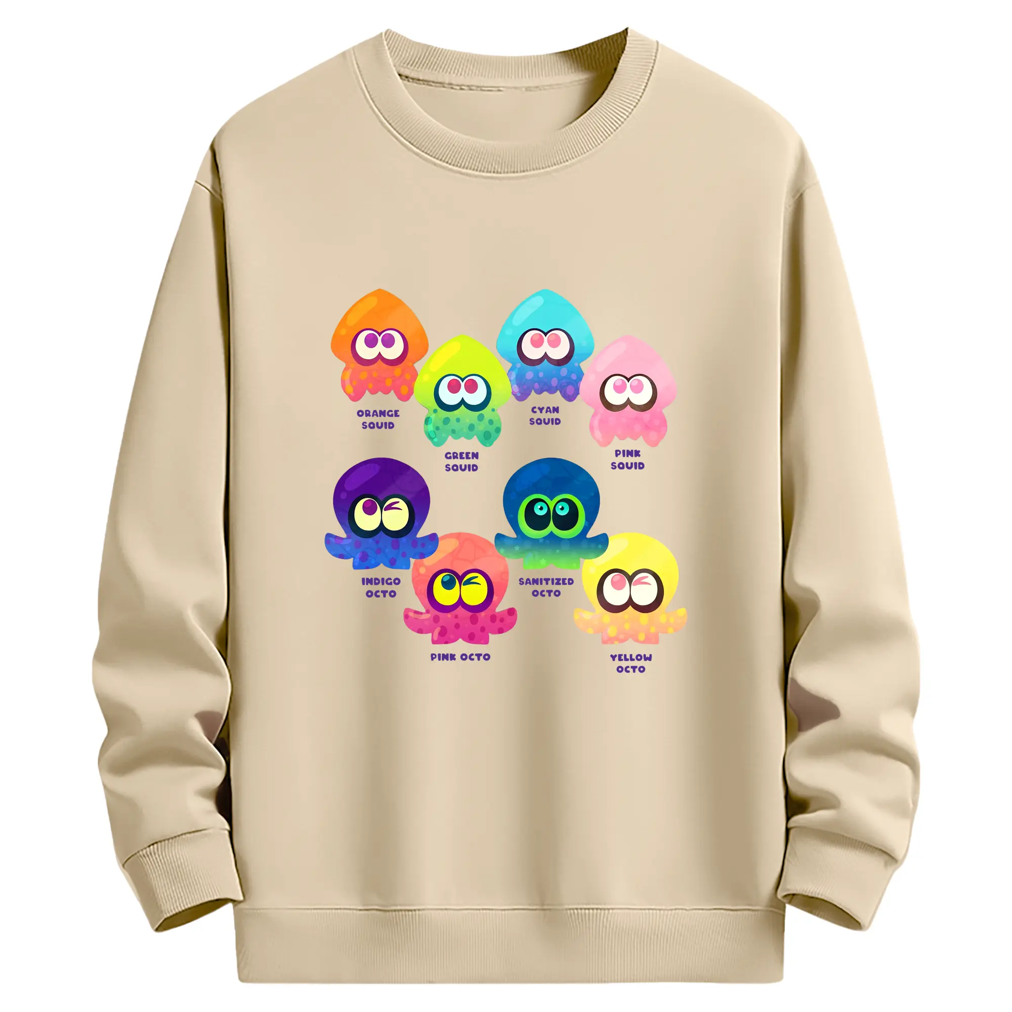 サンリオ グッズ風 カラフルプリント - 高品質 クルーネック スウェット ・ コットン59% ポリエステル41% ・ ユニセックス 長袖 トレーナー ・ カジュアル デイリー スポーツ 散歩用