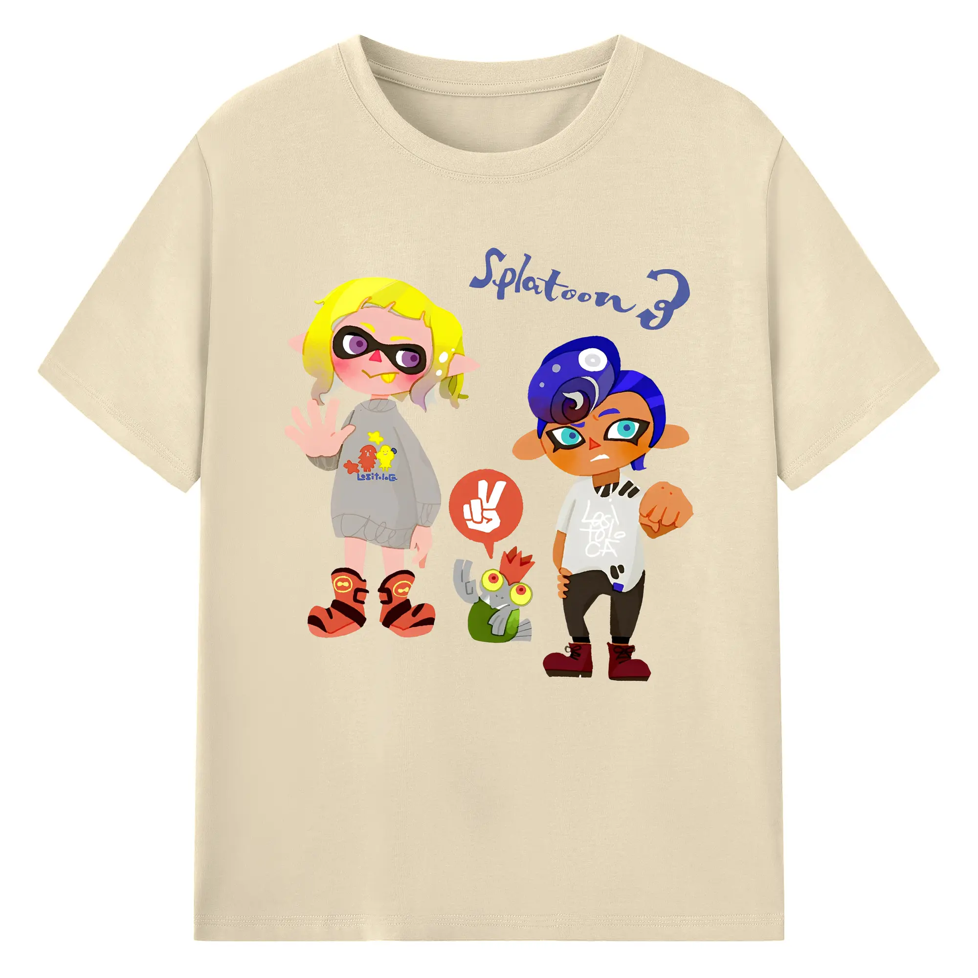 スプラトゥーン3 人気キャラ 限定 - 綿100% ヴィンテージ風 半袖Tシャツ ・ フロントプリント ・ 柔らか肌触り ・ 通気性 快適 ・ スポーツ カジュアル 外出用