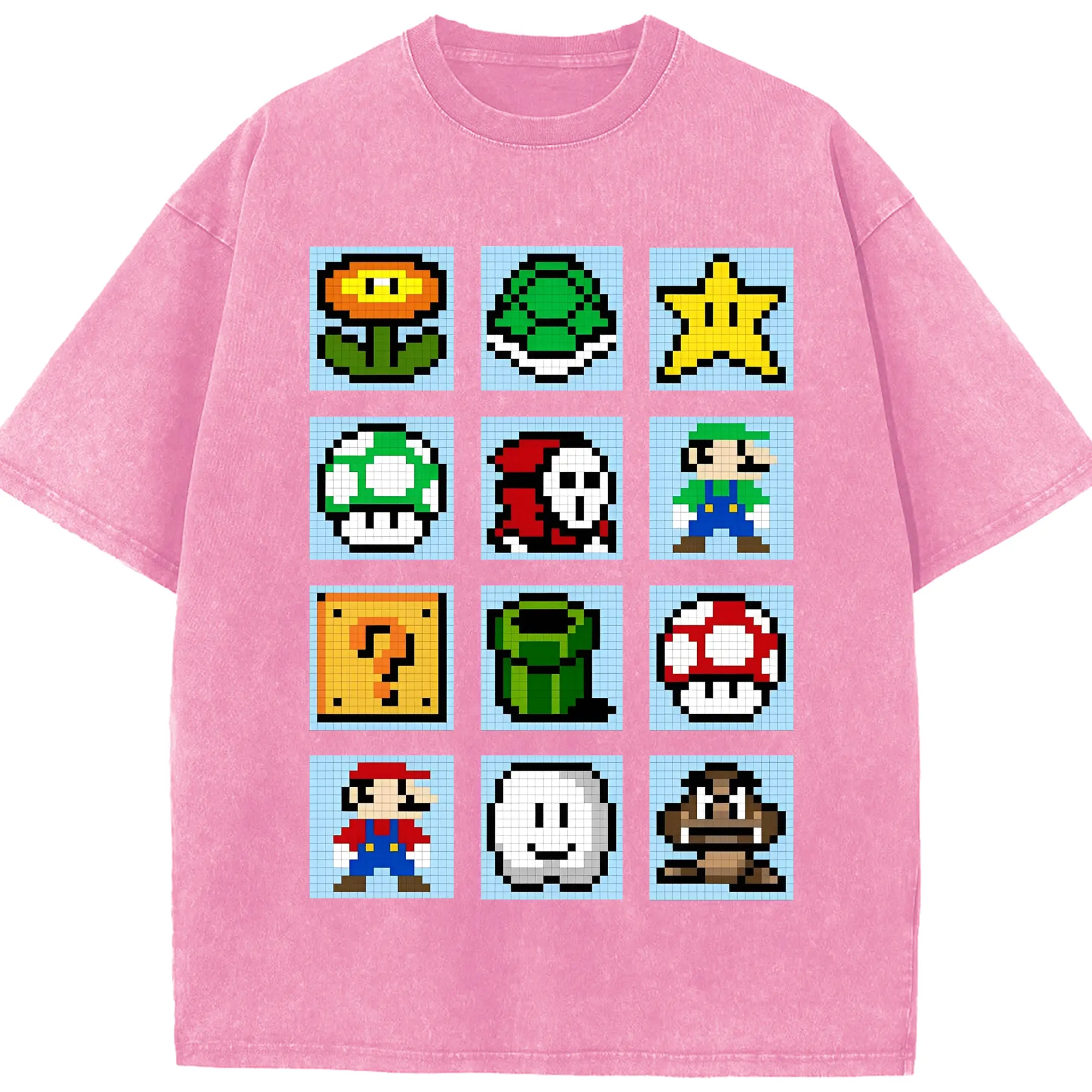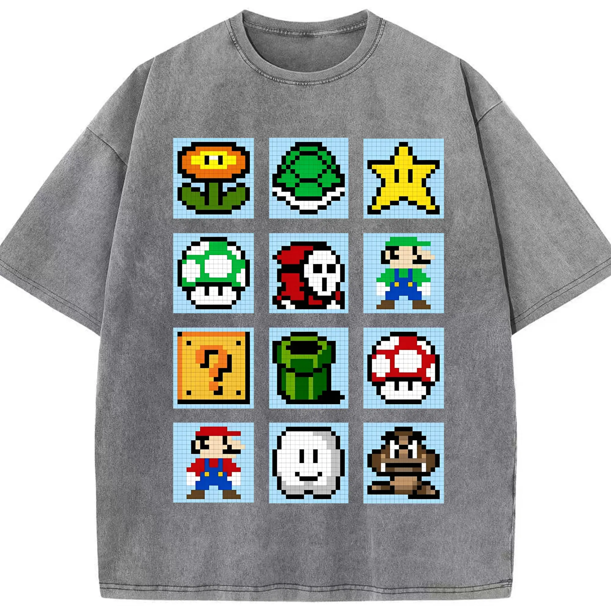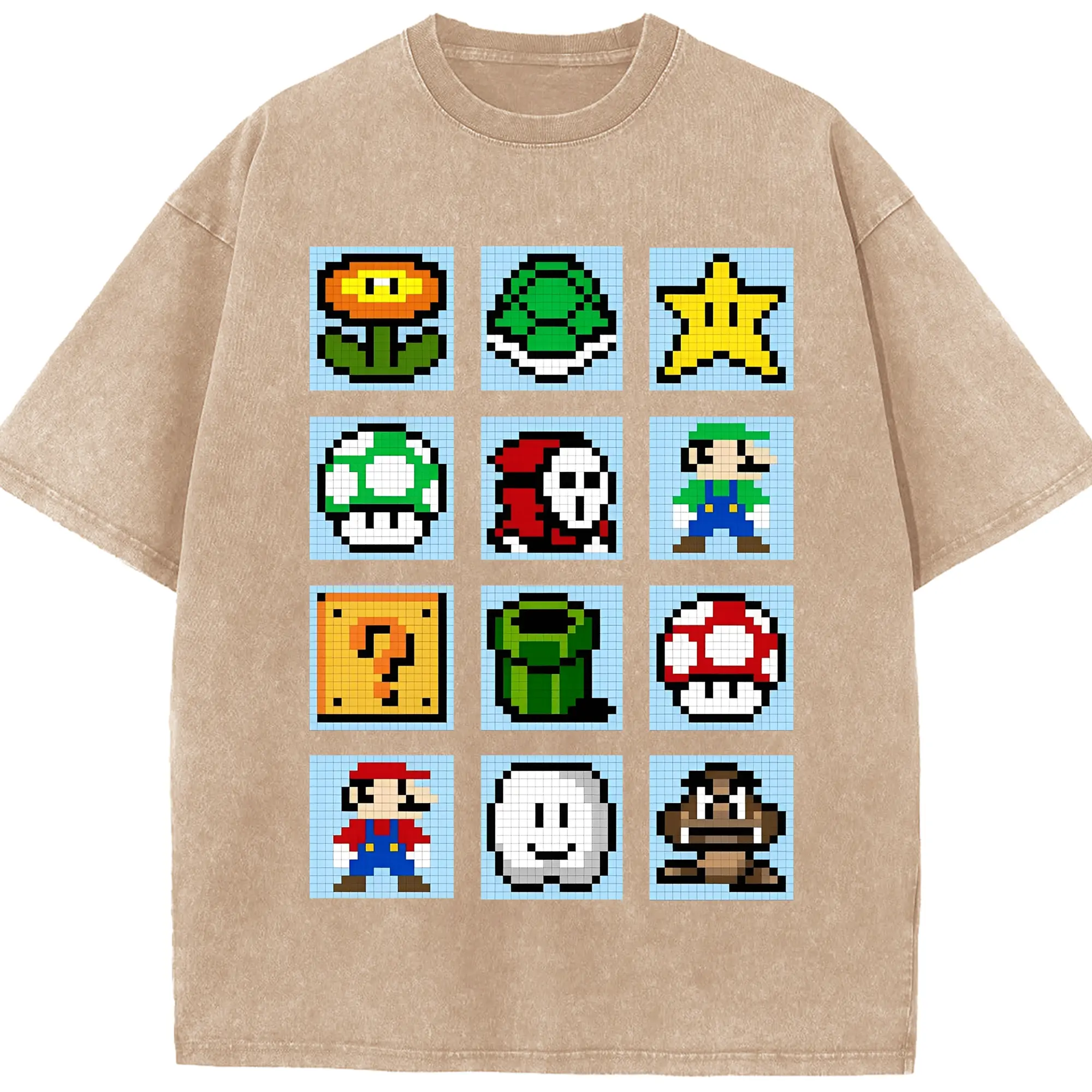 スーパーマリオ×8ビット グラフィックアート - 綿100% ヴィンテージ風 半袖Tシャツ ・ フロントプリント ・ 柔らか肌触り ・ 通気性 快適 ・ スポーツ カジュアル 外出用