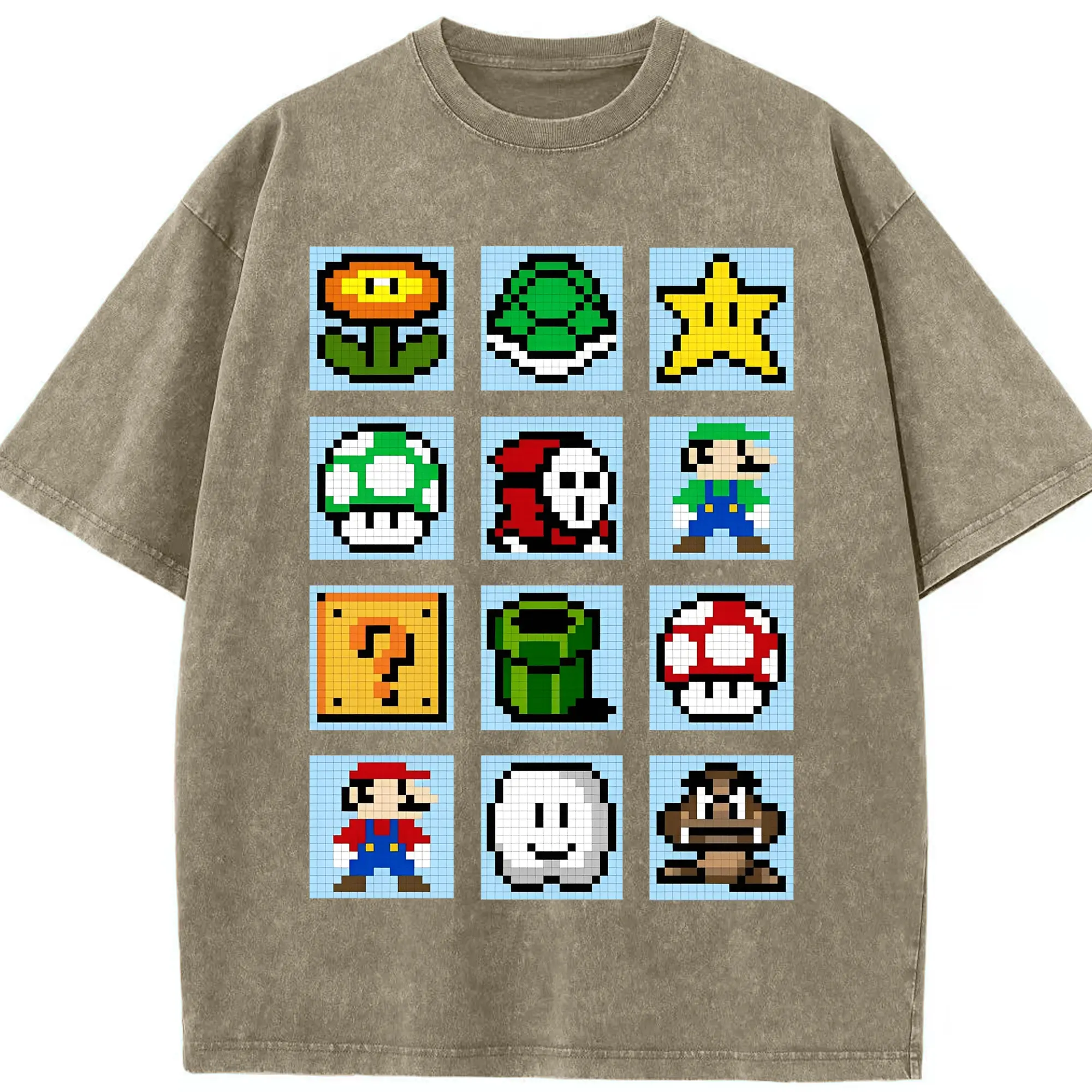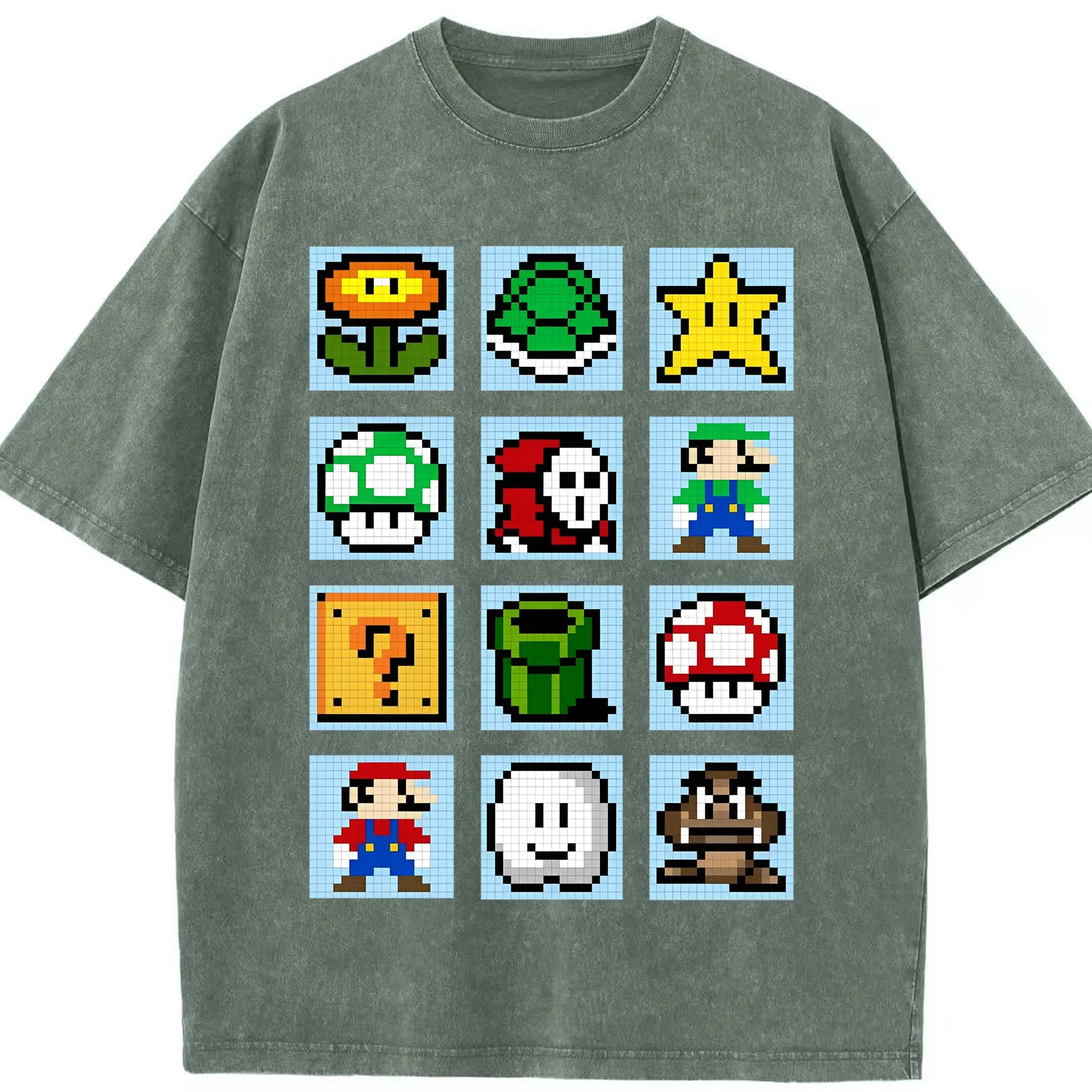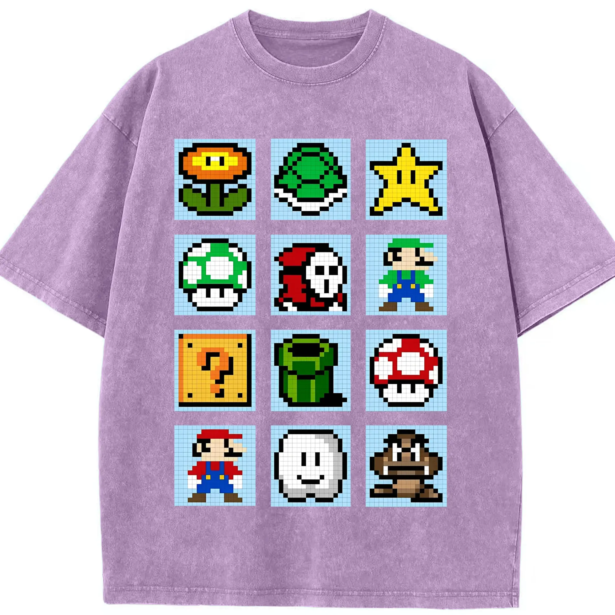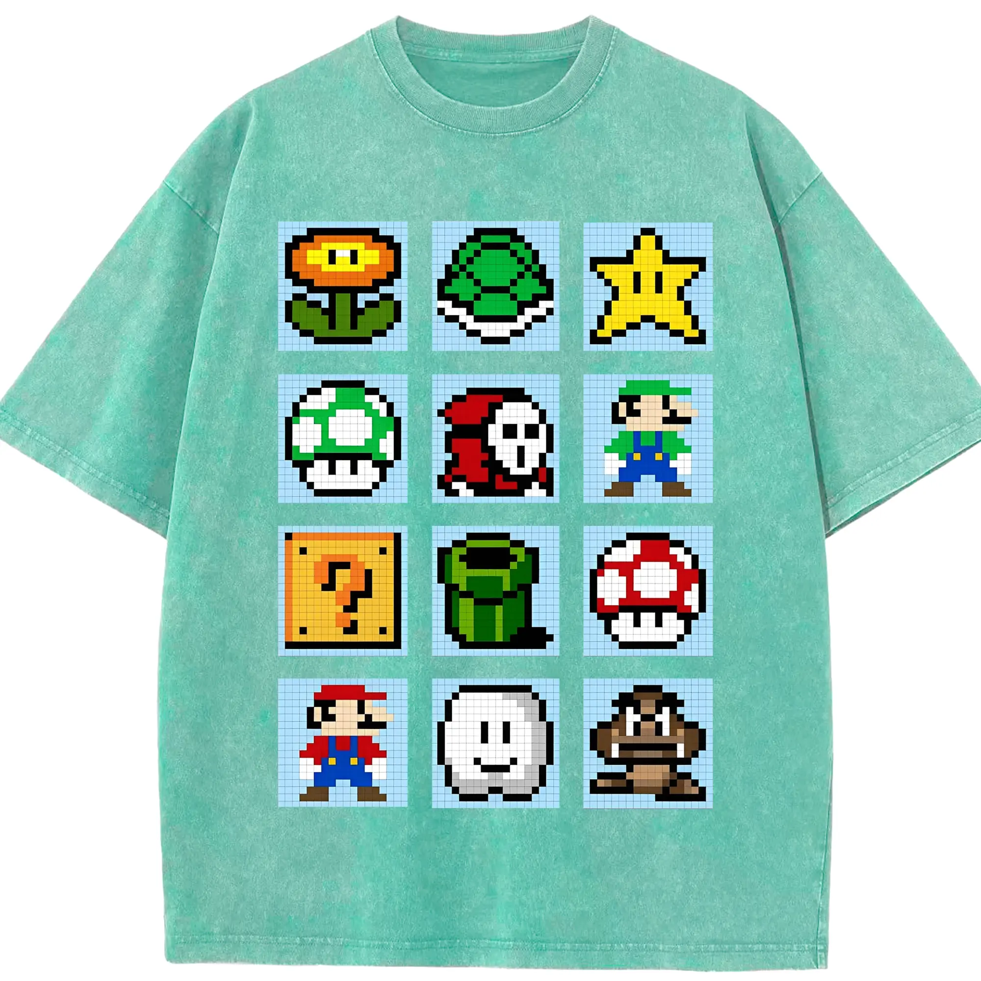 スーパーマリオ×8ビット グラフィックアート - 綿100% ヴィンテージ風 半袖Tシャツ ・ フロントプリント ・ 柔らか肌触り ・ 通気性 快適 ・ スポーツ カジュアル 外出用
