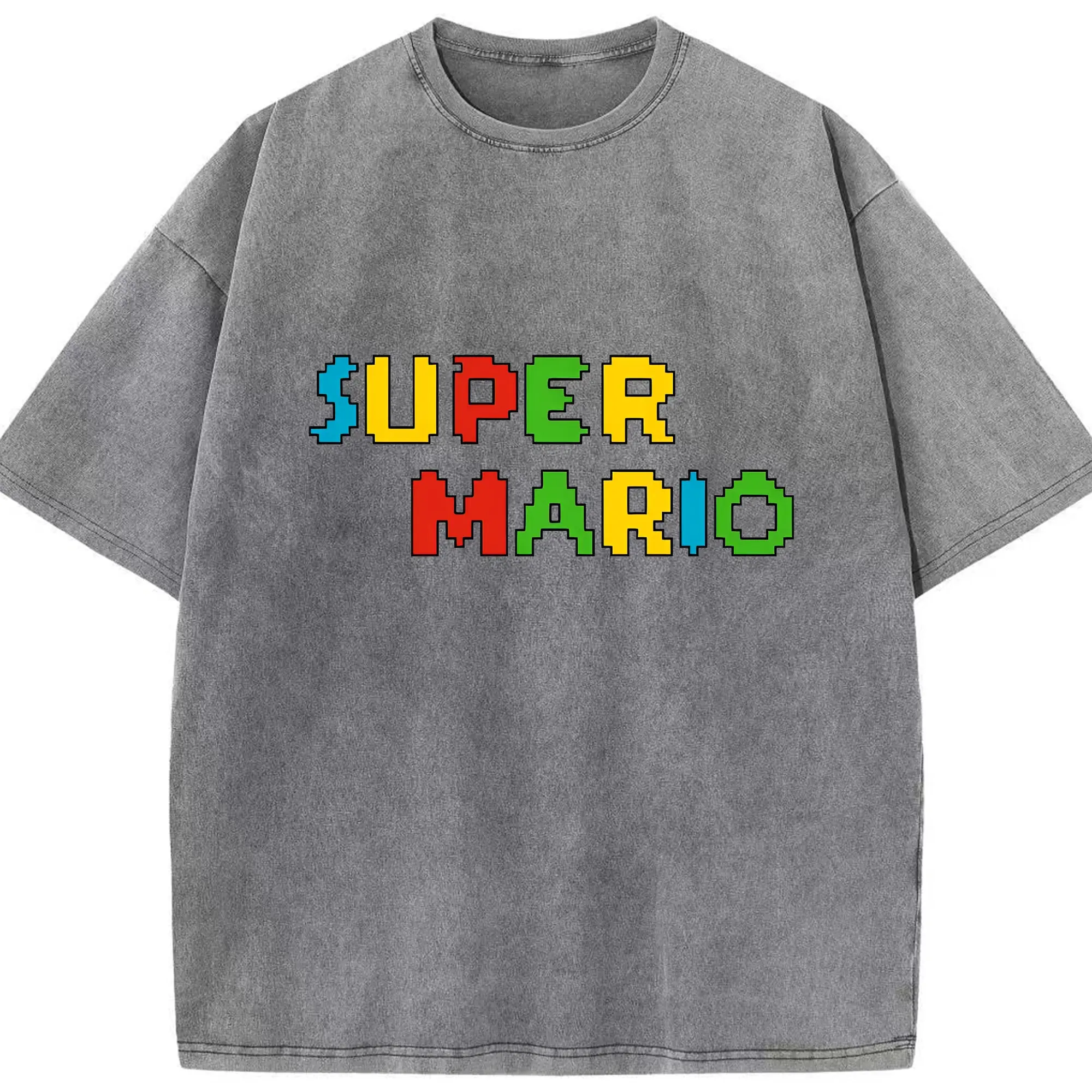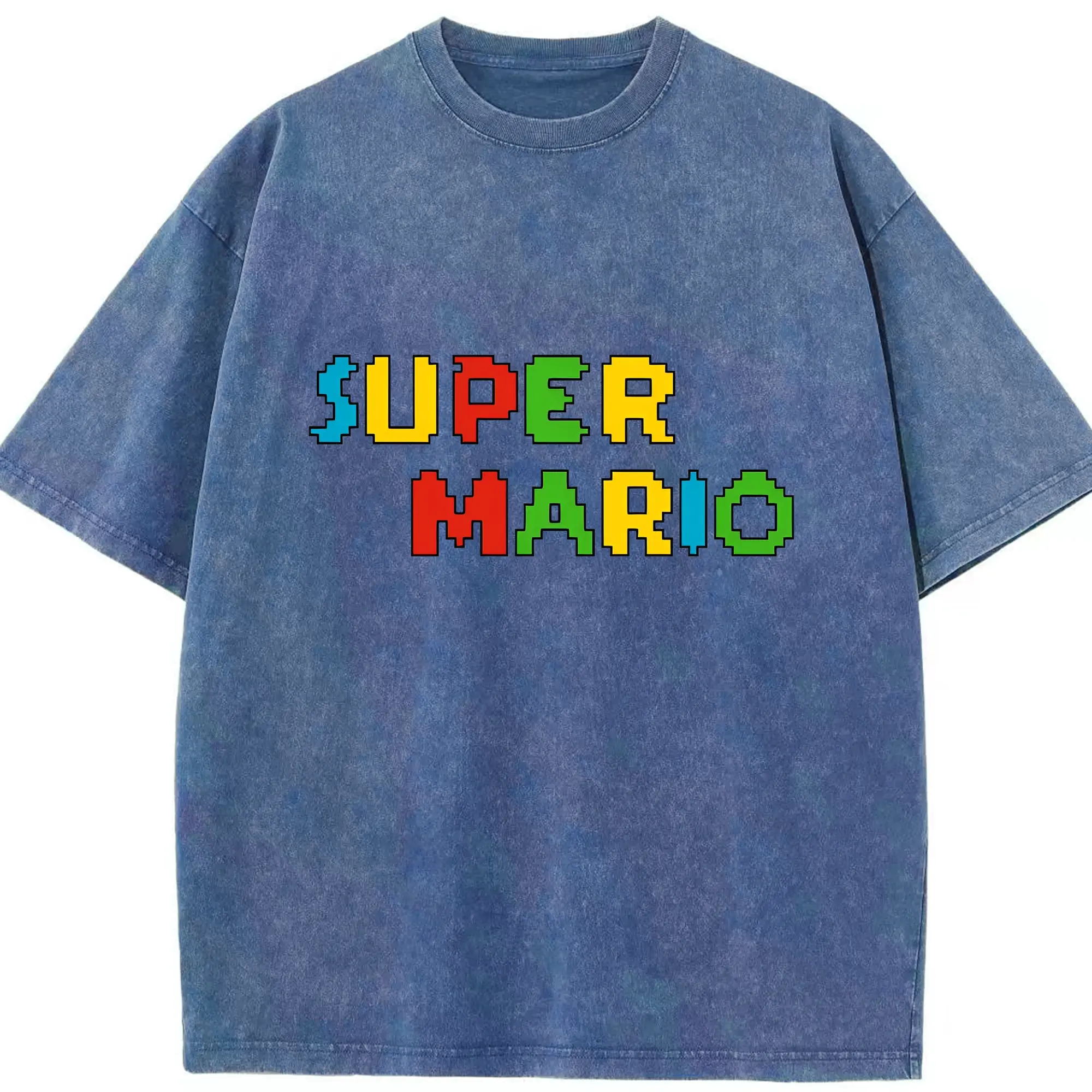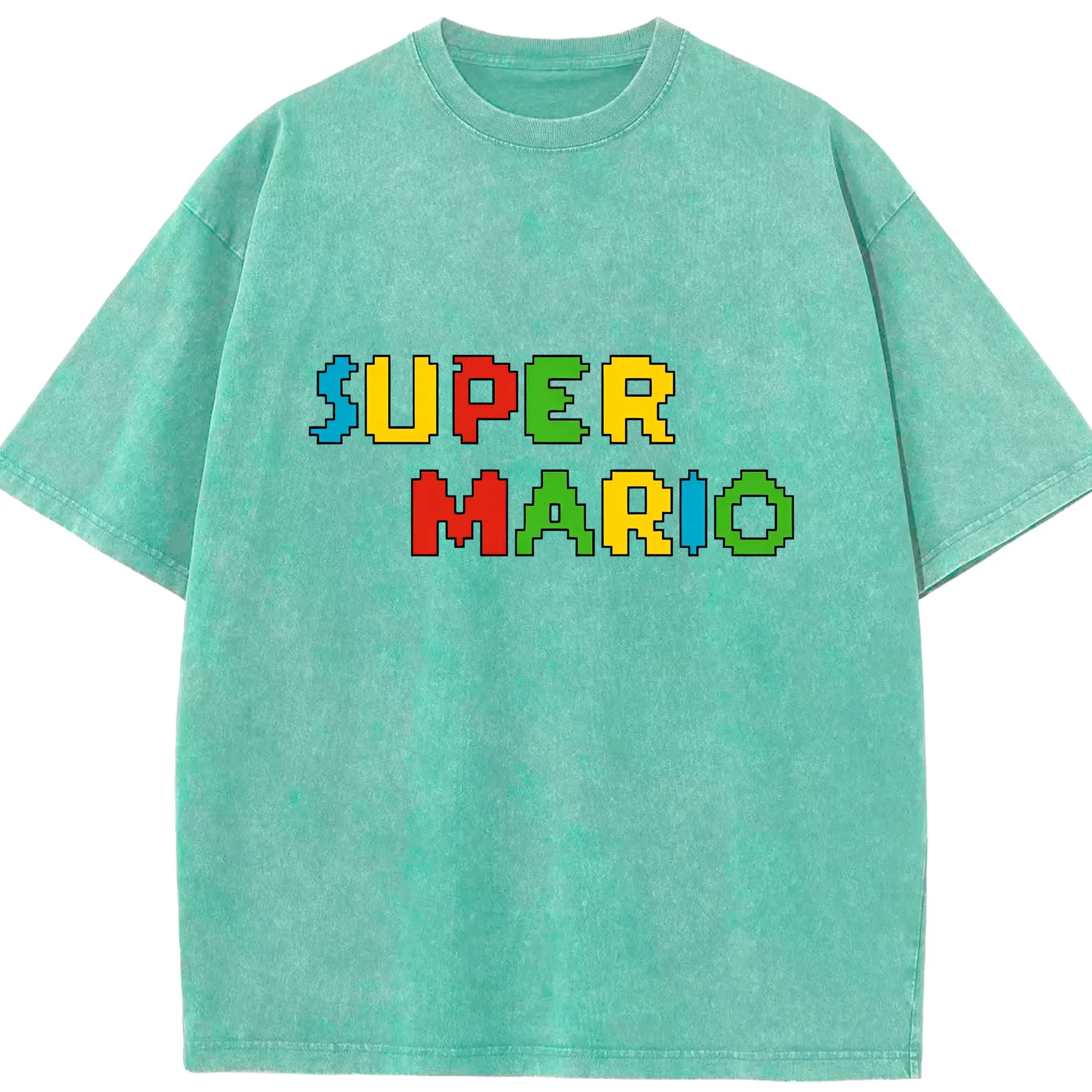 スーパーマリオ ロゴデザイン ファッション - 綿100% 半袖Tシャツ ・ フロントプリント ・ 快適 通気性 ・ 日常使い 散歩 スポーツ用