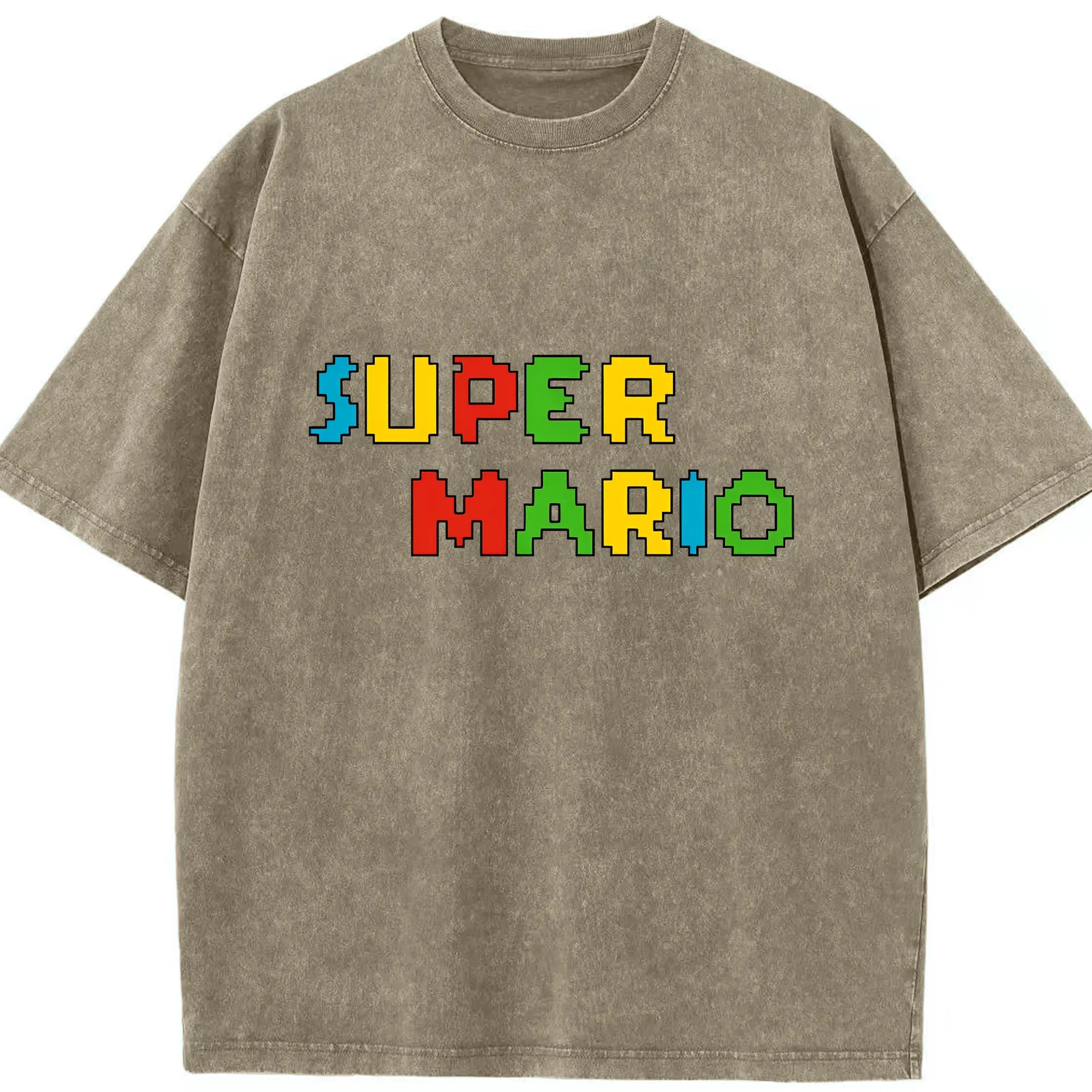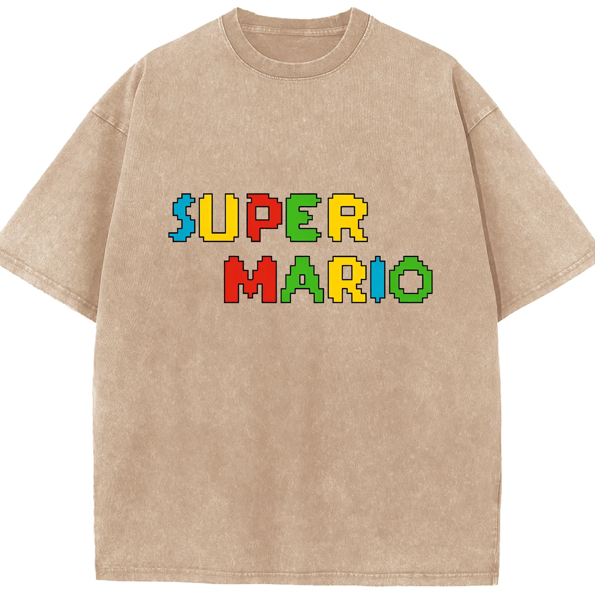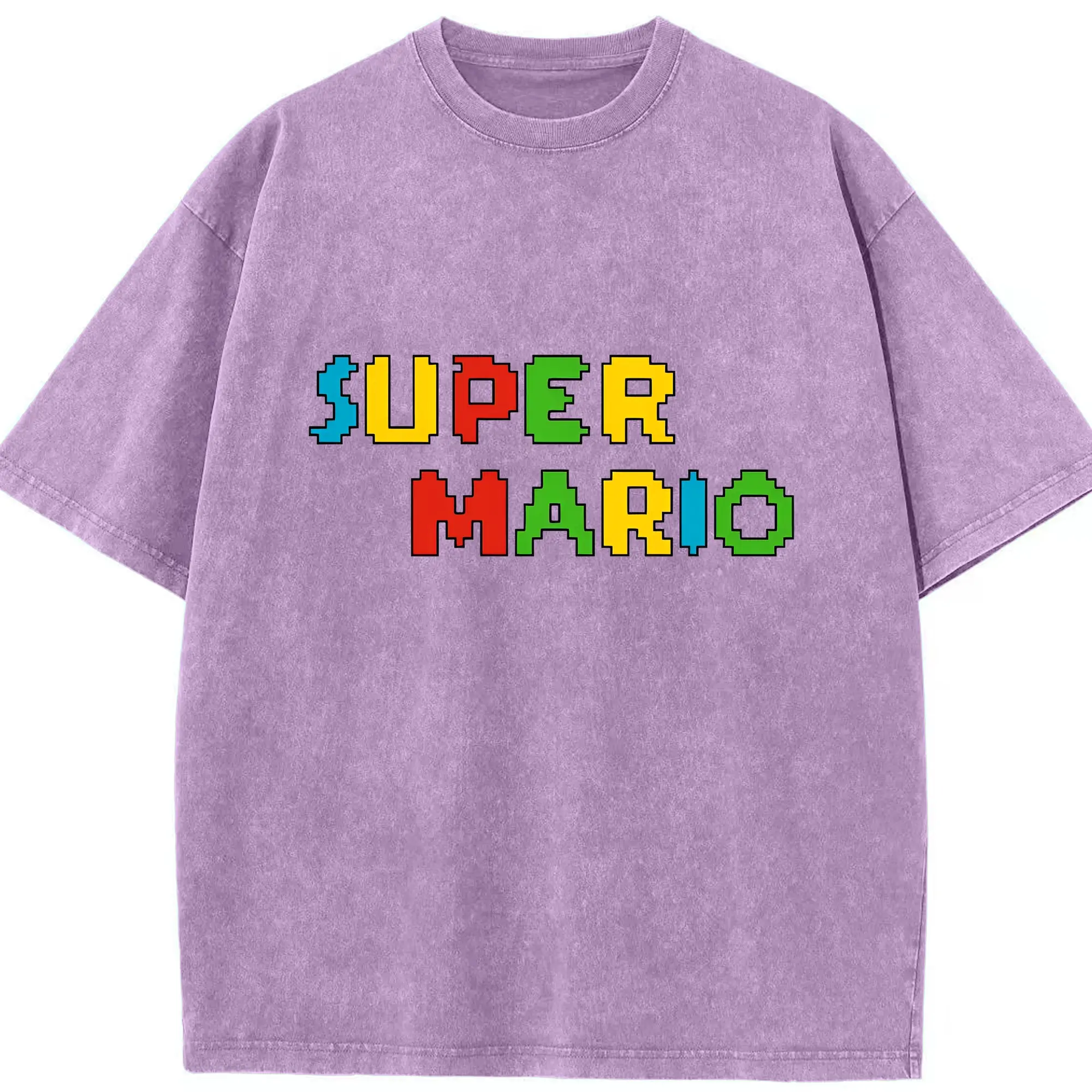 スーパーマリオ ロゴデザイン ファッション - 綿100% 半袖Tシャツ ・ フロントプリント ・ 快適 通気性 ・ 日常使い 散歩 スポーツ用
