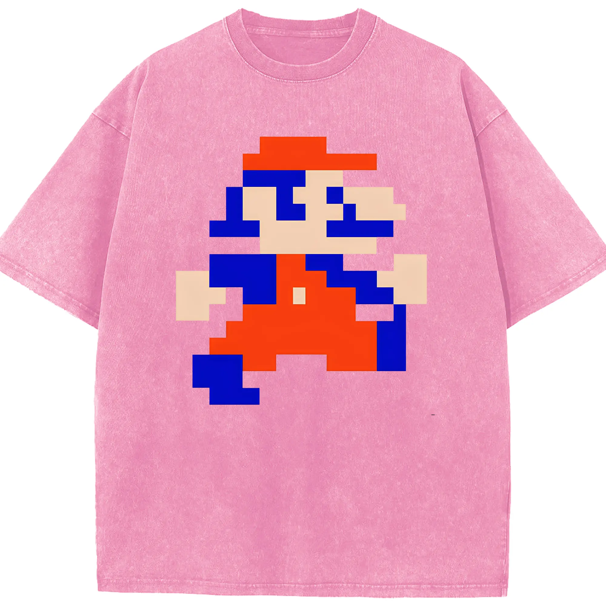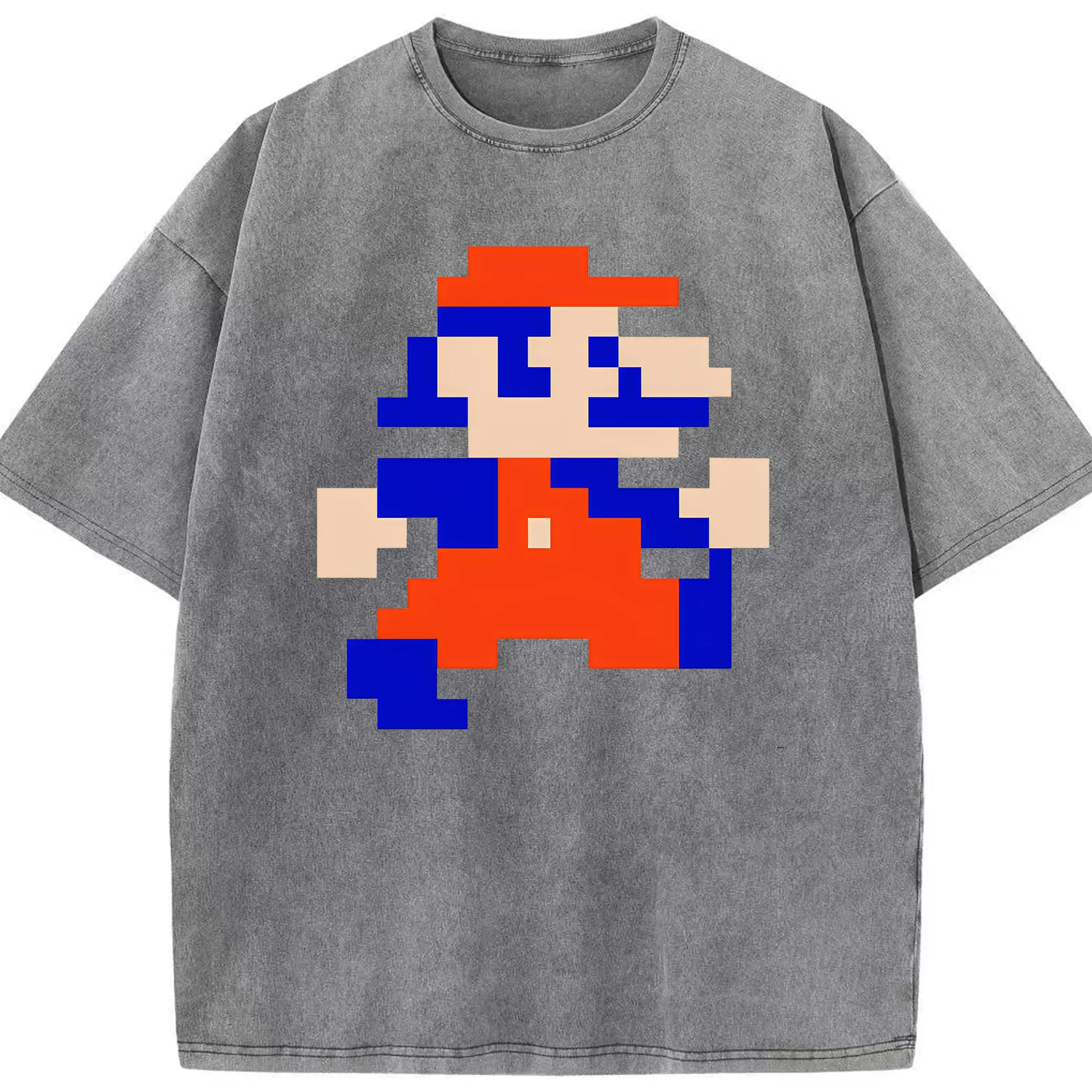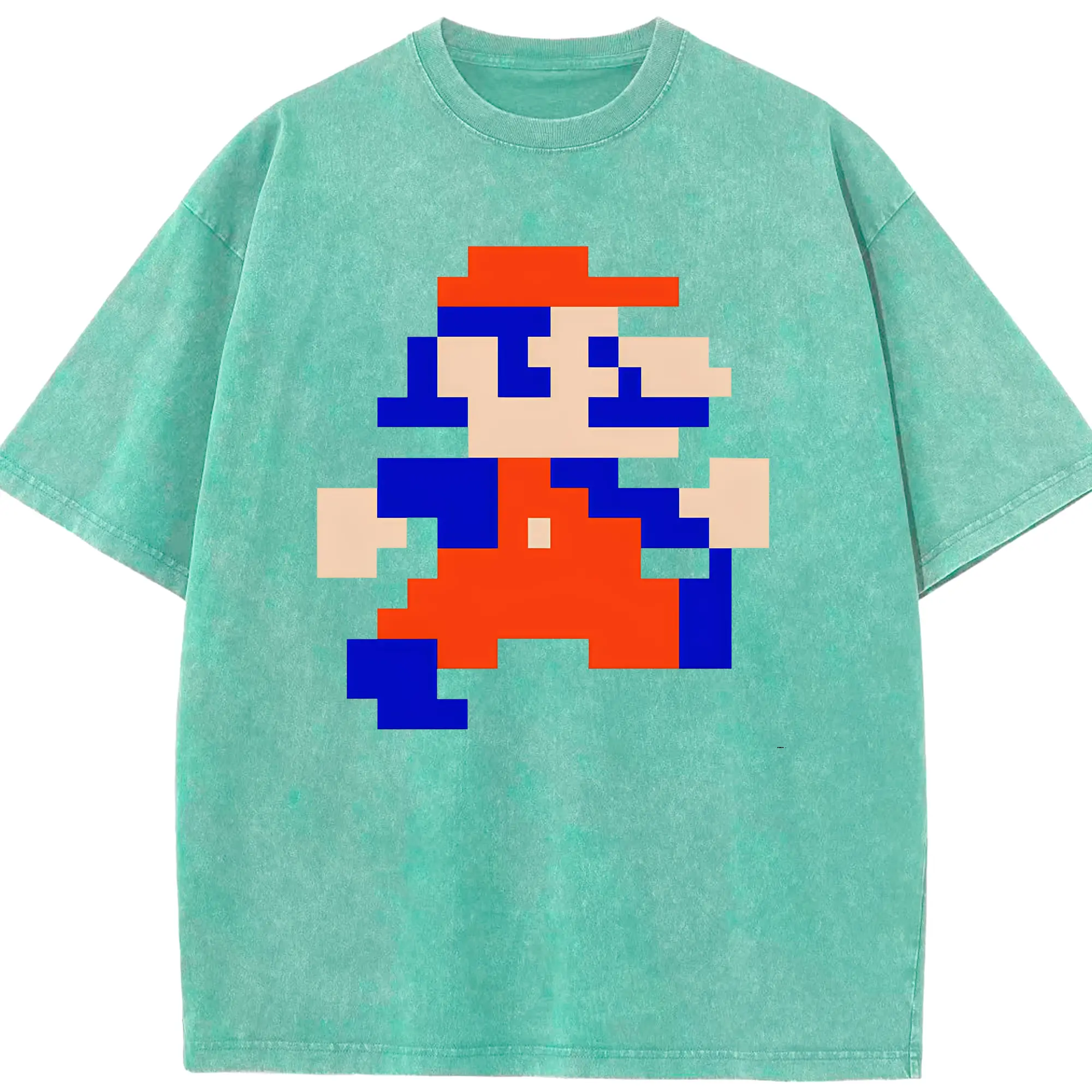 スーパーマリオ×8ビット グラフィックアート - 綿100% ヴィンテージ風 半袖Tシャツ ・ フロントプリント ・ 柔らか肌触り ・ 通気性 快適 ・ スポーツ カジュアル 外出用