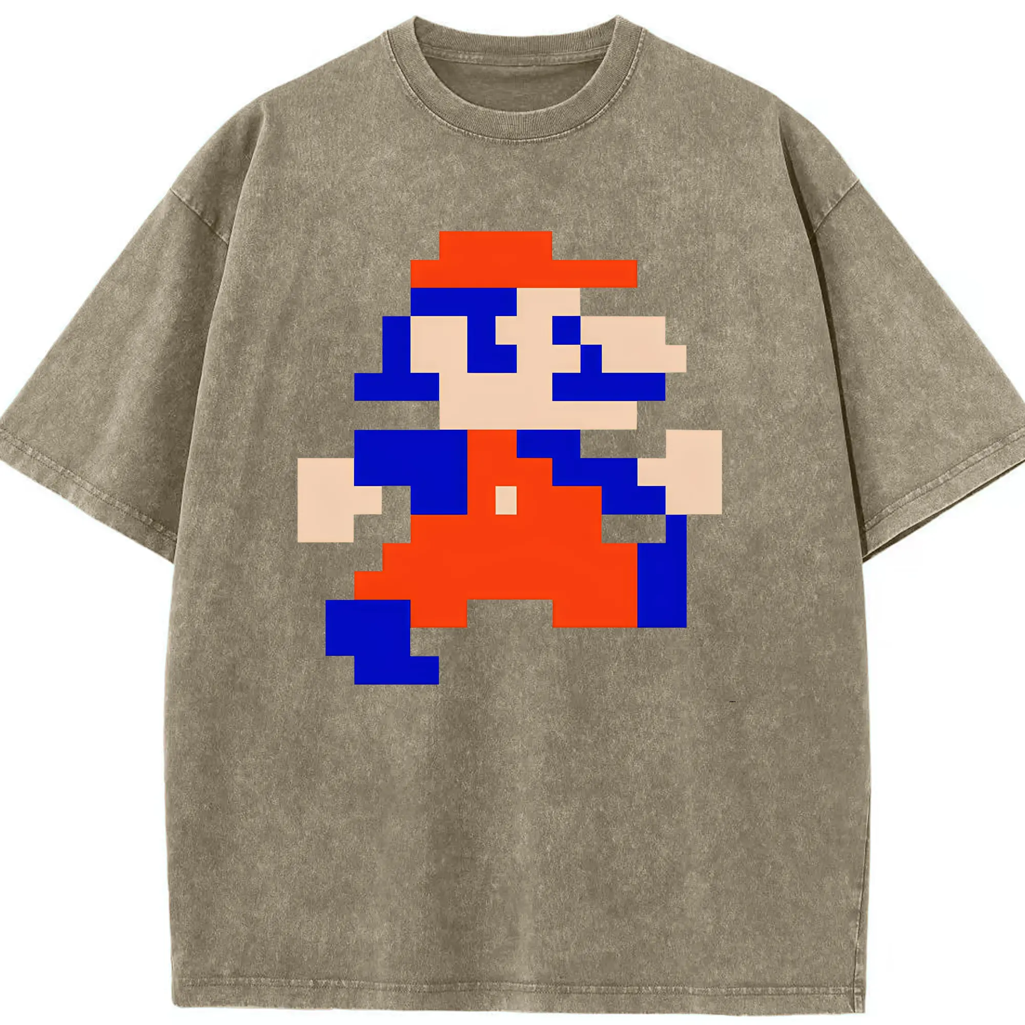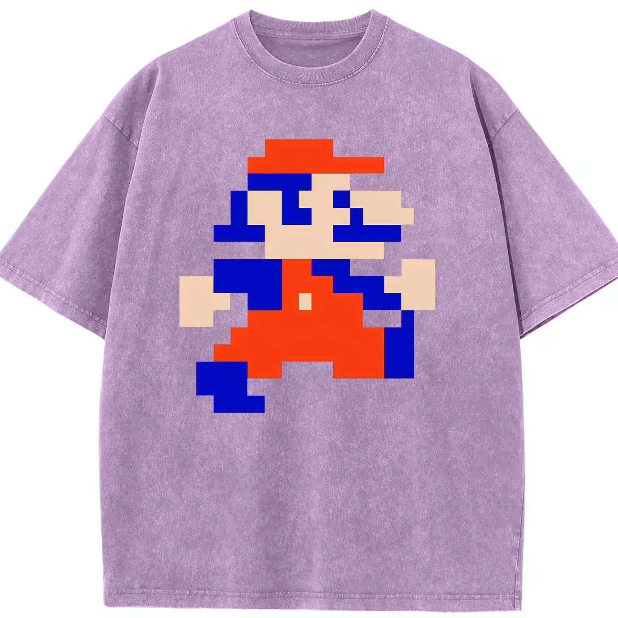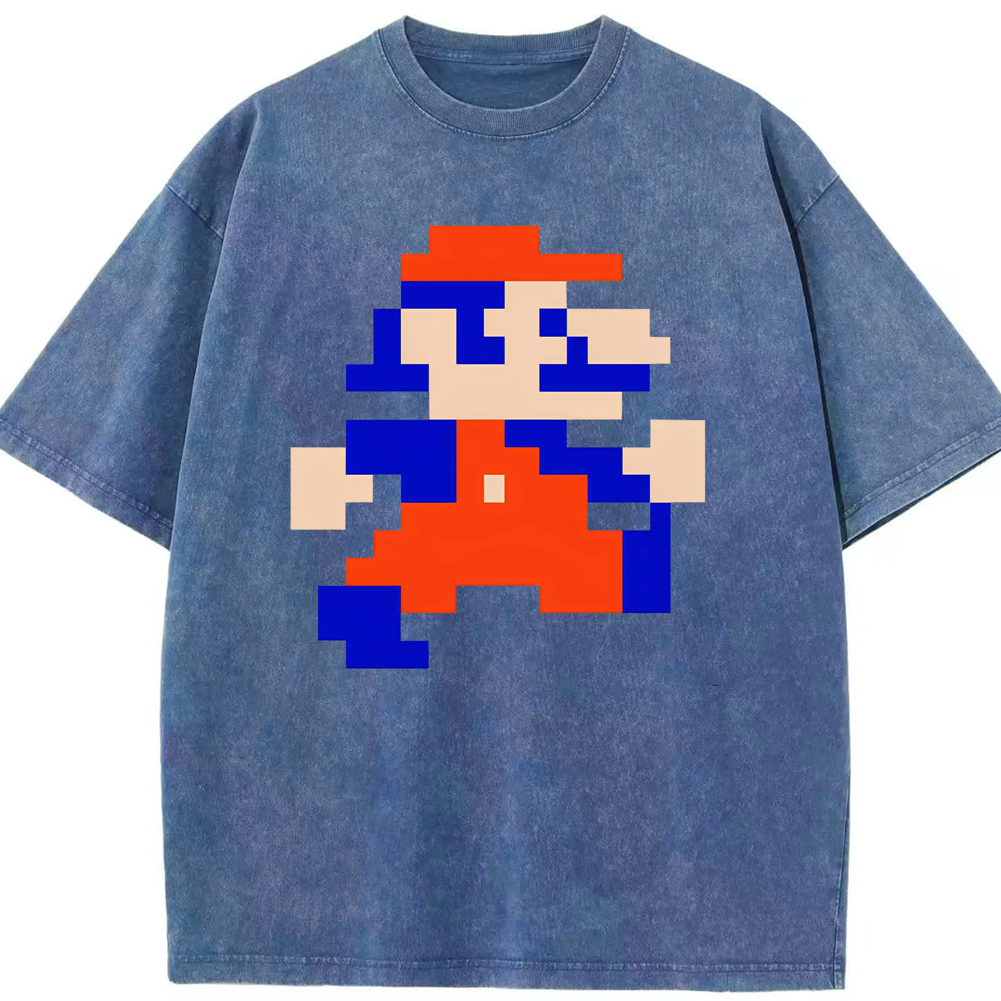 スーパーマリオ×8ビット グラフィックアート - 綿100% ヴィンテージ風 半袖Tシャツ ・ フロントプリント ・ 柔らか肌触り ・ 通気性 快適 ・ スポーツ カジュアル 外出用