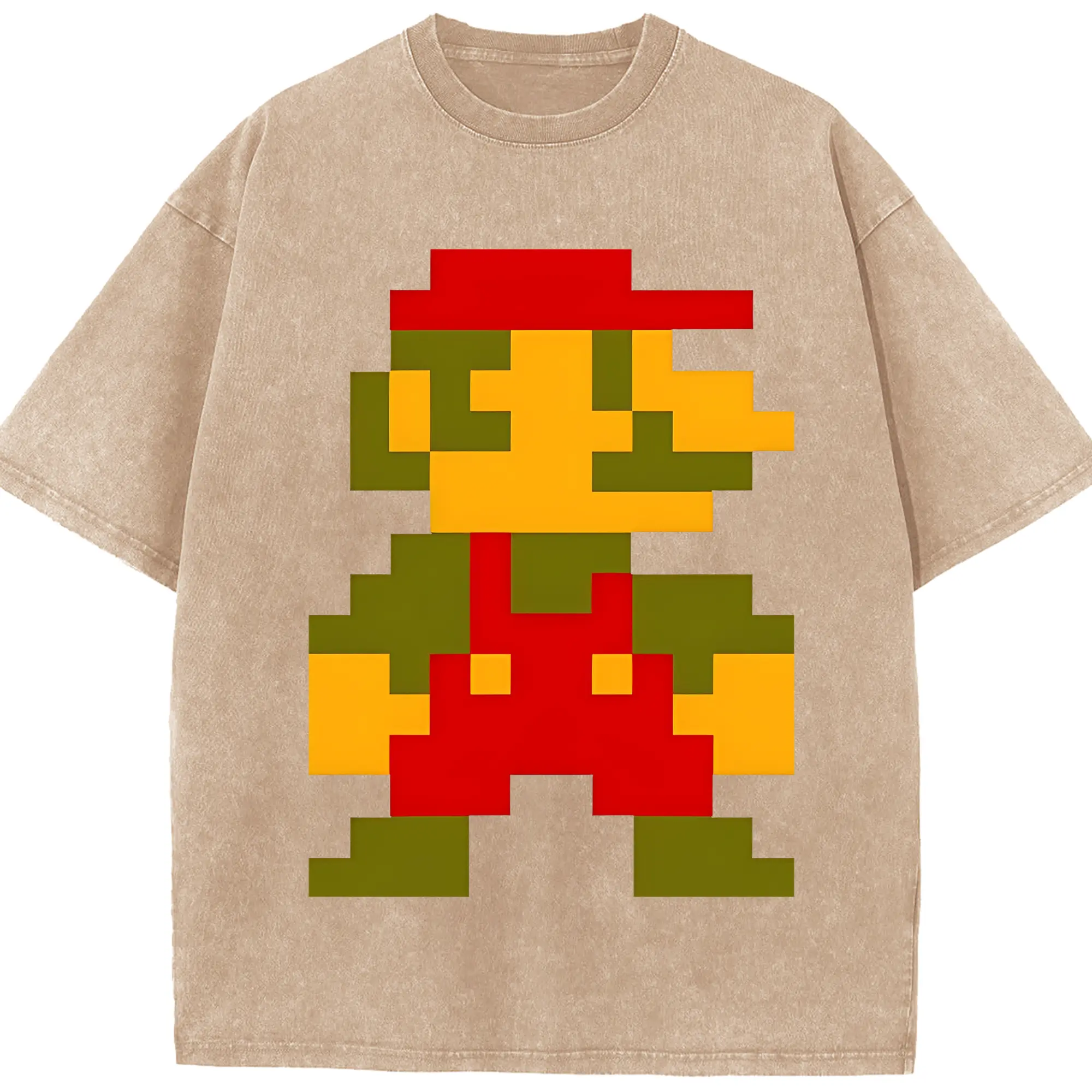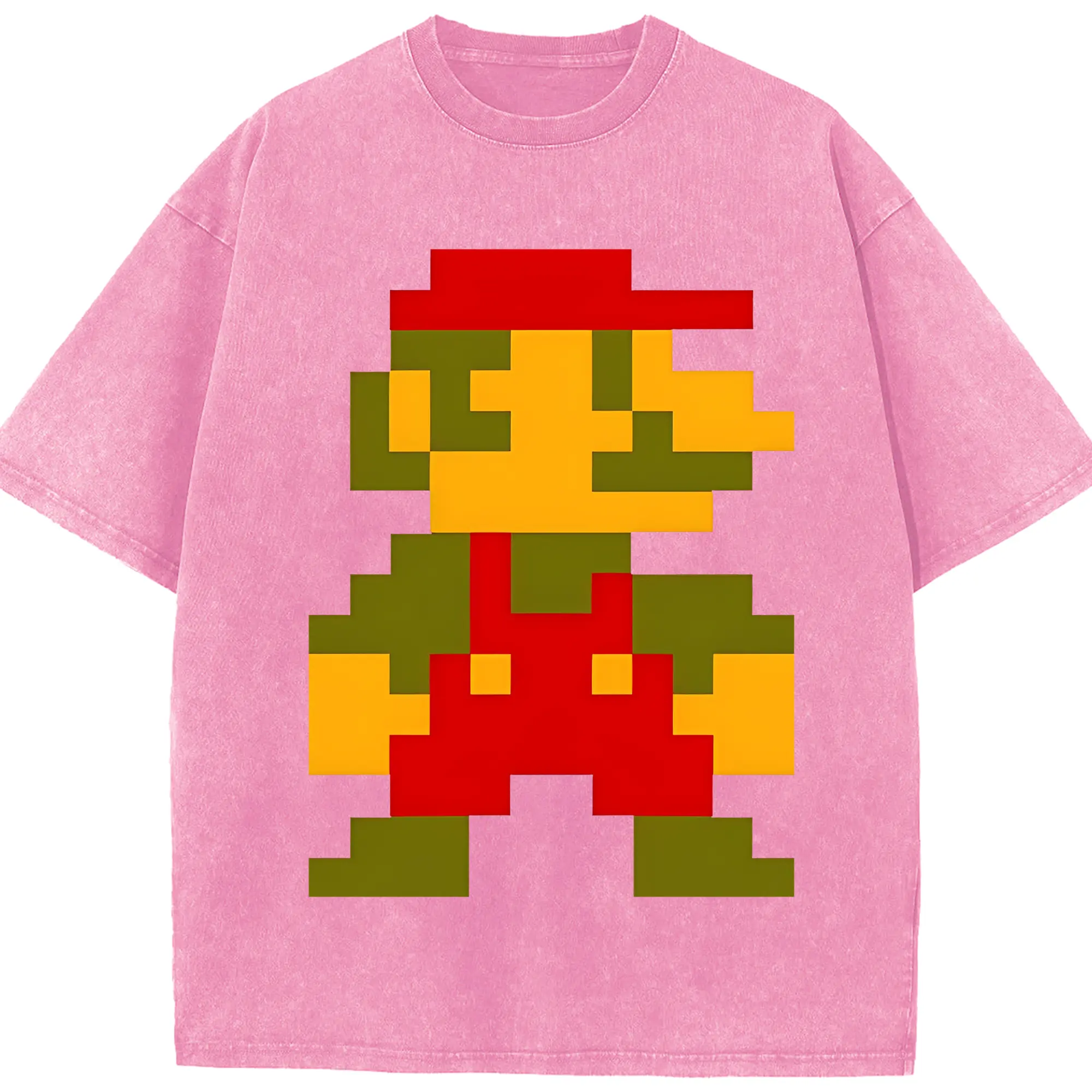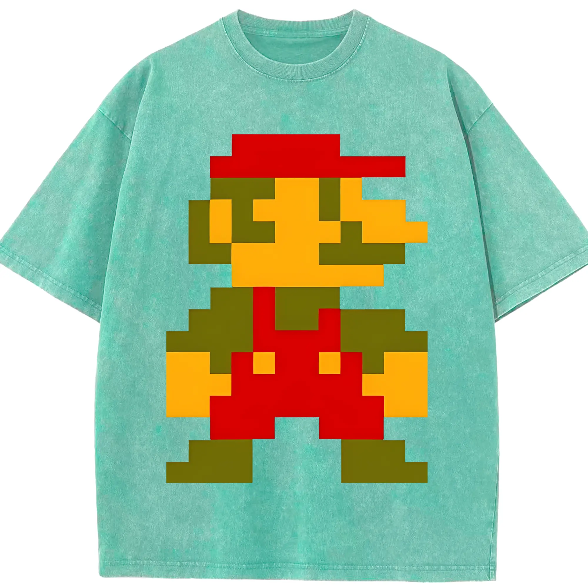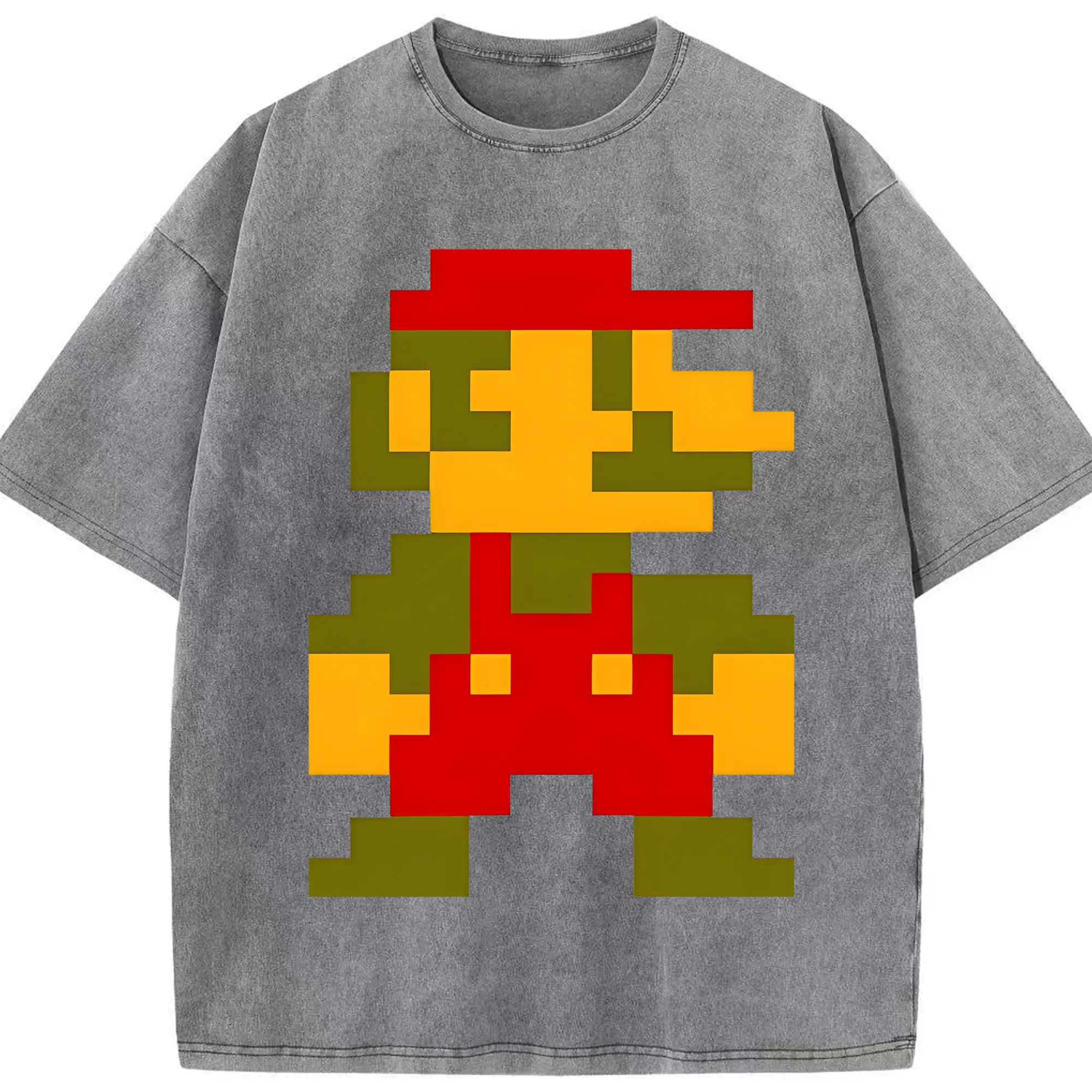 スーパーマリオ×8ビット グラフィックアート - 綿100% 半袖Tシャツ ・ フロントプリント ・ 快適 通気性 ・ 日常使い 散歩 スポーツ用