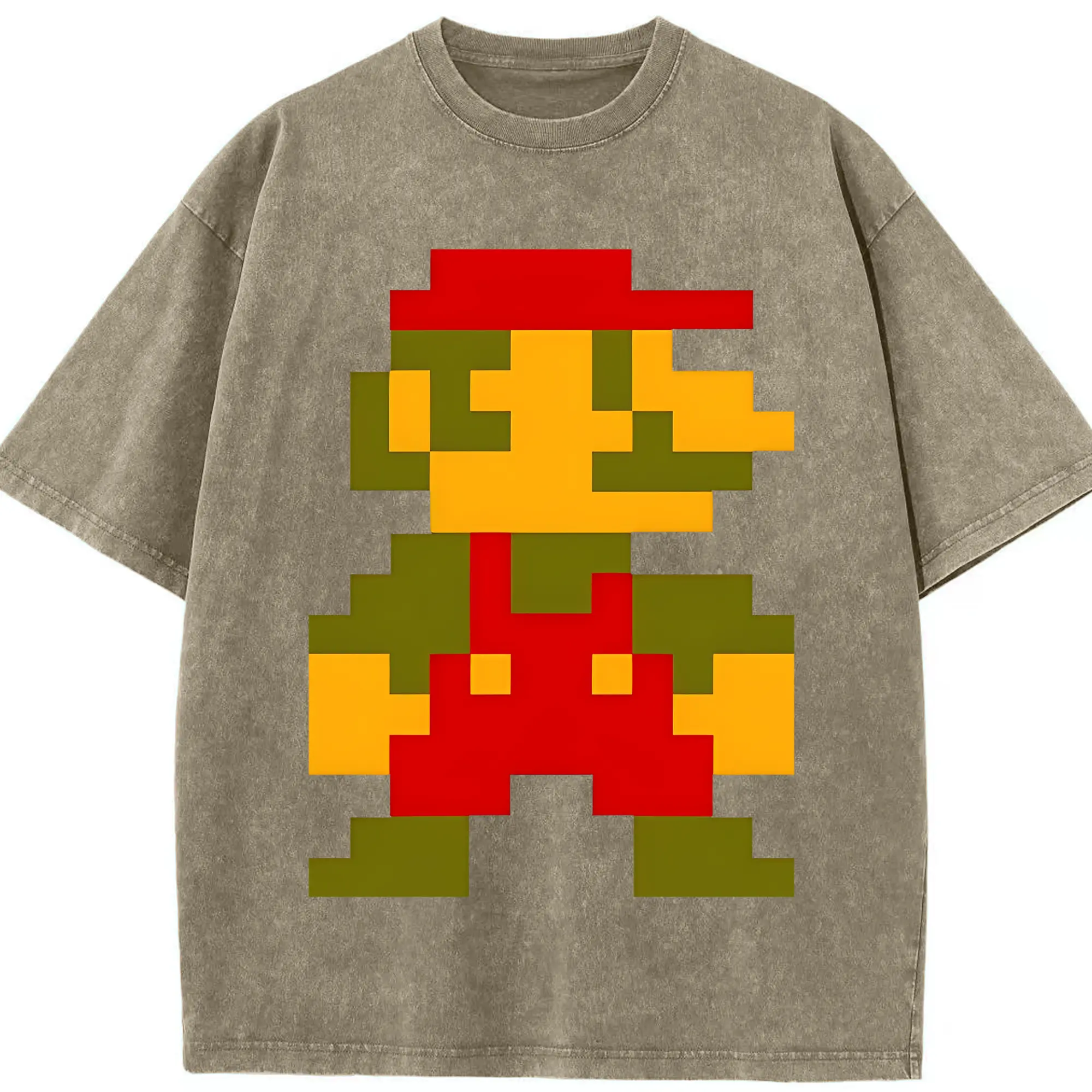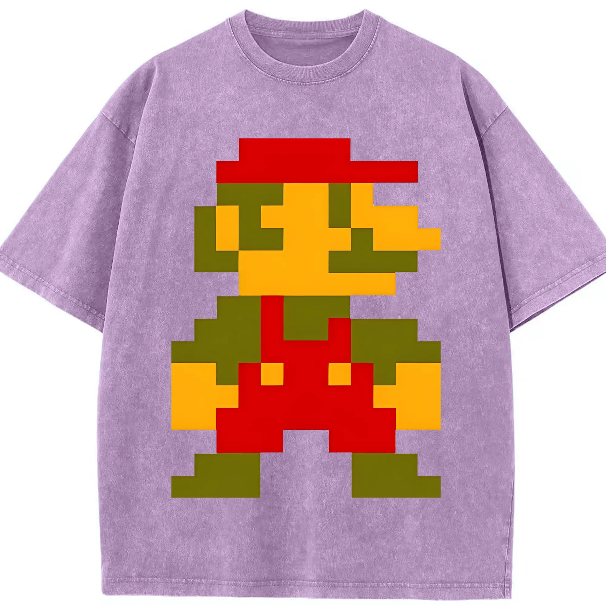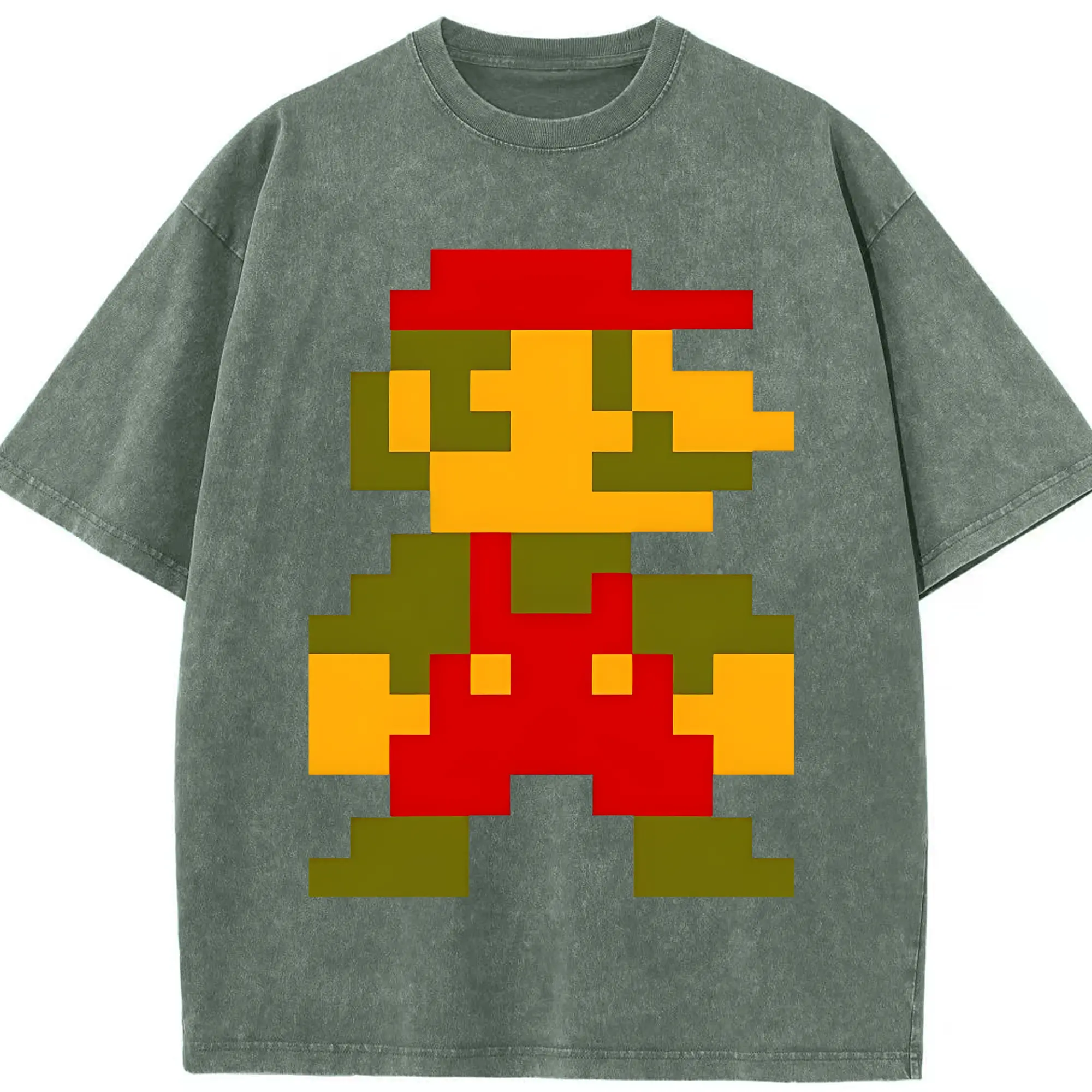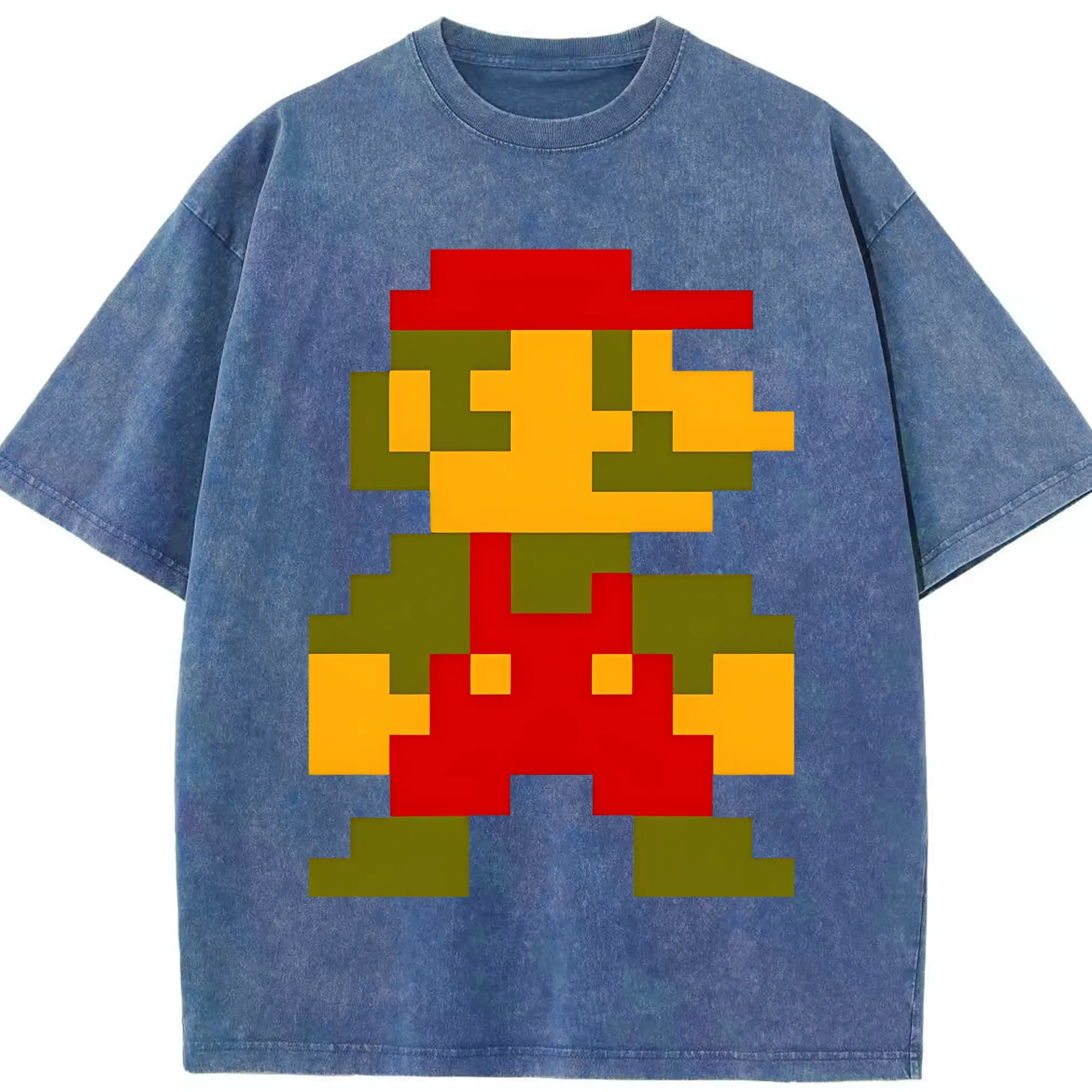 スーパーマリオ×8ビット グラフィックアート - 綿100% 半袖Tシャツ ・ フロントプリント ・ 快適 通気性 ・ 日常使い 散歩 スポーツ用