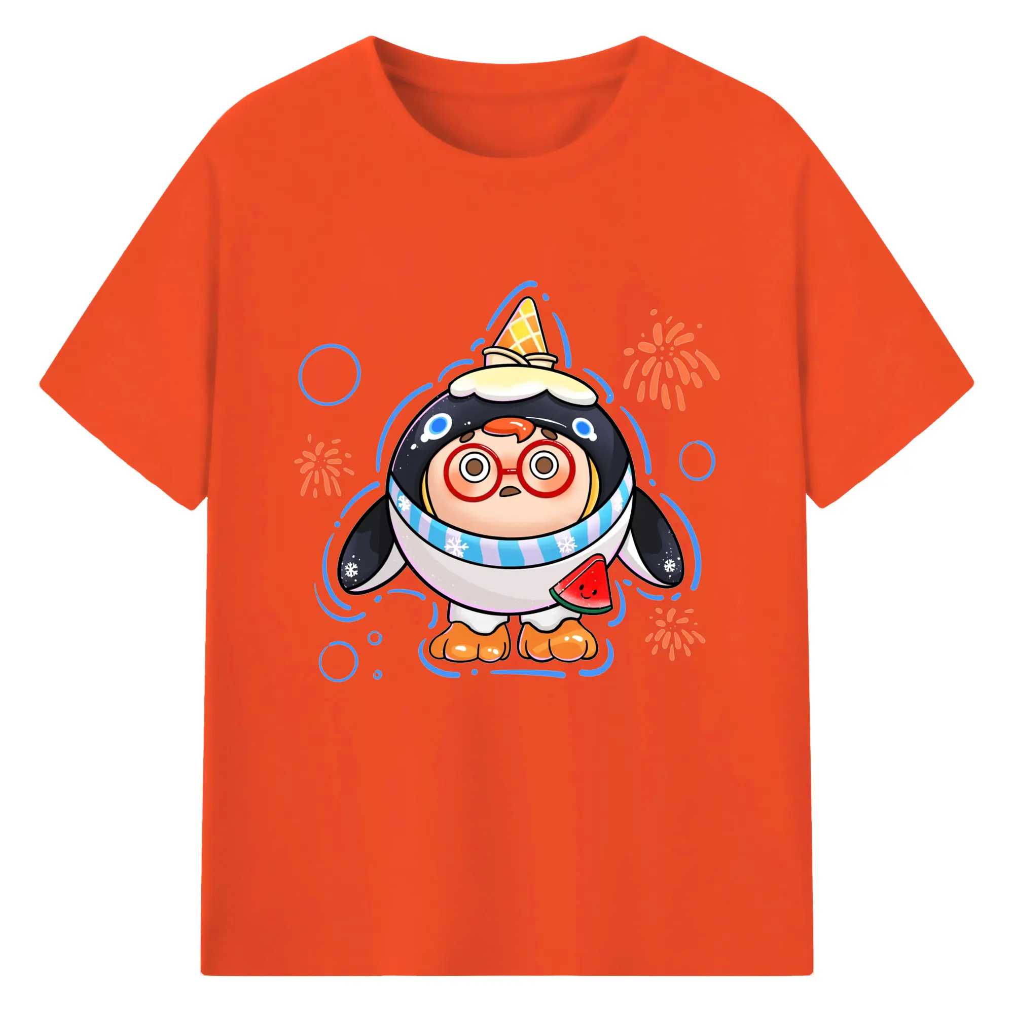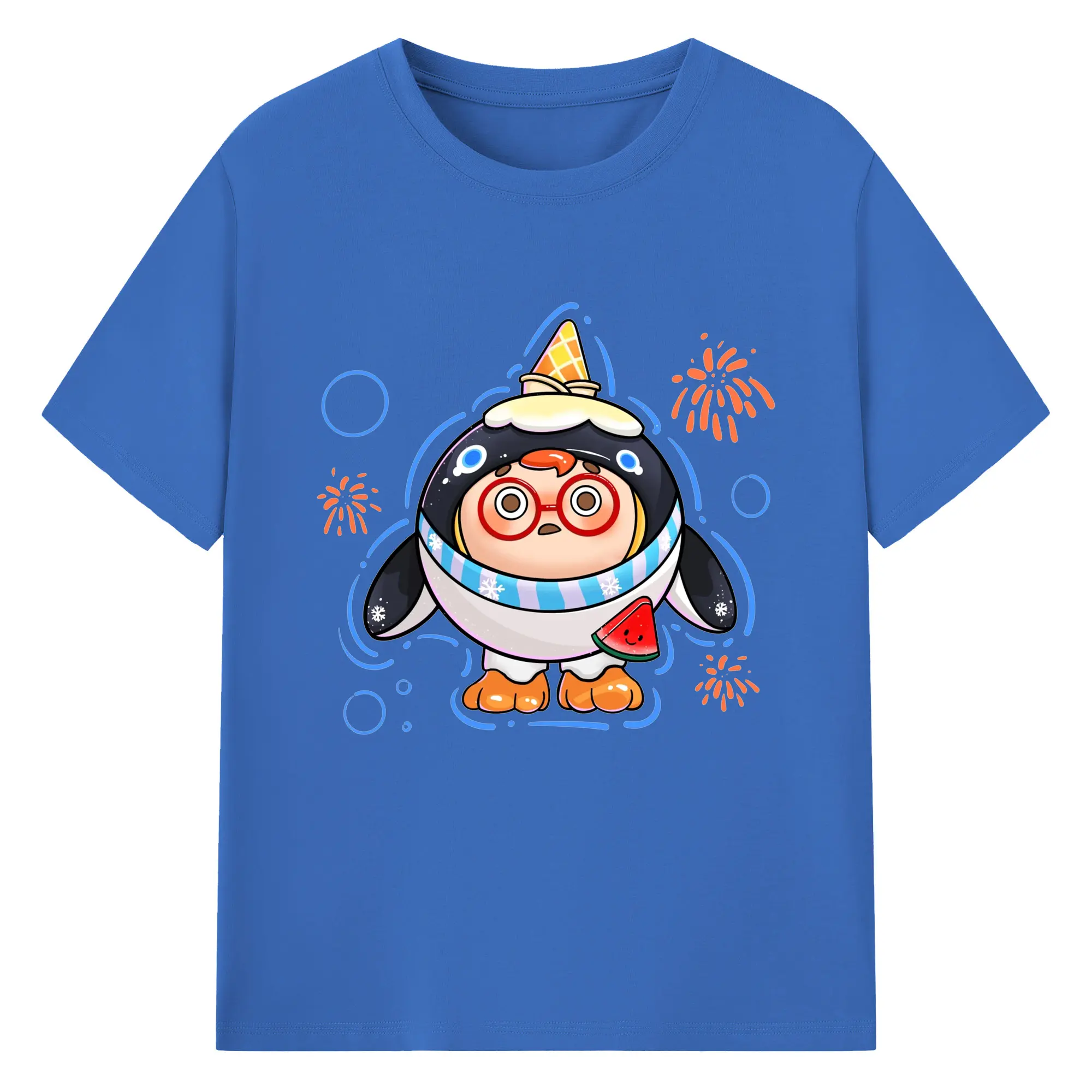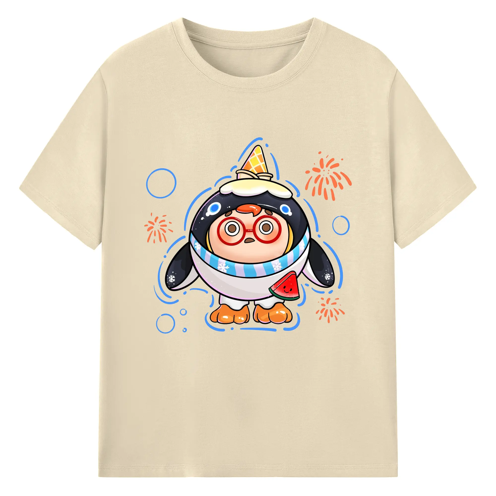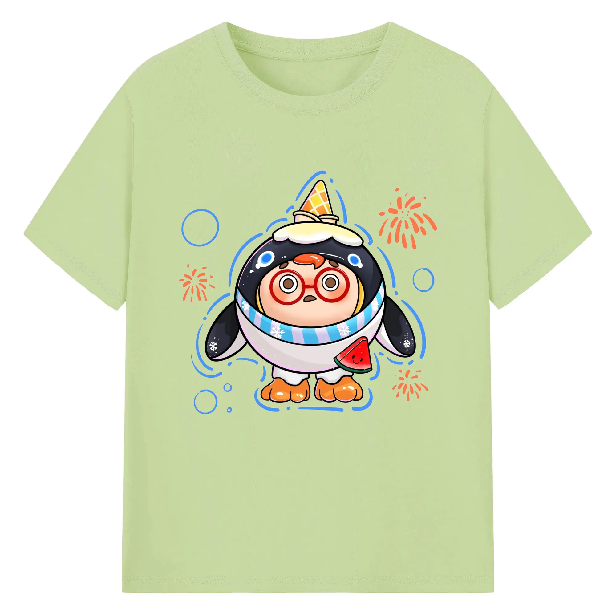 タマゴパーティー アイスクリームペンギン 限定 - 綿100% ヴィンテージ風 半袖Tシャツ ・ フロントプリント ・ 柔らか肌触り ・ 通気性 快適 ・ スポーツ カジュアル 外出用