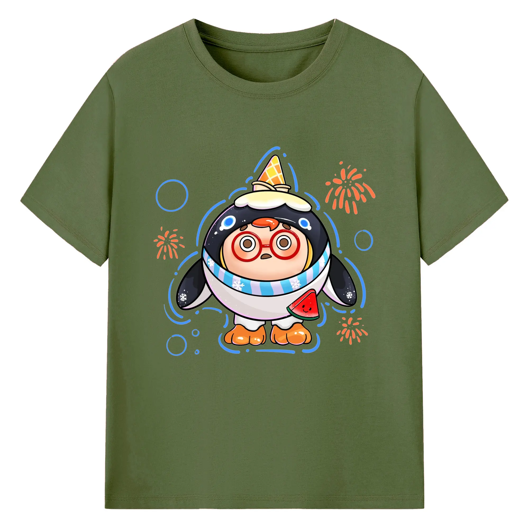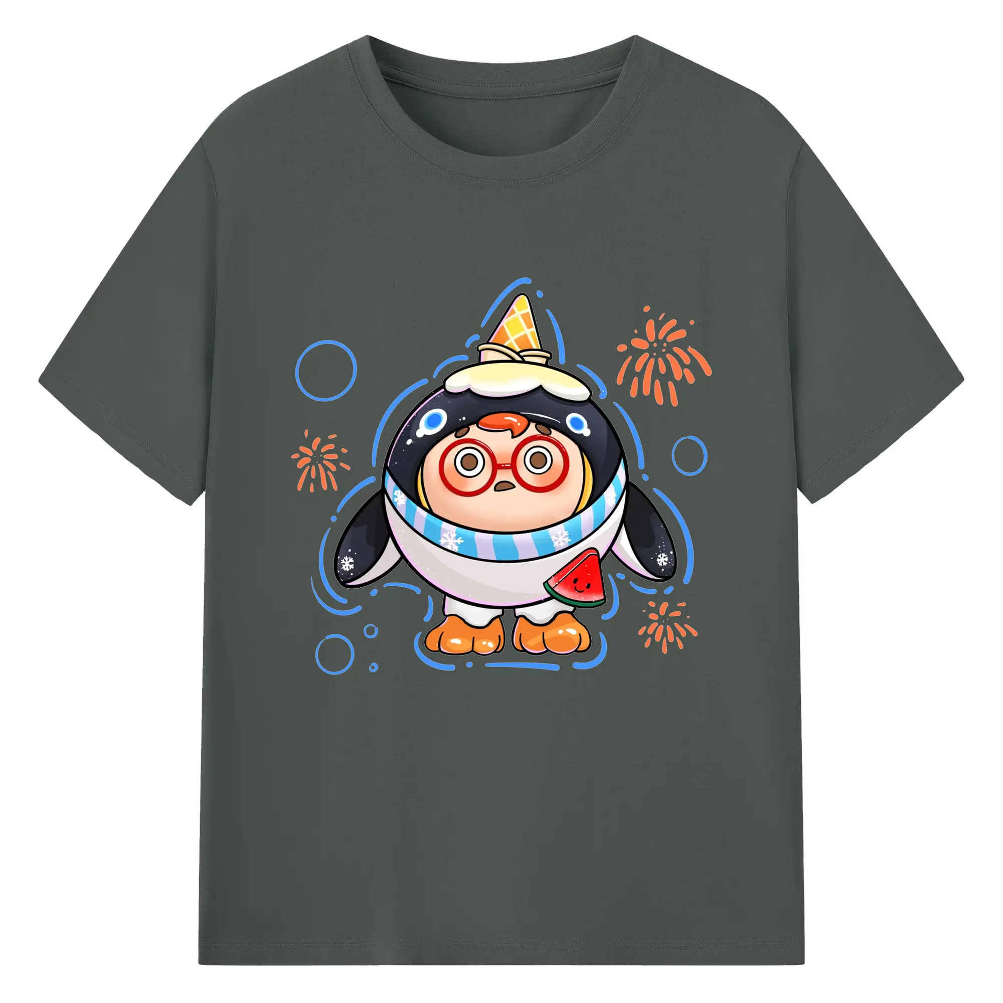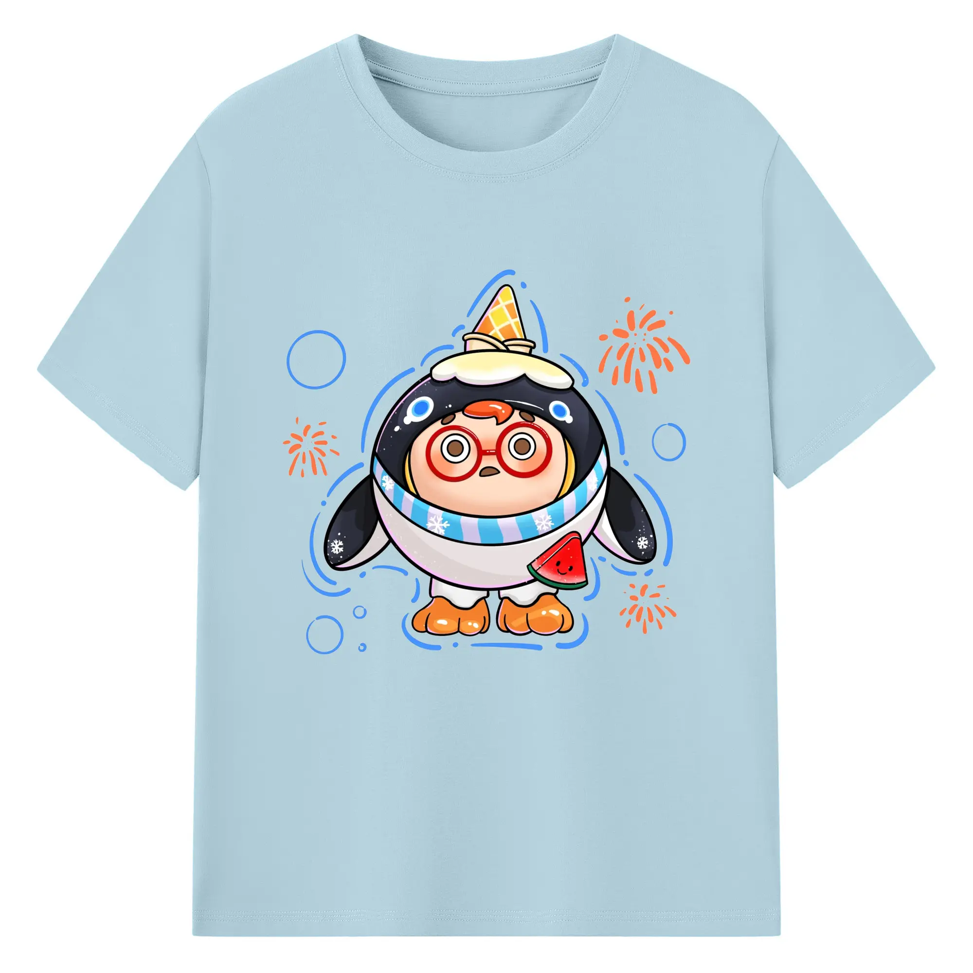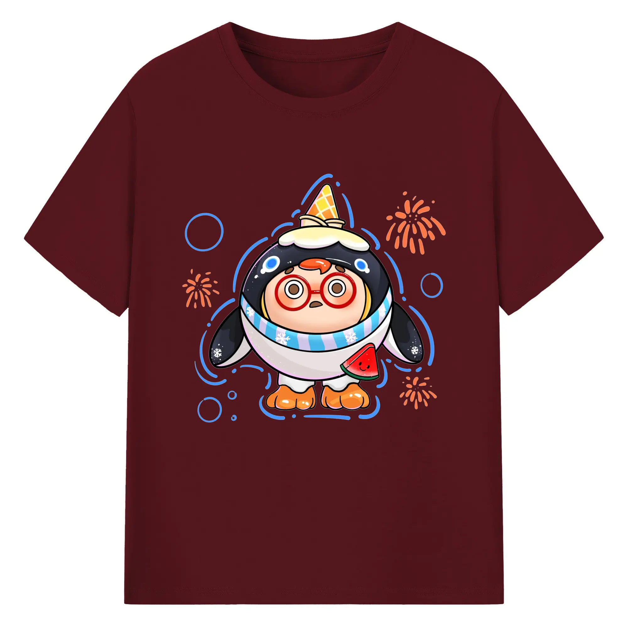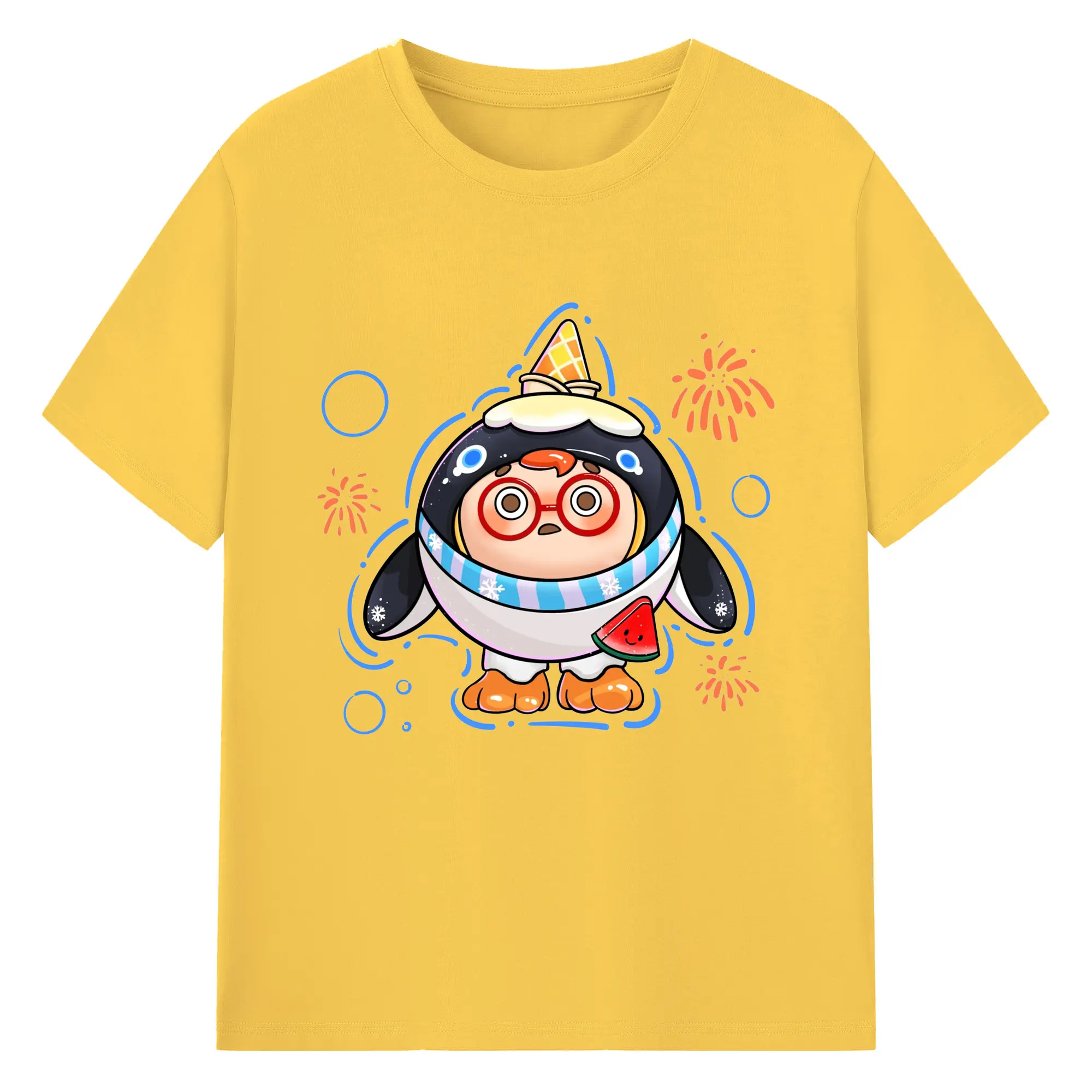 タマゴパーティー アイスクリームペンギン 限定 - 綿100% ヴィンテージ風 半袖Tシャツ ・ フロントプリント ・ 柔らか肌触り ・ 通気性 快適 ・ スポーツ カジュアル 外出用