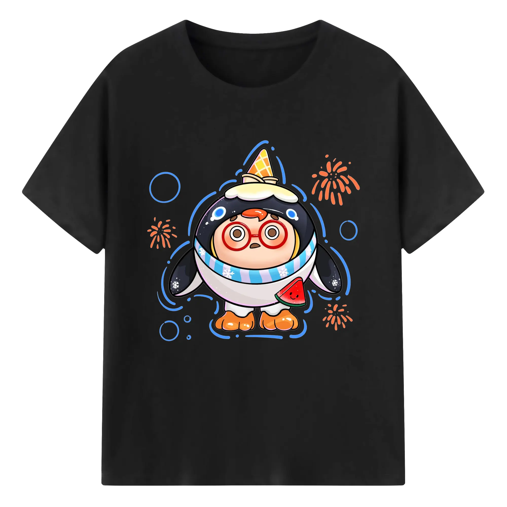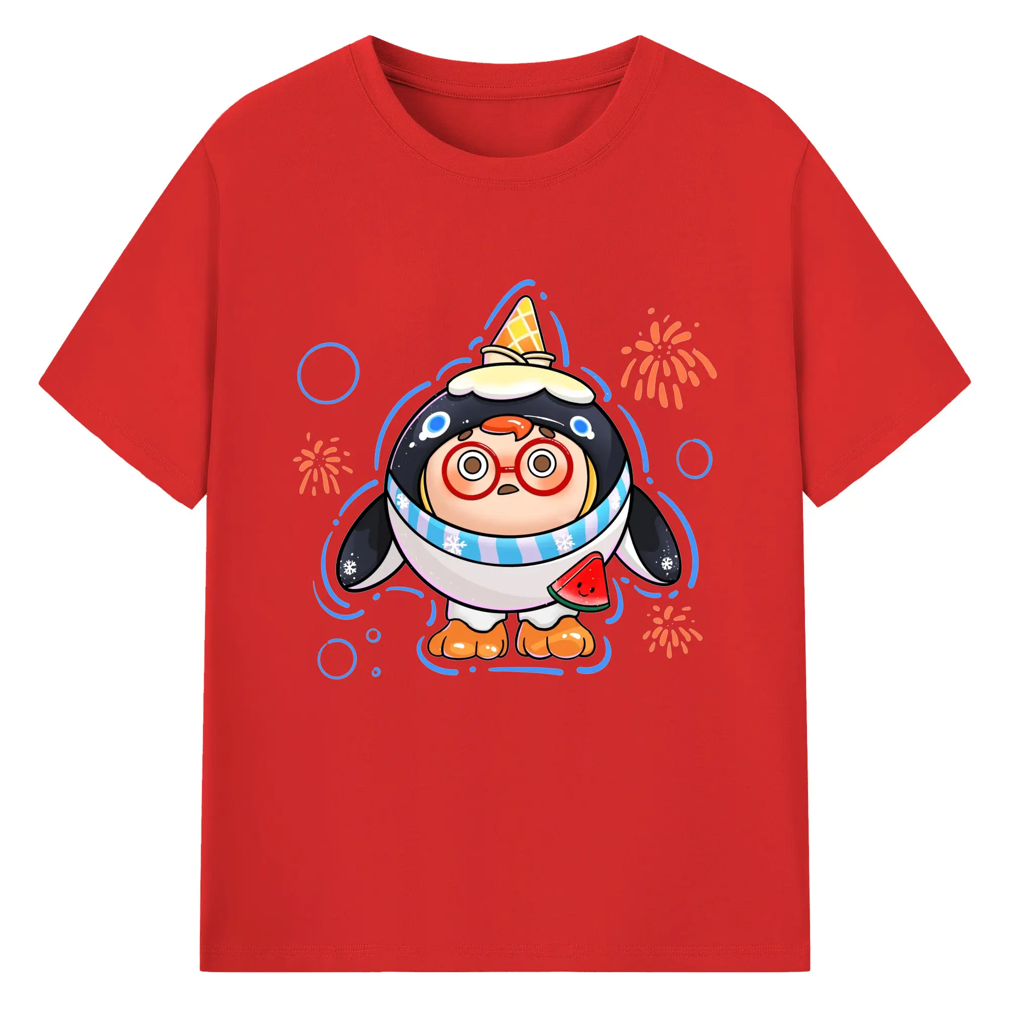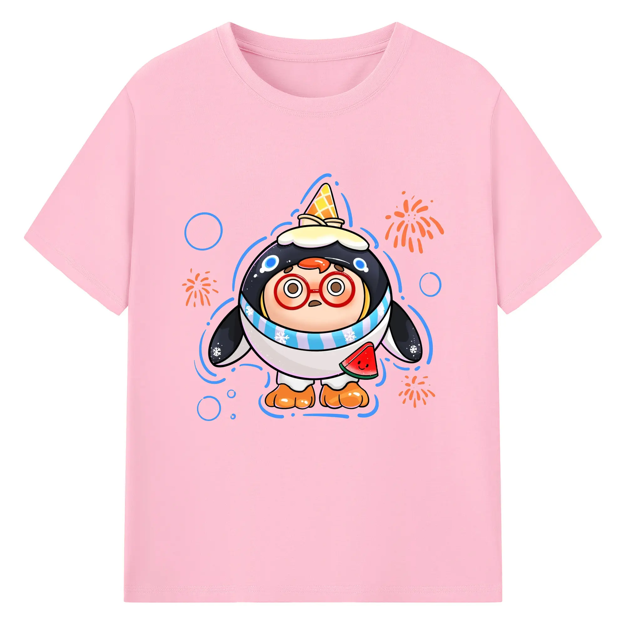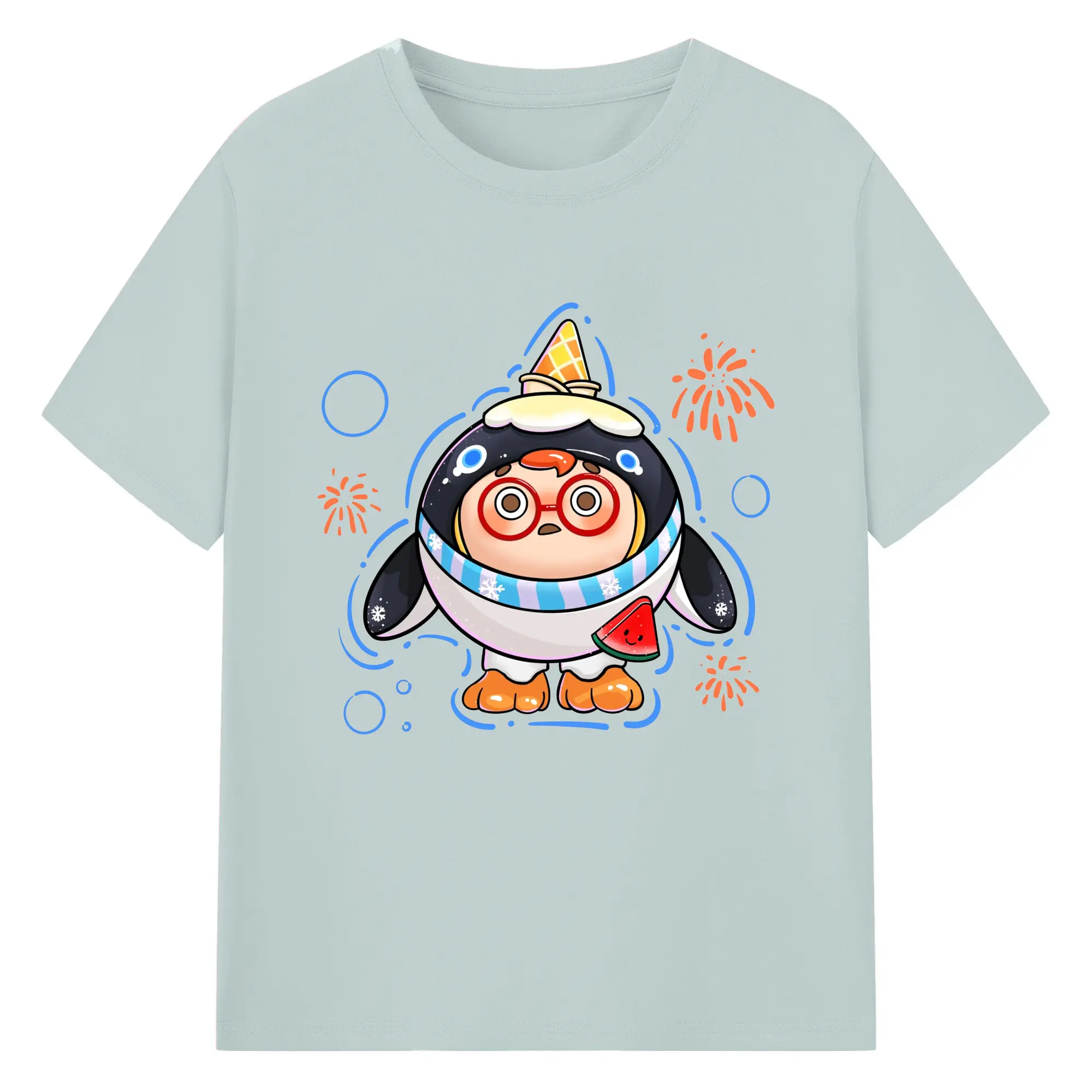 タマゴパーティー アイスクリームペンギン 限定 - 綿100% ヴィンテージ風 半袖Tシャツ ・ フロントプリント ・ 柔らか肌触り ・ 通気性 快適 ・ スポーツ カジュアル 外出用