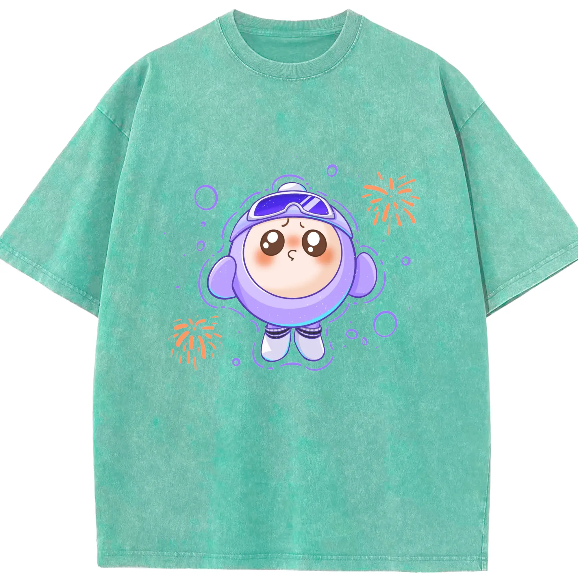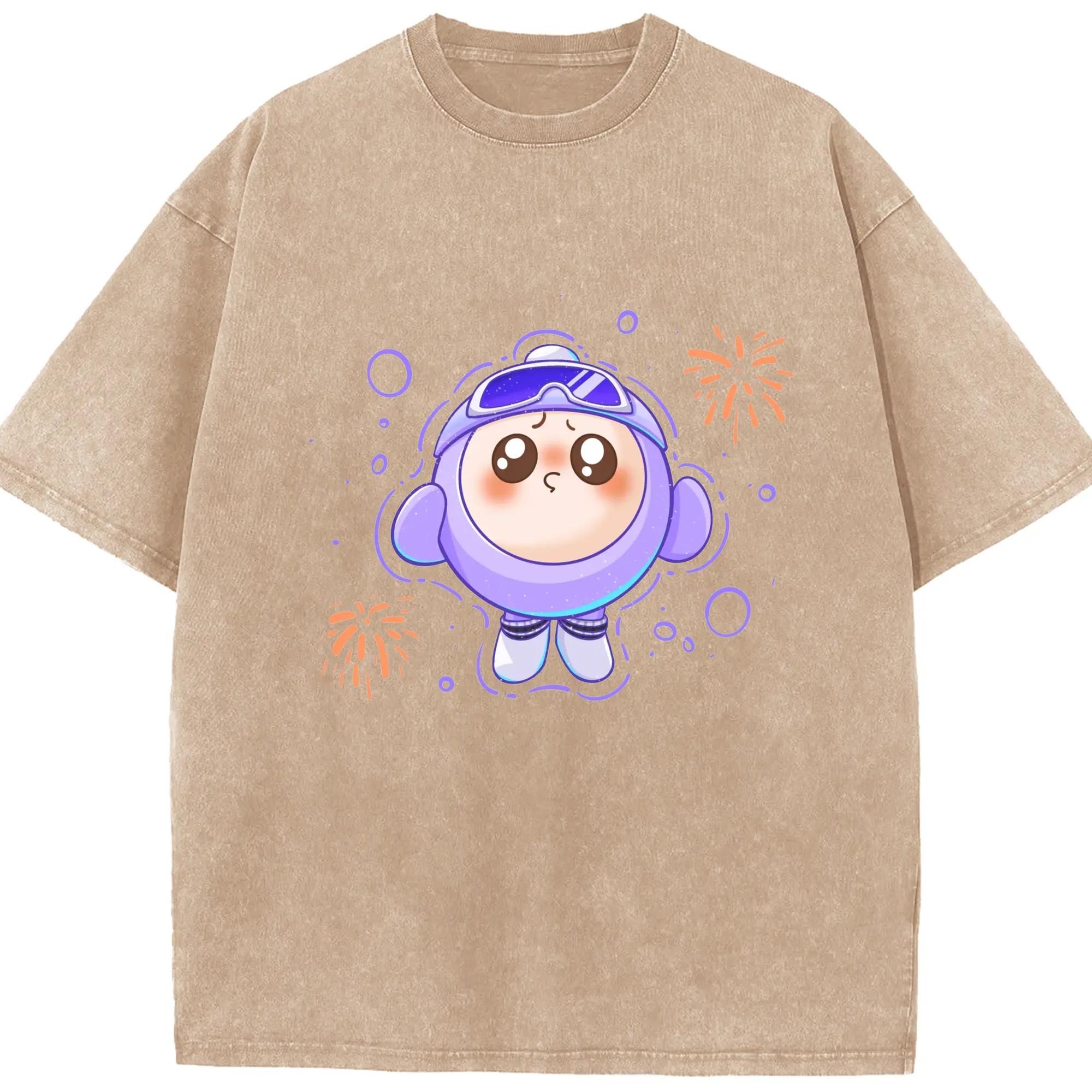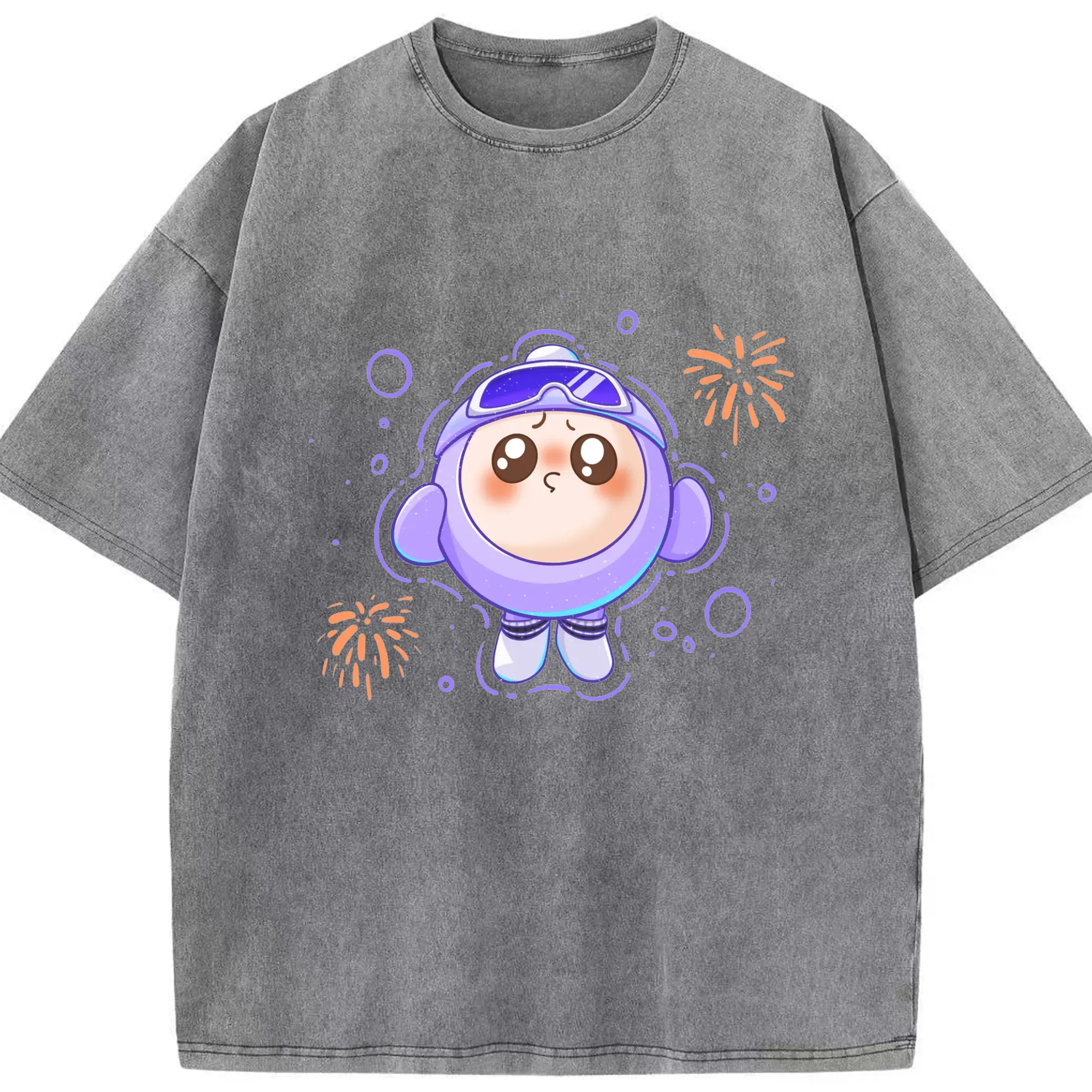 Genshin Impact 放浪者 Q版キャラクター 可愛いファングッズ - 綿100% ヴィンテージ風 半袖Tシャツ ・ フロントプリント ・ 柔らか肌触り ・ 通気性 快適 ・ スポーツ カジュアル 外出用