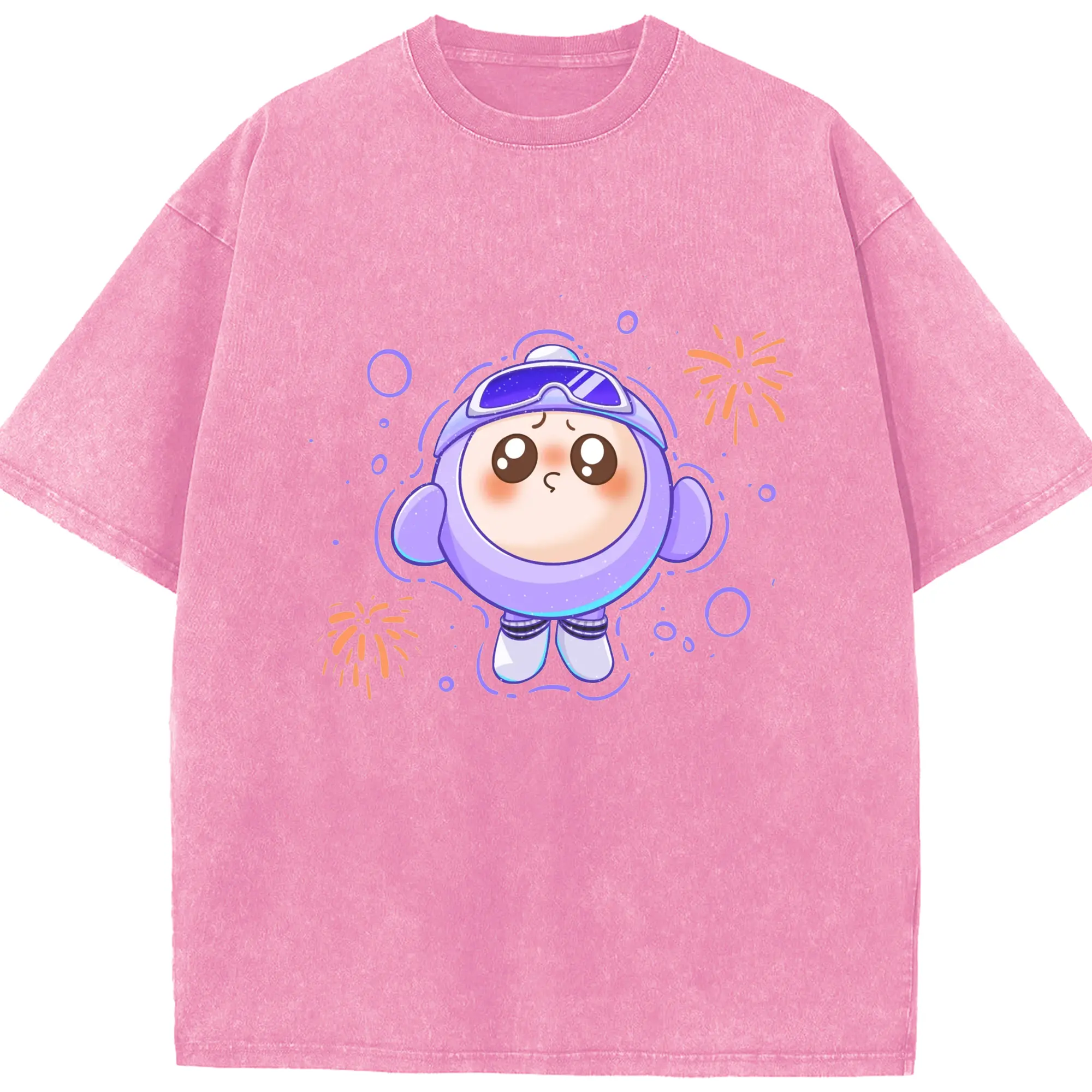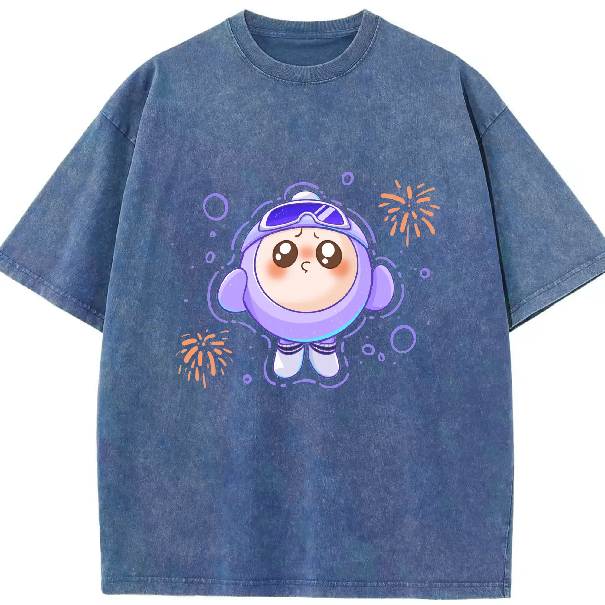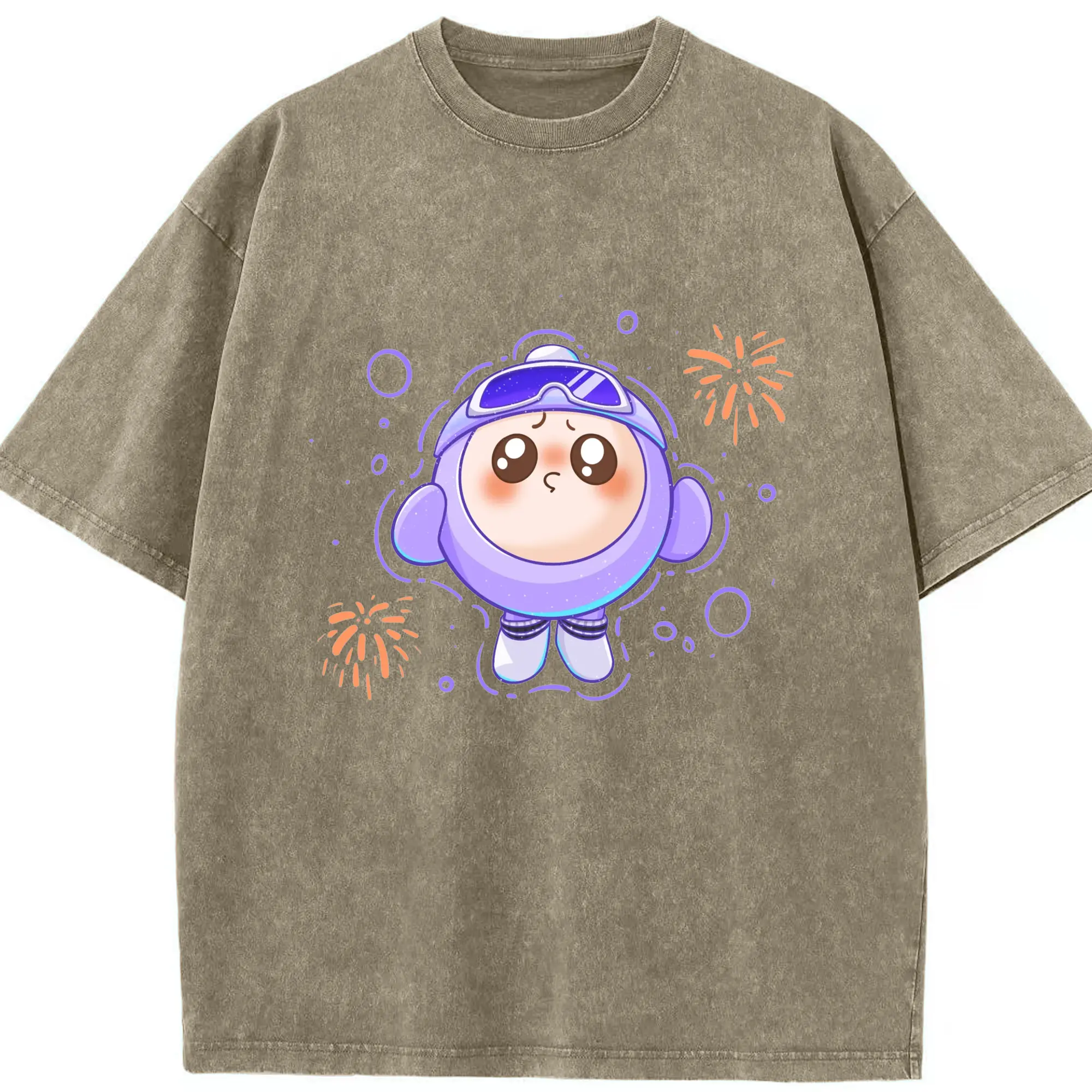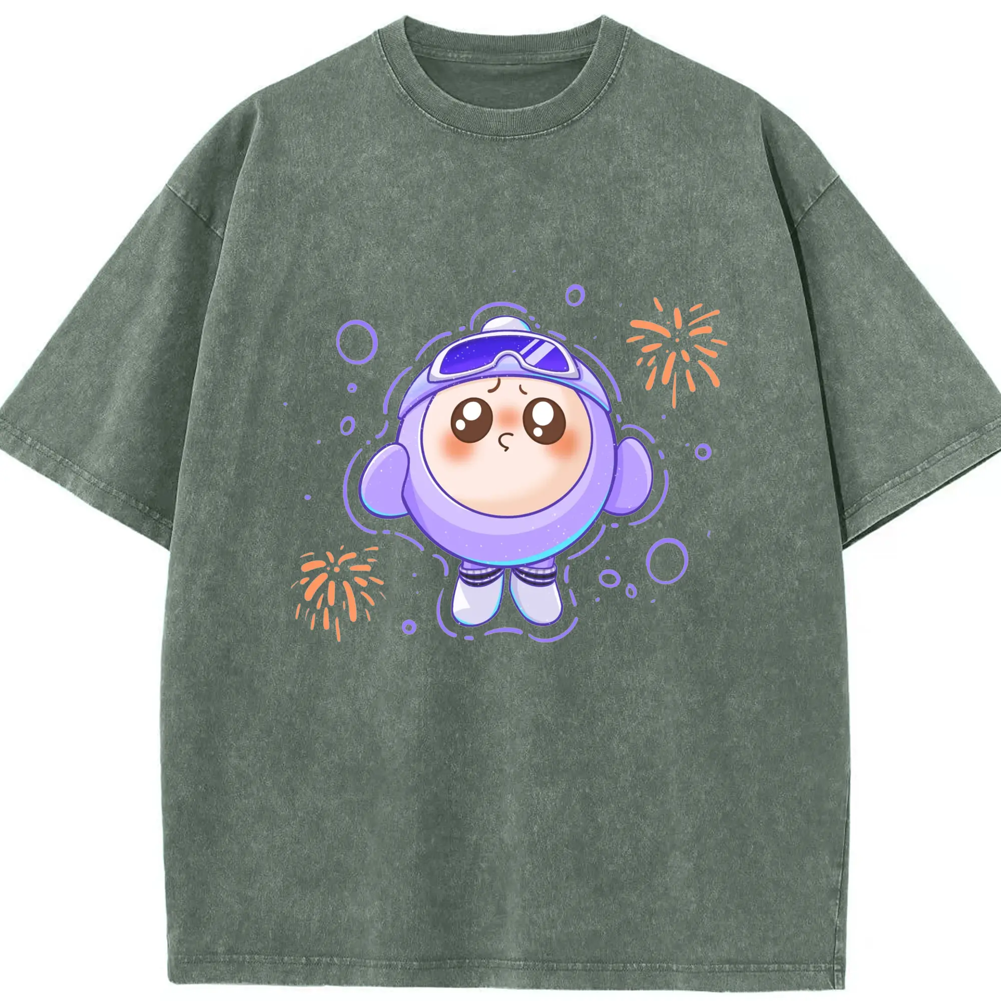 Genshin Impact 放浪者 Q版キャラクター 可愛いファングッズ - 綿100% ヴィンテージ風 半袖Tシャツ ・ フロントプリント ・ 柔らか肌触り ・ 通気性 快適 ・ スポーツ カジュアル 外出用