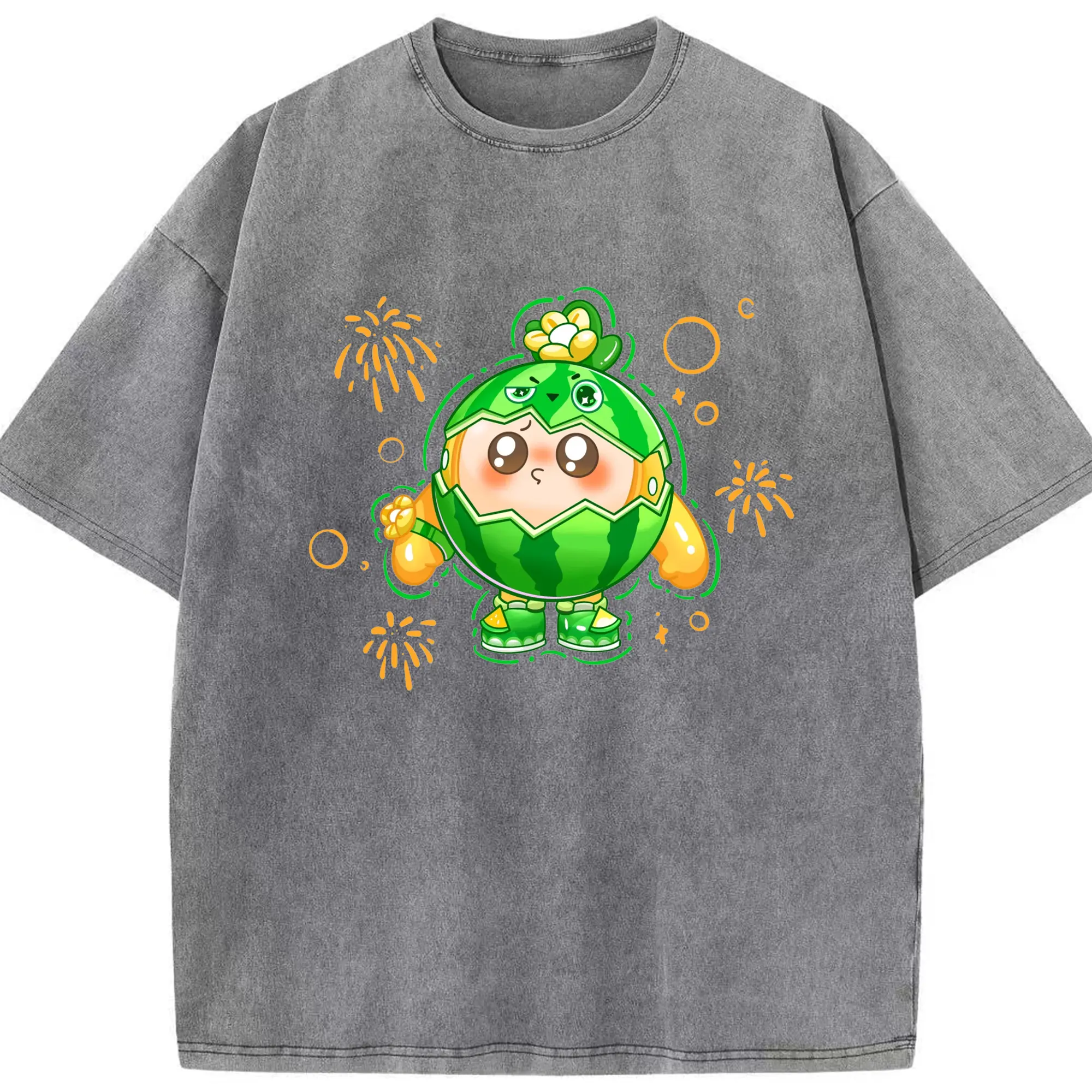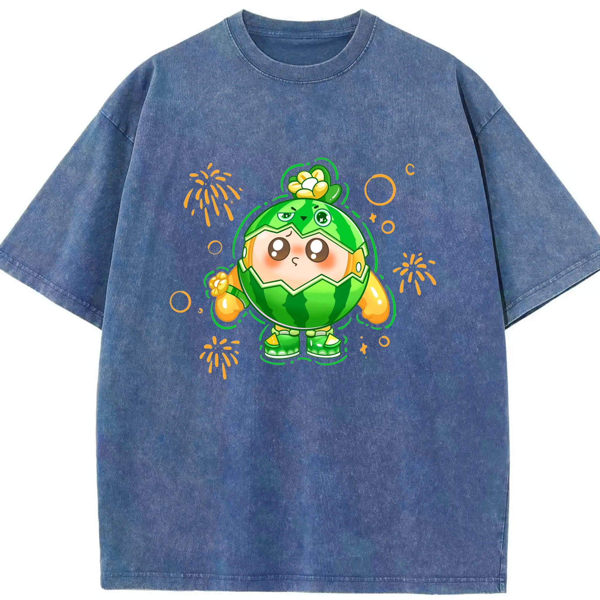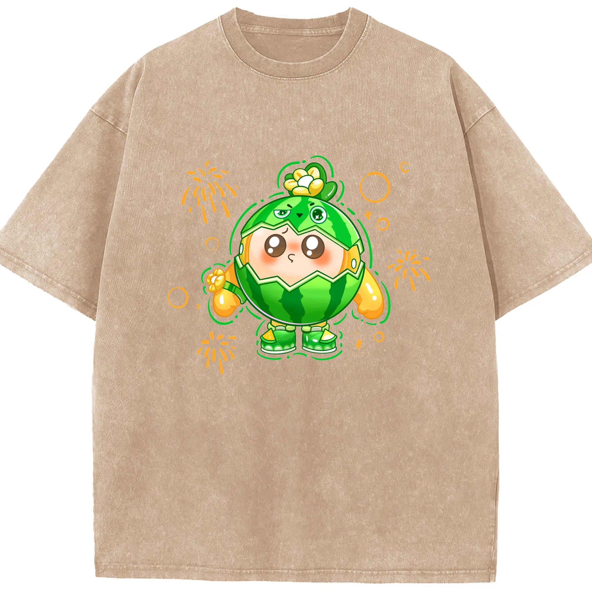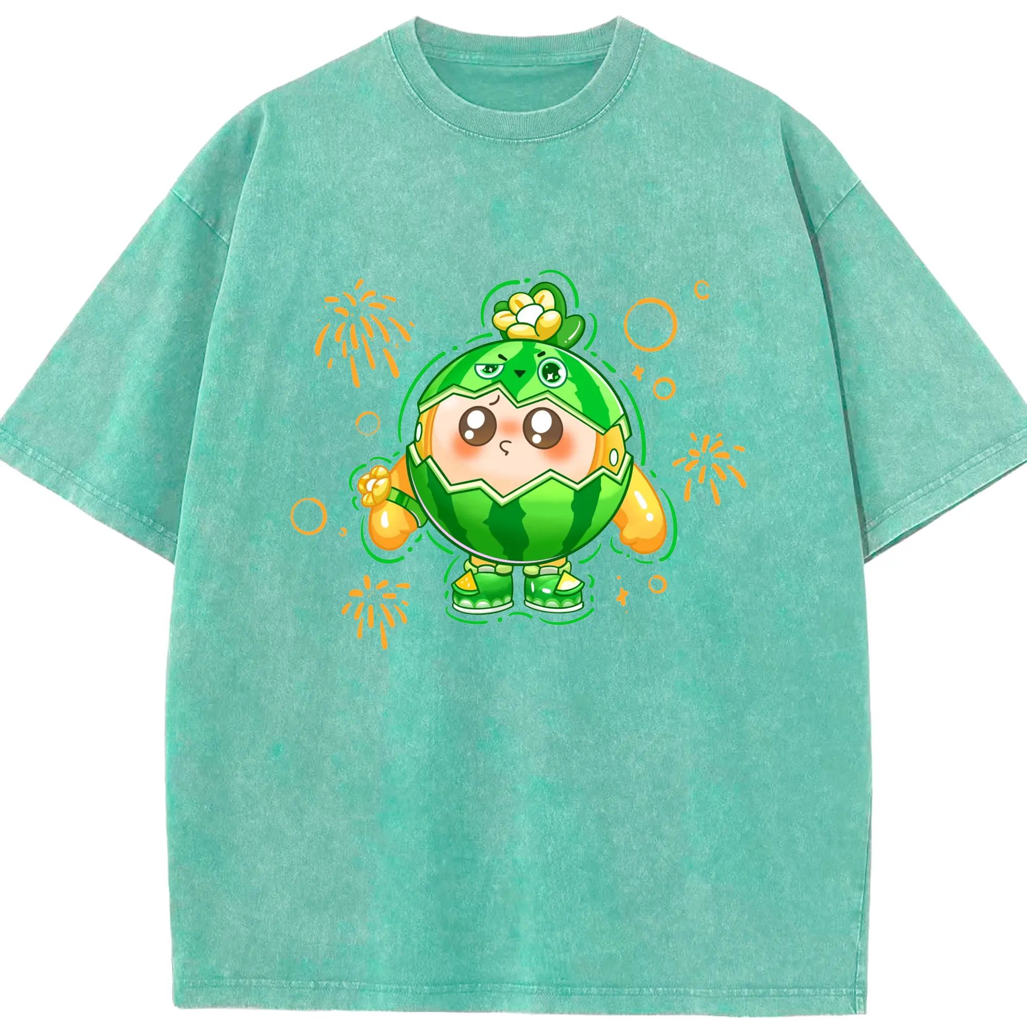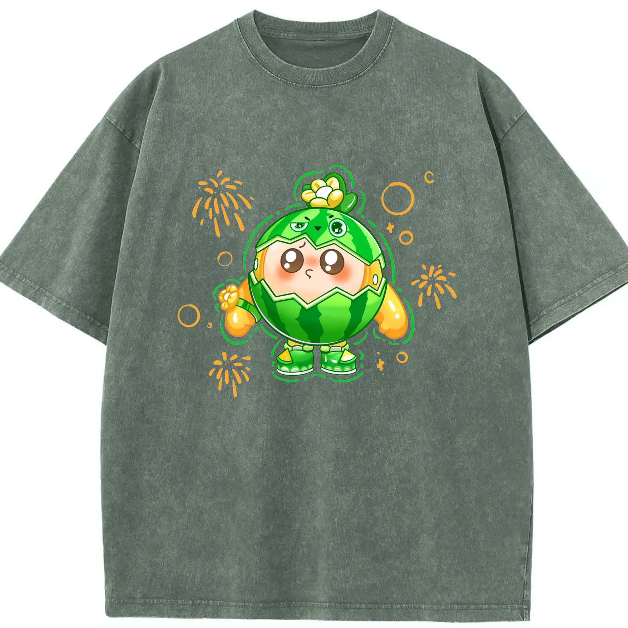 蛋仔パーティー 蛋小緑 キャラクター 可愛いゲームグッズ - 綿100% ヴィンテージ風 半袖Tシャツ ・ フロントプリント ・ 柔らか肌触り ・ 通気性 快適 ・ スポーツ カジュアル 外出用