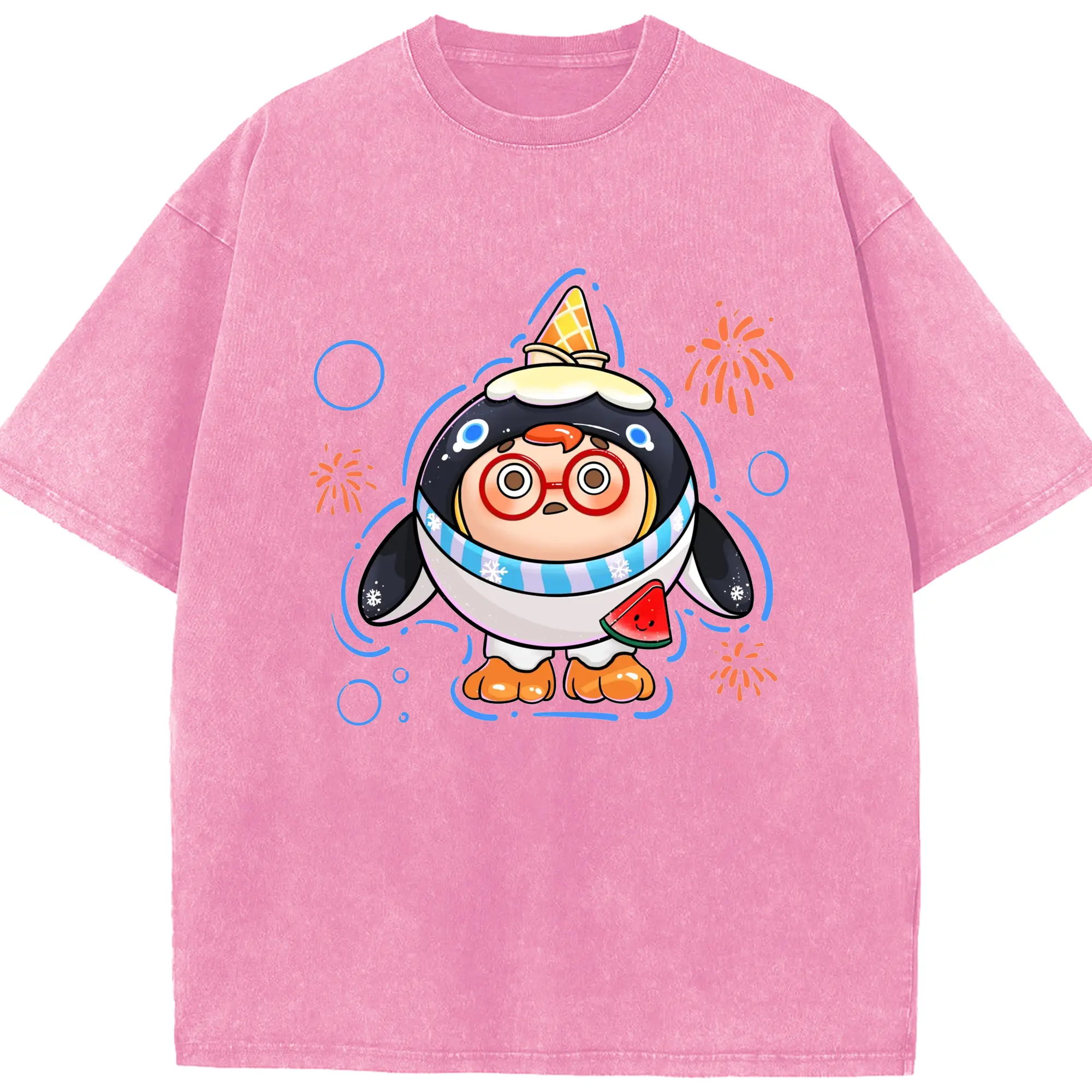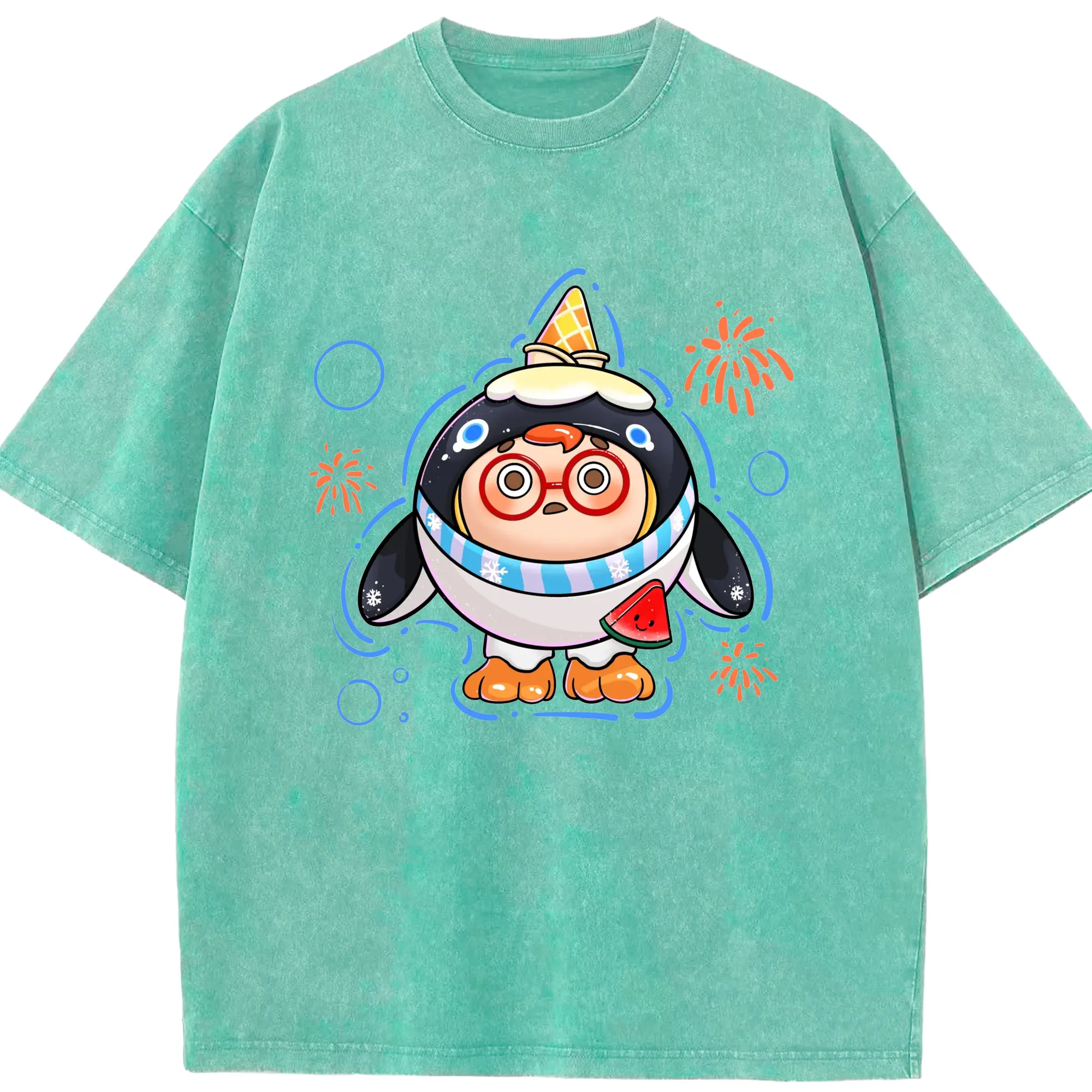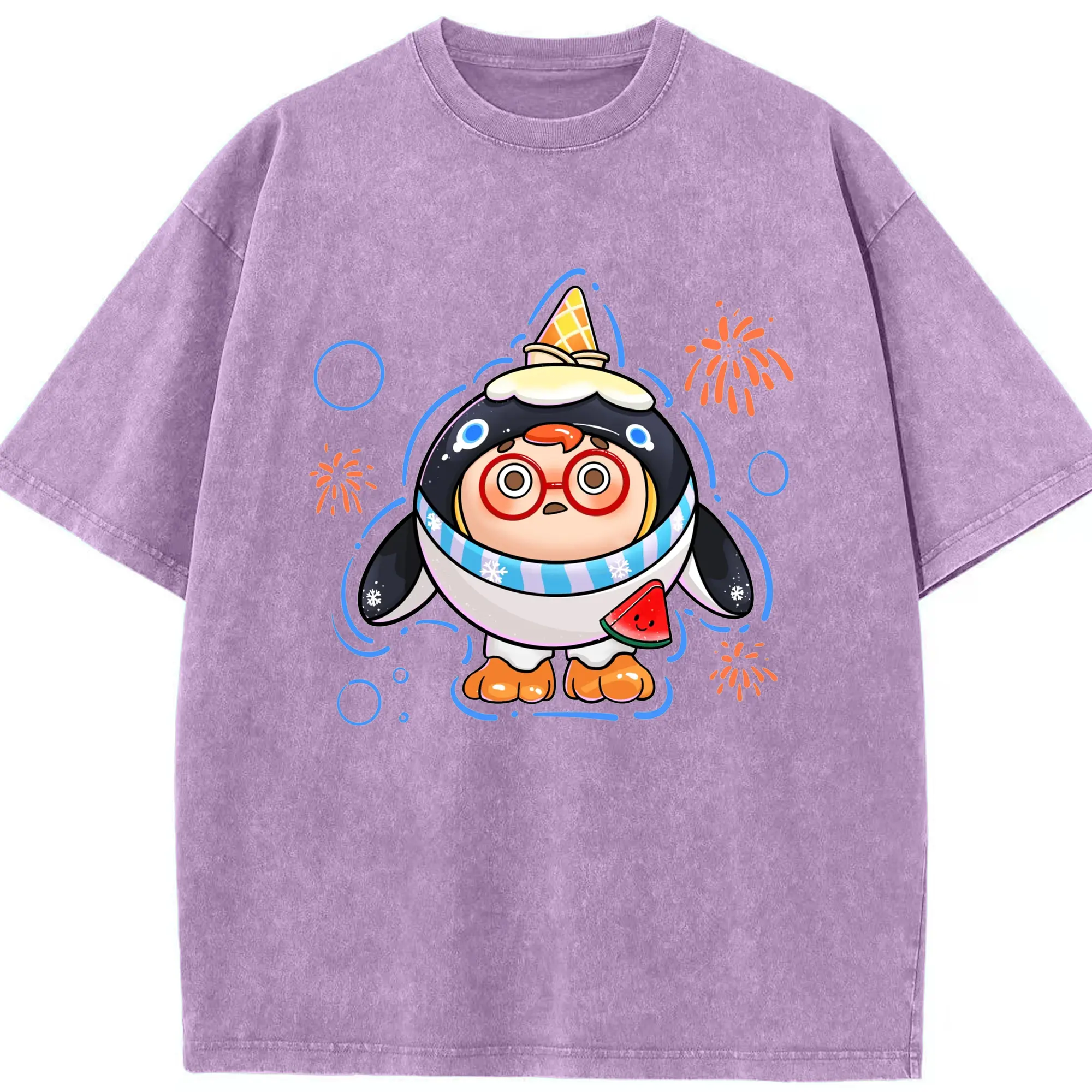 タマゴパーティー アイスクリームペンギン 限定 - 綿100% 半袖Tシャツ ・ フロントプリント ・ 快適 通気性 ・ 日常使い 散歩 スポーツ用