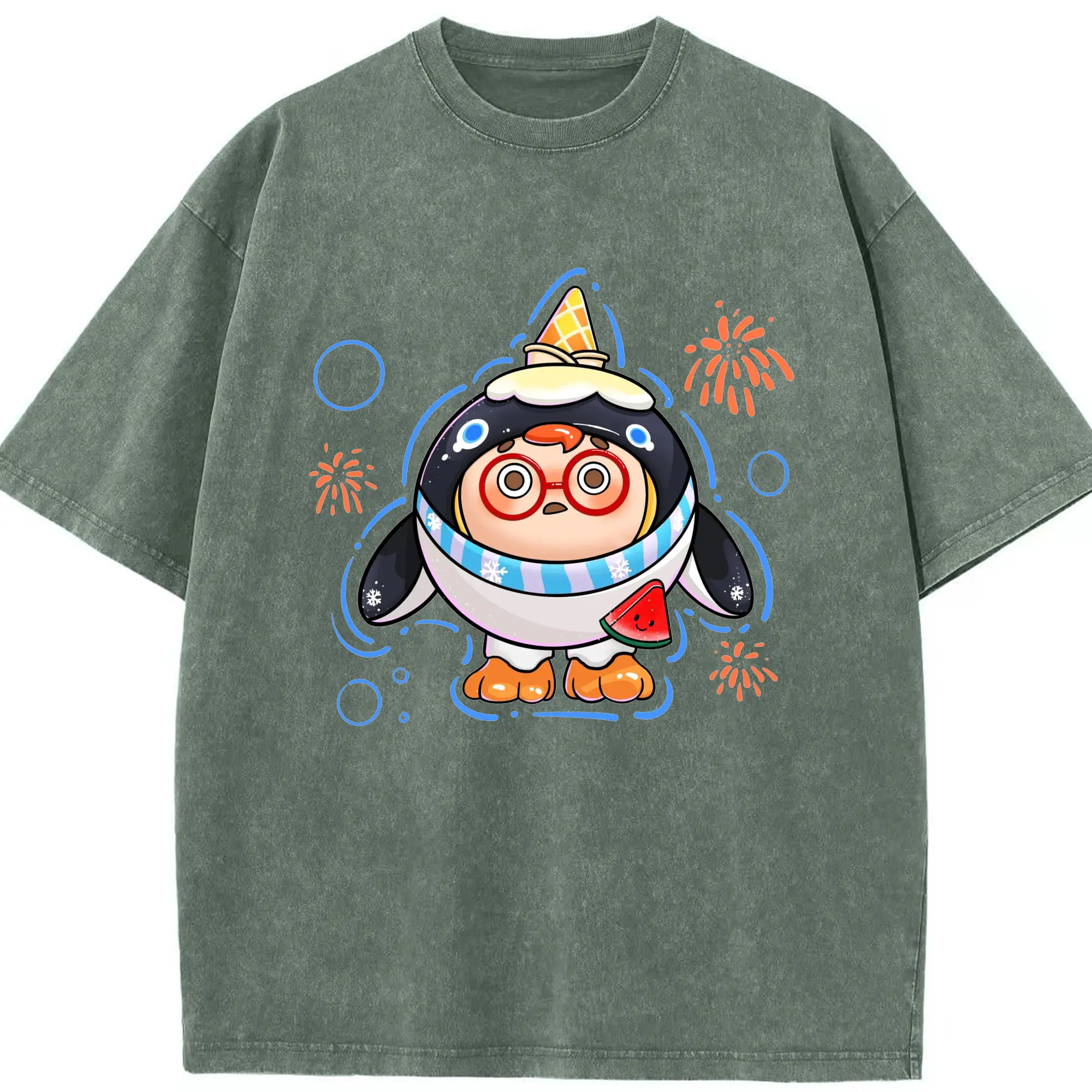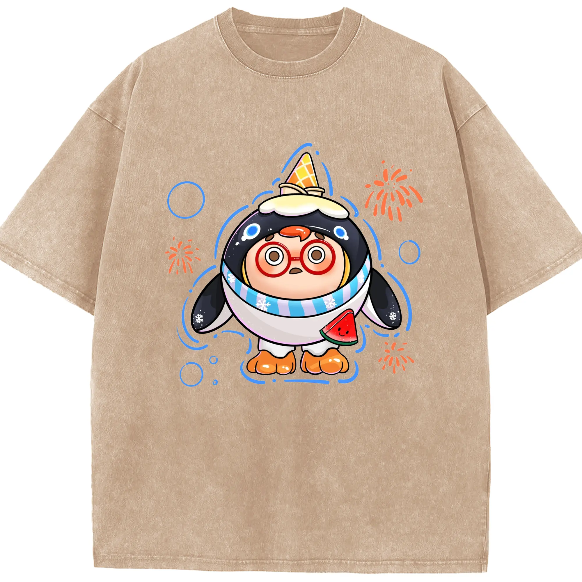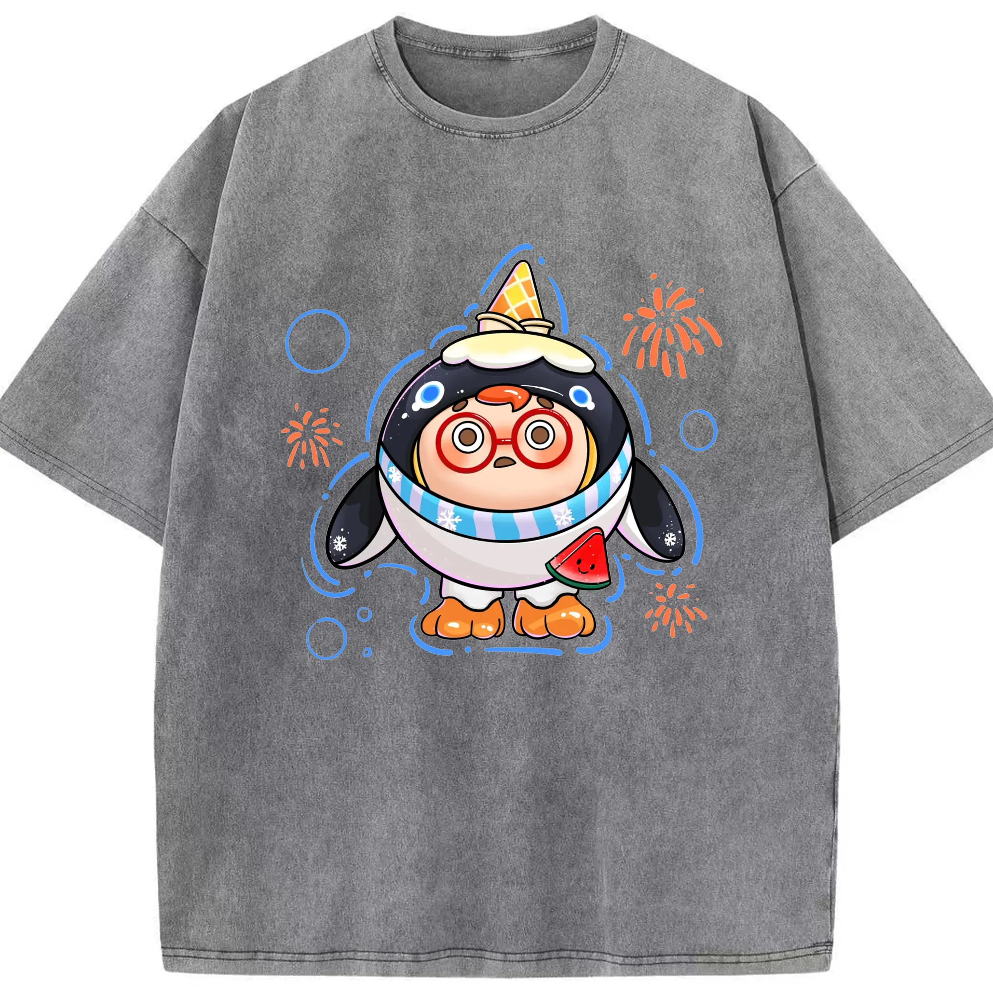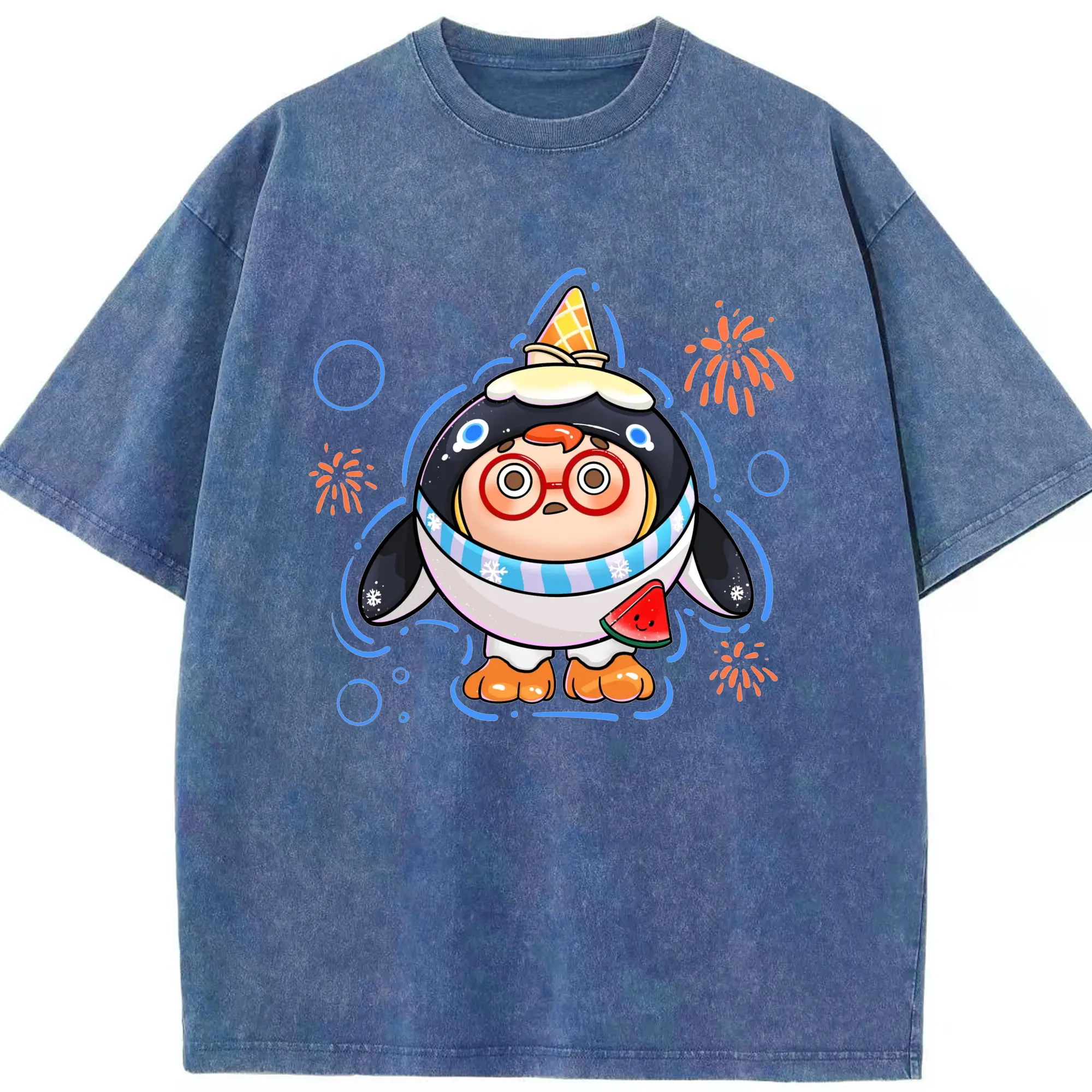タマゴパーティー アイスクリームペンギン 限定 - 綿100% 半袖Tシャツ ・ フロントプリント ・ 快適 通気性 ・ 日常使い 散歩 スポーツ用