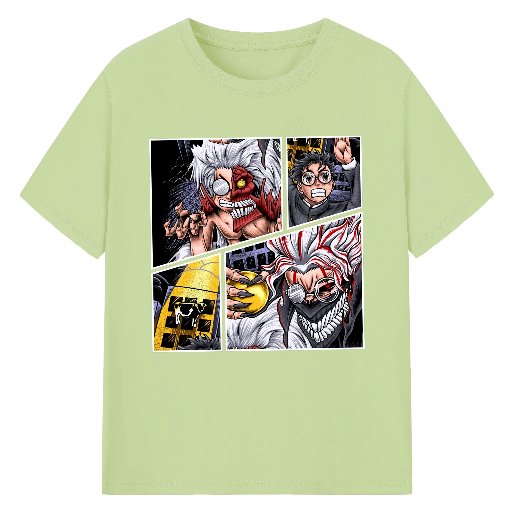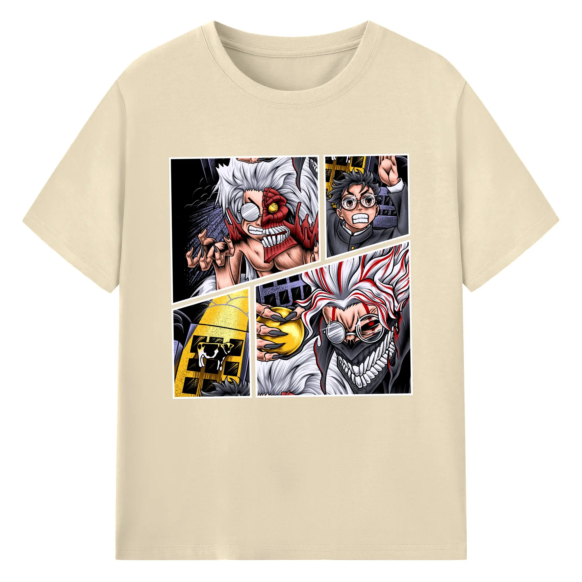 ダンダダンオカルン変身新作 - 綿100% ヴィンテージ風 半袖Tシャツ ・ フロントプリント ・ 柔らか肌触り ・ 通気性 快適 ・ スポーツ カジュアル 外出用